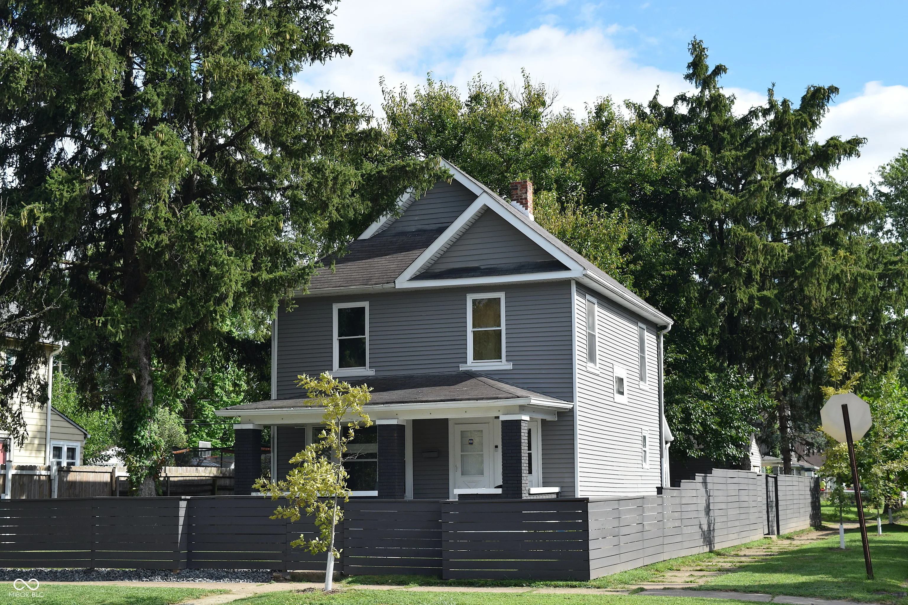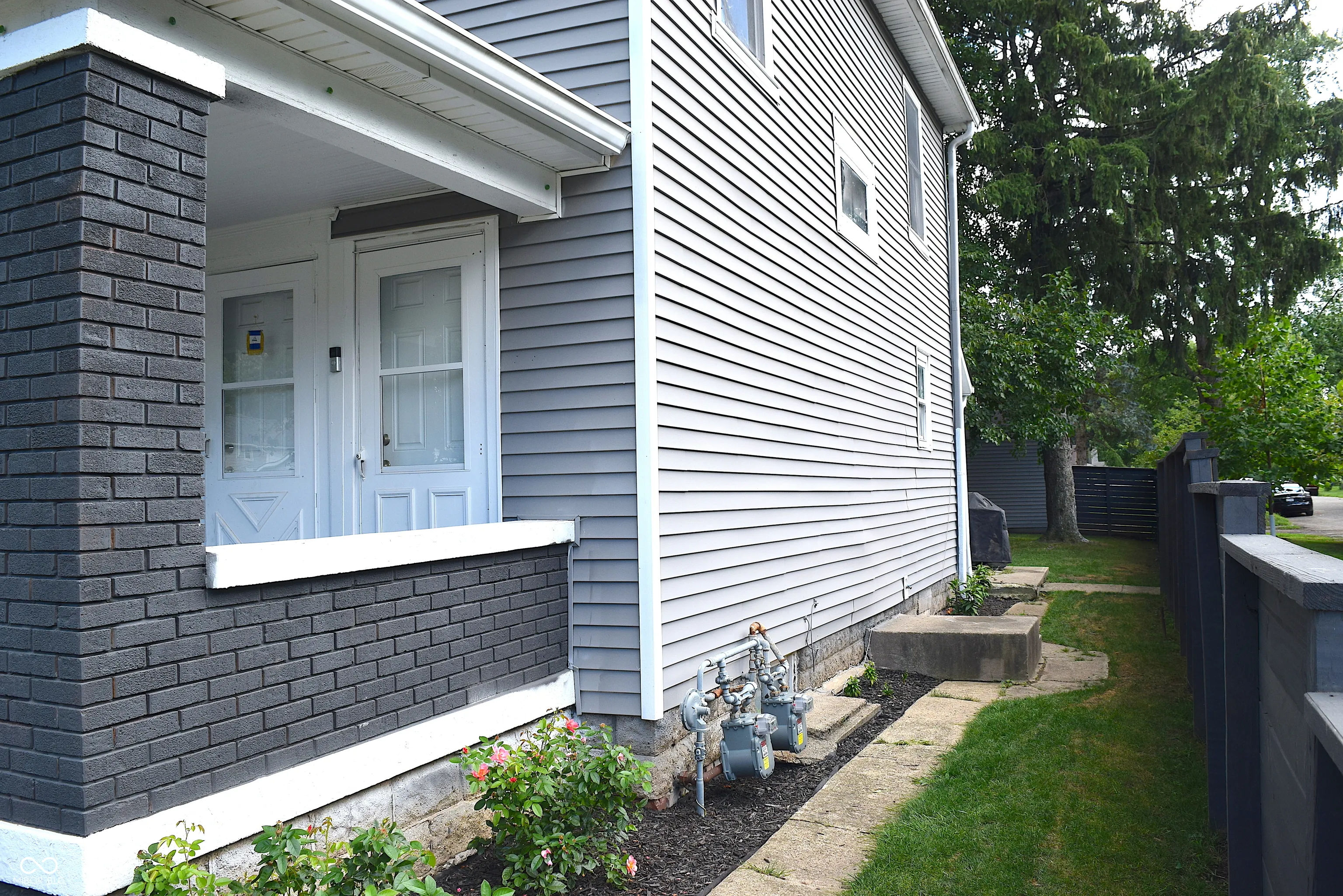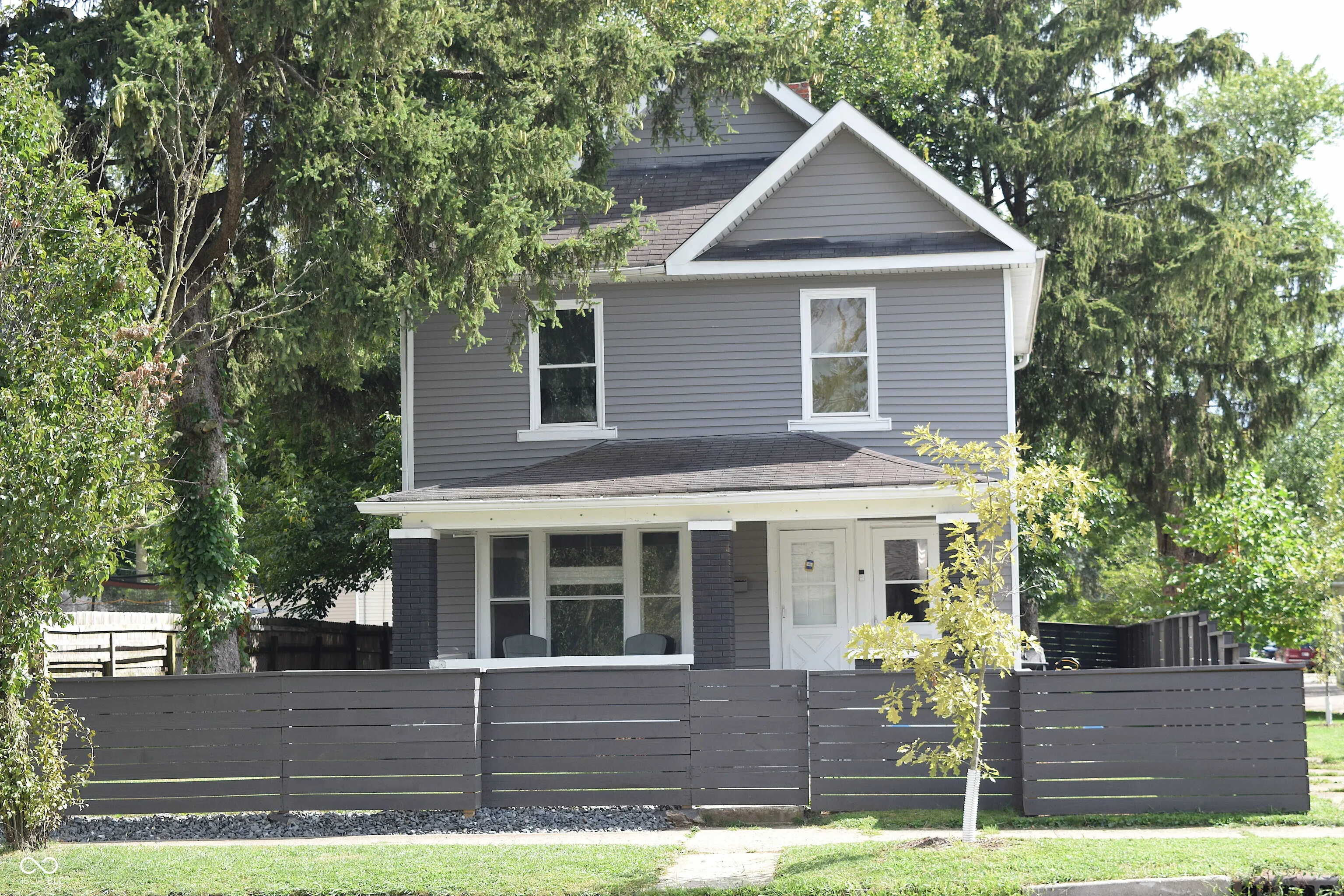 Smart Looking Duplex with Dark Gray Exterior & Charcoal Gray Painted Brick Accent. Great Location Close to Downtown, IUPUI, The Zoo, Indianapolis Motor Speedway, I-70 & I-465. Owner Occupied and Well Cared for Home with Welcoming and Large Front Porch and Space to Relax. Newly Landscaped with Perennial Beds and also with some Stone Work. Entire Yard has been Professionally Fenced around it’s Perimeter. The Horizontal Board Fence was Painted to Compliment the Home and has a Backyard Gate that Only Opens from Inside. The Back Yard has Become a Private Oasis and the Owners have Enjoyed Many Days Under the Shade of the Beautiful Trees and the Evenings around their Fire Pit. 1196 Sq Ft Main Level Unit #1 is a 1 Bed/1 Bath w/New Tub/Shower Surround & Shower Head/Valve. Unit has a Large & Inviting Entryway with Openings to Kitchen w/Loads of Cabinets and Bright Living Room w/Great Natural Light. Enter Dining Room from Kitchen or Living Rm. Laundry Rm Conveniently Located off of Kitchen w/Stacked Washer & Dryer Included. Unit Also Includes Use of a Detached & Desirable Garage with Solid & Newly Built Garage Doors & Loft Storage. 934 Sq Ft Upper Unit #2 has 2 Bedrooms, 1 Bath w/new Vanity, Kitchen w/3 year old Appliances, Living Room, & Newer Tilt Out Windows for Easy Cleaning. Both Unit’s Walls, Trim, Ceilings, and Cabinets have been Freshly Painted and New Flooring has been Installed Throughout. All Ductwork has been Professionally Cleaned and New Window A/C Units were Installed. Unit #1 is Gas & Electric & Unit #2 is all Electric with Both having Separate Electric Meters, Water Heaters, & Furnaces. Only One Water Bill so Landlord can Include that in the Rent Per Unit. Potential for 3rd Apartment Unit in Dry 932 Square Ft Partially Framed Basement as it has a Toilet, Shower, & Sink Area. New Owner Could Install an Egress Window and a Door on the Side of the Home for Direct Access to the Future Basement Unit.