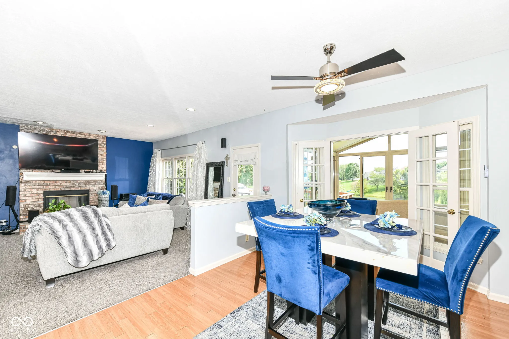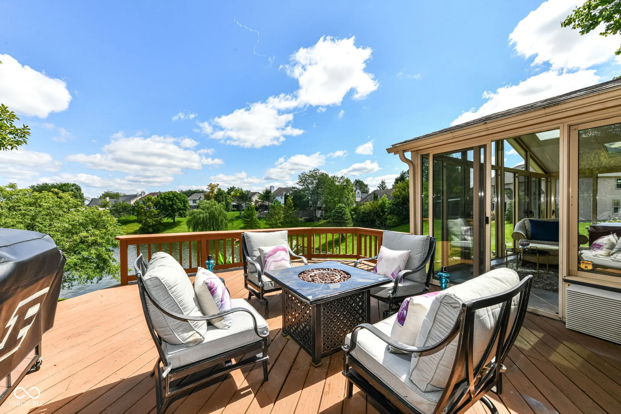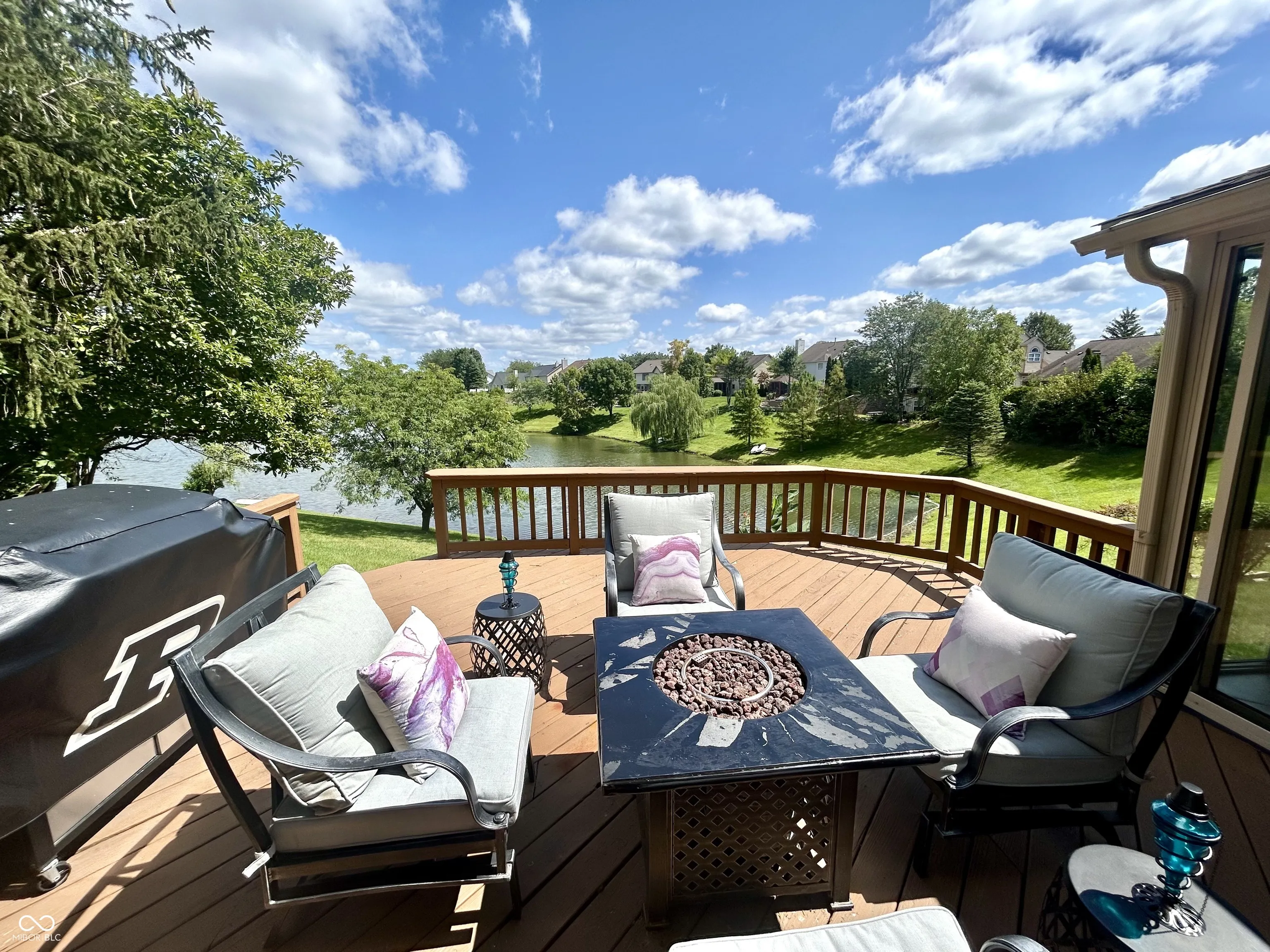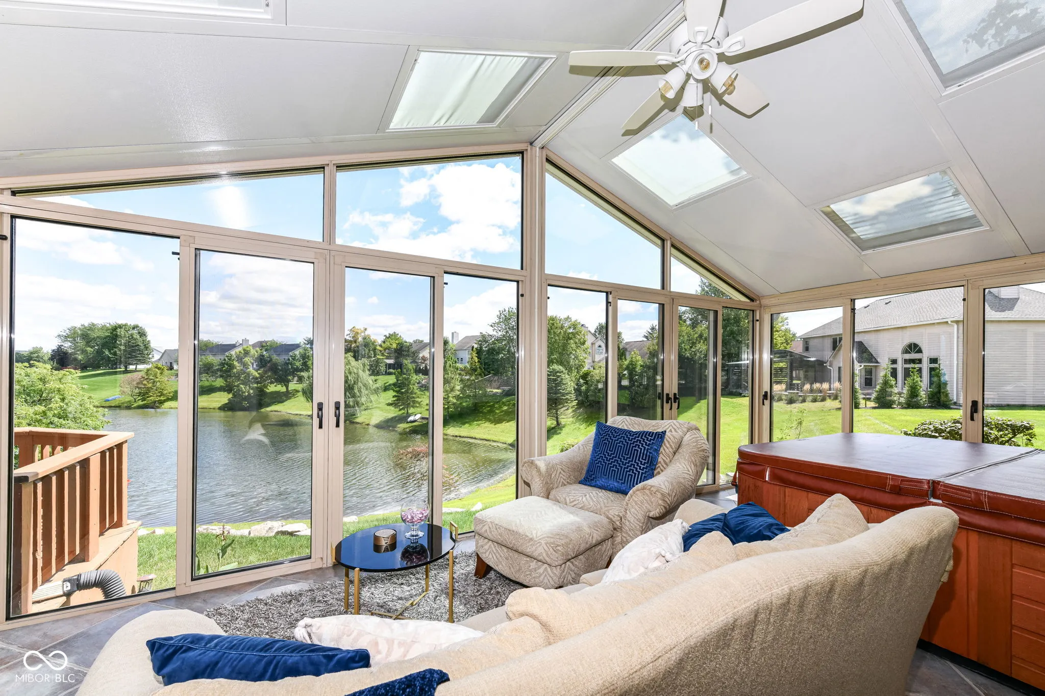 You asked for it. You waited for it. Now, Appaloosa Way is here! This 4 bedroom with a bonus bedroom in the basement, 2.5 baths waterfront home has an enclosed glass french door 4-season sunroom with a hot tub and substantial deck overlooking your waterfront and dock. This luxurious and expansive view can be seen from the family room, eat-in kitchen, and four season room. It’s a vacation home in the city!!! Exterior updates of paint and shutters are topped off with updated landscaping that benefits from a Wi-Fi controlled front and back irrigation system. With 2889 sq feet on the main and upper levels; the finished basement extends this immaculate home to over 4000 sq feet. As you enter the grand 2-story foyer with 9-feet ceilings, you will discover a stunning 20-inch chandelier with “Elegant Cut” clear crystals. Through the formal living room french doors, you enter into a beautiful family room space. Formal dining does not disappoint with a stunning crystal chandelier. Lighting the eat-in kitchen is a crystal ceiling fan that leads to the kitchen with upgraded and new faucet, refrigerator, dishwasher, microwave, GE Profile self-cleaning air fryer convection oven. This serene sanctuary retreat is located in Chestnut Hills subdivision; a Northwest Indianapolis Traders Point neighborhood. Centrally located, you have easy access to 465, 65, downtown Indianapolis, Eagle Creek Reservoir, 86th street and surrounding areas; giving you both fast and fine dining restaurants, shopping, and much more. To truly appreciate this home, it’s a must see, feel and walk-through. Appaloosa gives a new meaning to “stay-cation”. The roof and HVAC are 2017 and 2016 respectively. Home warranty comes with an accepted offer. Hot tub stays.