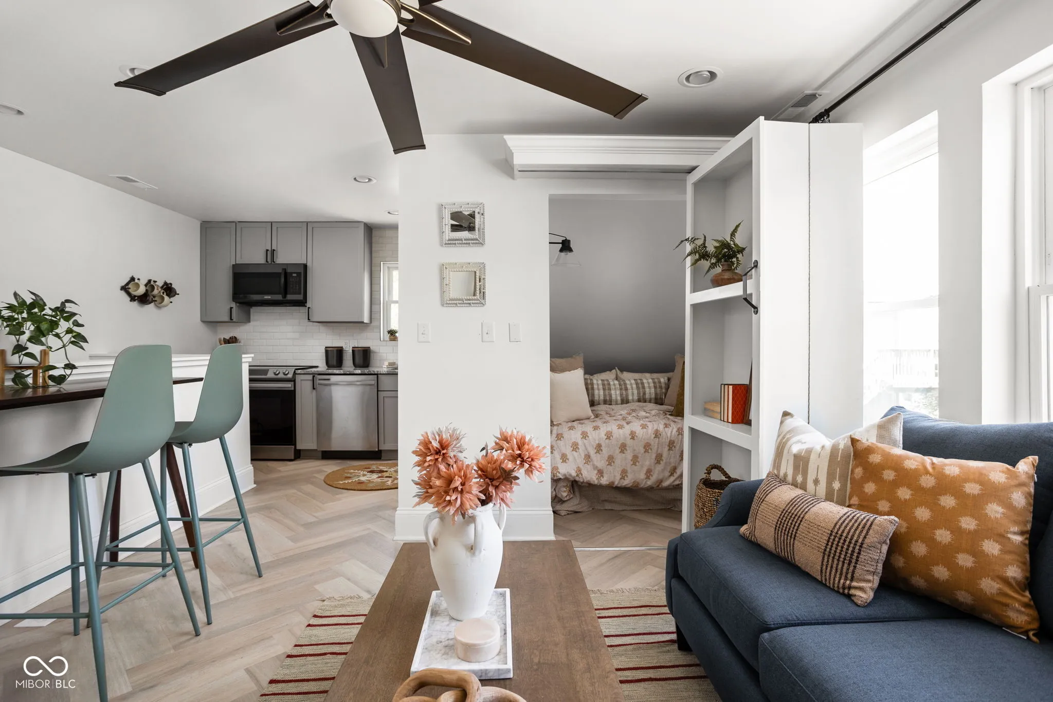 This unit is new construction as of 2022 and centrally located to downtown hospitals, schools, offices and all of the highways for easy commuting outside of the city. It may be of a cozy size, but it packs a punch! The (hide able) bedroom nook fits a full sized bed and sits behind the custom sliding bookcase, making it easy to hide the sleeping space away when you have guests. The full bath has a 60″ double vanity and full tub/shower unit along with an in unit washer and dryer. The one car garage has direct access to the second floor unit as well as direct access to the fenced in side yard, perfect for your furry friend!
