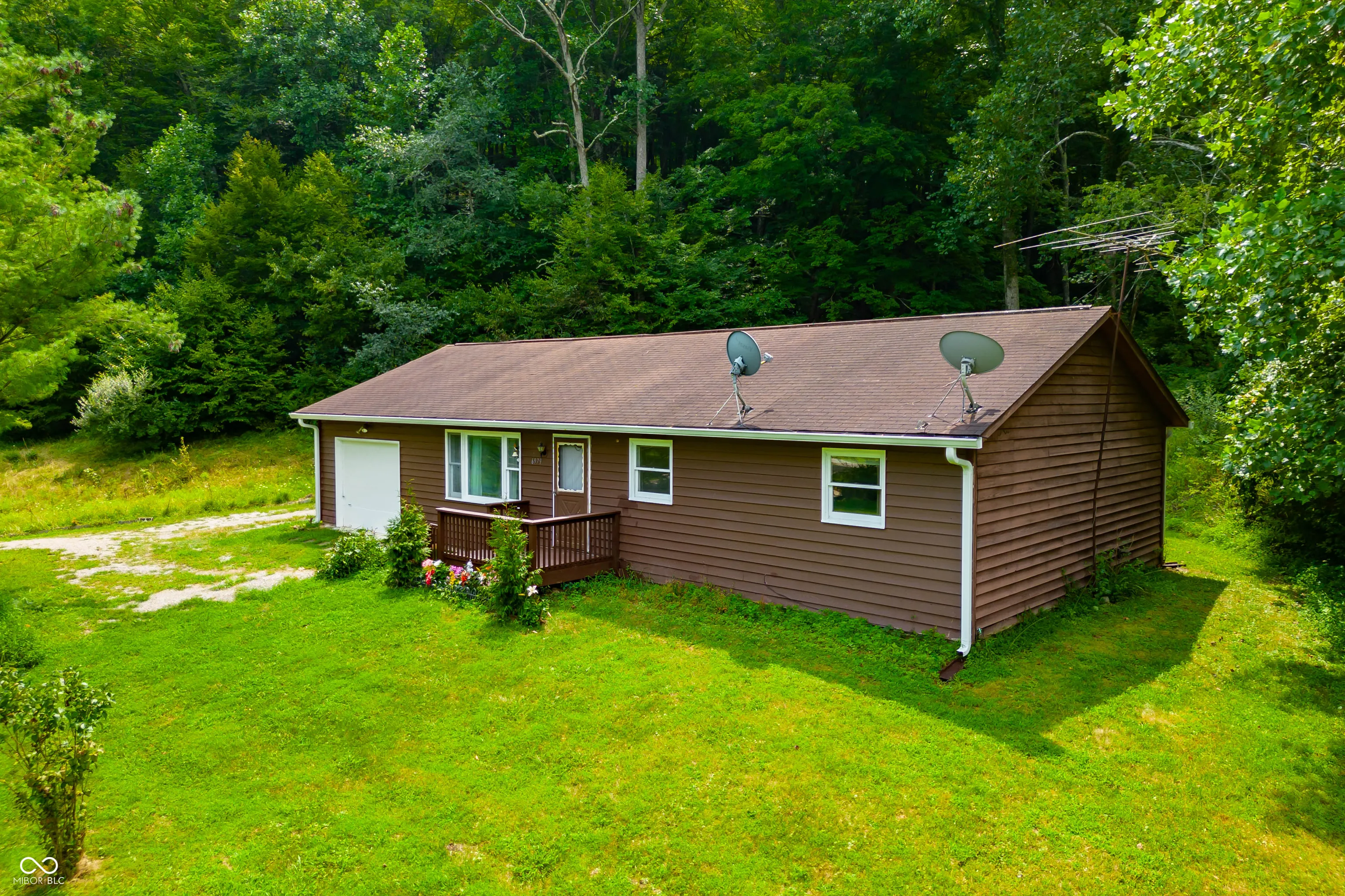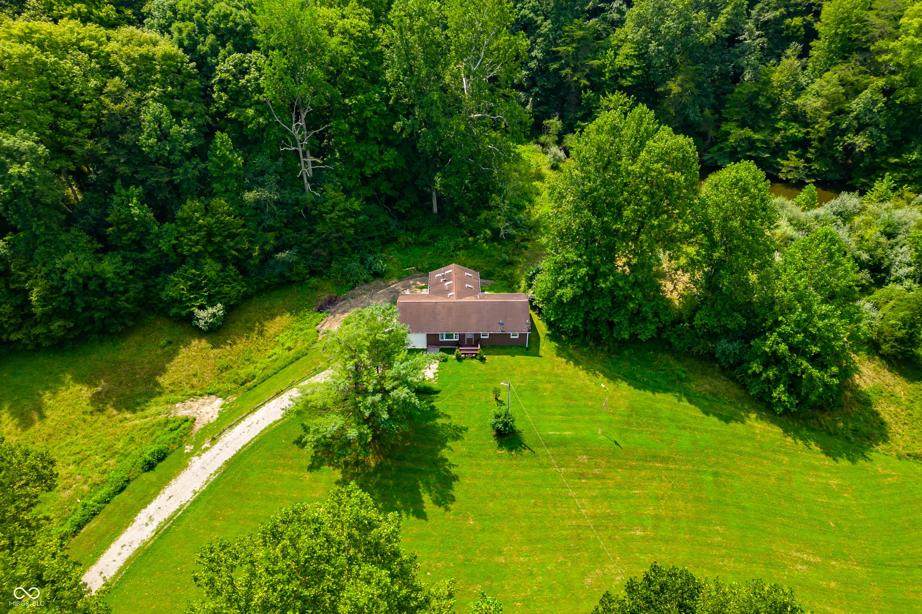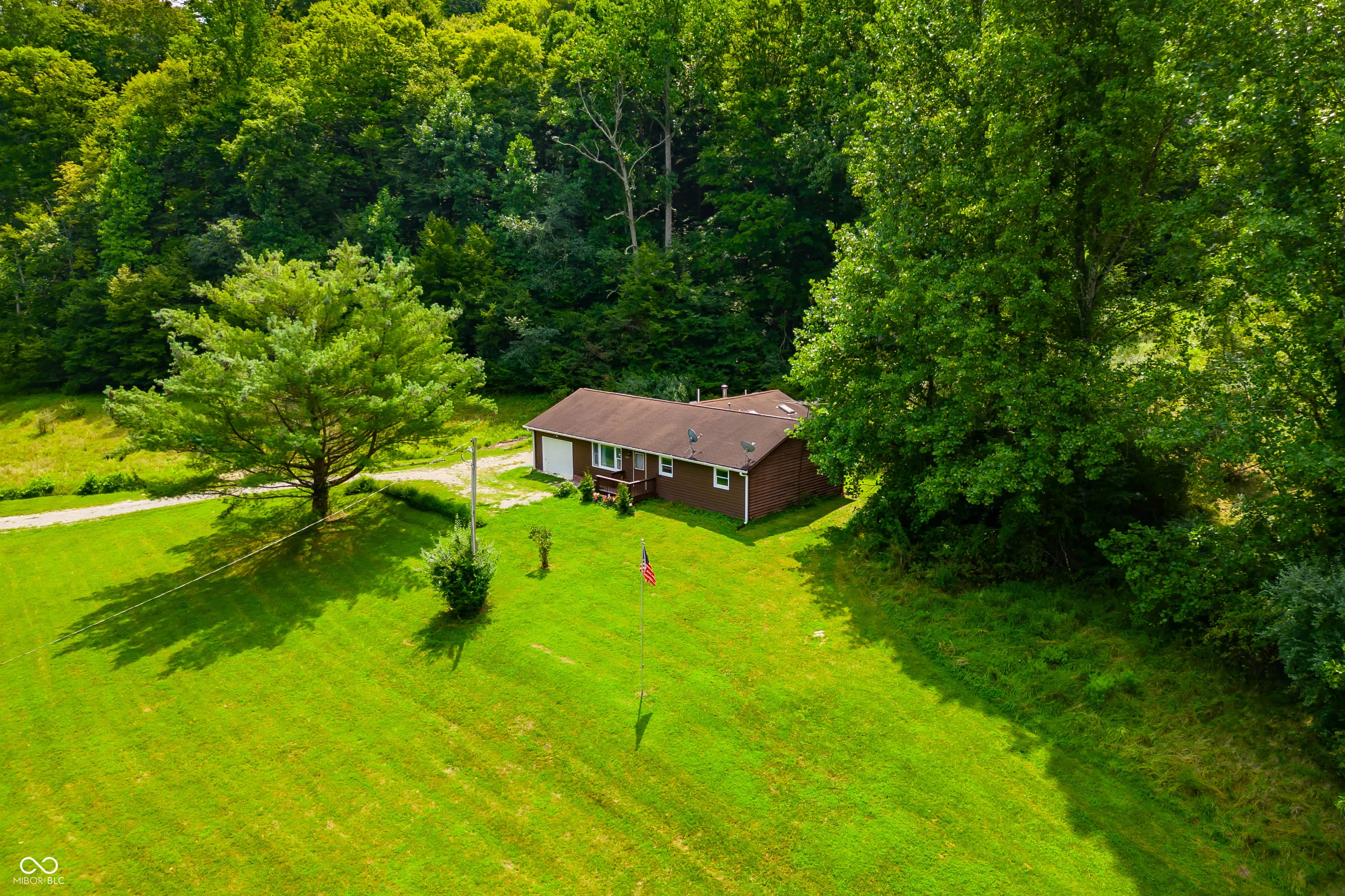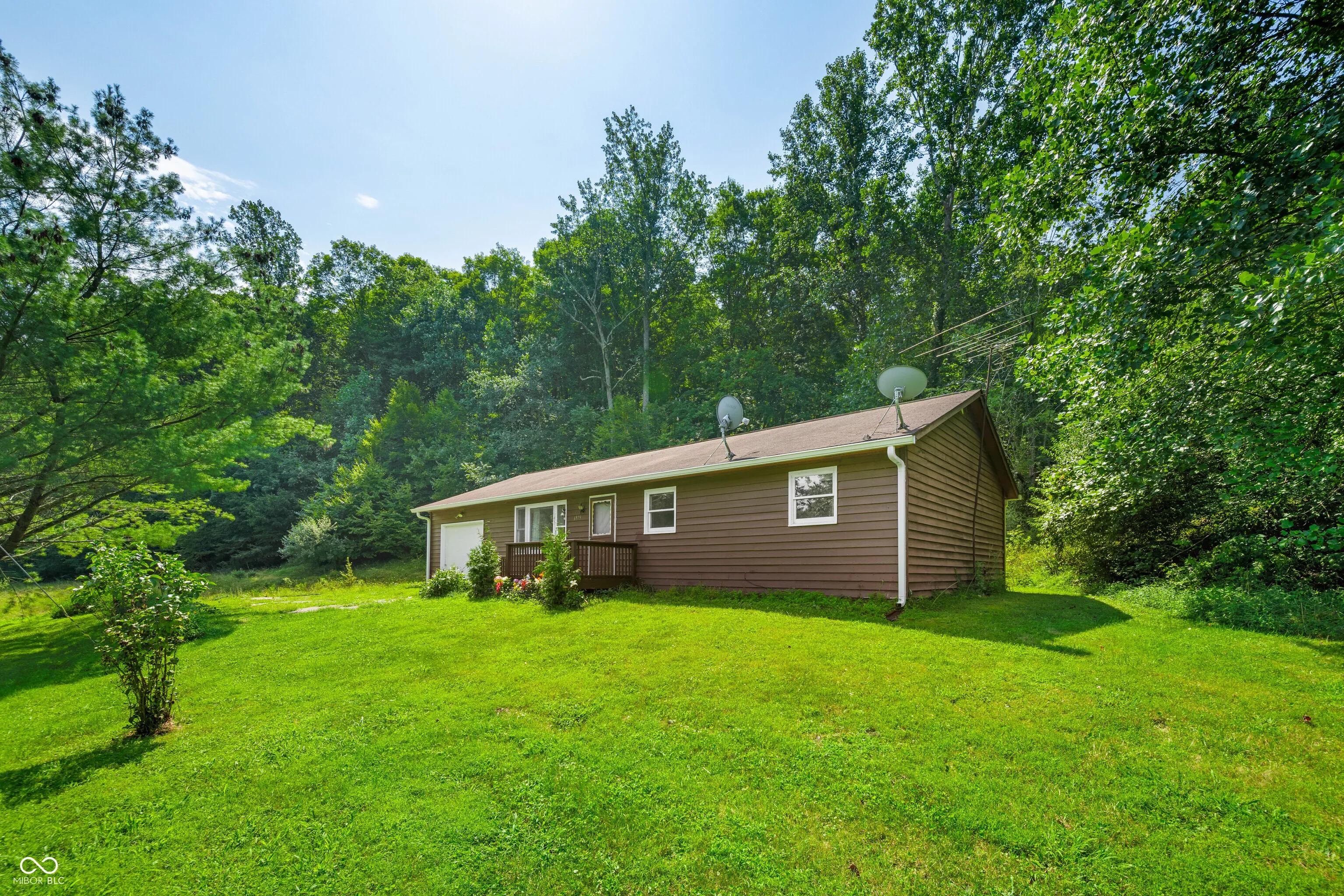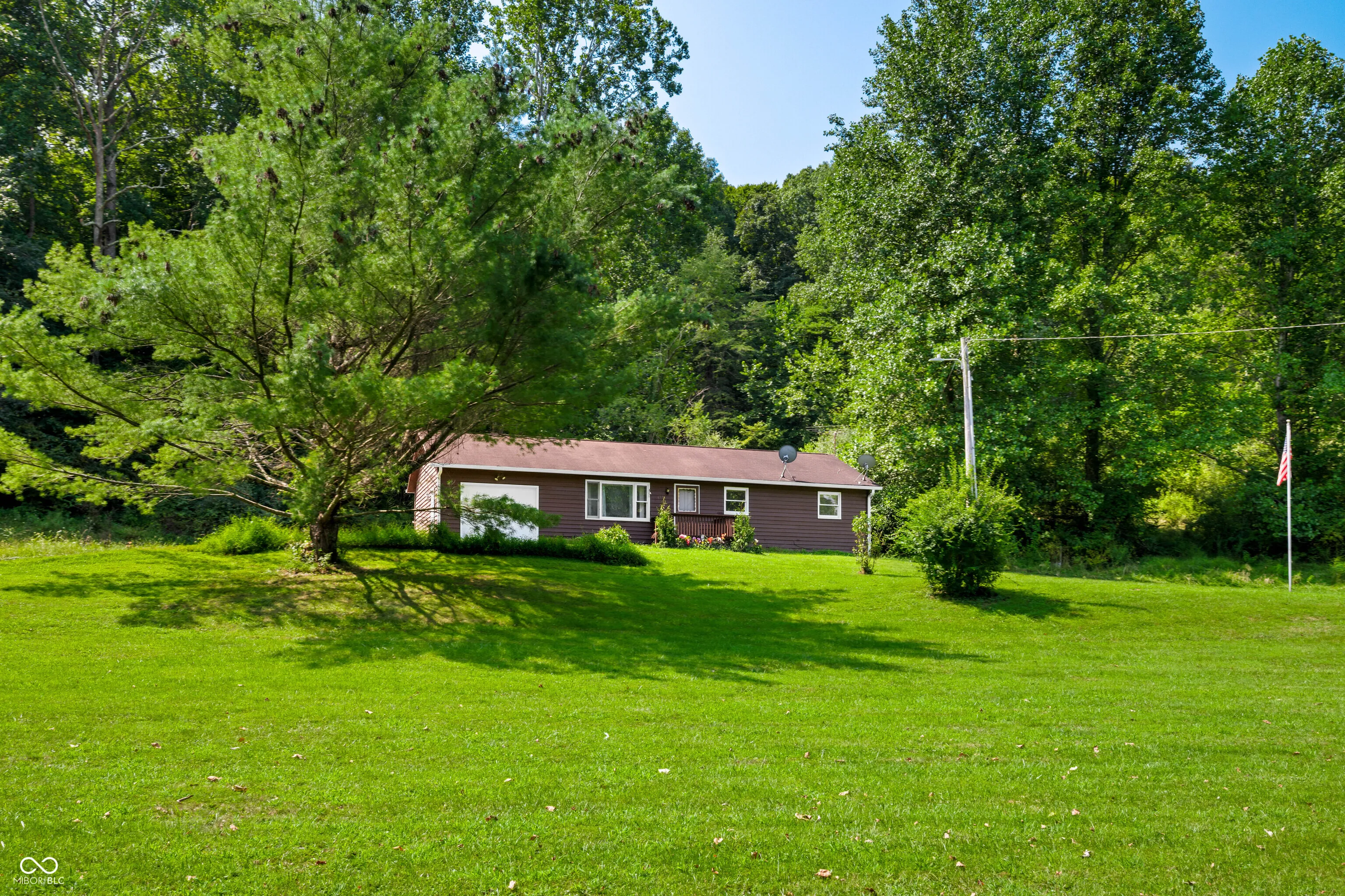 Brown County home nestled on 14 acres of beautiful land with a pond and creek. Home has had several updates since going on the market! This charming 3-bedroom, 2-full bath ranch offers rural tranquility. The interior features a spacious great room with hardwood floors, a fireplace with wood burning insert, large windows and skylights to let in plenty of natural light, and patio doors leading to the rear deck. 1 car attached garage for convenience. Acreage has not been logged in 20+ years. A new heat-pump with four heads was installed less than two years ago to both heat and cool the home. New Bridge was just finished May 2025. French Drain, gutters, crawlspace & attic maintence are on the list of updates to home. Enjoy the quiet serenity yet still have easy access to Nashville, Columbus, Bloomington, and Indianapolis.
