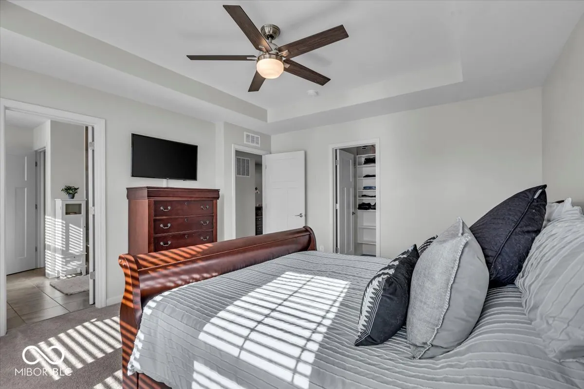 AMAZING end unit townhouse steps away from the Monon Trail w/ high end finishes and meticulously maintained! This unit has all the bells and whistles including amazing views from the back. Townhouse features 3 bedrooms + 2 full & 2 half baths. Wonderful main level w/ clean modern feel, open floor plan, 9 ft clngs & gas fireplace. Kitchen features center isle, stnls appliances, center island, 42 inch cabinets with custom shelf genie roll out cabinets and a custom pantry w/ tons of storage. Large primary bedroom with a luxurious bath and incredible custom closet shelving and storage. All bedrooms have custom closets including the the hall closet. Laundry room located on upper floor. Lower level flex room is perfect for media room, exercise or office. Walkout to a private patio with a custom covering and gutter system overlooking a private tree lined setting. Beautiful garage w/ epoxy flooring, storage closet and custom overhead storage. Easy access to Monon Trail, Grand Park, shopping and US 31 for an easy commute. You won’t be disapointed this Townhouse is amazing!