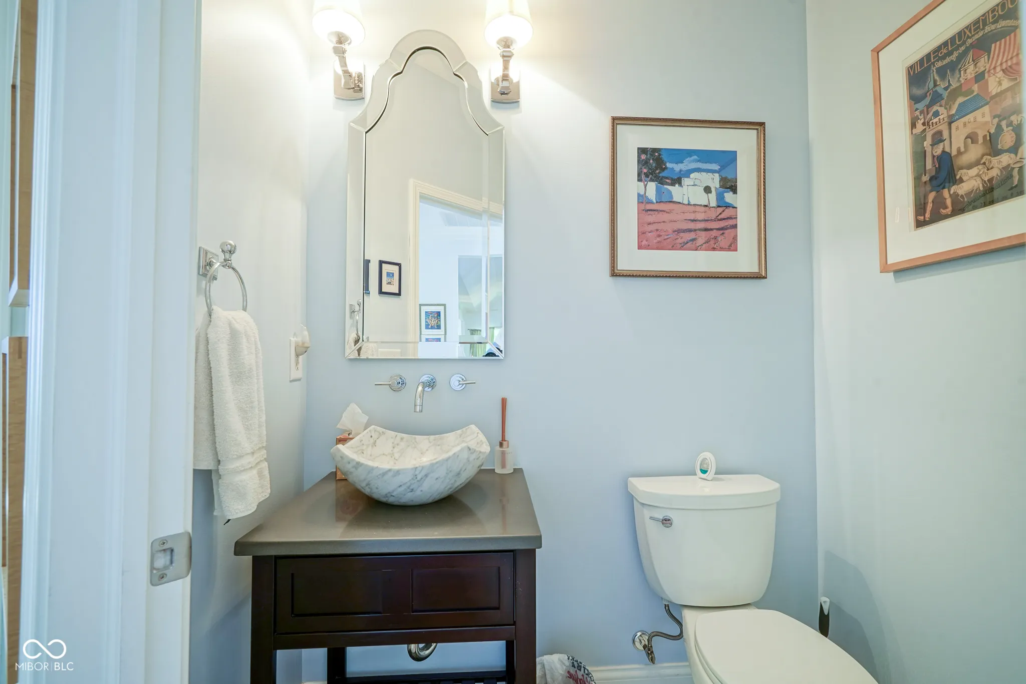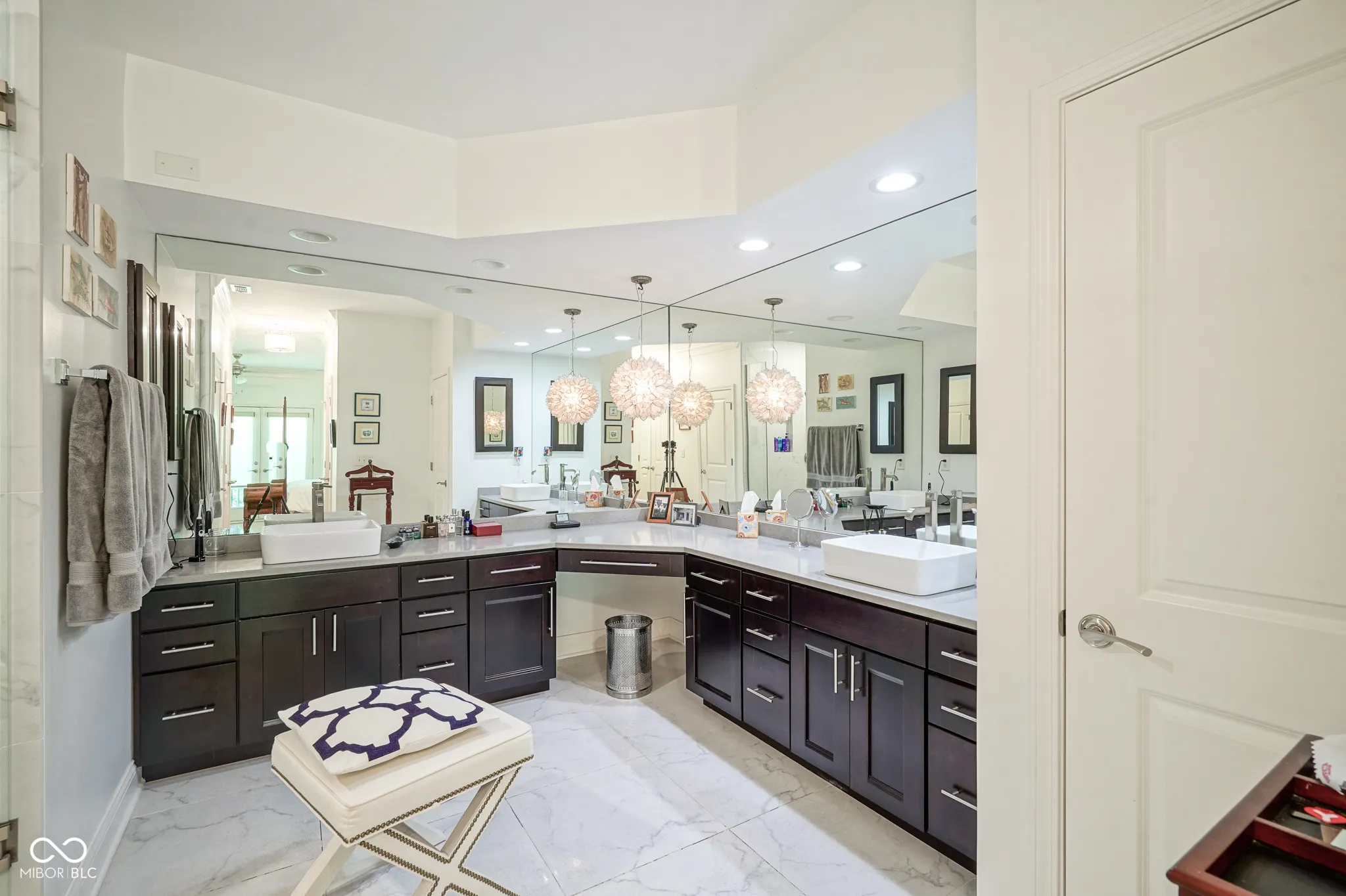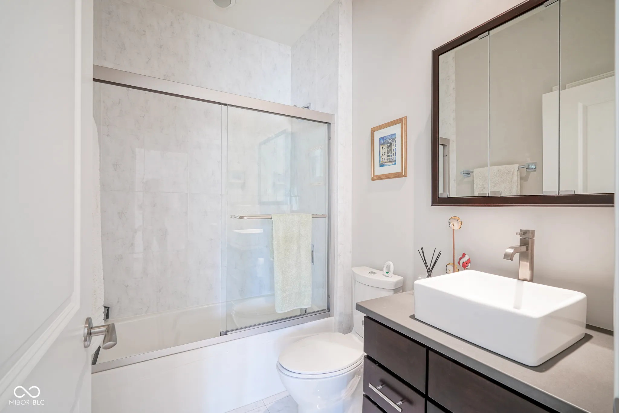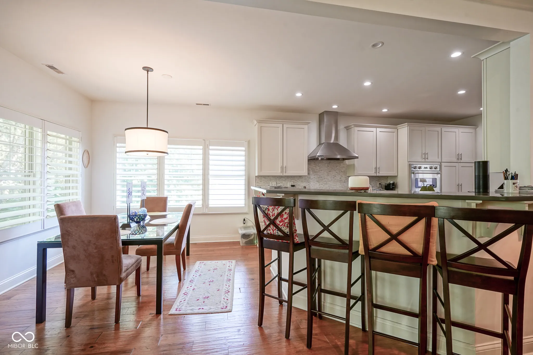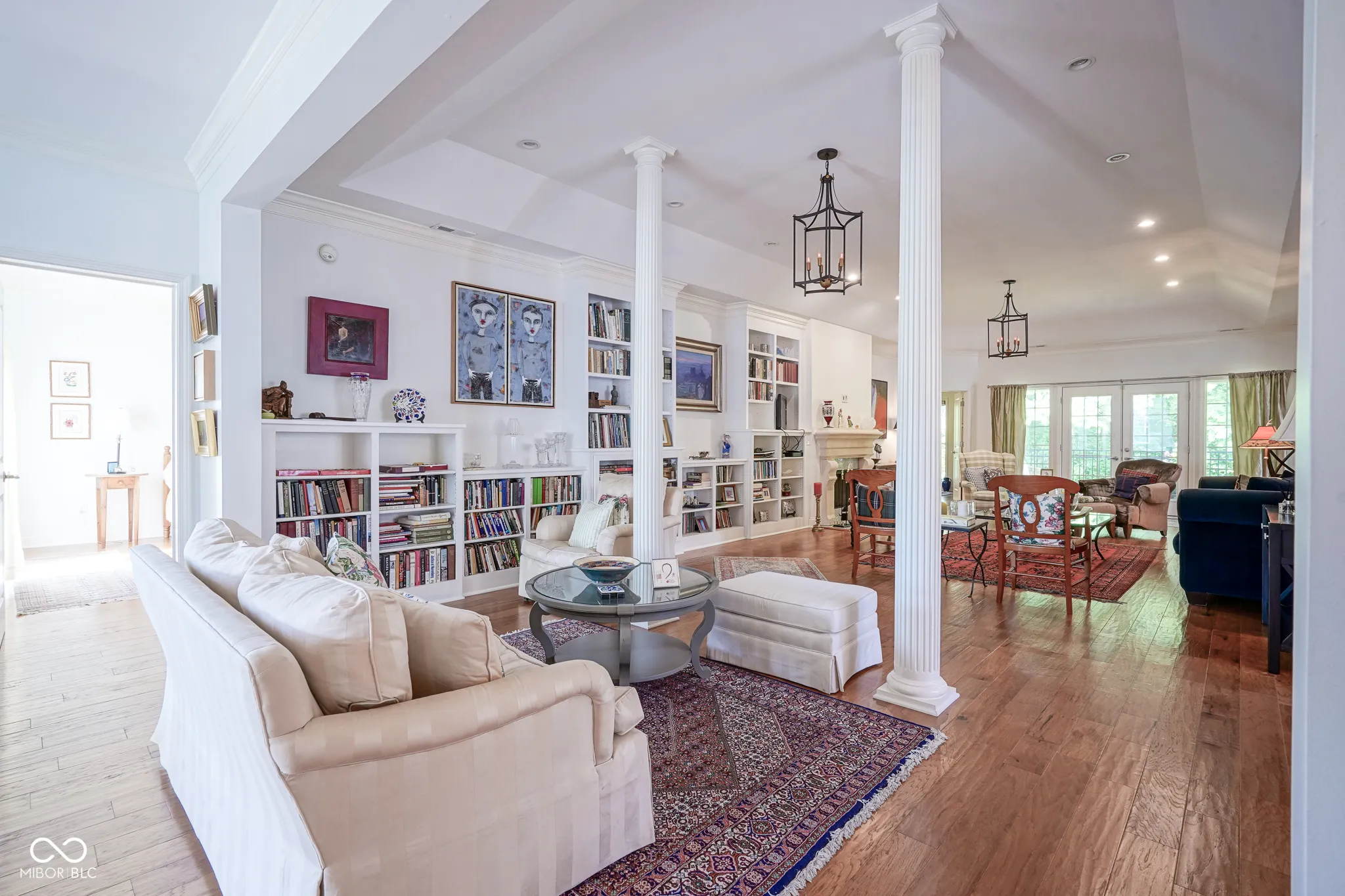 Welcome home to this beautiful condo in the desirable Woodmont neighborhood, one of Indy’s most sought-after communities on the northside! Upon entering the grand two-story foyer, either from the two-car attached garage or the front entrance, you are immediately presented with a rare, but unique, pneumatic vacuum elevator just for this unit! Enjoy this elevator, or walk up the steps, to your spacious and meticulously maintained living area. Your eyes are immediately drawn to the intricate details of the living room, such as the soaring tray ceilings, crown molding throughout, and wonderfully crafted built-ins. The custom columns allow for some room separation while still having an open feel. Notice the sprawling updated hardwood flooring, which you will find throughout the entire unit! All three bedrooms each contain their own updated ensuite bathrooms, a feature not commonly found in condos. You will love the modern-style chef’s kitchen with updated Viking appliances and plenty of counter space for cooking. On either side of the kitchen you will find a formal dining room as well as a breakfast nook/eat-in kitchen, allowing for plenty of space for guests to sit while entertaining! In warmer weather, enjoy the serene outdoors while drinking your morning coffee on the updated back patio without neighbors blocking your view of the mature trees. In the colder months, cozy up by the French chateau-style custom fireplace hearth that will warm the room. While retreating to the primary suite, notice the Juliette balcony, allowing for fresh air and more views of the large mature trees behind the condo. You will also find double sinks, a large walk-in shower, and dual closets all a part of the primary bedroom ensuite. Recent updates include: new HVAC (2024), new washer and dryer (2024), new water softener (2023). There is lots of parking available for guests, which is an added feature to living in this low-maintenance community. Come check out this condo today!
