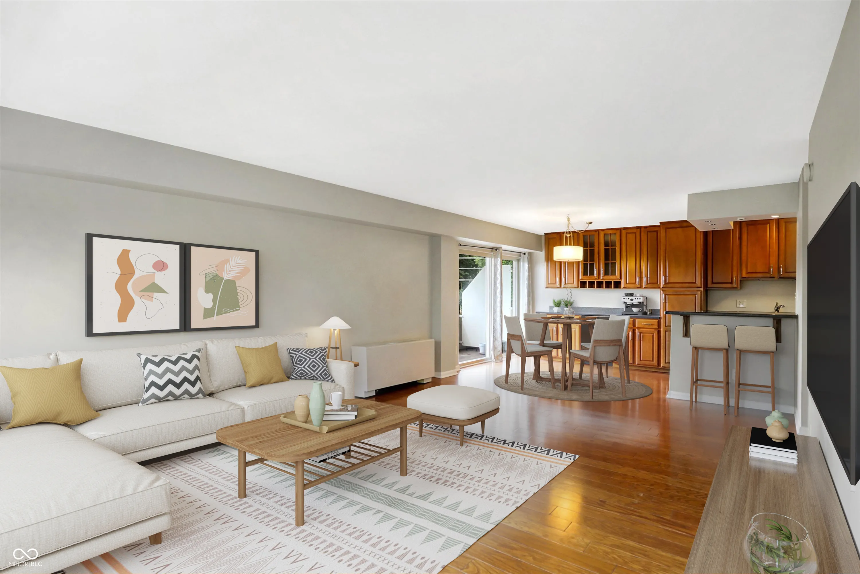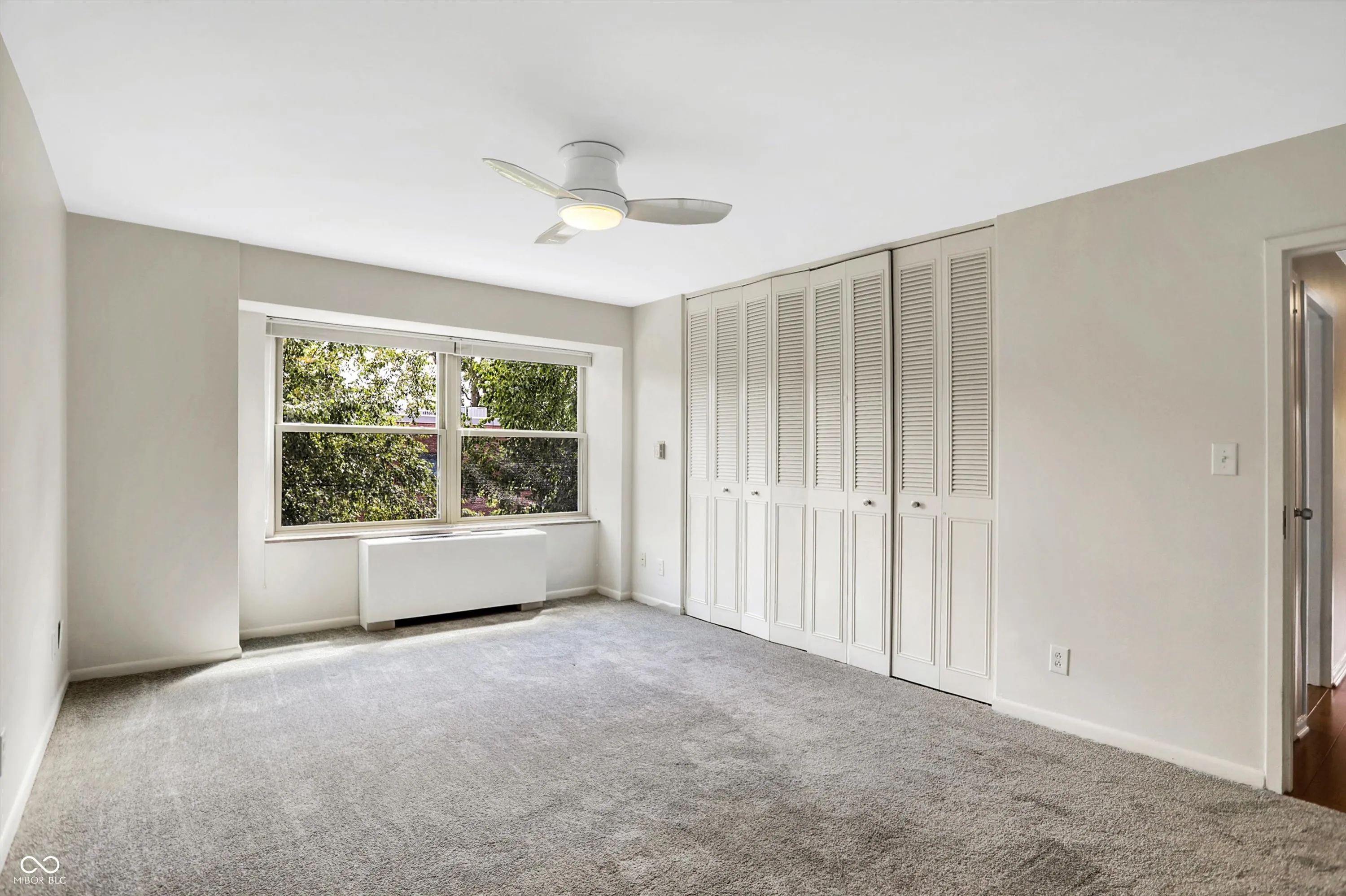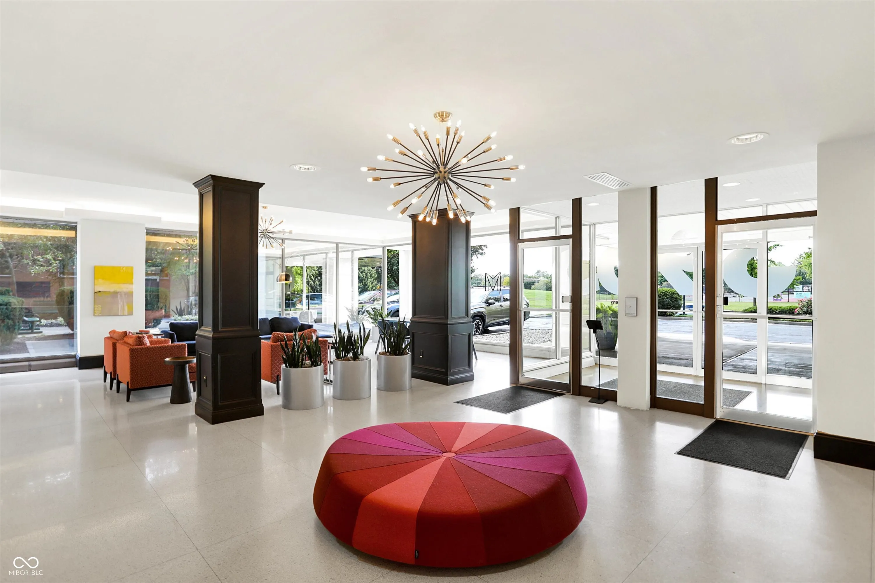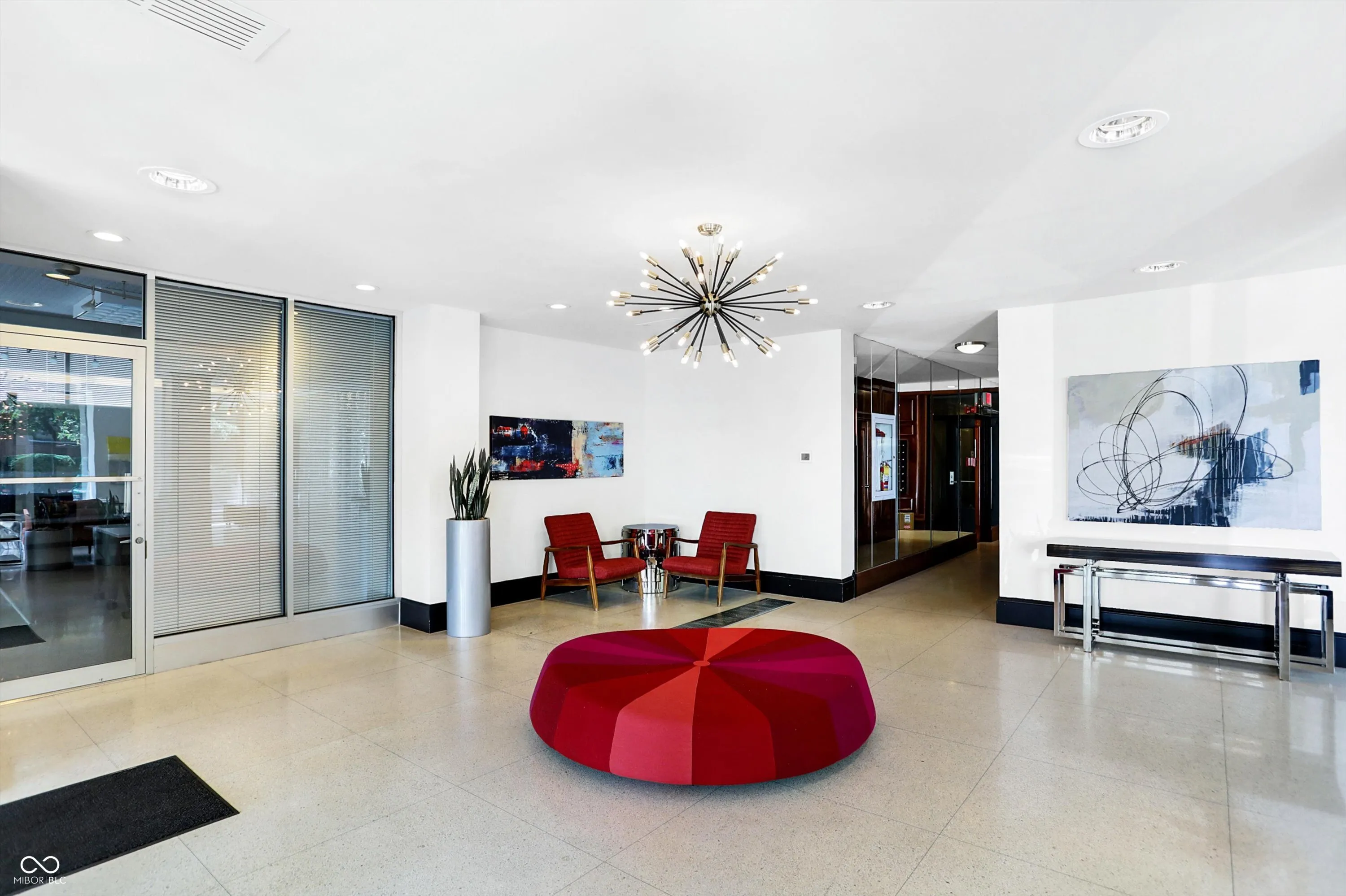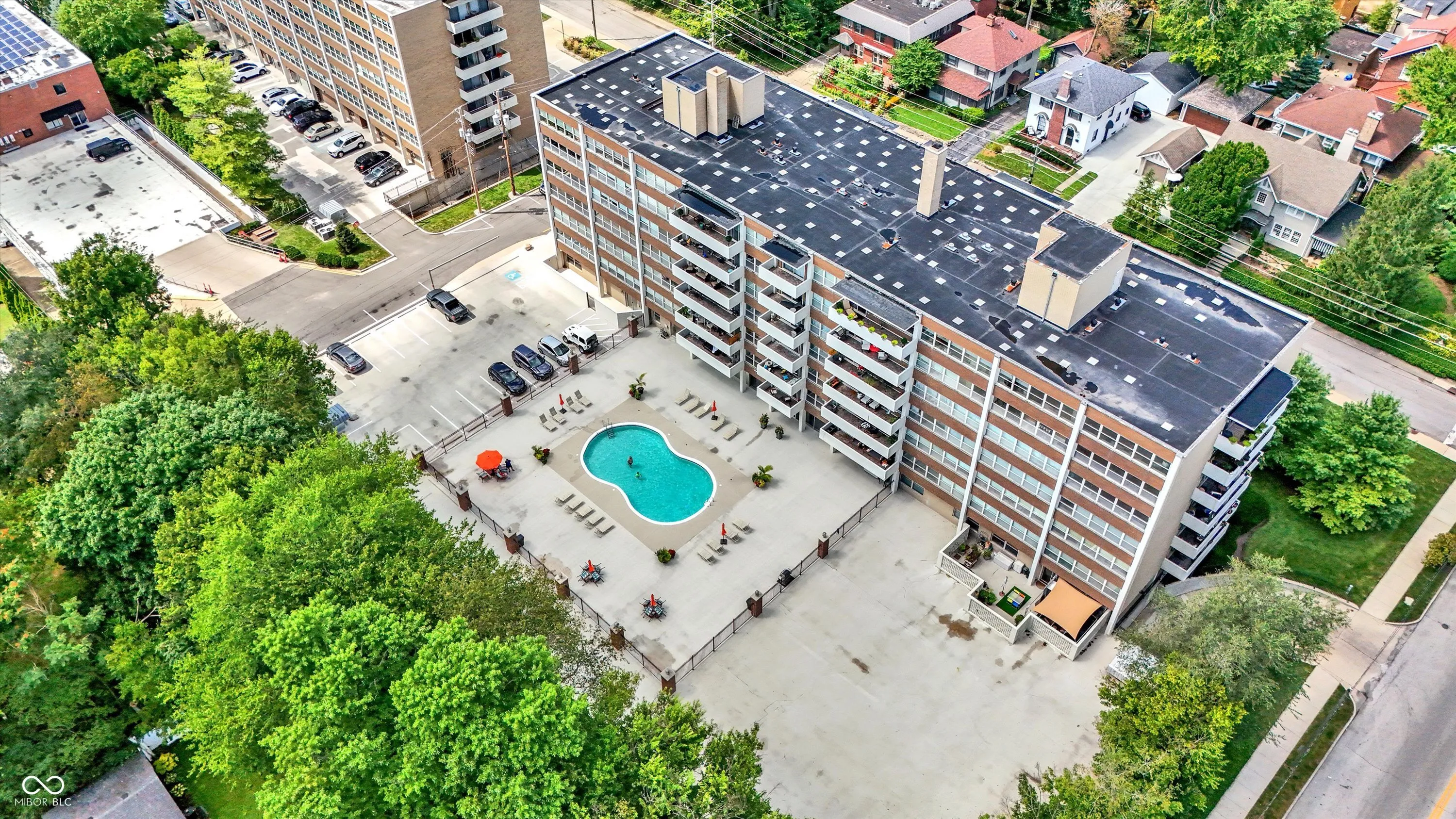 Enjoy the convenience of Mid-town living at The Modern Condos in Meridian-Kessler! When you enter the building you’ll love the sleek retro lobby. This charming 2 bed 2 bath corner unit, freshly painted condo features both west and south facing views, a balcony, and large, open floor plan! The kitchen features solid wood cabinets and Corian countertops. The kitchen also receives a lot of natural light from the west facing doors that lead to the balcony. Beautiful views of the park and tennis courts across the street. Enjoy the convenience of a primary suite plus a second bedroom and full bath. One of the unique things about this particular condo is that it has TWO parking spaces in the garage! You’ll also have additional storage on the lower level. Enjoy the amenities of the fitness center and swimming pool as well! Heat, air conditioning, and water are ALL included in your monthly HOA! This central location is just a short car ride to downtown or the north side! Also close to Butler University, The IMA, and The Virginia B. Fairbanks Art & Nature Park.