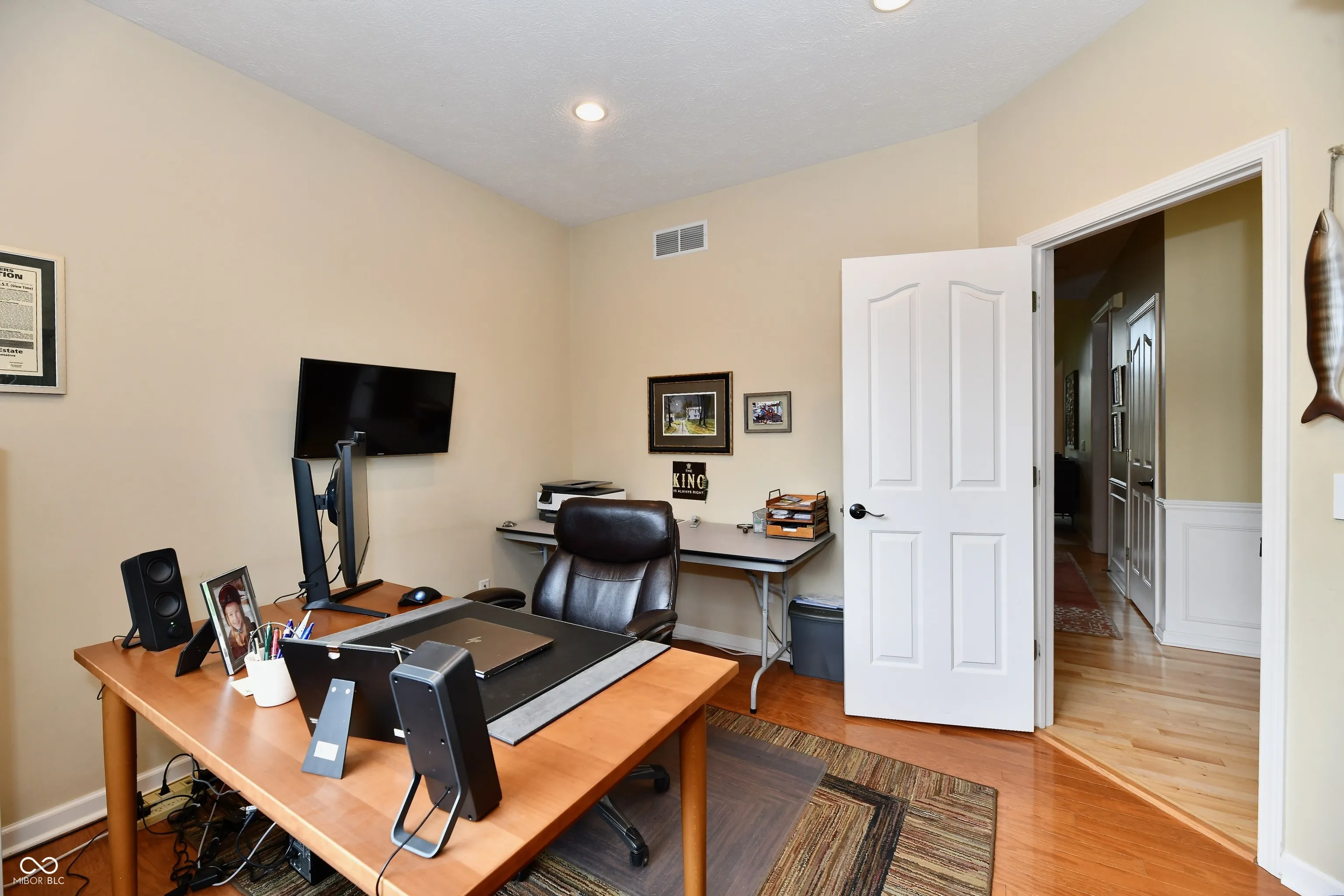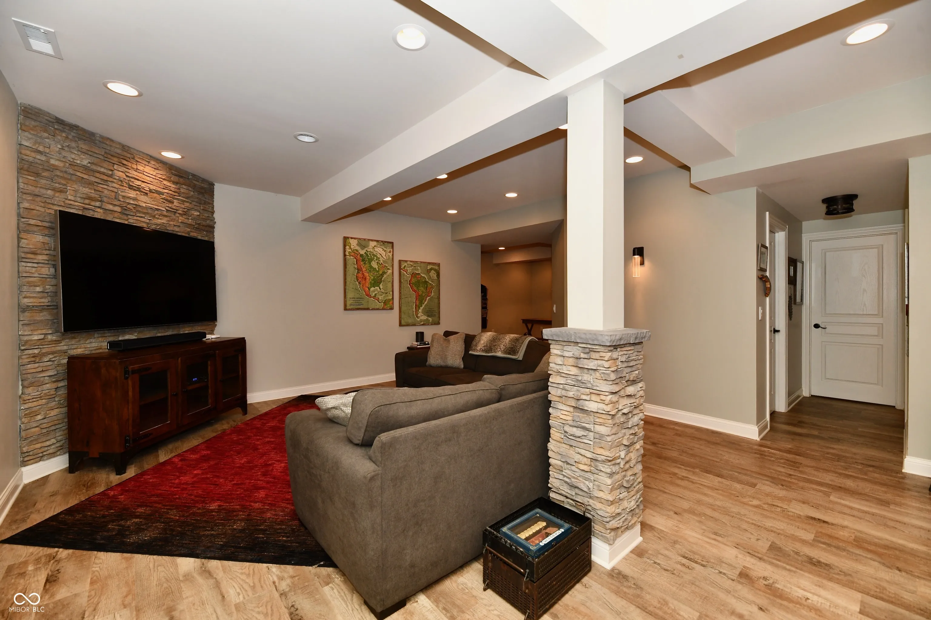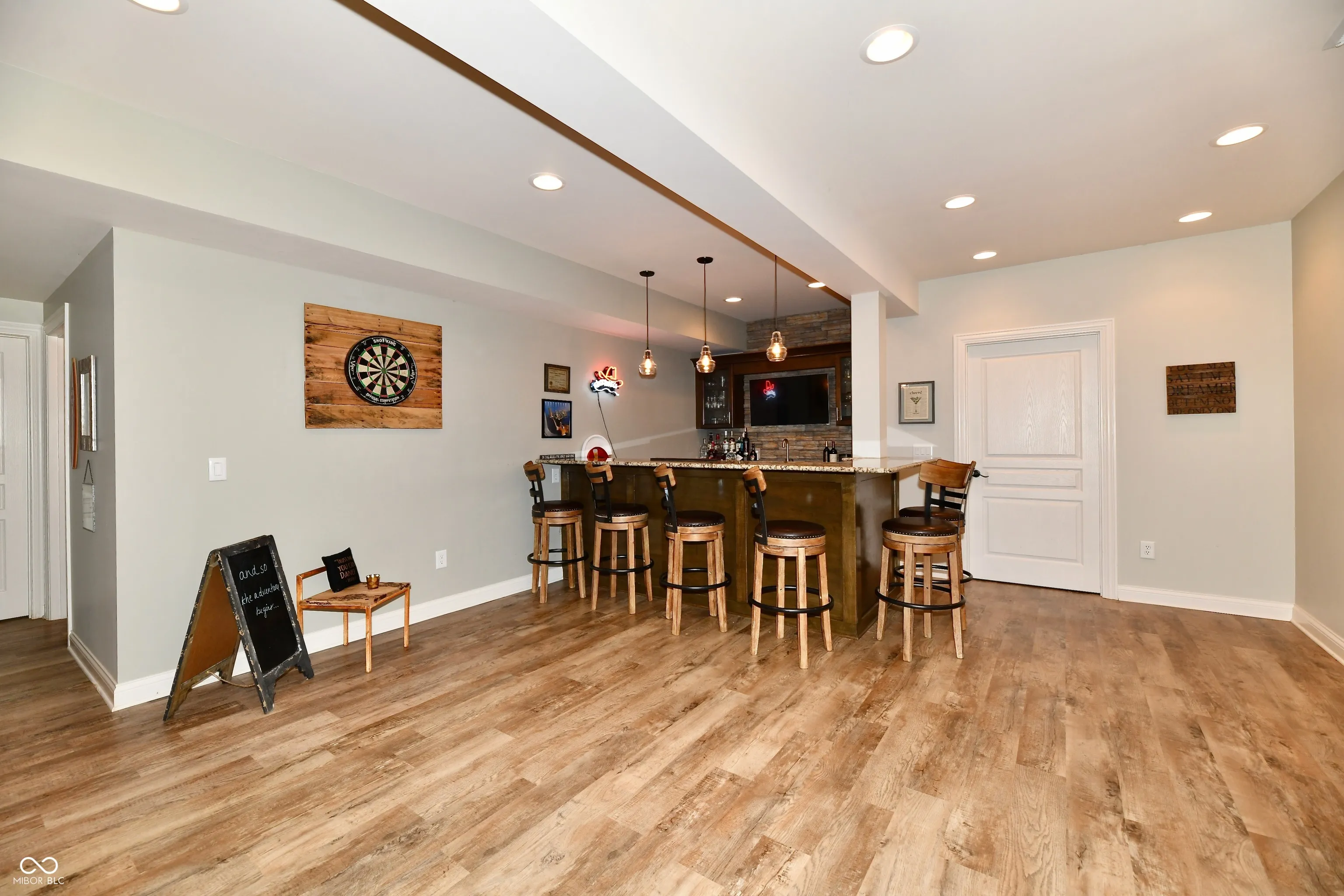 Welcome to this spacious 4-bedroom, 2-full, and 2-half-bath home in desirable Delaware Commons. The moment you step inside, you’ll appreciate the newly refinished hardwood floors that grace the main level. The home boasts a spacious two-story family room with a dual-sided fireplace, seamlessly connecting to a bright and airy sunroom-ideal for relaxation or entertaining. The large primary bedroom is a true retreat, featuring an updated shower and a generously sized walk-in closet. Additional highlights include a finished basement with a wet bar, perfect for hosting gatherings, and a private backyard that adjoins a common area, providing tranquility and easy access to walking trails. The home is thoughtfully designed with formal dining and living areas, as well as a separate office space, catering to all your needs. Residents of Delaware Commons enjoy exclusive access to community amenities, including a pool (in Delaware Trace) and walking trails. This home combines modern comfort with a prime location, offering both privacy and community convenience. Don’t miss your chance to make this exceptional property your own!