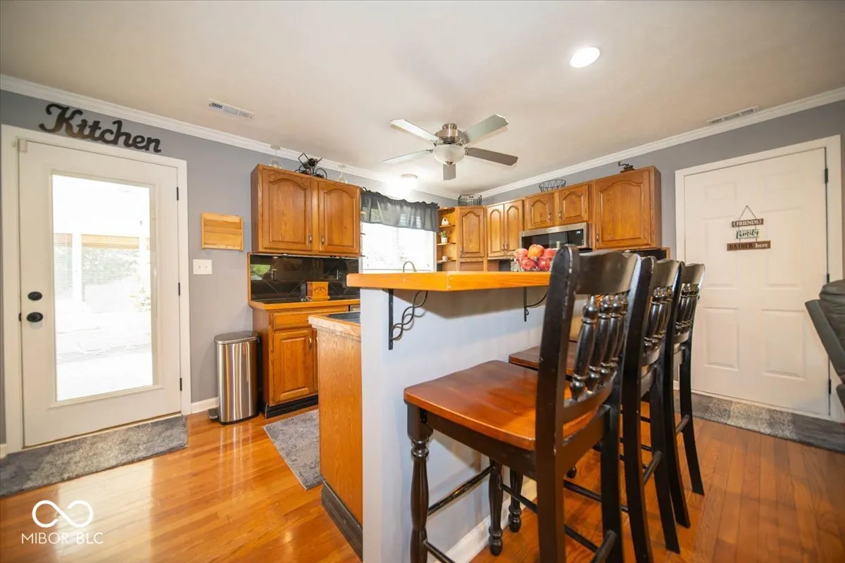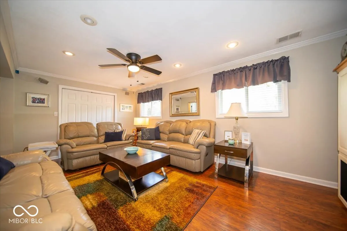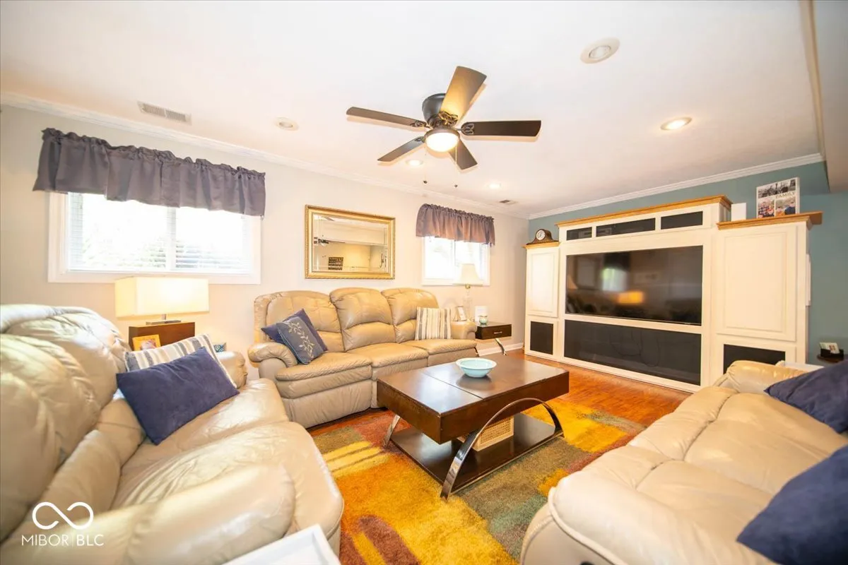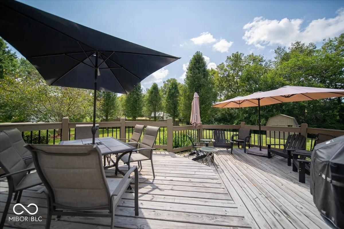 Welcome to this charming house nestled on a spacious ACRE lot in Center Grove! A welcoming, covered front porch will greet you as you approach. Step through the doorway to discover an interior where hardwood floors shine beneath your feet. The heart of this home is undoubtedly its kitchen, equipped with a center island perfect for breakfast chats, oak cabinets providing ample storage, and stainless steel appliances that will delight the family chef. The kitchen gracefully opens out to a light-filled living room, defined by crown molding and a layout that encourages relaxation and togetherness. Upstairs, you’ll find the primary bedroom and two additional bedrooms, along with an updated shared bathroom featuring a tub/shower combo. The lower level houses a convenient laundry room with ample storage, a half bath, and a cozy family room with an adjoining dining area – ideal for family gatherings or movie nights. For those who love outdoor living, this home doesn’t disappoint. A beautiful screened-in porch and a two-tiered wood deck provide the perfect setting for alfresco dining or stargazing. The nicely landscaped yard, adorned with mature trees, offers plenty of space for gardening enthusiasts or backyard games. Storage is a breeze with the mini barn and finished two-car garage. This long-time owner has meticulously maintained this property, even treating it to fresh paint, white trim, and black hinges. With a newer HVAC system, you’ll be comfortable all year round! Don’t miss out on this gem – it’s not just a house; it’s a home waiting for your personal touch!