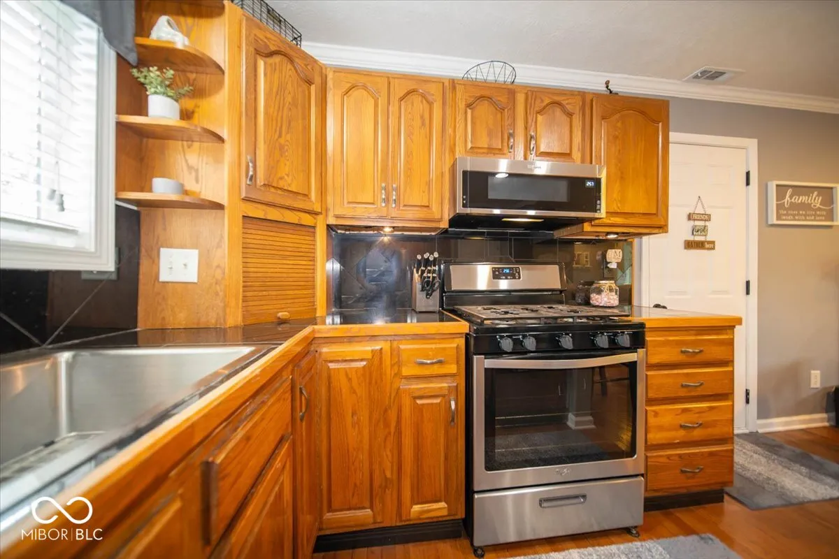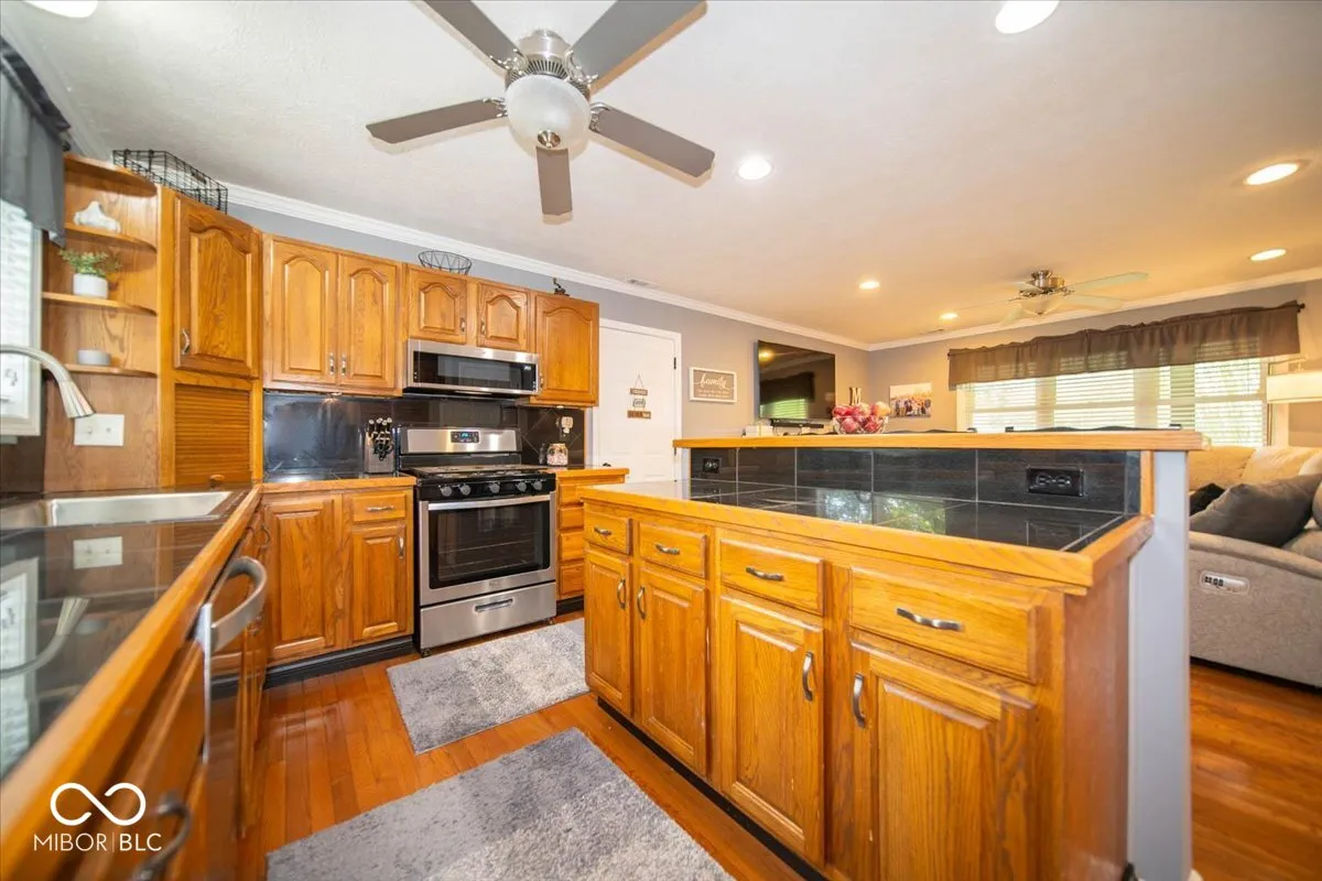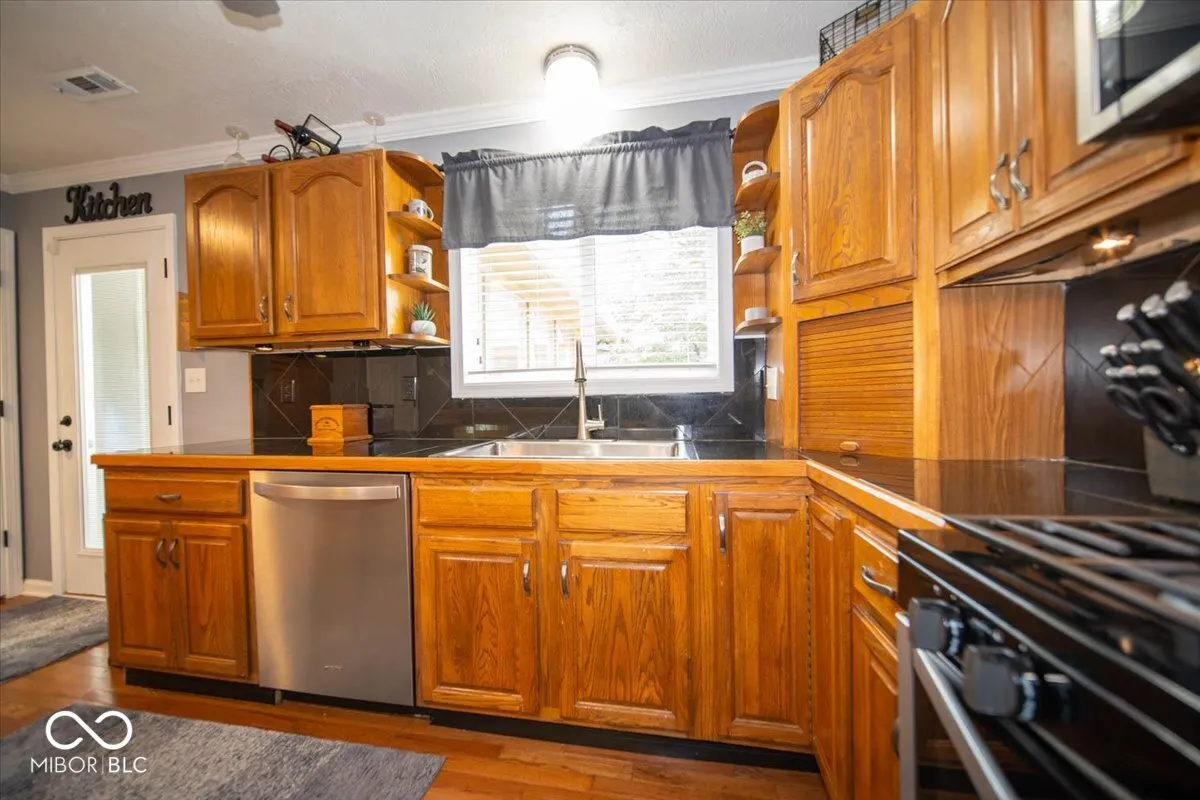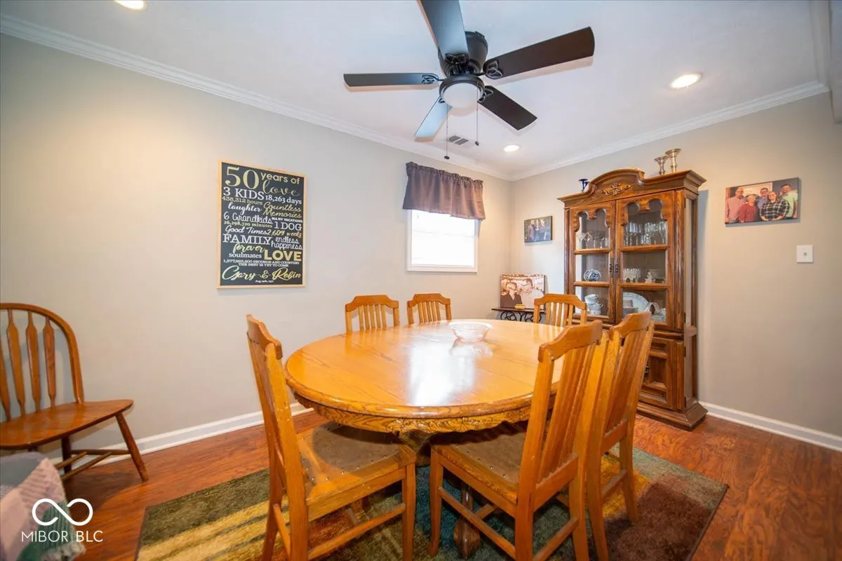 Welcome to this charming house nestled on a spacious ACRE lot in Center Grove! A welcoming, covered front porch will greet you as you approach. Step through the doorway to discover an interior where hardwood floors shine beneath your feet. The heart of this home is undoubtedly its kitchen, equipped with a center island perfect for breakfast chats, oak cabinets providing ample storage, and stainless steel appliances that will delight the family chef. The kitchen gracefully opens out to a light-filled living room, defined by crown molding and a layout that encourages relaxation and togetherness. Upstairs, you’ll find the primary bedroom and two additional bedrooms, along with an updated shared bathroom featuring a tub/shower combo. The lower level houses a convenient laundry room with ample storage, a half bath, and a cozy family room with an adjoining dining area – ideal for family gatherings or movie nights. For those who love outdoor living, this home doesn’t disappoint. A beautiful screened-in porch and a two-tiered wood deck provide the perfect setting for alfresco dining or stargazing. The nicely landscaped yard, adorned with mature trees, offers plenty of space for gardening enthusiasts or backyard games. Storage is a breeze with the mini barn and finished two-car garage. This long-time owner has meticulously maintained this property, even treating it to fresh paint, white trim, and black hinges. With a newer HVAC system, you’ll be comfortable all year round! Don’t miss out on this gem – it’s not just a house; it’s a home waiting for your personal touch!