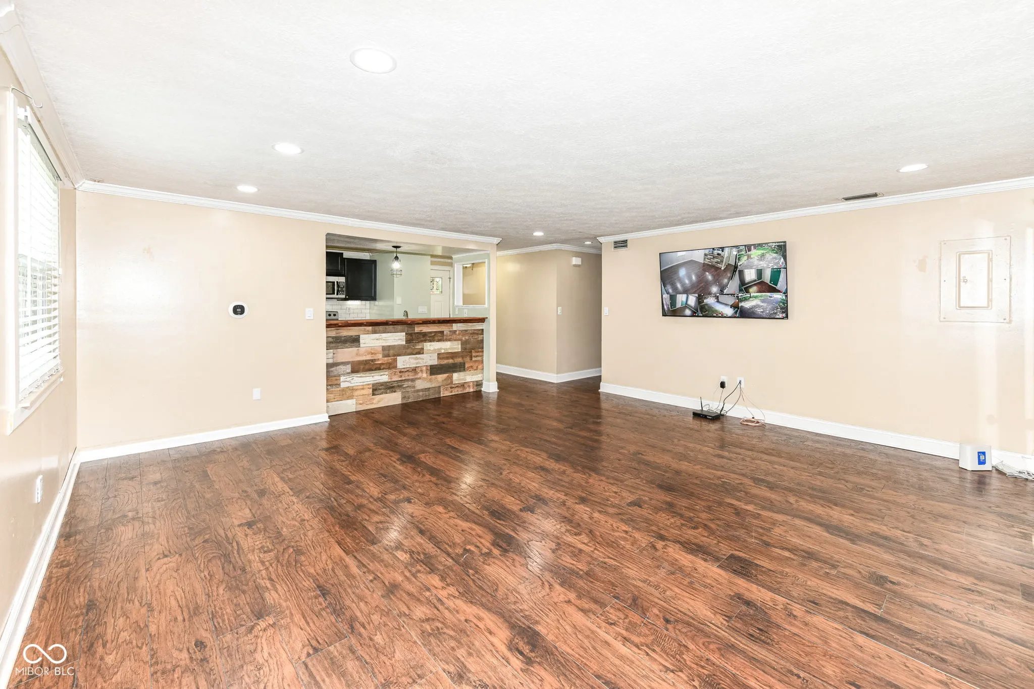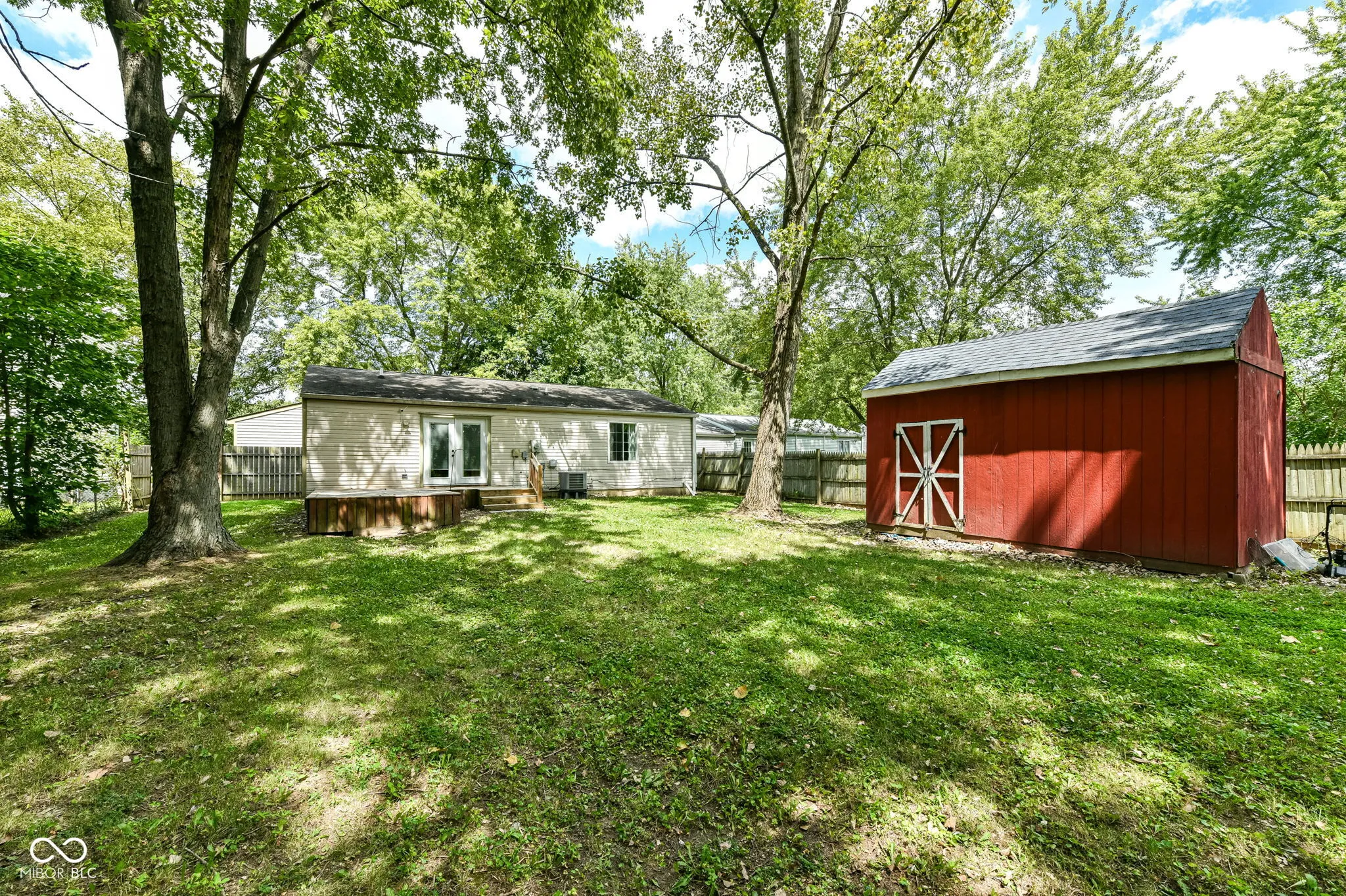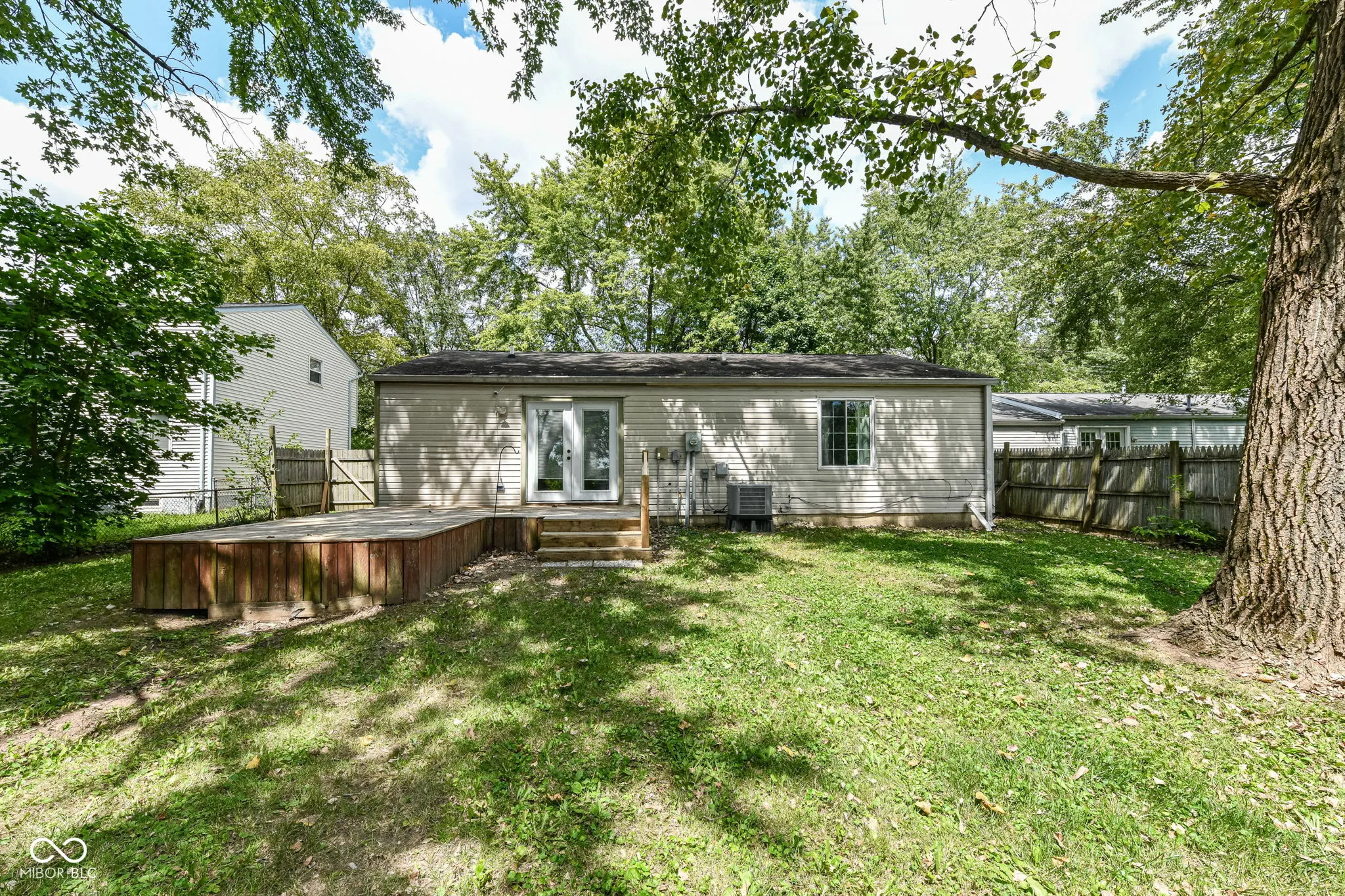 Welcome home to this completely updated ranch home. An open floor plan boasts beautiful dark wood laminate flooring throughout with a convenient peek-a-boo opening from the kitchen to the great room. The expansive great room is the perfect spot for entertaining with built in surround sound, dimmable recessed theatre lighting and mounted 65″ Vizio Smart TV. The home has a huge fenced in back yard with mature trees, perfect for entertaining or relaxing on the large wood deck. This home boasts a smart thermostat, smart front door deadbolt and a home security camera system that can be viewed on the living room TV or your phone! The bathroom has been recently updated and includes new subway tile in the shower. The kitchen has also been updated with Corian counter tops and all appliances are included.
