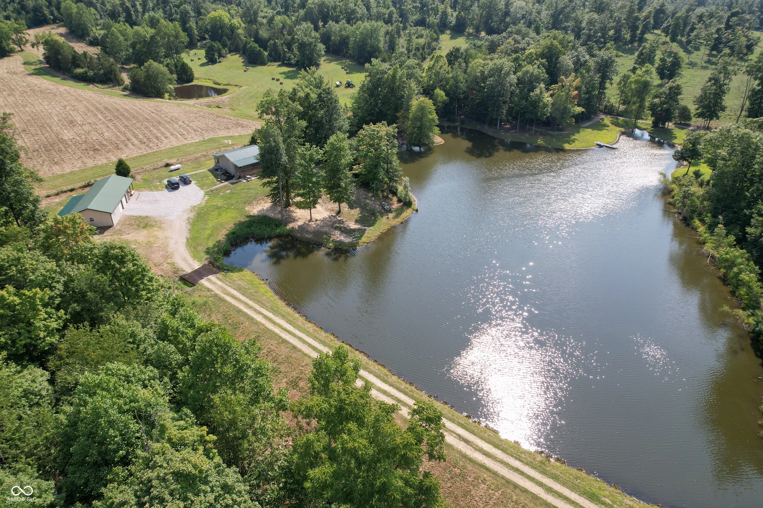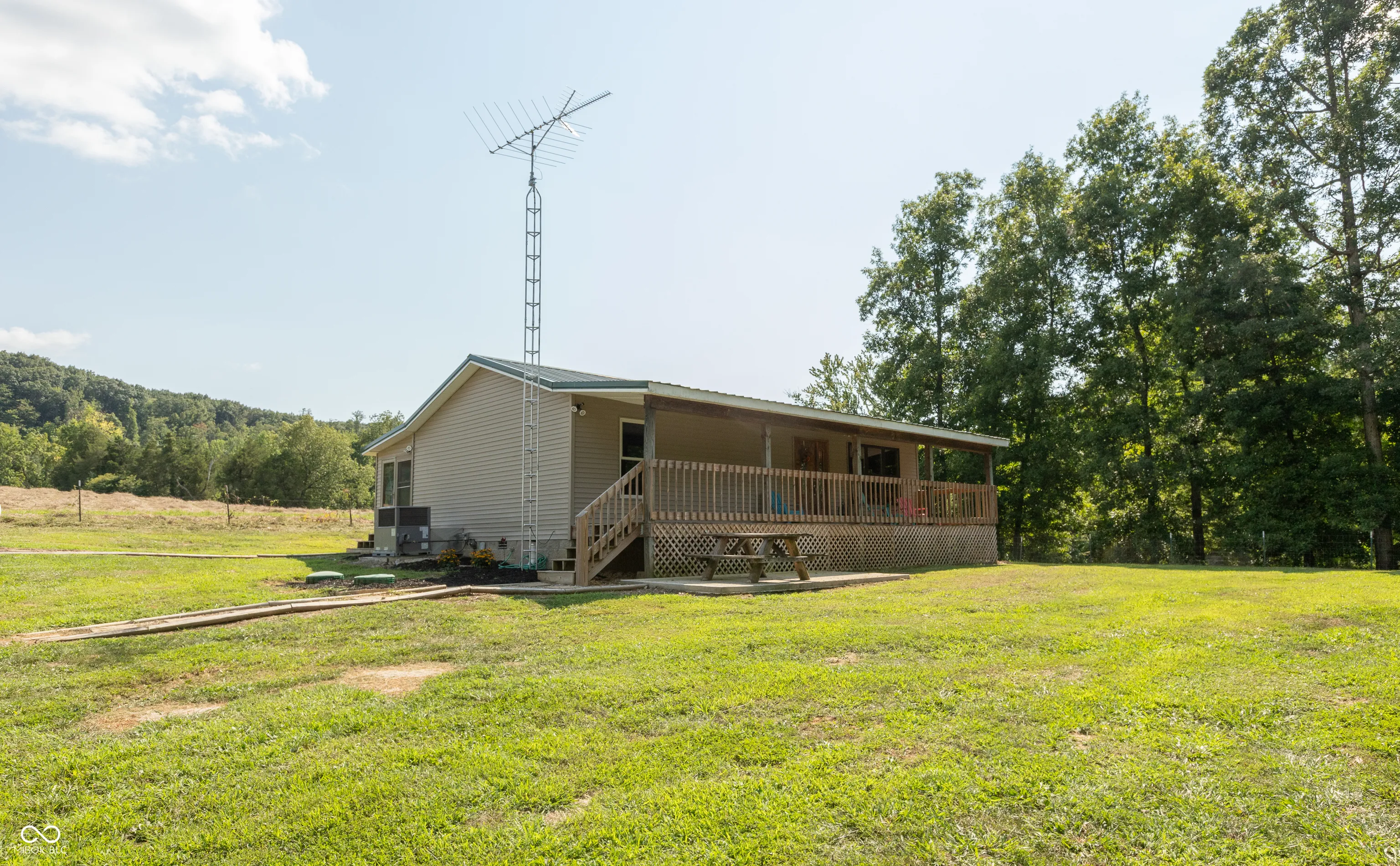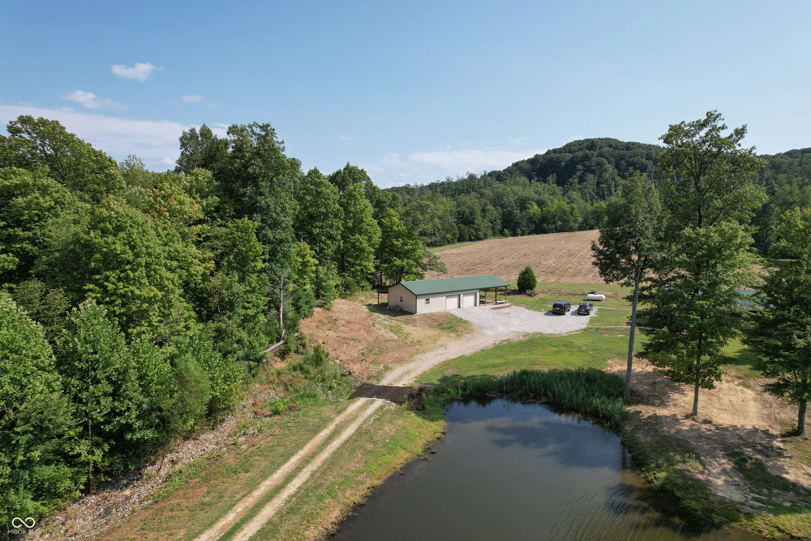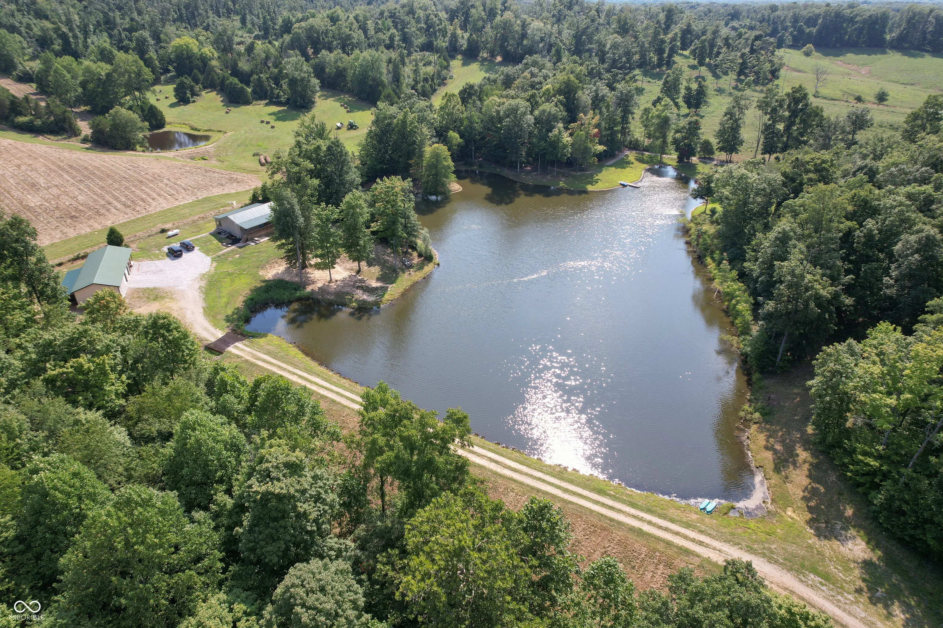 A wooded lane leads to this private setting nestled in the hills of Jackson County featuring a 2 BR home overlooking a shared 2-acre lake; living room; kitchen w/oak cabinets & breakfast area; Andersen thermopane windows; LP gas forced air heat; central air conditioning; 24×40 detached garage featuring 2 overhead doors & large workshop area plus attached covered area & covered lean-to; 8×40 covered front porch overlooks the lake & an 8×40 glass-enclosed rear porch overlooks the surrounding countryside including a view of Pinnacle Peak; Brownstown school district.