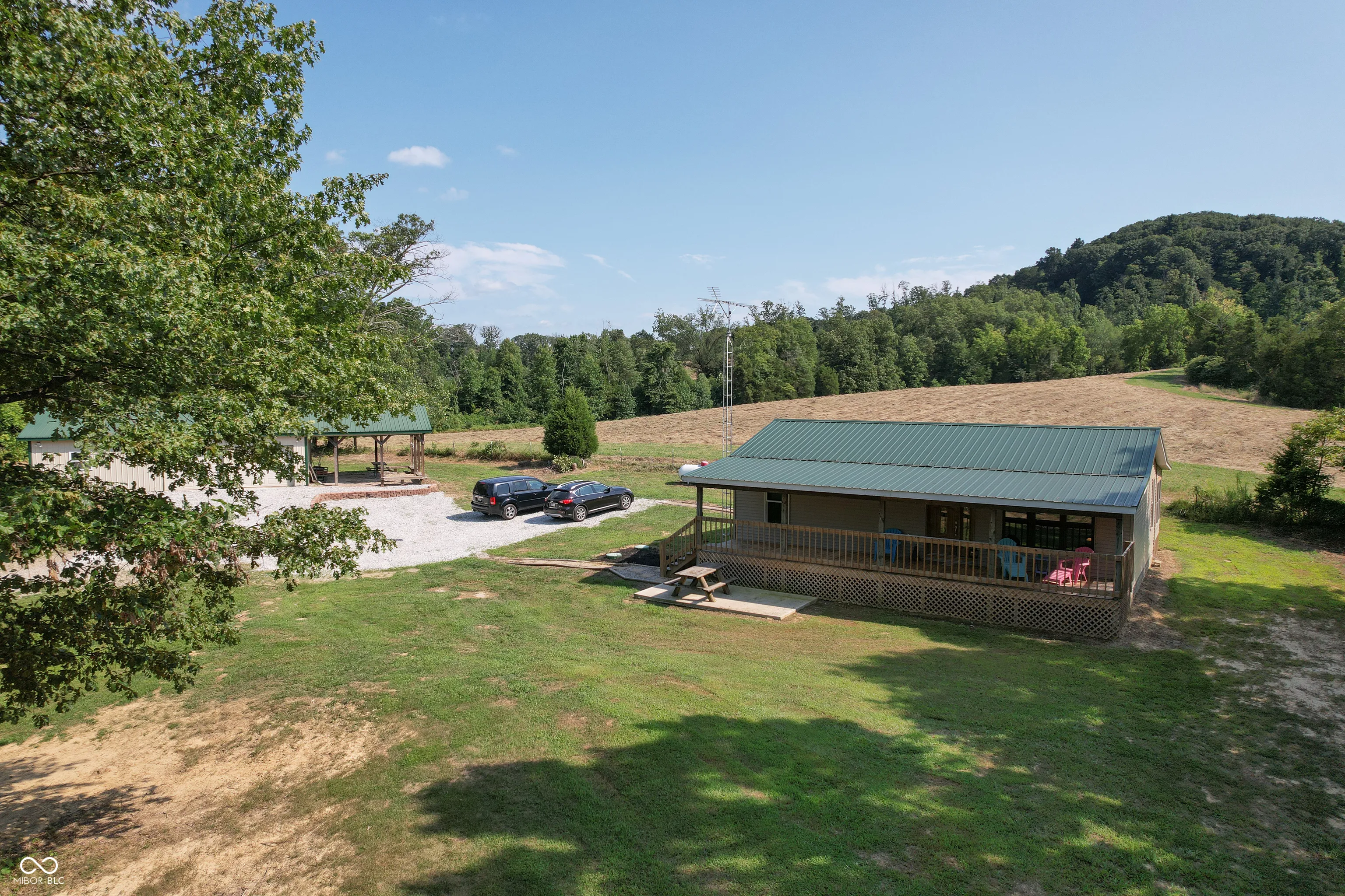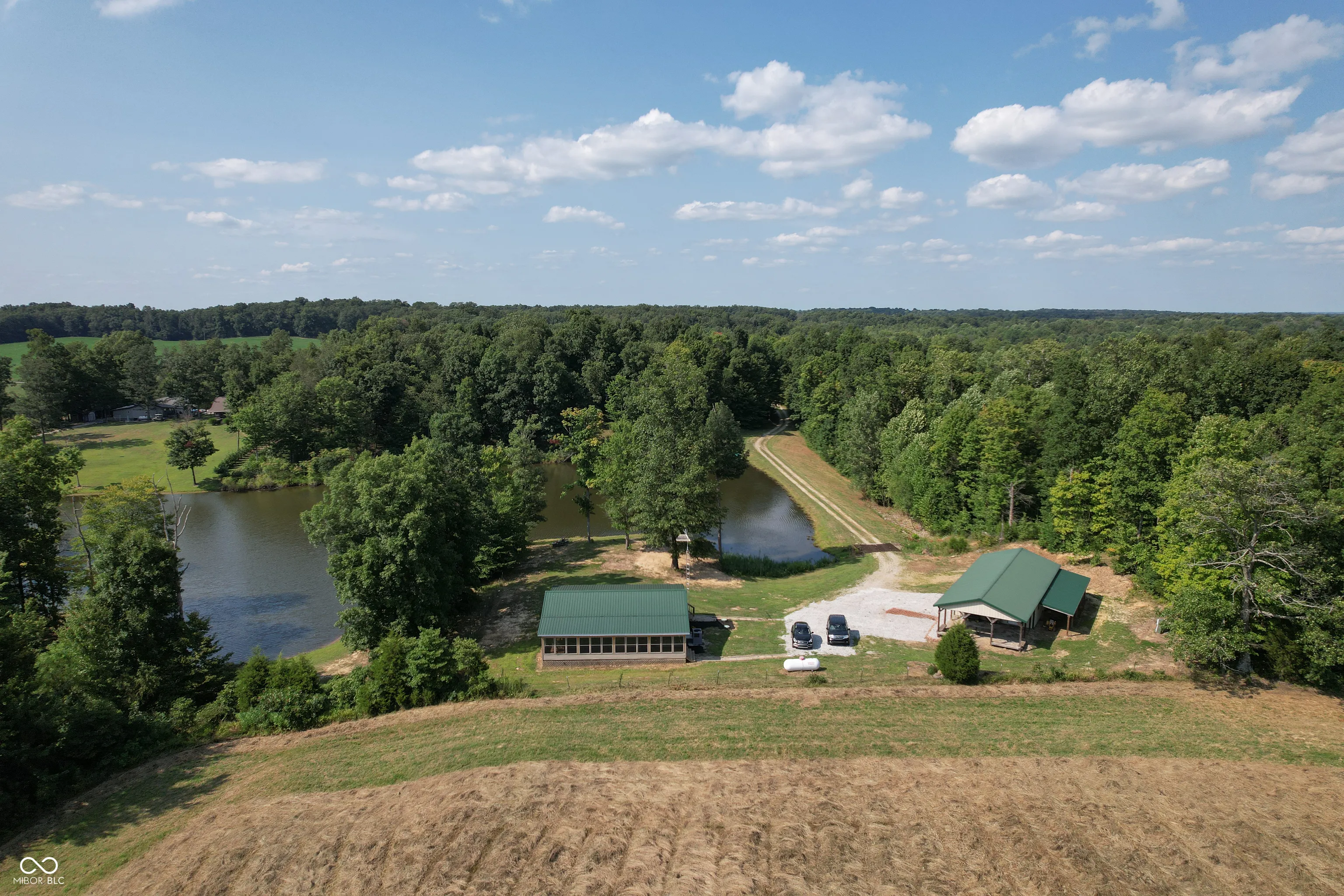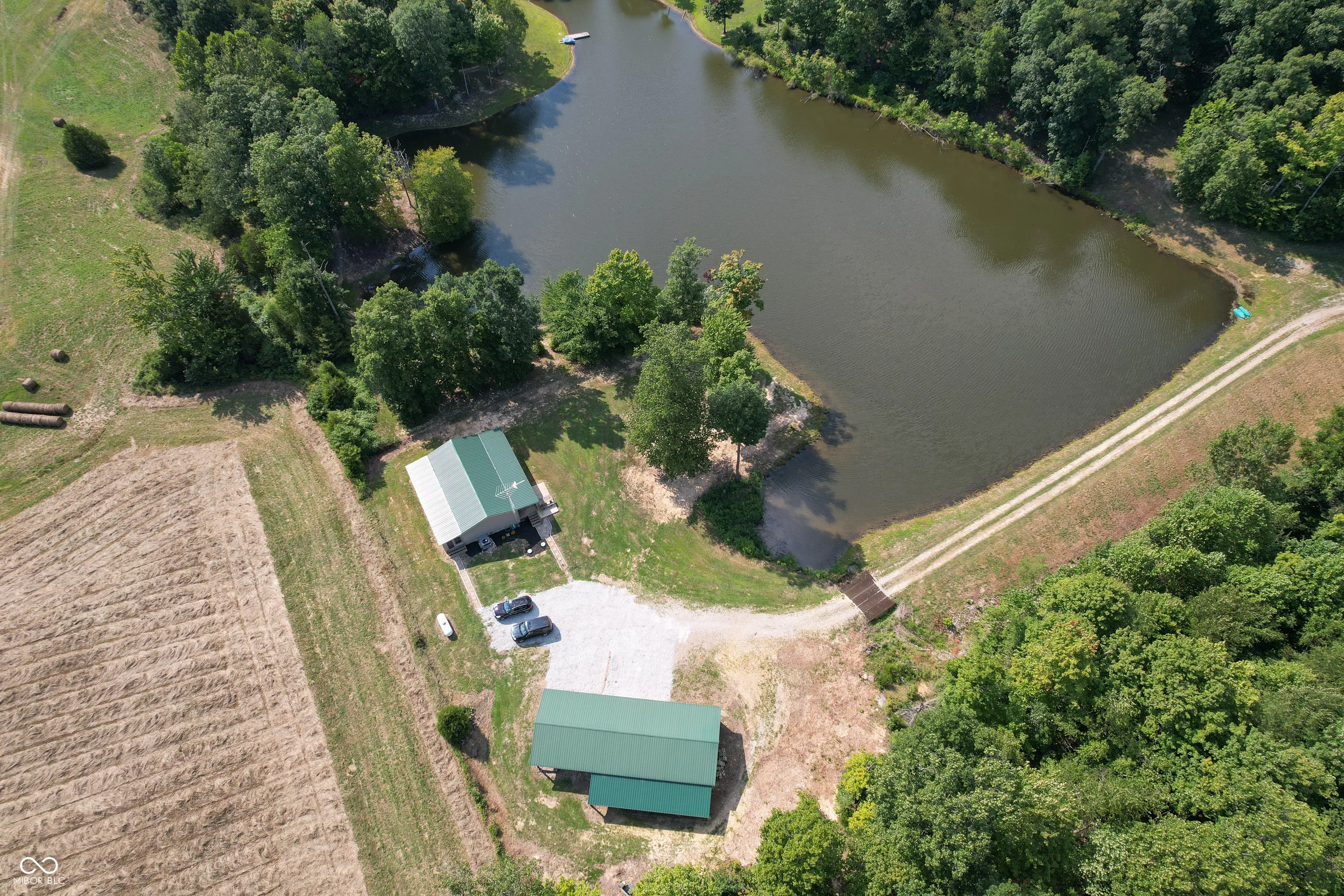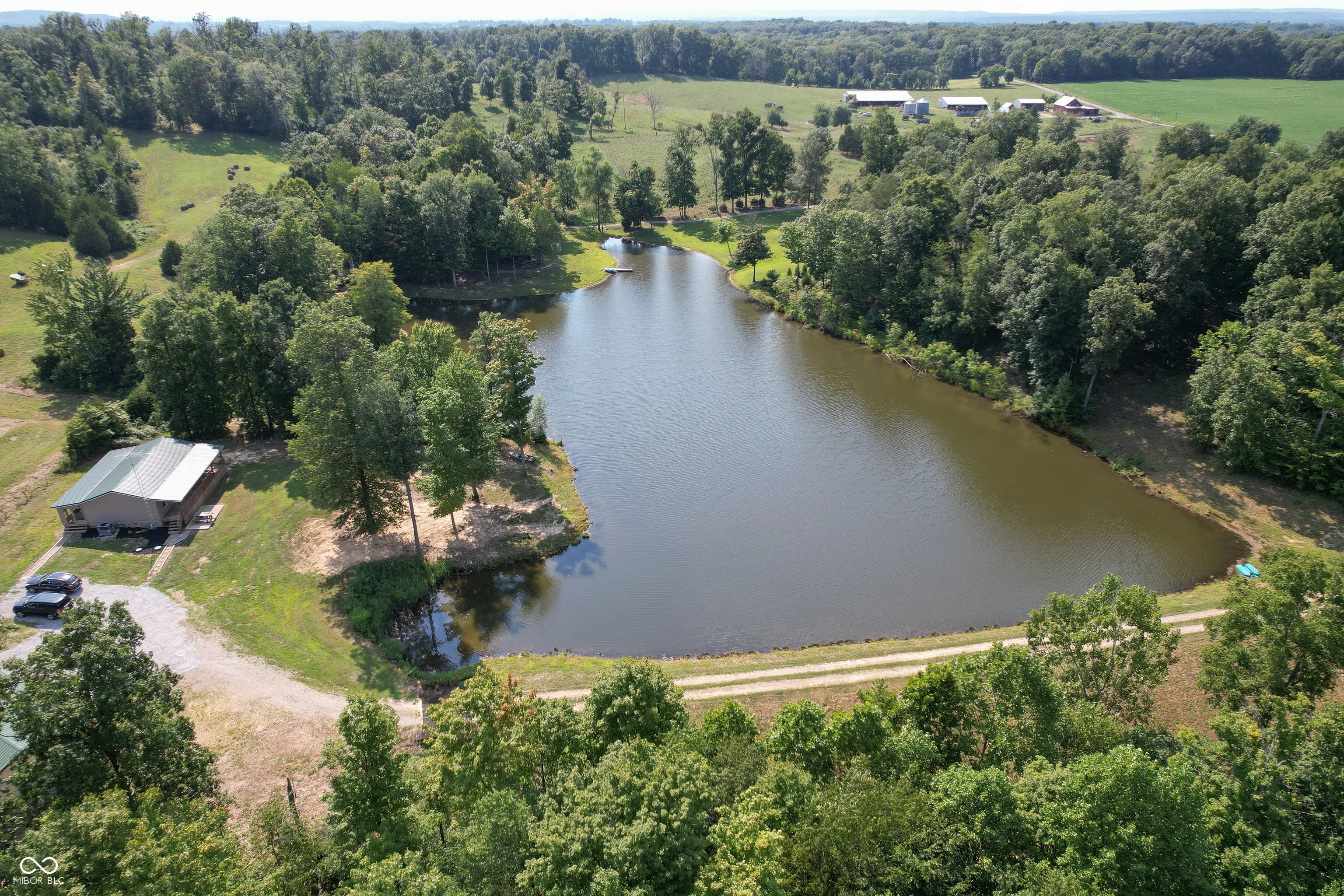 A wooded lane leads to this private setting nestled in the hills of Jackson County featuring a 2 BR home overlooking a shared 2-acre lake; living room; kitchen w/oak cabinets & breakfast area; Andersen thermopane windows; LP gas forced air heat; central air conditioning; 24×40 detached garage featuring 2 overhead doors & large workshop area plus attached covered area & covered lean-to; 8×40 covered front porch overlooks the lake & an 8×40 glass-enclosed rear porch overlooks the surrounding countryside including a view of Pinnacle Peak; Brownstown school district.