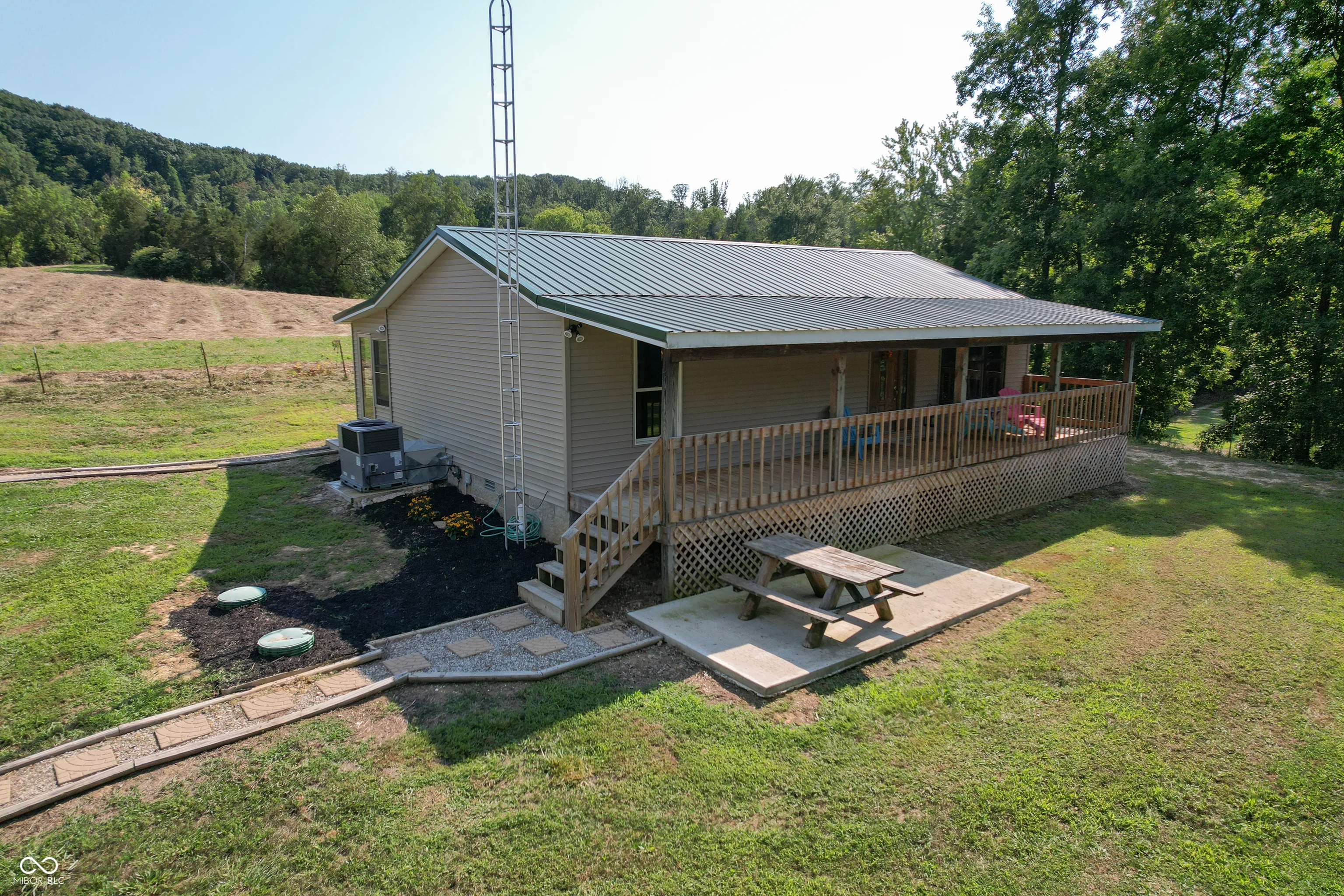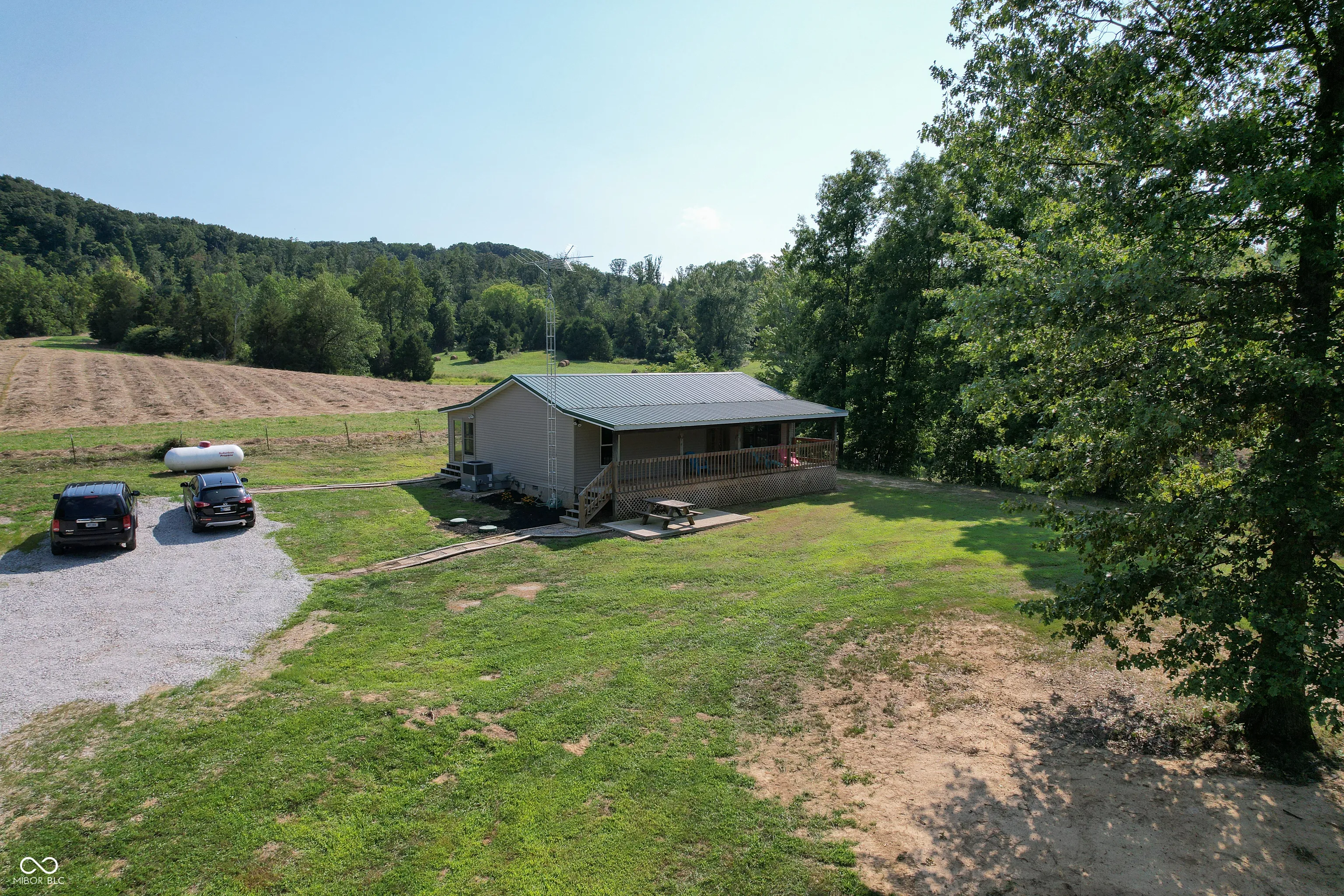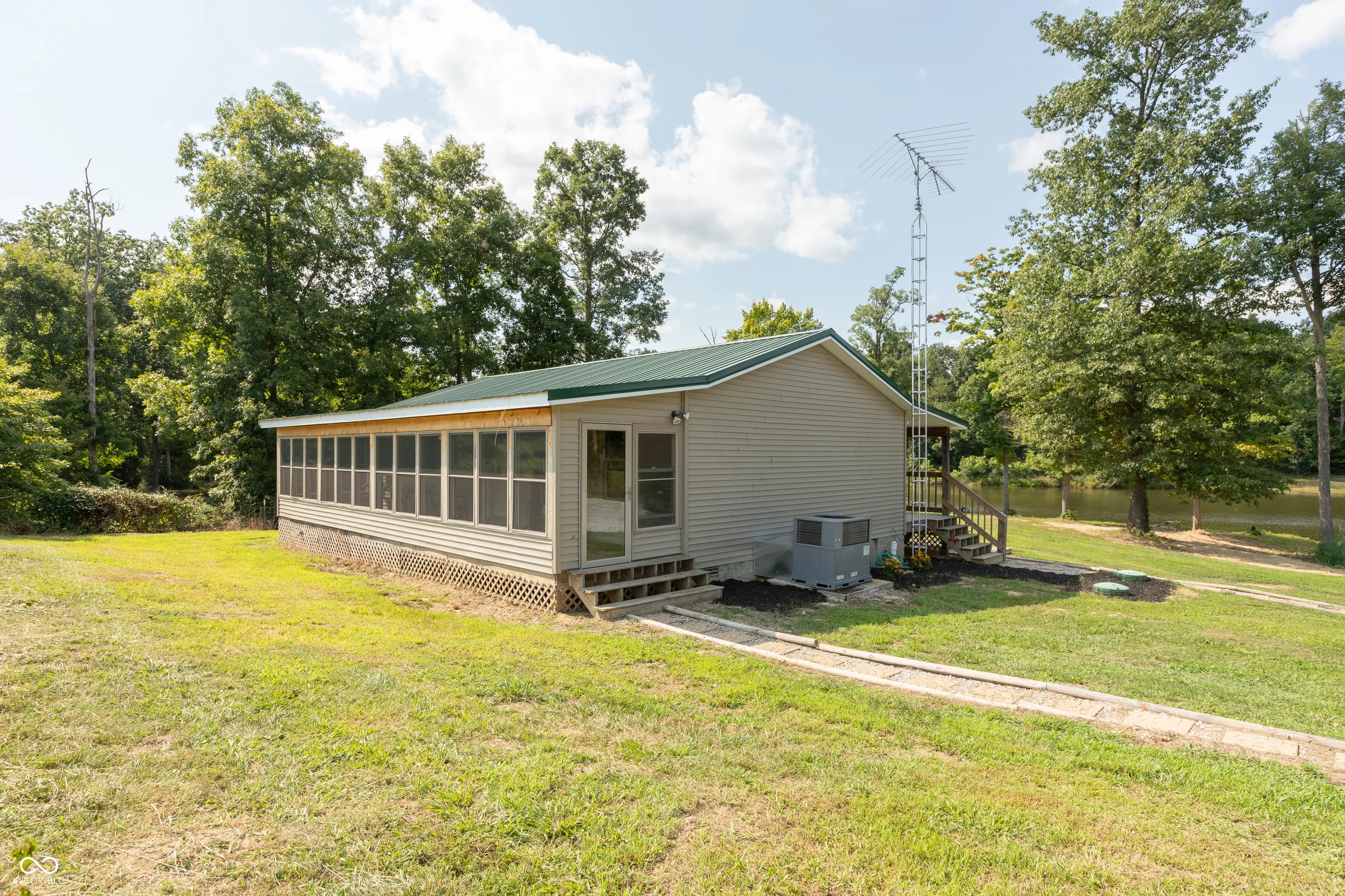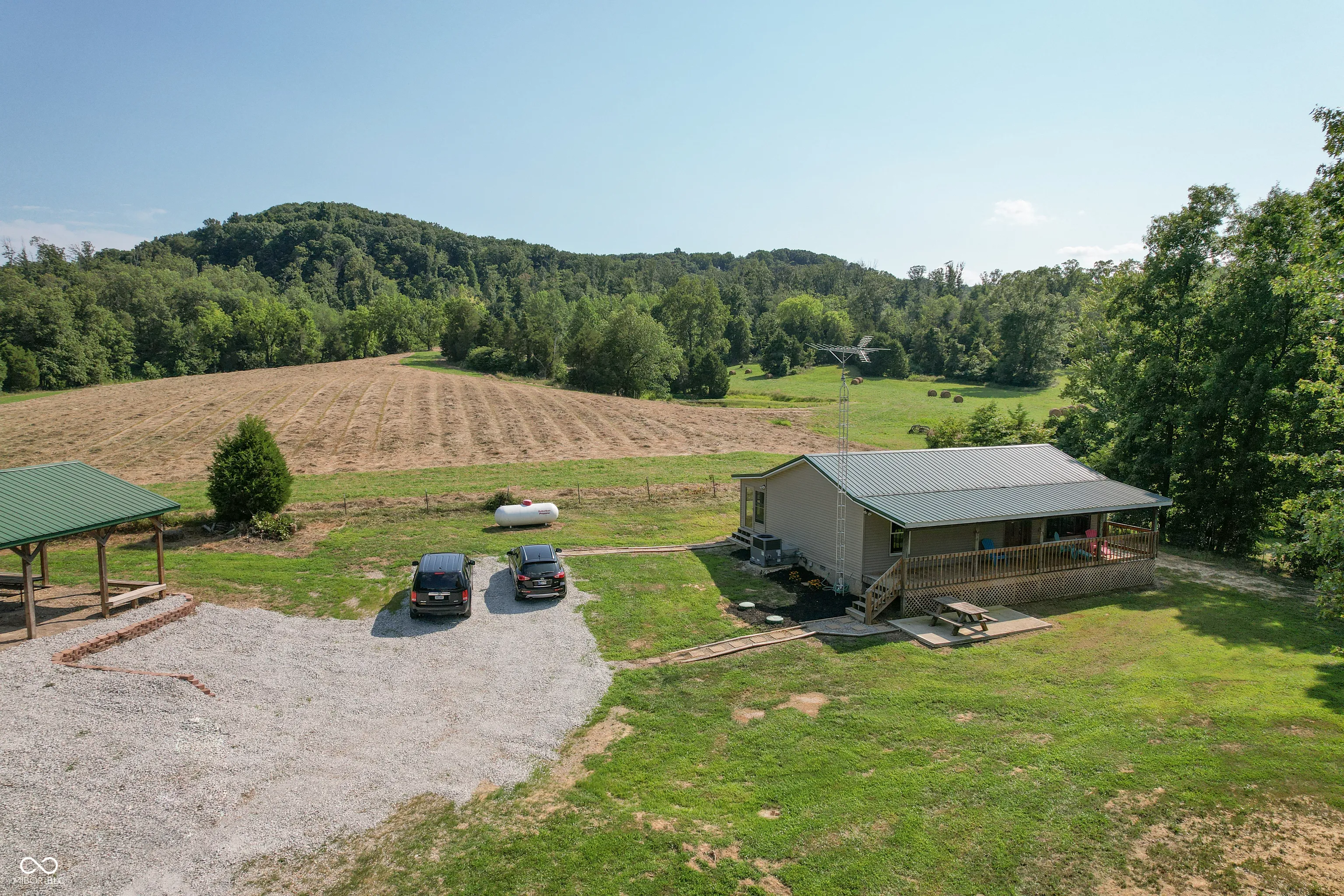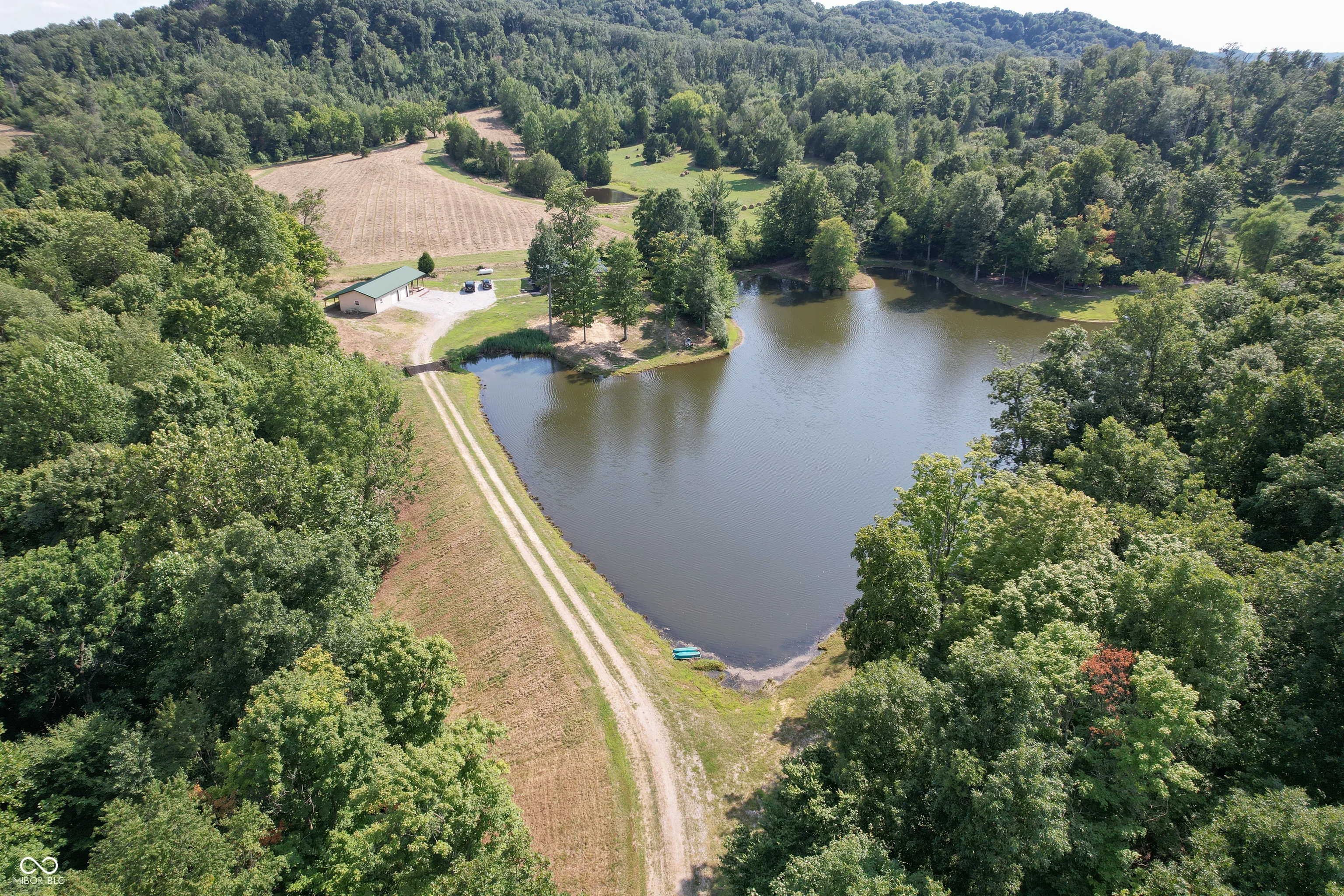 A wooded lane leads to this private setting nestled in the hills of Jackson County featuring a 2 BR home overlooking a shared 2-acre lake; living room; kitchen w/oak cabinets & breakfast area; Andersen thermopane windows; LP gas forced air heat; central air conditioning; 24×40 detached garage featuring 2 overhead doors & large workshop area plus attached covered area & covered lean-to; 8×40 covered front porch overlooks the lake & an 8×40 glass-enclosed rear porch overlooks the surrounding countryside including a view of Pinnacle Peak; Brownstown school district.