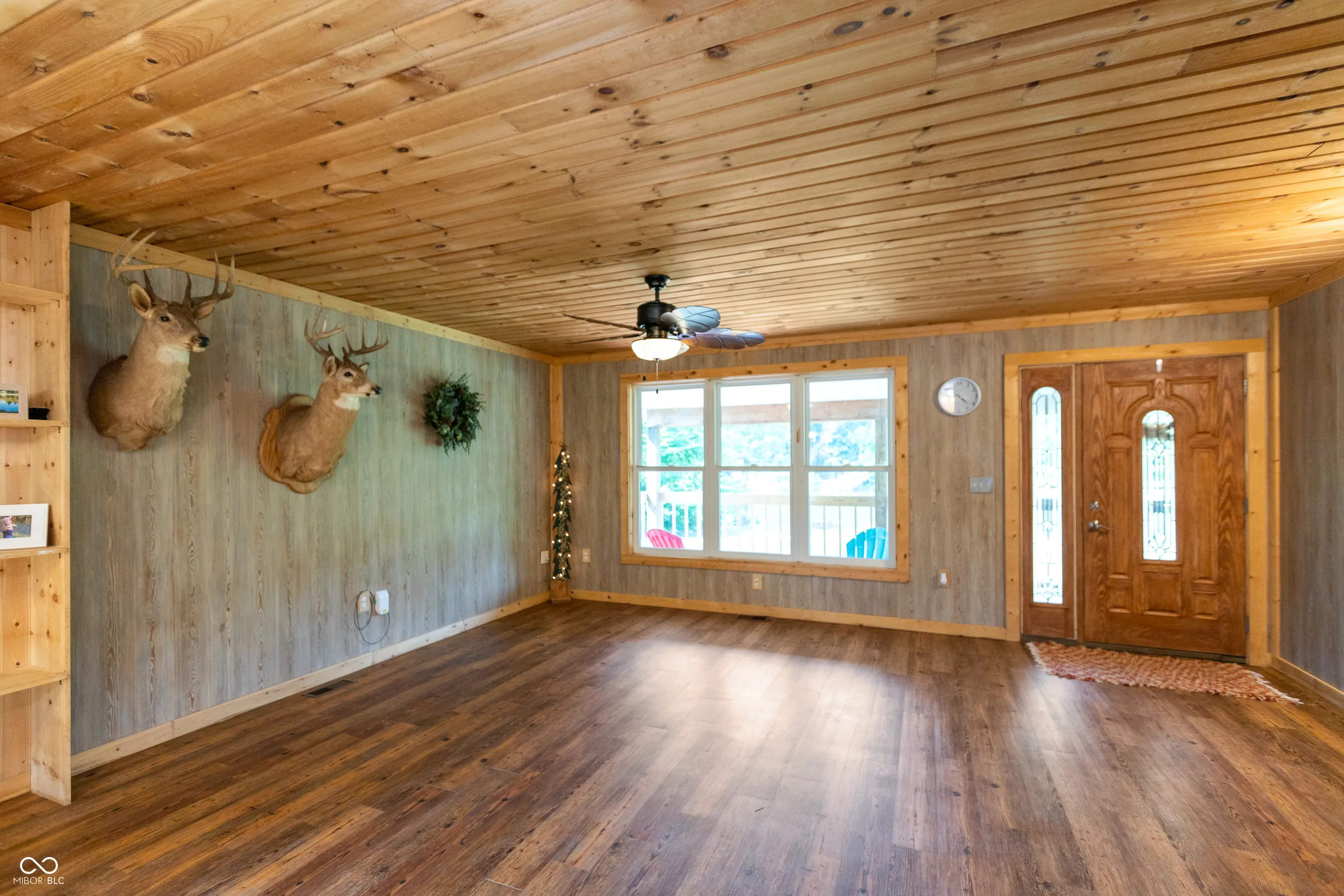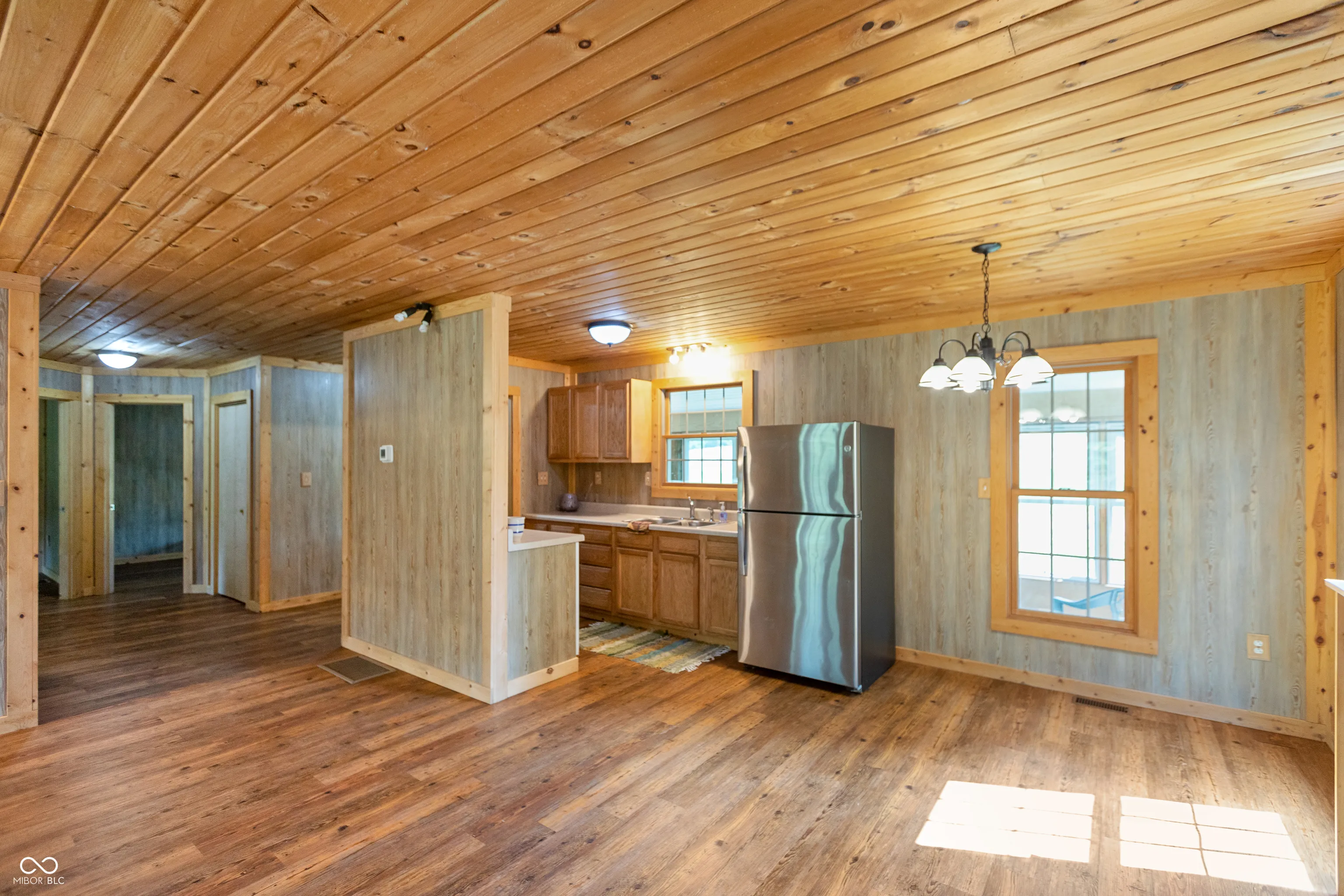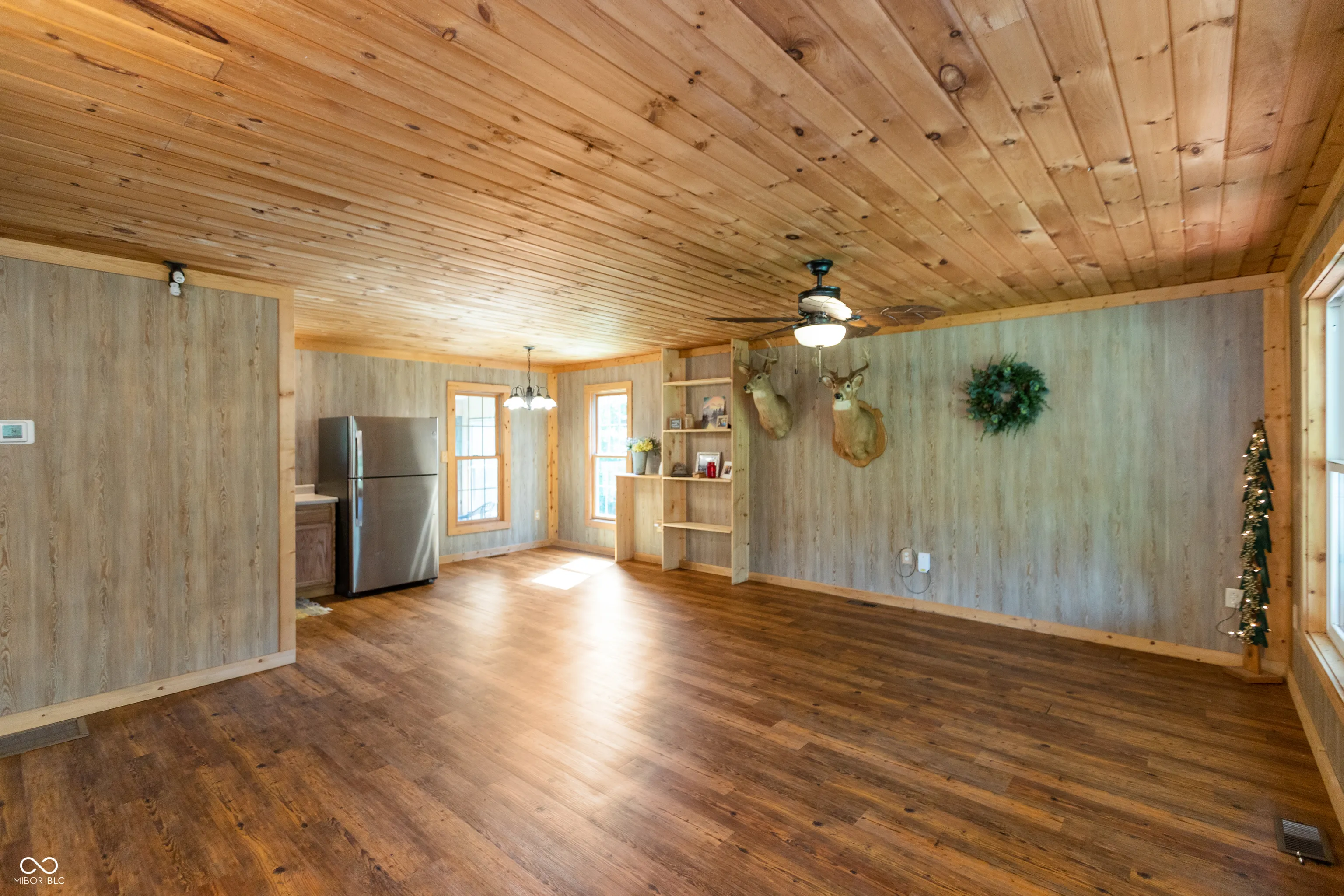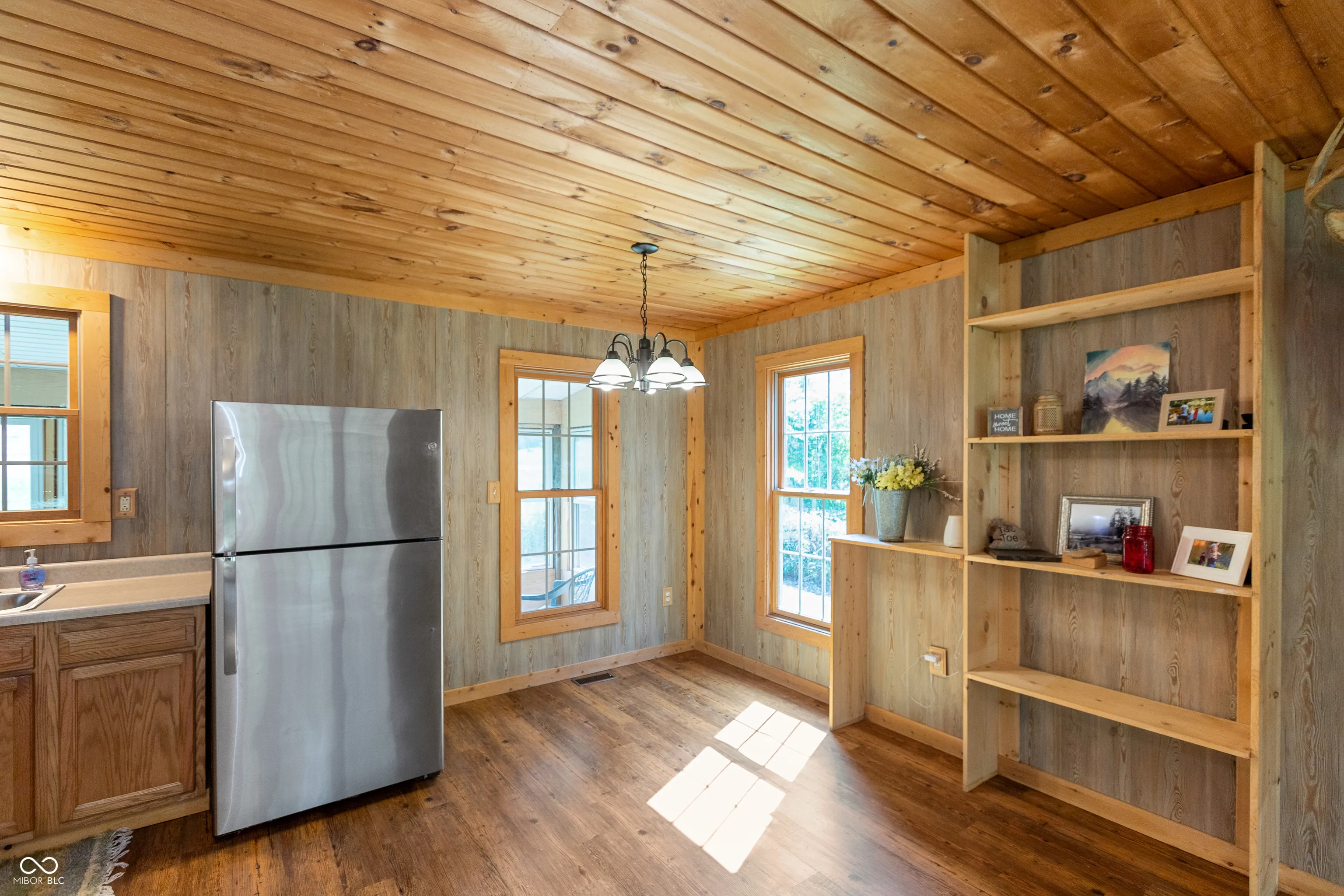 A wooded lane leads to this private setting nestled in the hills of Jackson County featuring a 2 BR home overlooking a shared 2-acre lake; living room; kitchen w/oak cabinets & breakfast area; Andersen thermopane windows; LP gas forced air heat; central air conditioning; 24×40 detached garage featuring 2 overhead doors & large workshop area plus attached covered area & covered lean-to; 8×40 covered front porch overlooks the lake & an 8×40 glass-enclosed rear porch overlooks the surrounding countryside including a view of Pinnacle Peak; Brownstown school district.
