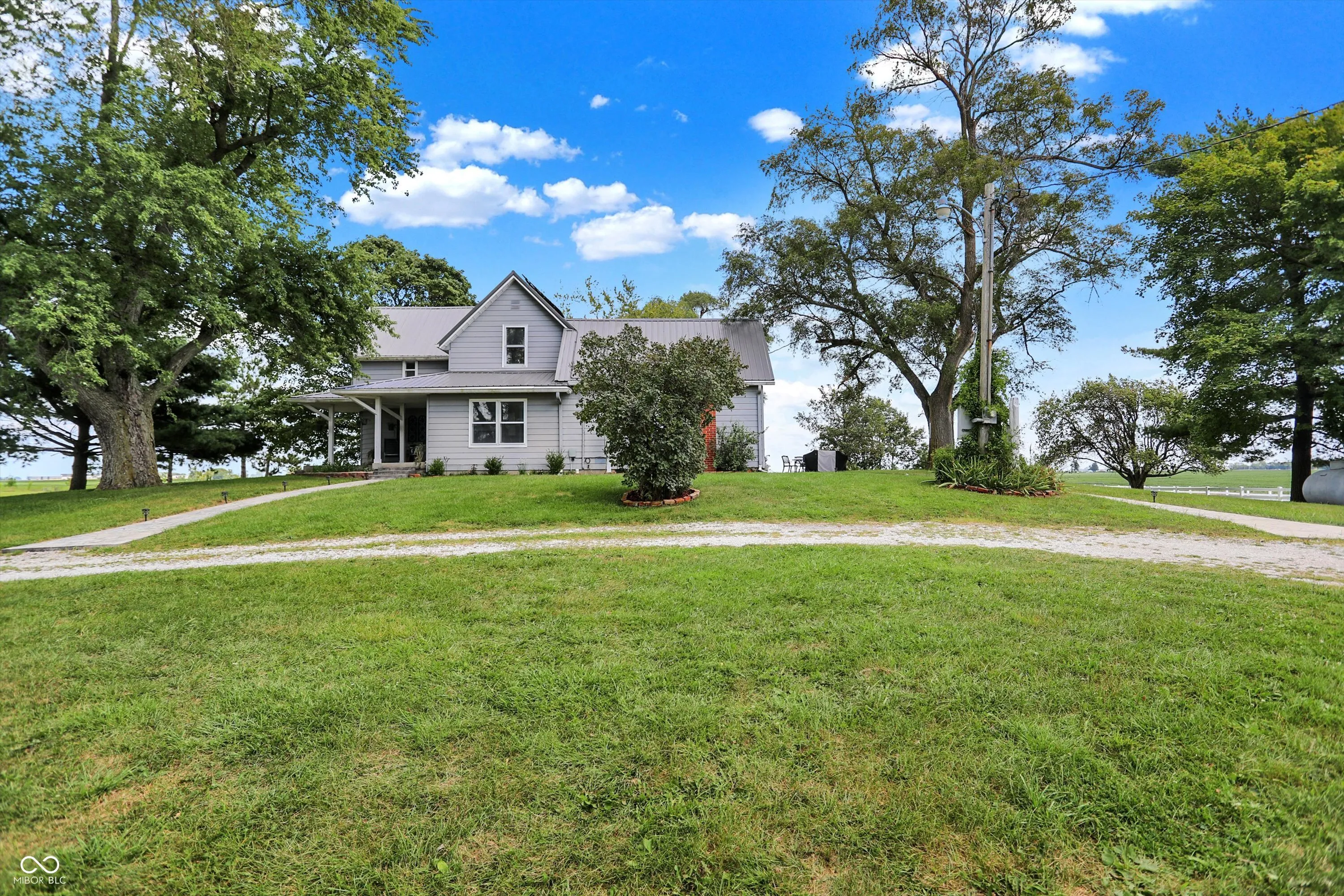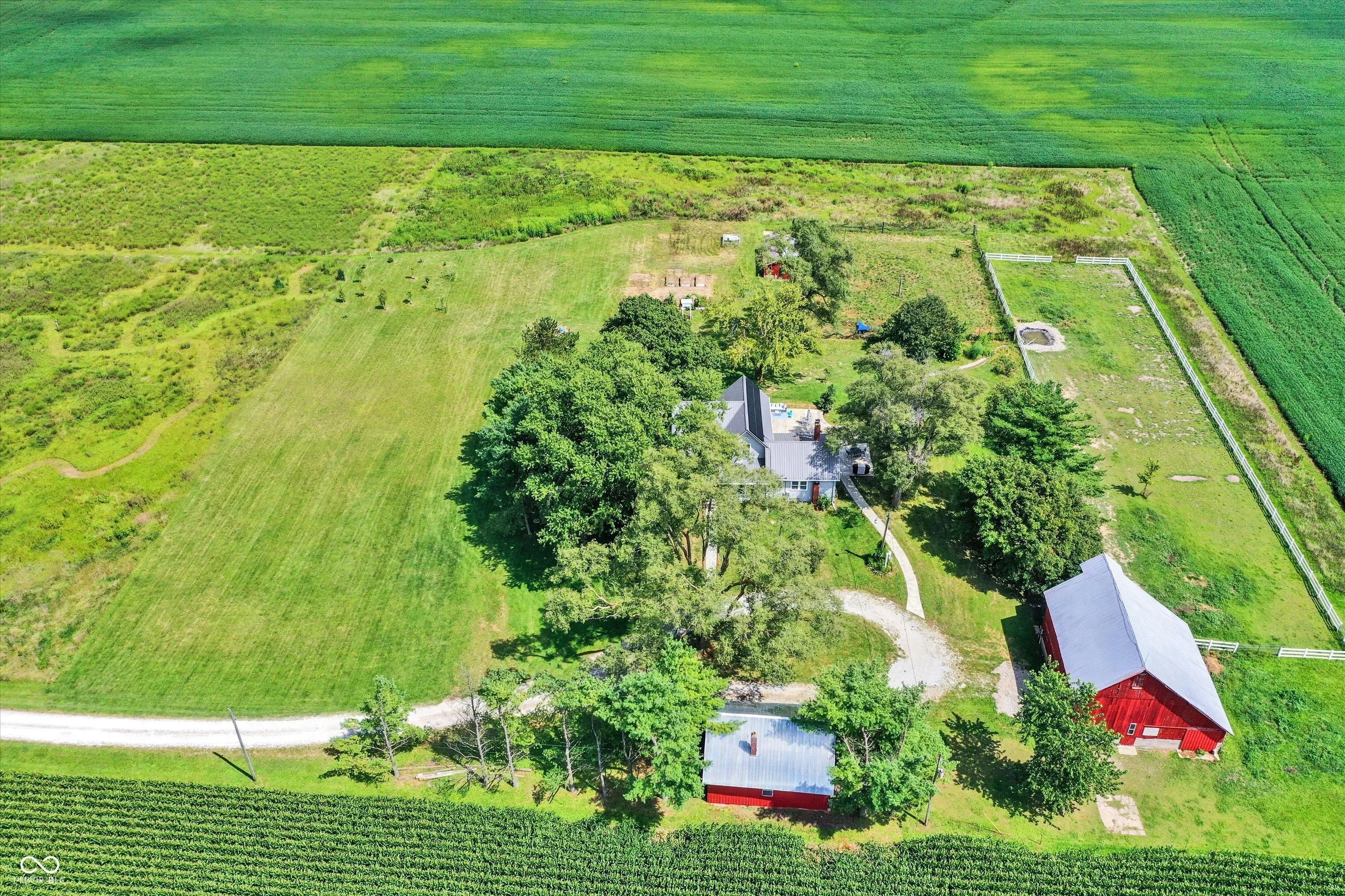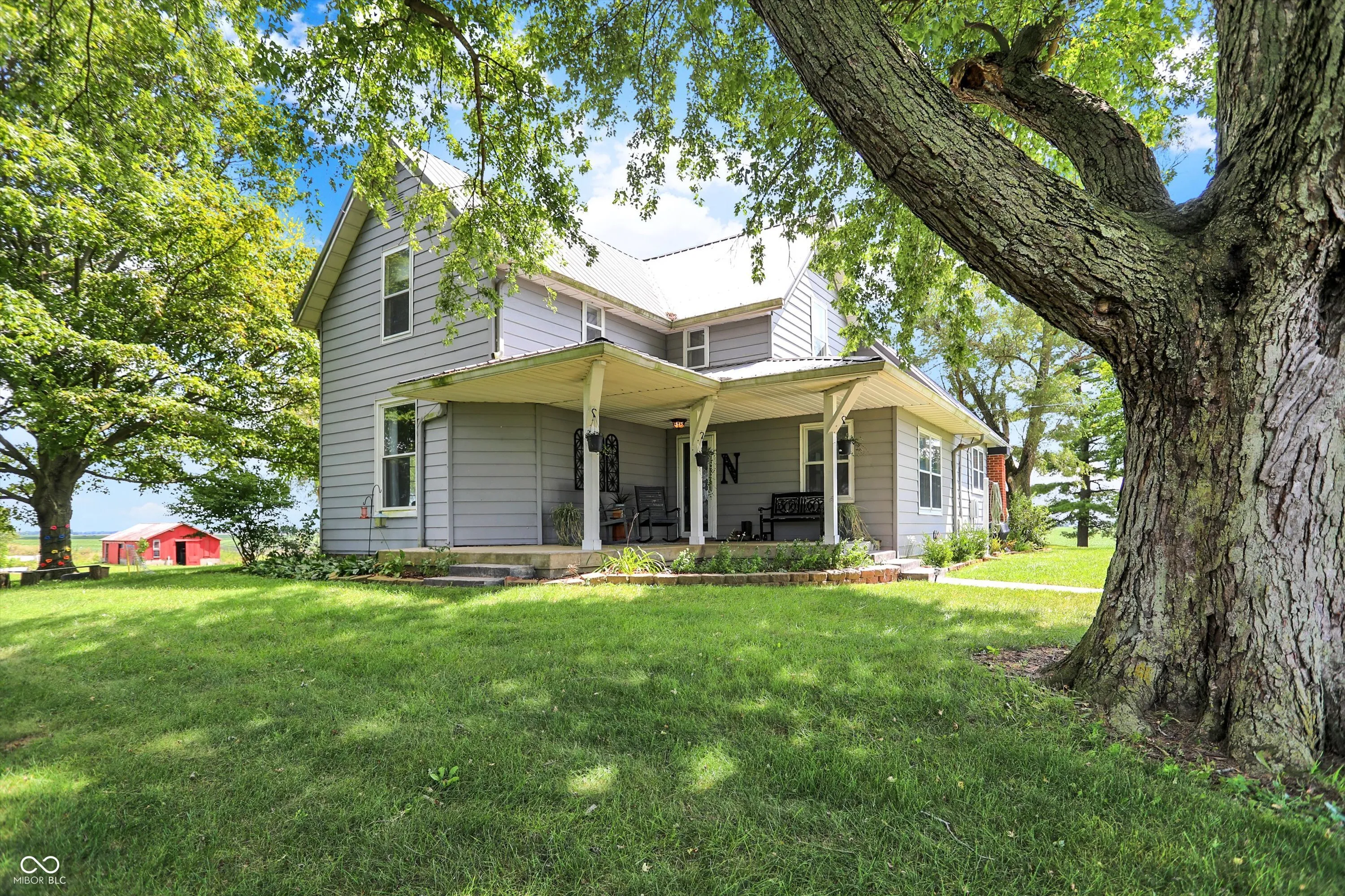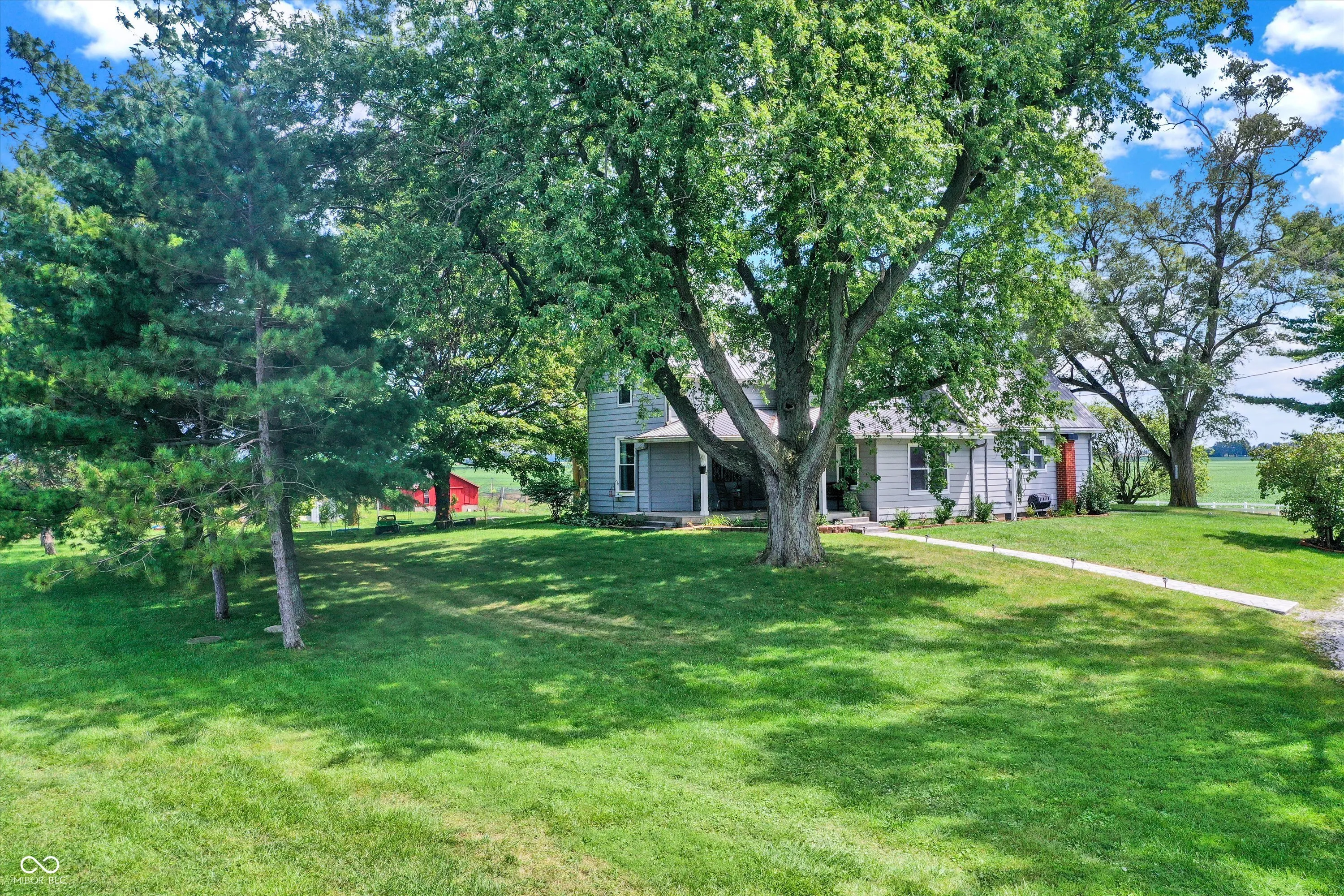 Gorgeous turn-of-the-century farmhouse nestled on a sprawling 10-acres in Tipton complete with a budding wildlife area, walking trails, fruit-bearing trees, livestock barn, aviary, and so much more. This is the perfect opportunity for those looking to embrace a sustainable lifestyle, intrigued by homesteading, or simply looking for their little slice of country paradise. Free from future development, the property offers its new owners the perfect blended lifestyle with the ability to enjoy nature and your own property while being in close proximity to restaurants, the arts, and modern comforts. A minute from US 31 and a short drive from Westfield, Morse Reservoir, and downtown Carmel, this home has the best of all worlds. As you step inside, you’ll be greeted by the warmth of original hardwood floors, tall ceilings, and the charm of a 100+ year old home combined with modern conveniences. Large living space offers new flooring, remodeled study, abundant natural light, shiplap, original doors, custom cabinetry, and archway leading from the spacious updated kitchen w/ granite & stainless appliances into the dining room w/ a cozy brick fireplace, all adding to the historic and rustic charm. Main floor Primary w/ scenic views and a full Bath. Upstairs features a loft & 2 spacious bedrooms, with the potential for adding a bath upstairs. Outside, the new stamped patio overlooking the farm is ideal for gatherings and unwinding. A creek feature meanders from the house down to the pasture, providing a serene setting and attracting local wildlife. Additional amenities include a whole-home generator, solar panels, large garage spacious enough for two cars and a tractor, EV hookup, 6 raised garden beds, and a chicken coop. Don’t miss this unique opportunity to own your country paradise with endless potential!