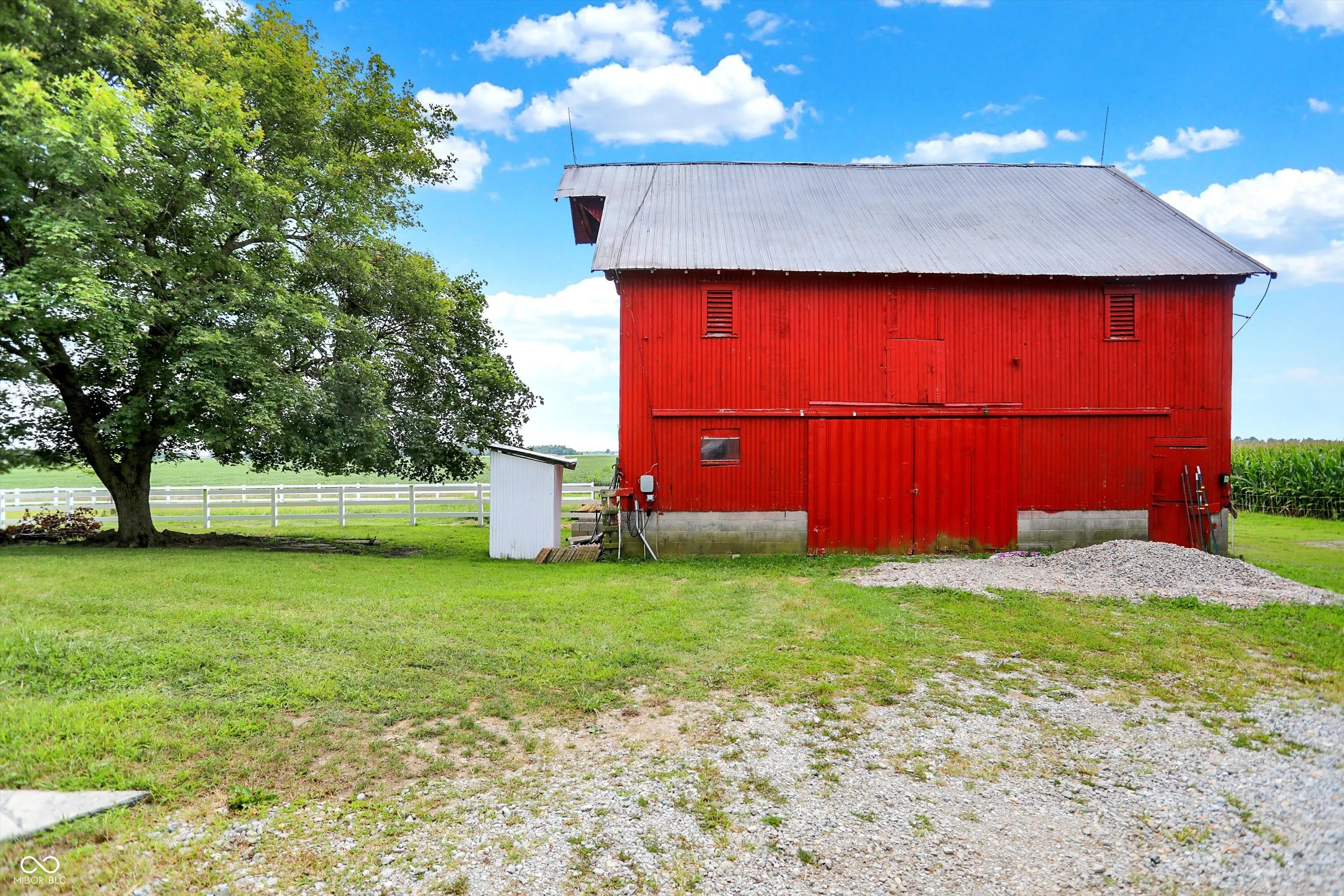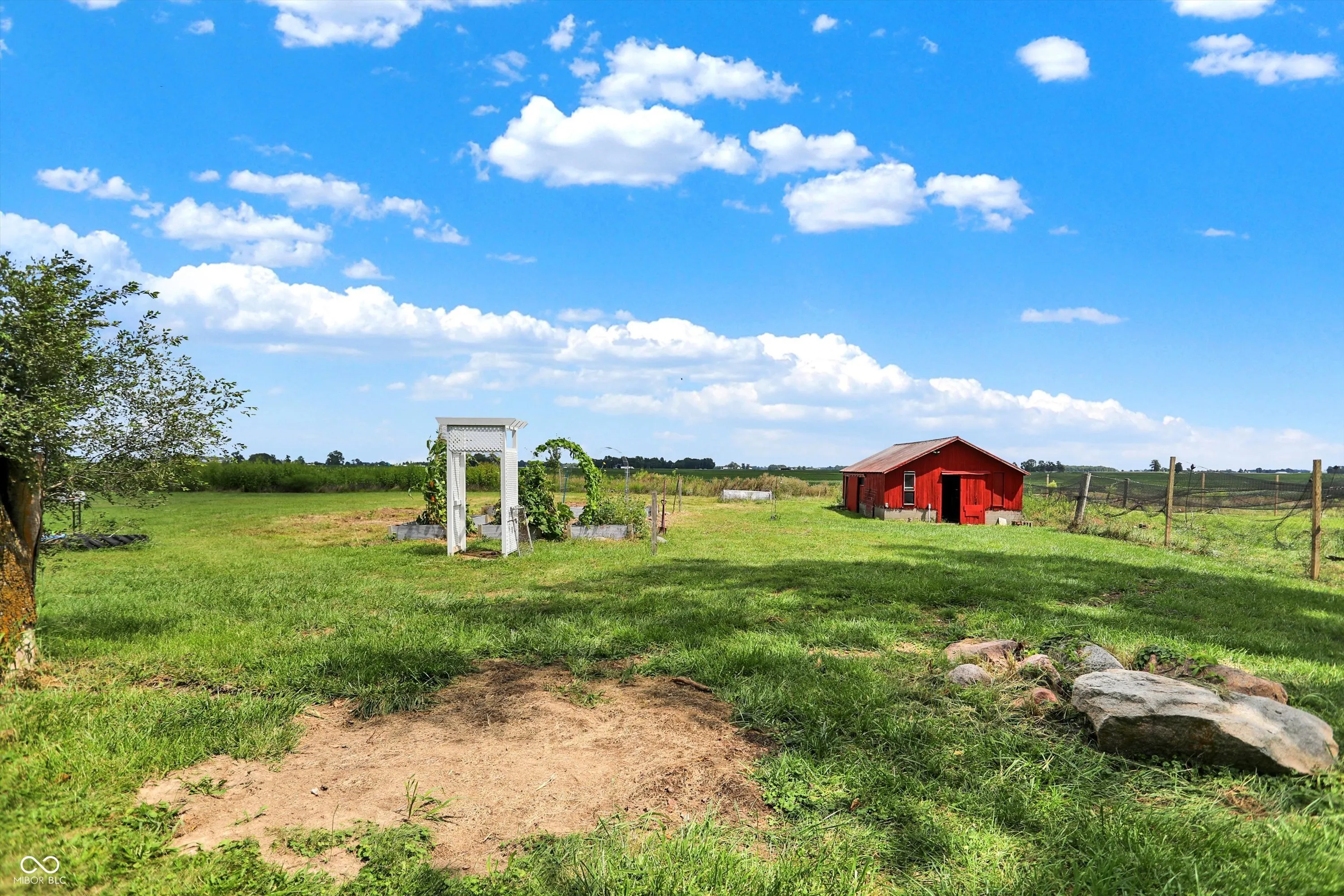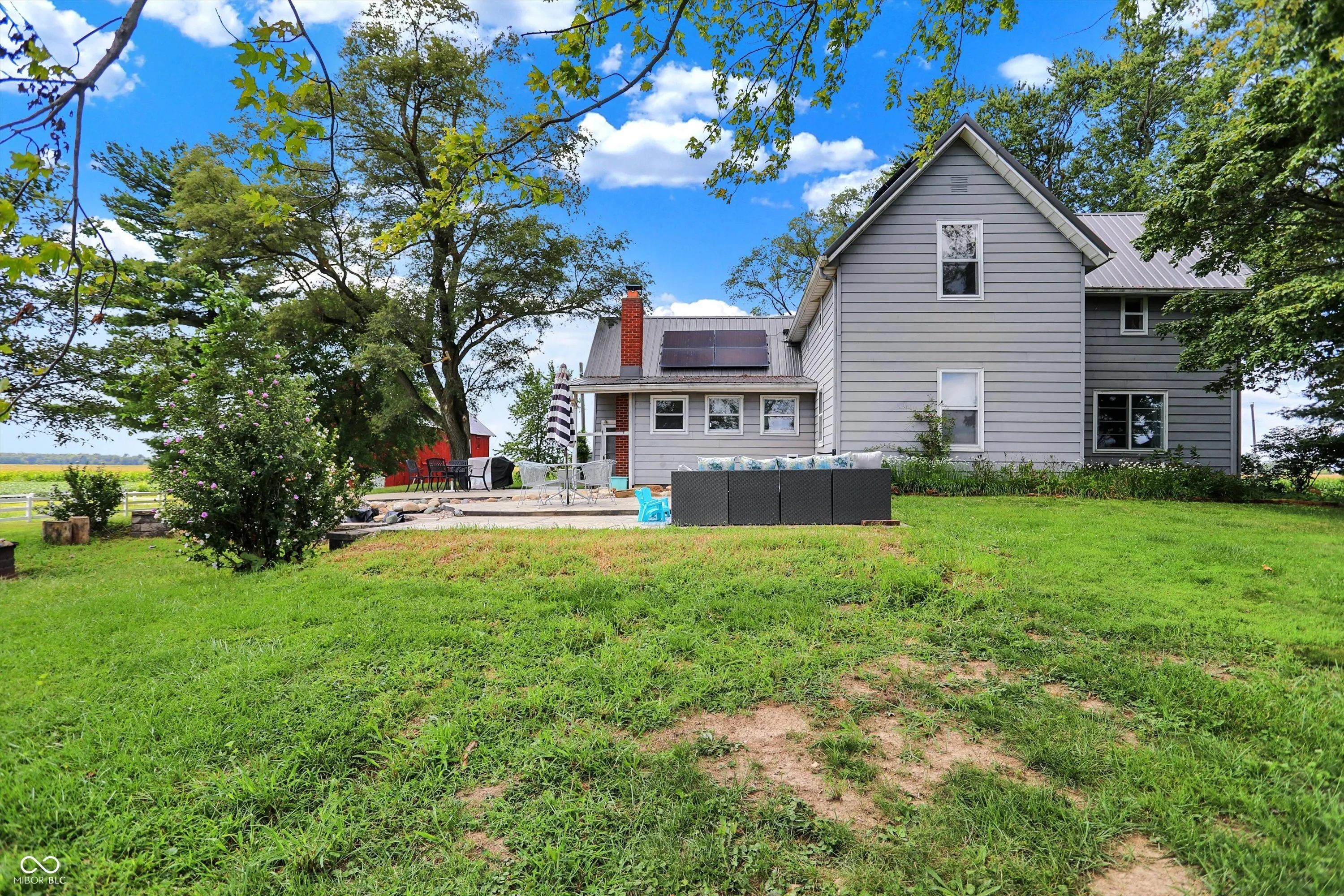 Gorgeous turn-of-the-century farmhouse nestled on a sprawling 10-acres in Tipton complete with a budding wildlife area, walking trails, fruit-bearing trees, livestock barn, aviary, and so much more. This is the perfect opportunity for those looking to embrace a sustainable lifestyle, intrigued by homesteading, or simply looking for their little slice of country paradise. Free from future development, the property offers its new owners the perfect blended lifestyle with the ability to enjoy nature and your own property while being in close proximity to restaurants, the arts, and modern comforts. A minute from US 31 and a short drive from Westfield, Morse Reservoir, and downtown Carmel, this home has the best of all worlds. As you step inside, you’ll be greeted by the warmth of original hardwood floors, tall ceilings, and the charm of a 100+ year old home combined with modern conveniences. Large living space offers new flooring, remodeled study, abundant natural light, shiplap, original doors, custom cabinetry, and archway leading from the spacious updated kitchen w/ granite & stainless appliances into the dining room w/ a cozy brick fireplace, all adding to the historic and rustic charm. Main floor Primary w/ scenic views and a full Bath. Upstairs features a loft & 2 spacious bedrooms, with the potential for adding a bath upstairs. Outside, the new stamped patio overlooking the farm is ideal for gatherings and unwinding. A creek feature meanders from the house down to the pasture, providing a serene setting and attracting local wildlife. Additional amenities include a whole-home generator, solar panels, large garage spacious enough for two cars and a tractor, EV hookup, 6 raised garden beds, and a chicken coop. Don’t miss this unique opportunity to own your country paradise with endless potential!