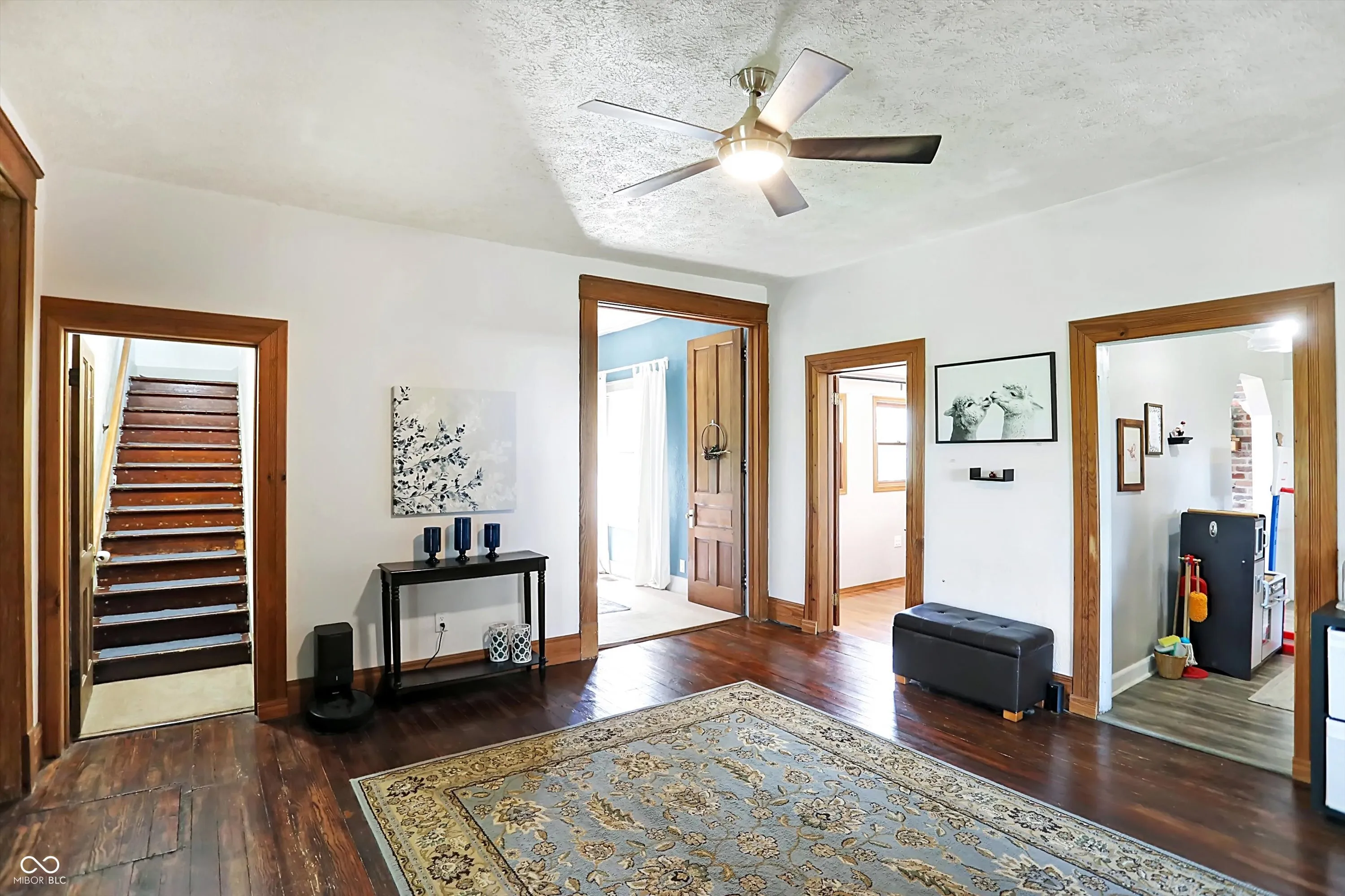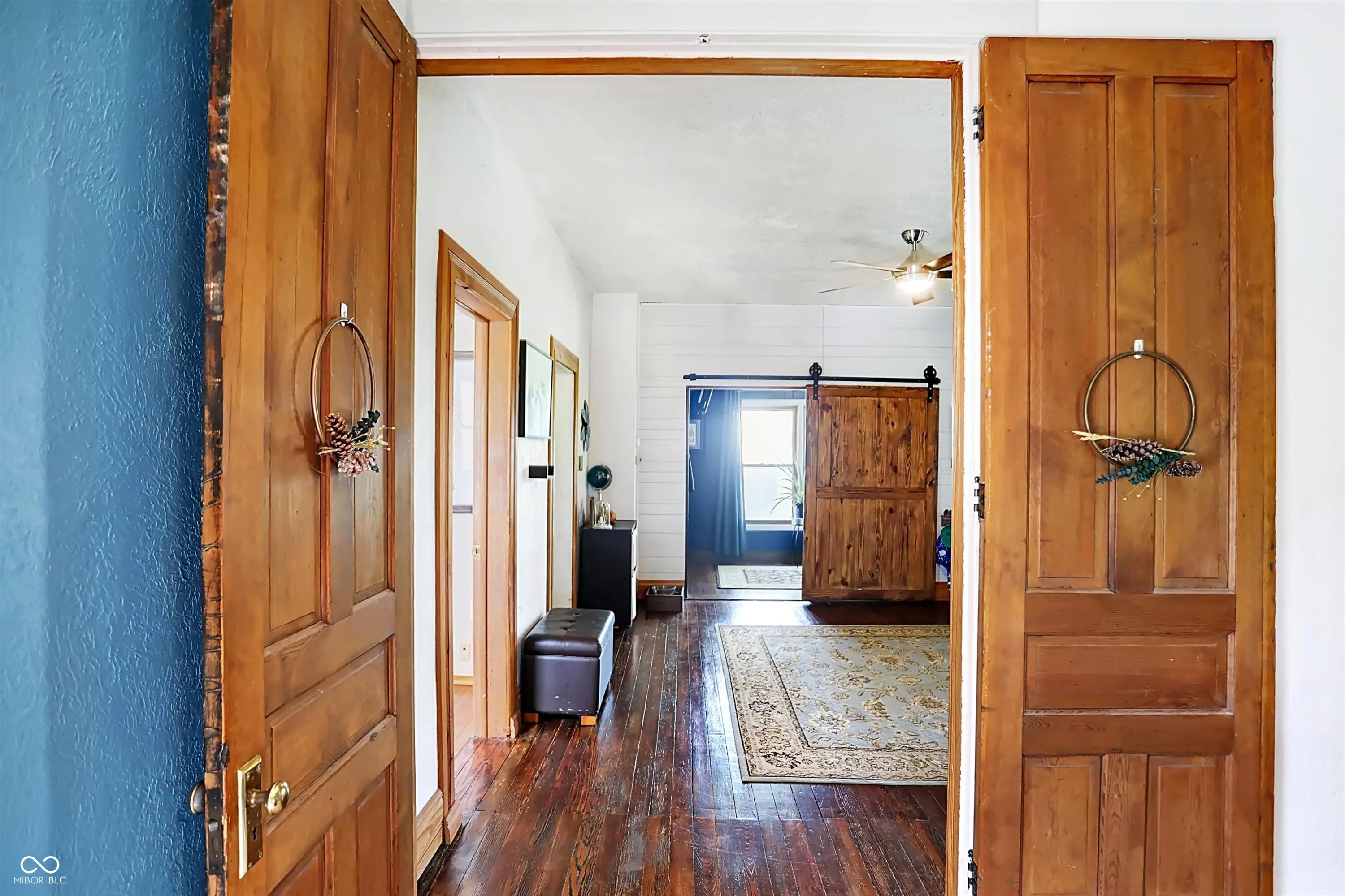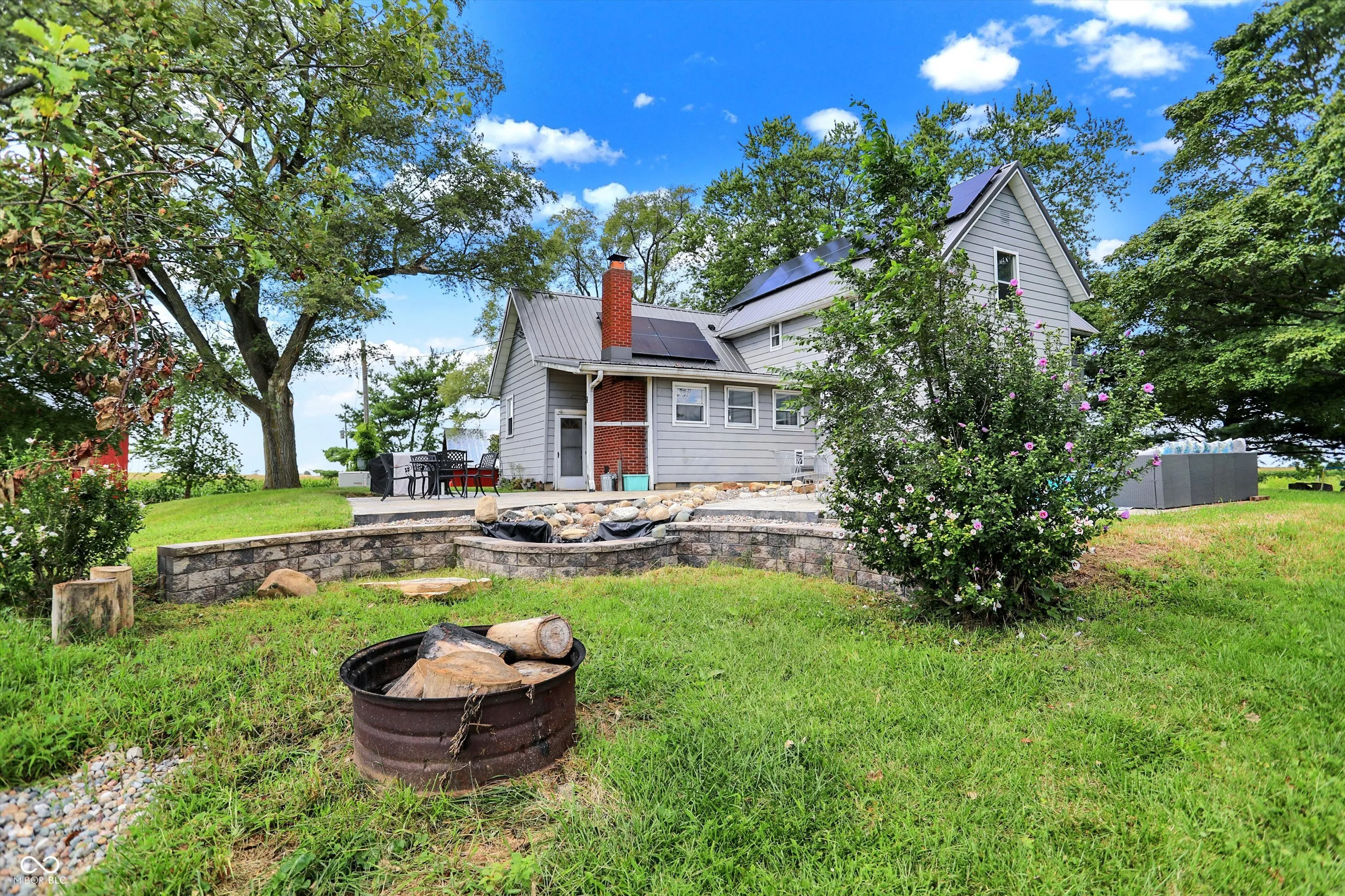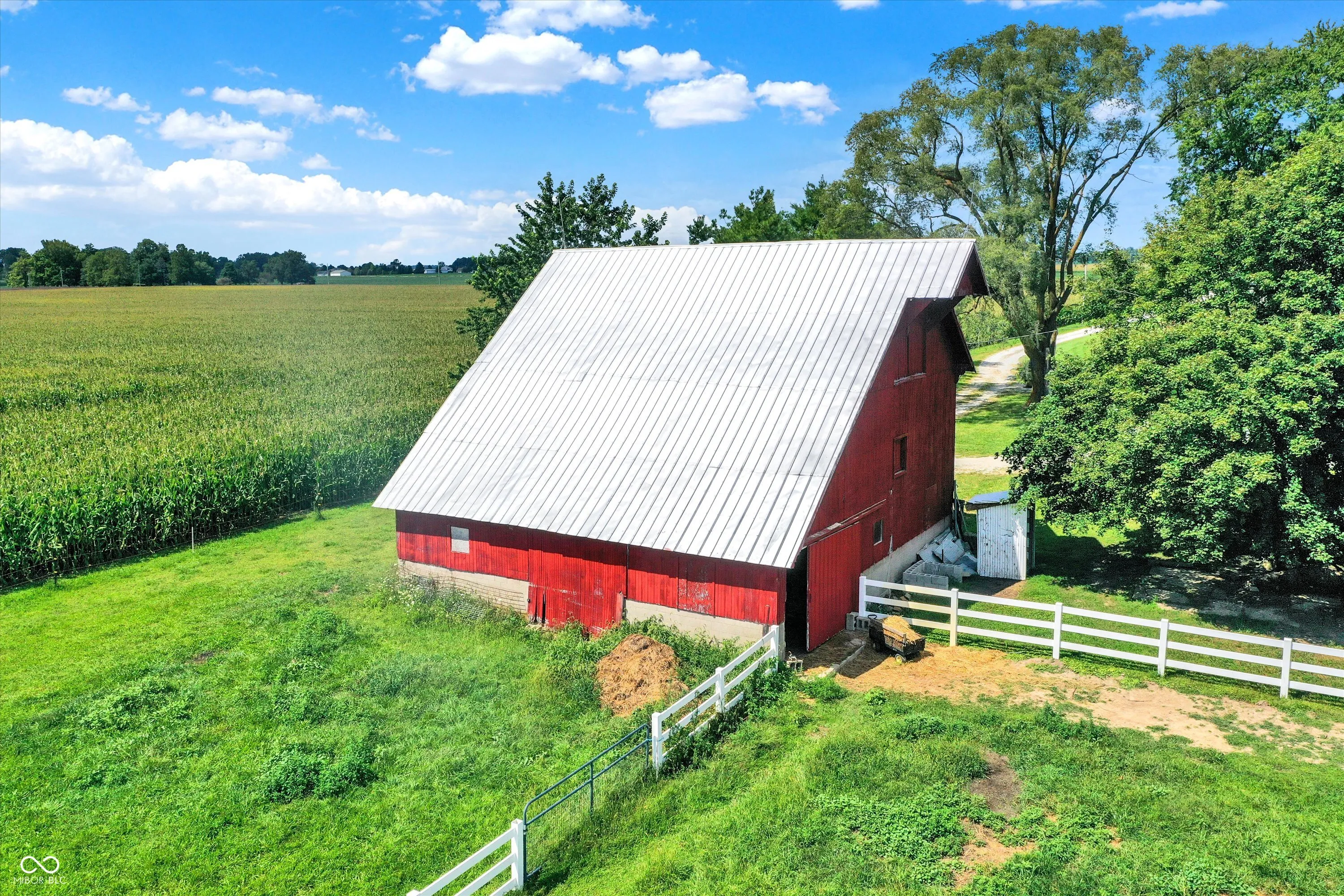 Gorgeous turn-of-the-century farmhouse nestled on a sprawling 10-acres in Tipton complete with a budding wildlife area, walking trails, fruit-bearing trees, livestock barn, aviary, and so much more. This is the perfect opportunity for those looking to embrace a sustainable lifestyle, intrigued by homesteading, or simply looking for their little slice of country paradise. Free from future development, the property offers its new owners the perfect blended lifestyle with the ability to enjoy nature and your own property while being in close proximity to restaurants, the arts, and modern comforts. A minute from US 31 and a short drive from Westfield, Morse Reservoir, and downtown Carmel, this home has the best of all worlds. As you step inside, you’ll be greeted by the warmth of original hardwood floors, tall ceilings, and the charm of a 100+ year old home combined with modern conveniences. Large living space offers new flooring, remodeled study, abundant natural light, shiplap, original doors, custom cabinetry, and archway leading from the spacious updated kitchen w/ granite & stainless appliances into the dining room w/ a cozy brick fireplace, all adding to the historic and rustic charm. Main floor Primary w/ scenic views and a full Bath. Upstairs features a loft & 2 spacious bedrooms, with the potential for adding a bath upstairs. Outside, the new stamped patio overlooking the farm is ideal for gatherings and unwinding. A creek feature meanders from the house down to the pasture, providing a serene setting and attracting local wildlife. Additional amenities include a whole-home generator, solar panels, large garage spacious enough for two cars and a tractor, EV hookup, 6 raised garden beds, and a chicken coop. Don’t miss this unique opportunity to own your country paradise with endless potential!