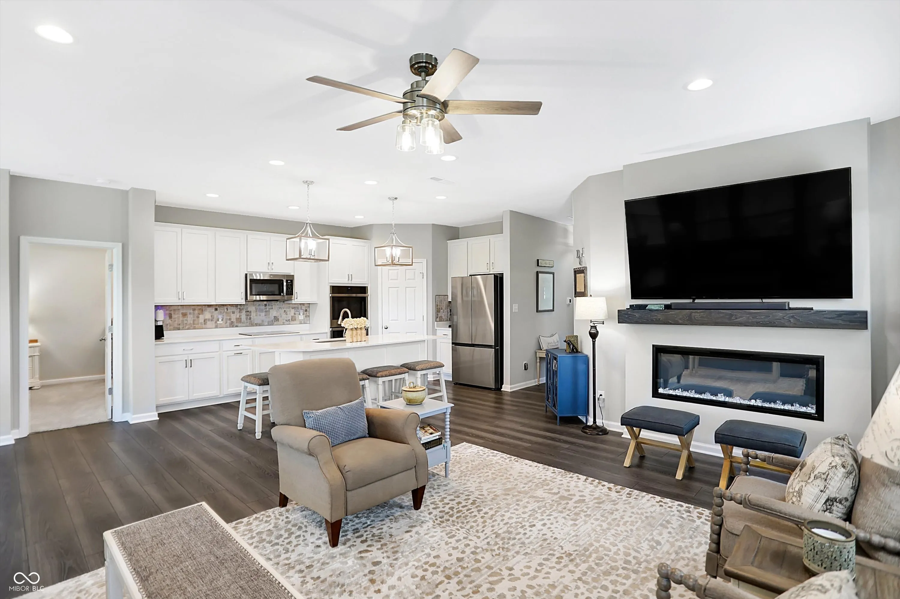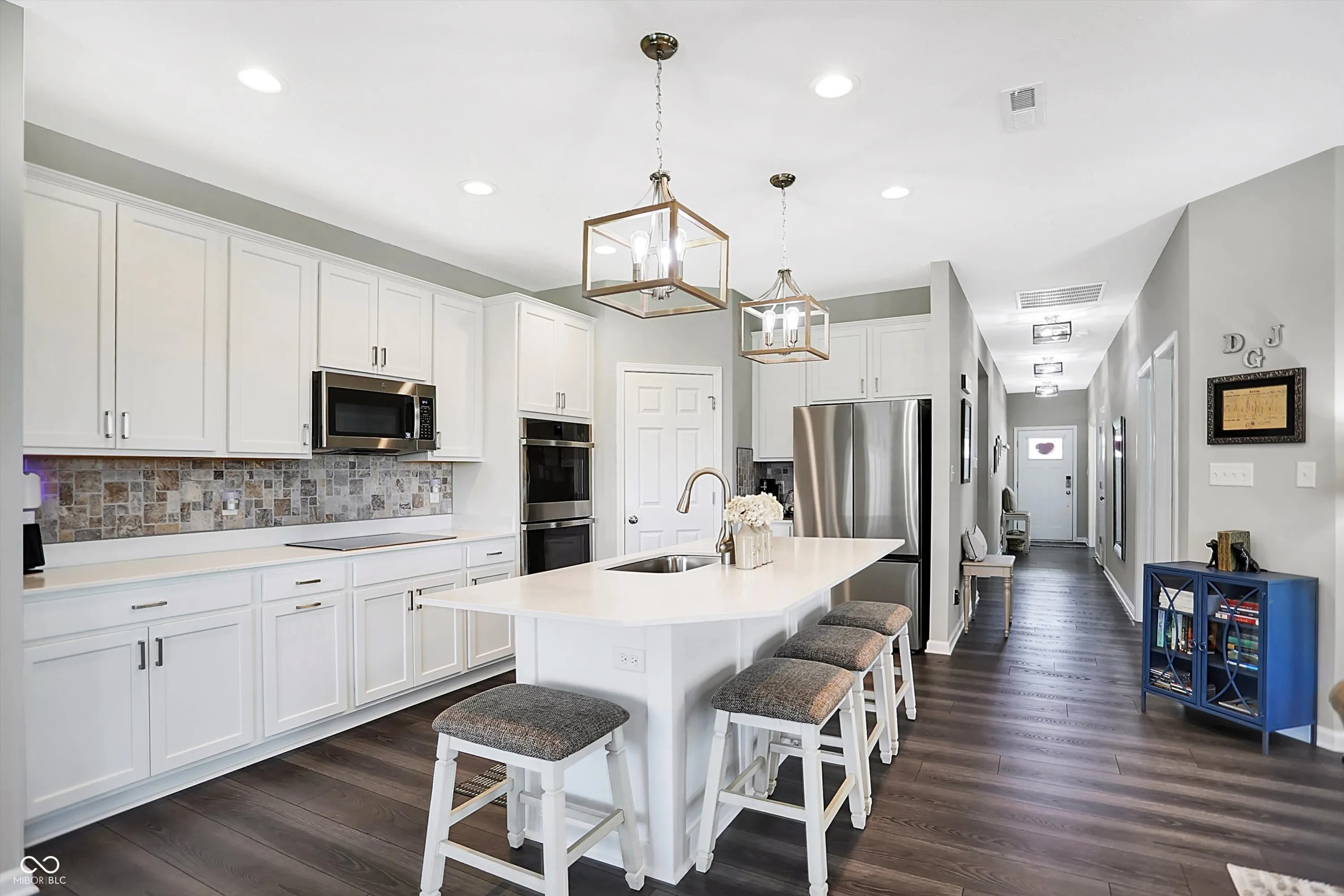 Why buy new when this beauty has ALL the BELLS & WHISTLES? Upgrades galore & tasteful decor are in this meticulously kept, Low Maintenance, 2-bed ranch home w/ office. The sparkling kitchen features double ovens, a 5-burner Profile glass cooktop, quartz countertops, a center island w/ breakfast bar, farm-style sink, & a walk-in pantry. Many upgrades like covered front porch, paver patio, screened-in back porch, window cornices, blinds, extra shelving, ceiling fans, lighting, finished garage w/ ceiling & wall insulation, professional landscaping & buried downspouts are just a few of the features of this home on a quiet cul-de-sac. The main bedroom w/ tray ceiling, fan, & custom ledges has en suite bath featuring double sinks, walk-in shower, grab bars, shelves, & hooks. HOA takes care of the lawn. Convenient to shopping, dining, schools and Interstate access. Hussey-Mayfield branch library & the Main St. Park amenities only a 5-minute walk from home. Truly a move-in-ready paradise!