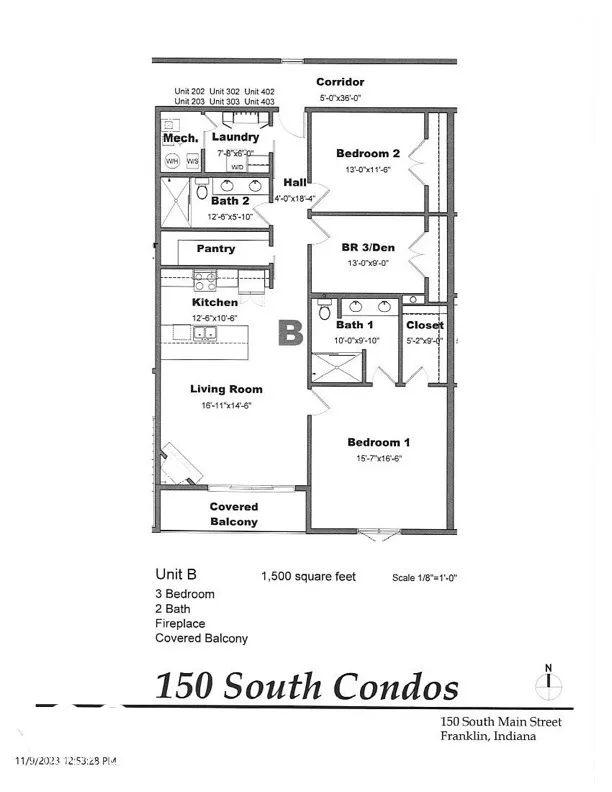 Introducing 150 South, an Upscale Condominium Development in the Heart of Downtown Franklin. You will find a Retreat from the Responsibilities of Common Home Ownership, in a Secure Atmosphere with Modern Elegance and Unparalleled Convenience to Franklin’s Vibrant Attractions, Events, Trails, Parks, Rec Center, Pool, Coffee Shops, Boutiques, Restaurants, Nightlife, Country Club, Golfing, Work out Facilities, Popular Farmers Market, Medical Facilities/Hospital and the Benefit of I 65 for Easy Commutes. Unit 403 is one out of 12 Flats Available and is a Rare Opportunity for Elevated Living in Franklin. Unit 403 is staged for you to select the finishes you love to curate your look. Finished with choices of High-End Materials such as Engineered Hardwood, Bosch appliances, Quartz Waterfall Kitchen Countertop, Floating Base Cabinets, Floor to ceiling Cabinetry, Concrete Acoustical Floor system, and a Fireplace. Elevator Access, Covered and Secure Parking. This floor plan includes 3 bedrooms, 2 Full baths, a laundry/mudroom, and a Private Covered Balcony. Schedule a personal tour of this Flat and others within this Exceptional Residence Amid the City Life!