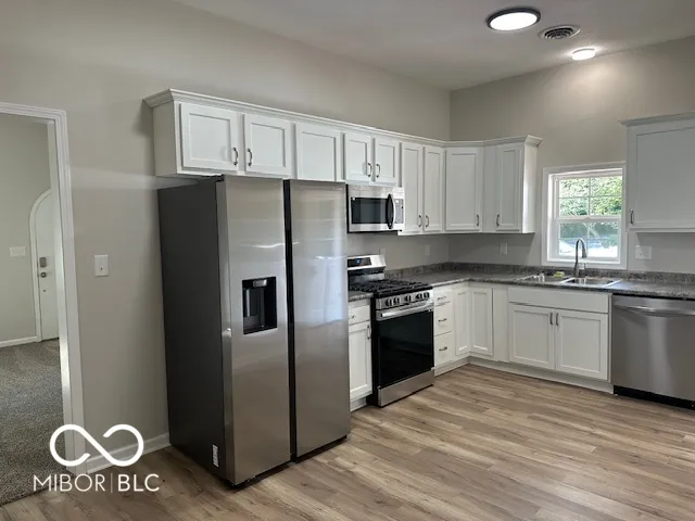 Welcome home to this newly renovated home featuring 3 bedrooms, 1 1/2 bathrooms and a 2-car detached garage. This home features a beautiful eat-in kitchen with all new cabinets, flooring, paint and appliances. There is vinyl plank flooring in the kitchen, laundry room, the full bath and the 1/2 bath and carpeting throughout the rest of the home. This home is situated on an oversized lot with a brick patio perfect for entertaining.