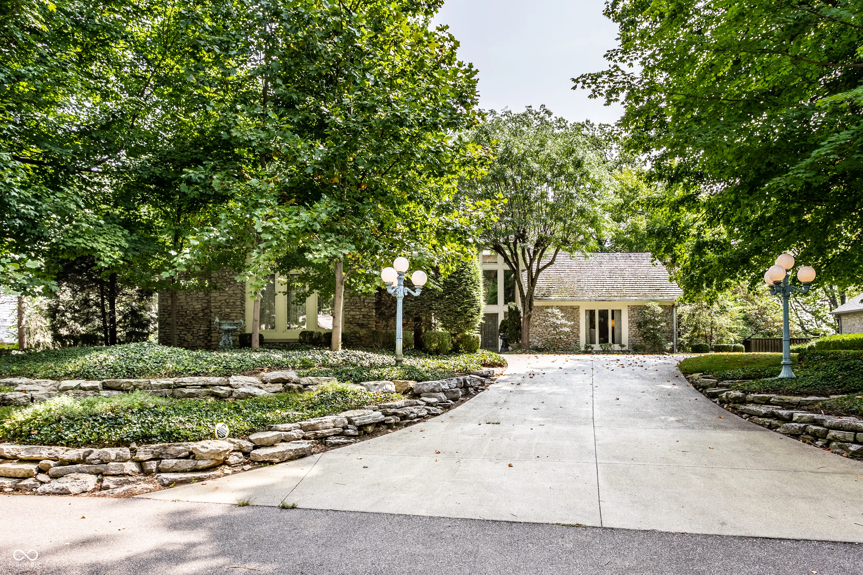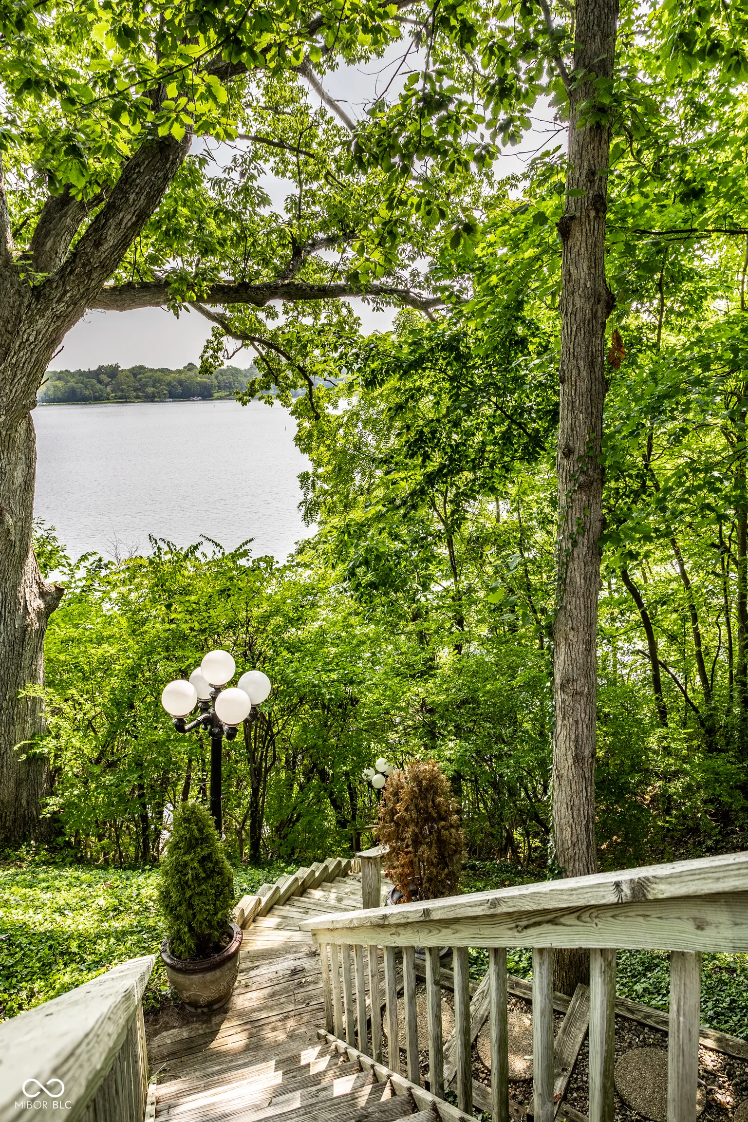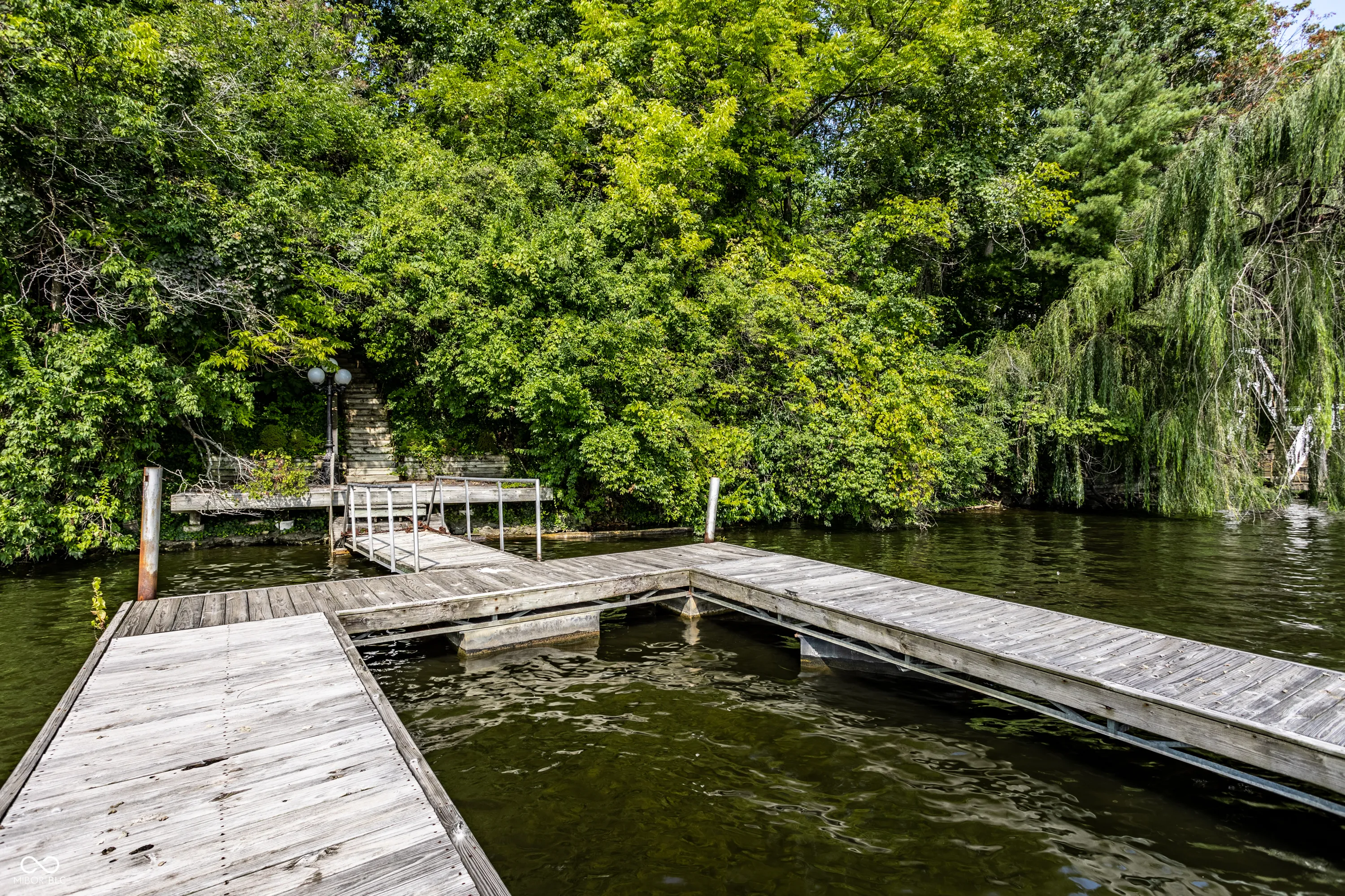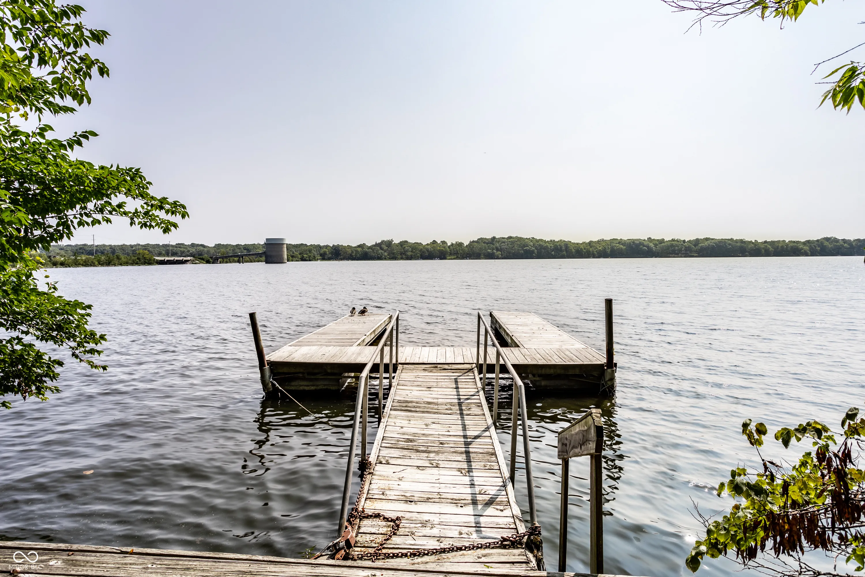 Unique, inspiring, and refined, this immaculate home is perfectly positioned on Eagle Creek Reservoir. The home is nestled among tall trees and rests on a gated, quiet street. Two handsome front doors give way to a striking entry and solarium filled with natural light. Rare for a home of its time, the rooms in this home expansive. The living / dining room is spacious and open with large windows and fireplace. The kitchen is open to the two story great room with large stone fireplace and multiple sets of doors open to the large deck overlooking the Reservoir. The primary suite is an incredible retreat. Set on its own upper level, the suite includes balcony overlooking the great room, a private deck with breathtaking water views, a large private bathroom, and two closets. The rear of this home is really amazing with stunning views of the water. The main level deck is massive and allows ample space for entertaining. Tree lined steps lead to the water where a private dock is waiting for a boat and fishing gear. A striking home in a magnificent setting.