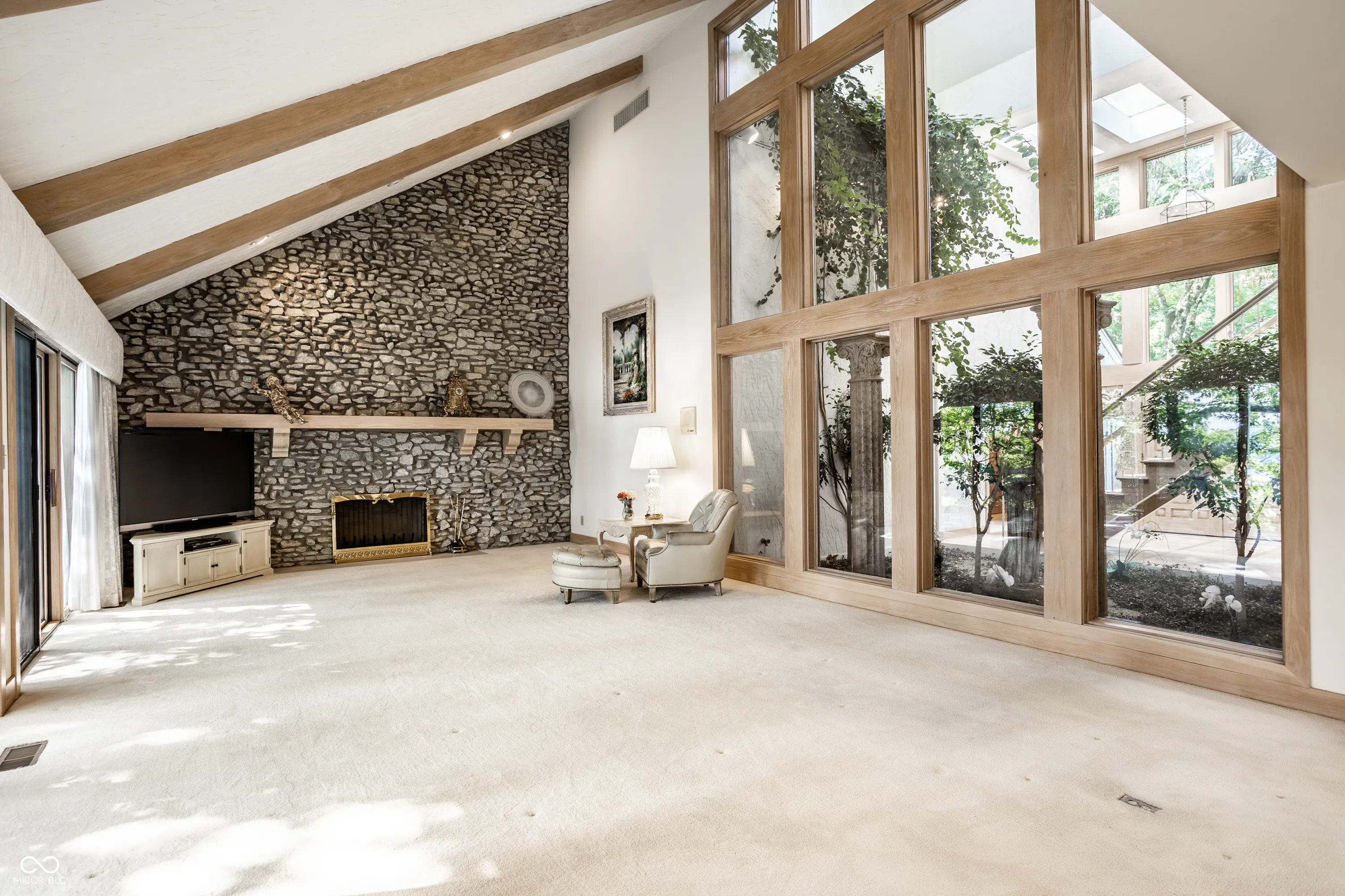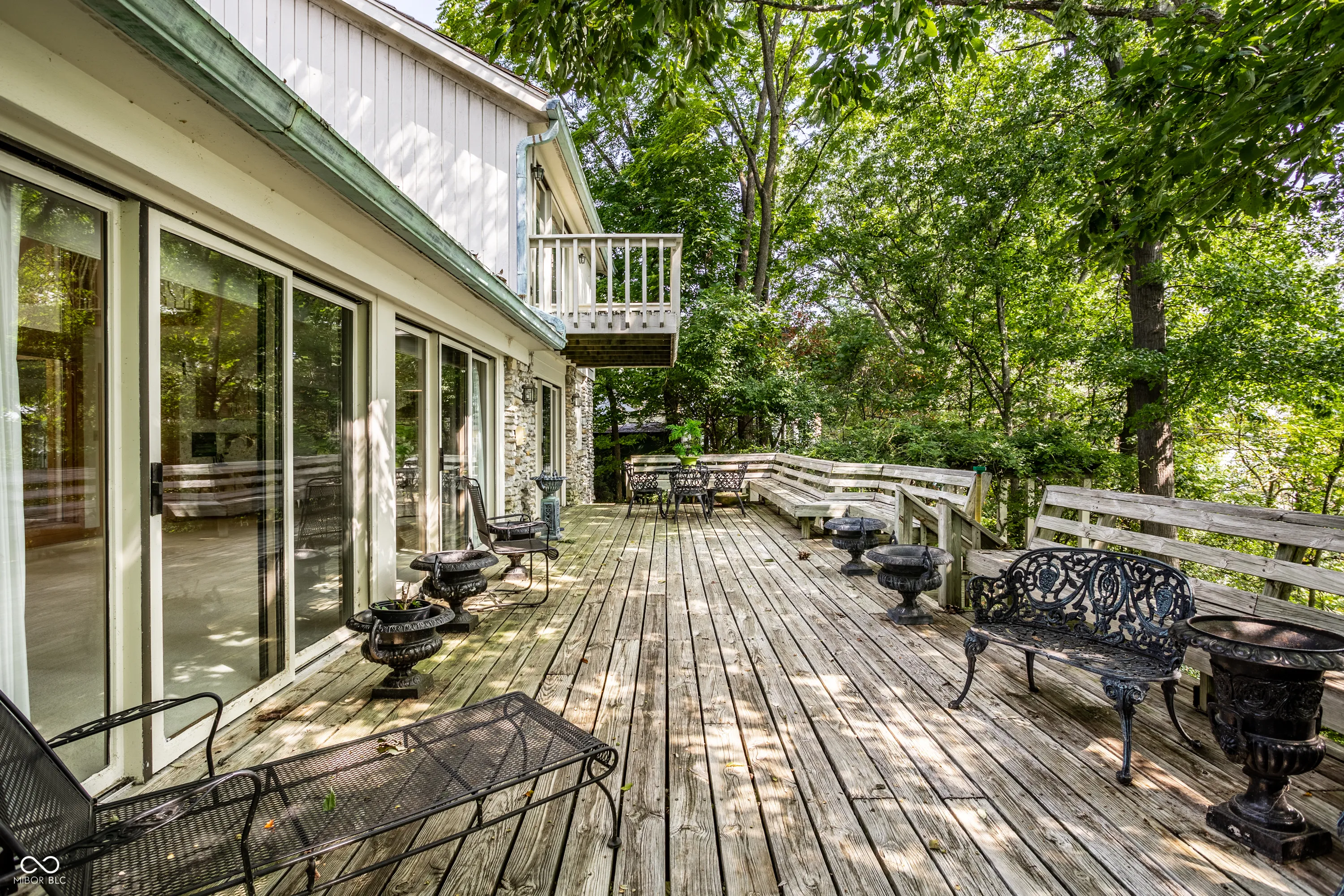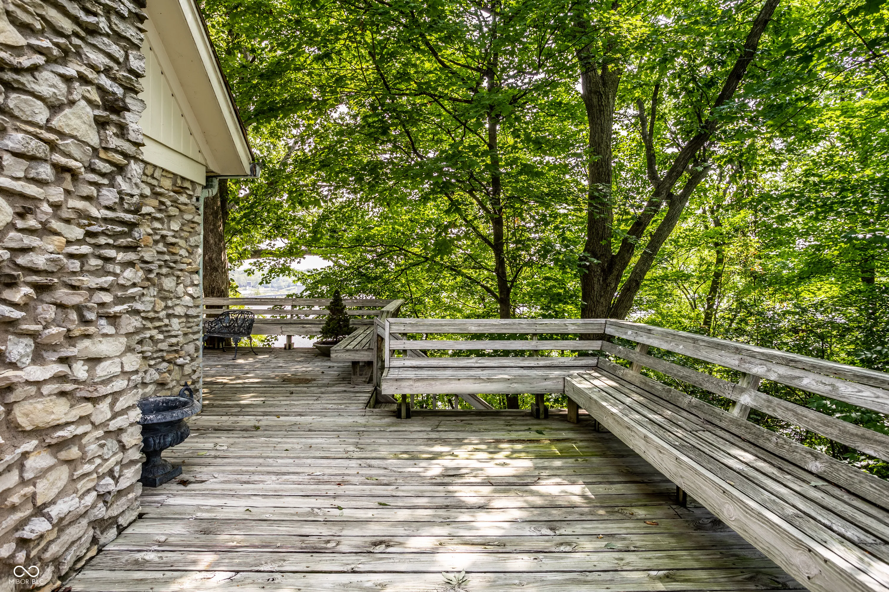 Unique, inspiring, and refined, this immaculate home is perfectly positioned on Eagle Creek Reservoir. The home is nestled among tall trees and rests on a gated, quiet street. Two handsome front doors give way to a striking entry and solarium filled with natural light. Rare for a home of its time, the rooms in this home expansive. The living / dining room is spacious and open with large windows and fireplace. The kitchen is open to the two story great room with large stone fireplace and multiple sets of doors open to the large deck overlooking the Reservoir. The primary suite is an incredible retreat. Set on its own upper level, the suite includes balcony overlooking the great room, a private deck with breathtaking water views, a large private bathroom, and two closets. The rear of this home is really amazing with stunning views of the water. The main level deck is massive and allows ample space for entertaining. Tree lined steps lead to the water where a private dock is waiting for a boat and fishing gear. A striking home in a magnificent setting.