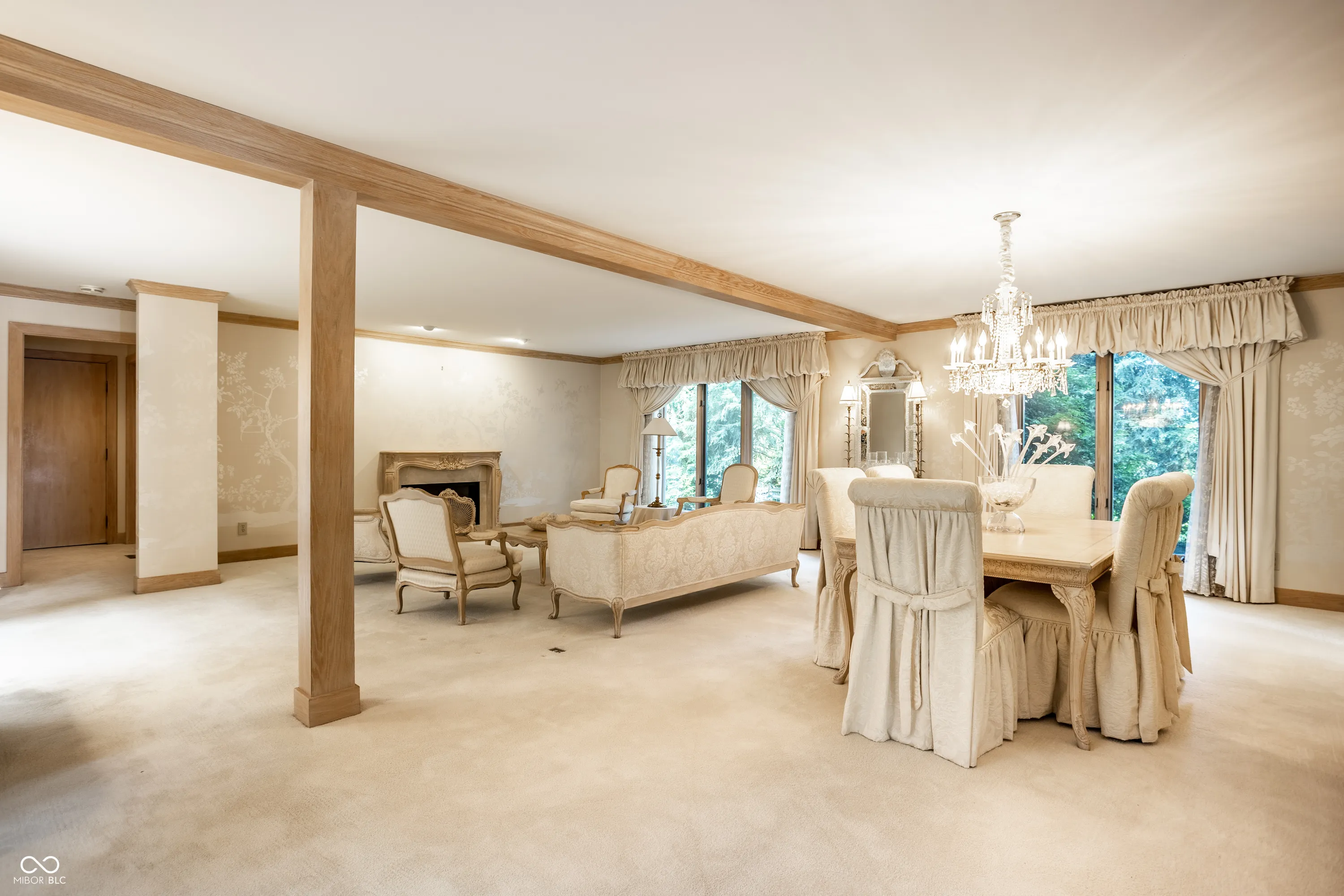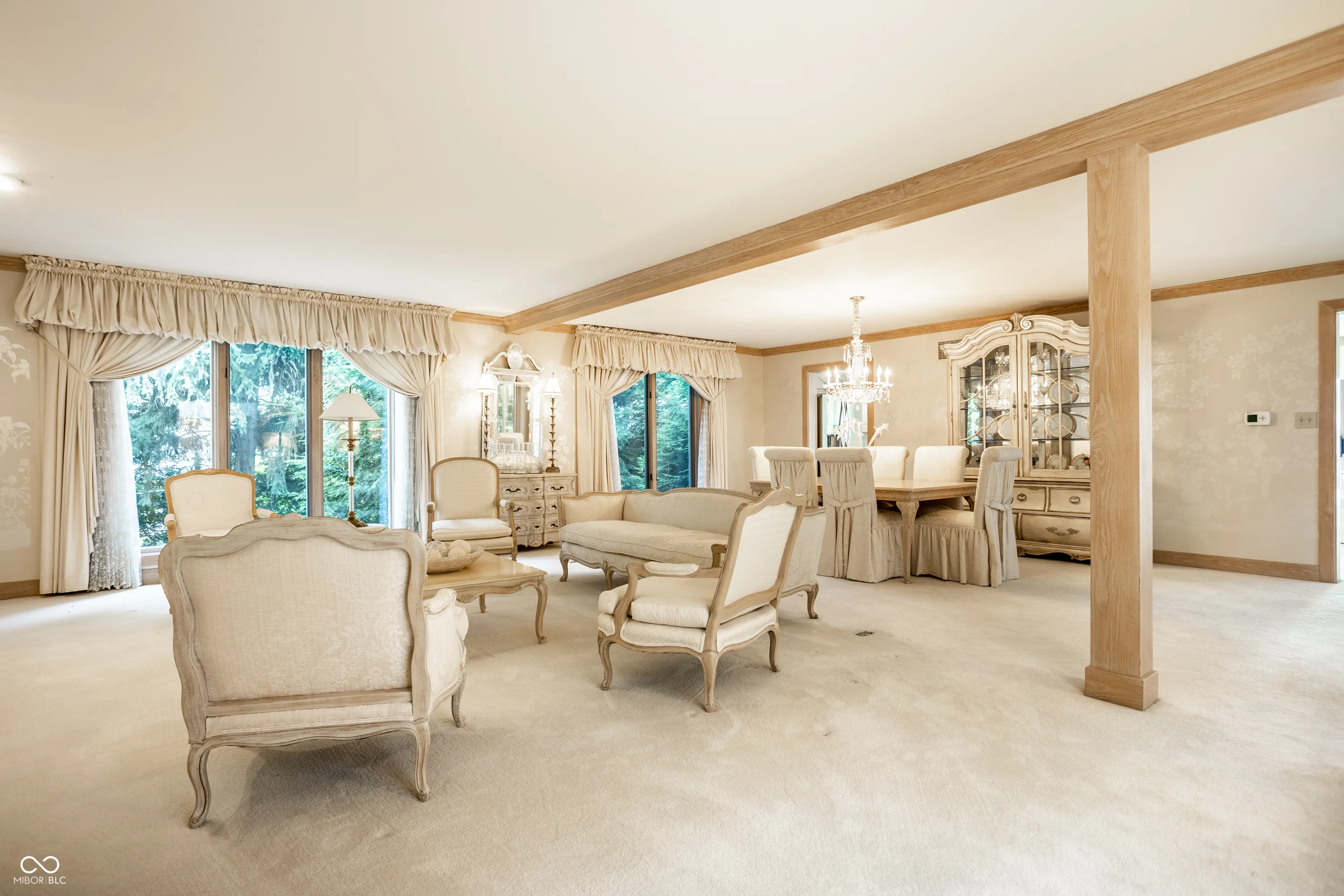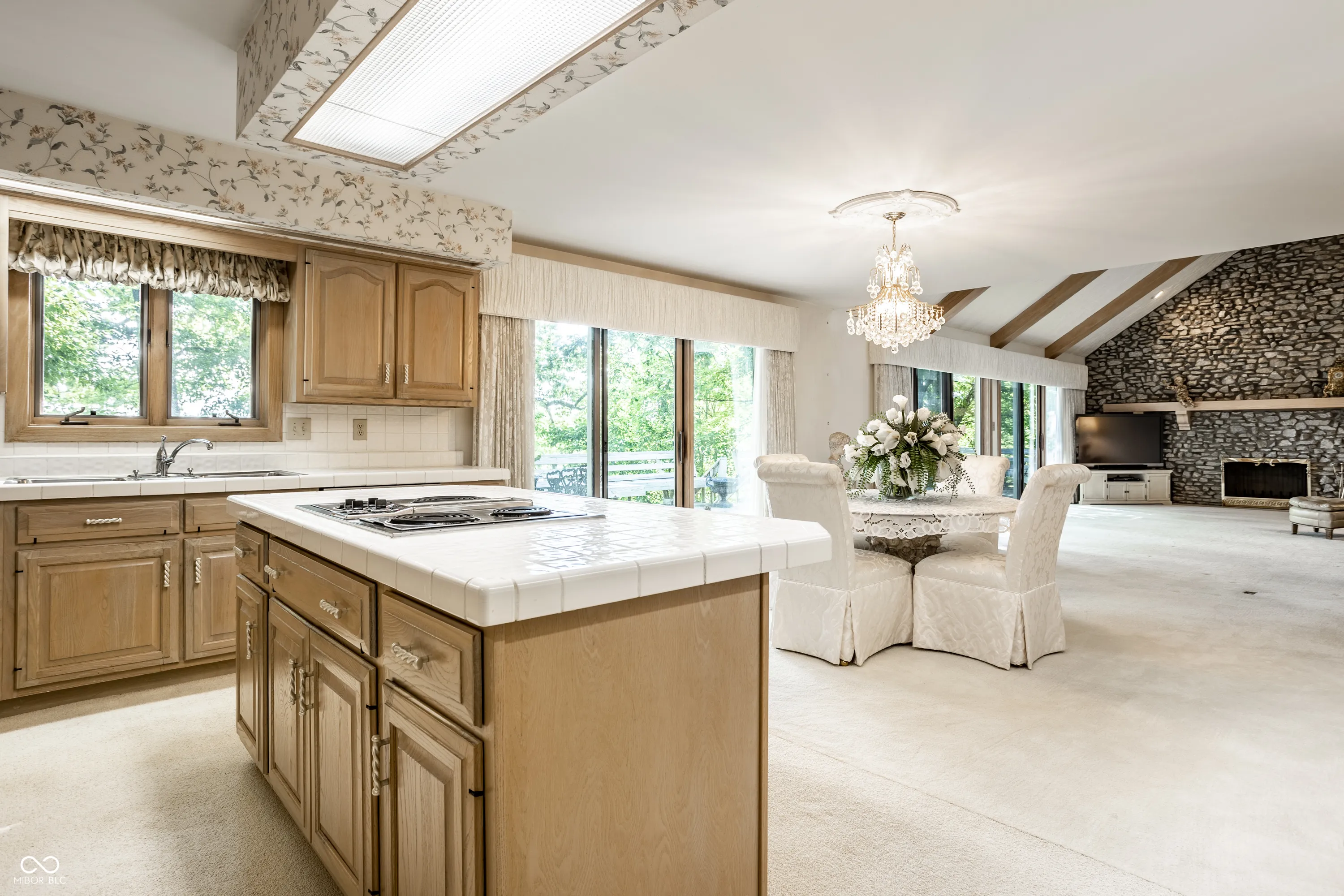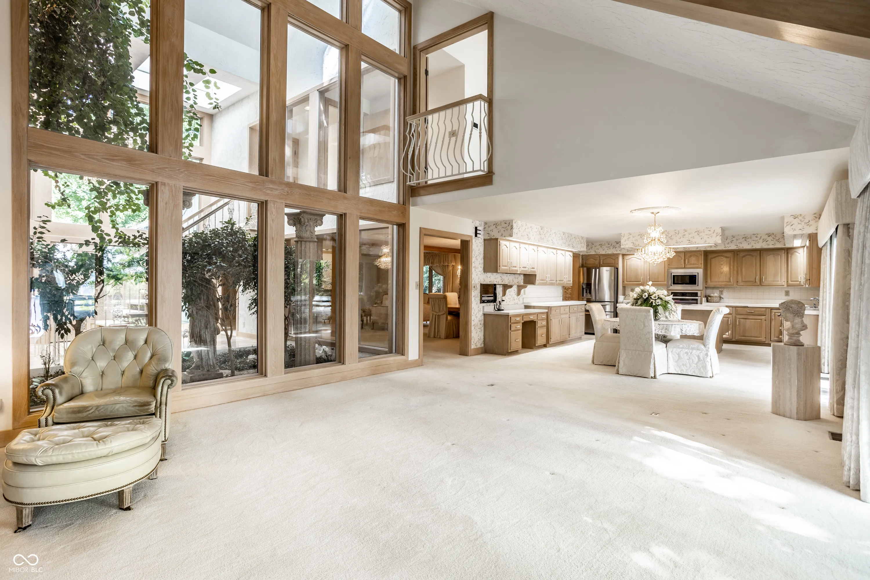 Unique, inspiring, and refined, this immaculate home is perfectly positioned on Eagle Creek Reservoir. The home is nestled among tall trees and rests on a gated, quiet street. Two handsome front doors give way to a striking entry and solarium filled with natural light. Rare for a home of its time, the rooms in this home expansive. The living / dining room is spacious and open with large windows and fireplace. The kitchen is open to the two story great room with large stone fireplace and multiple sets of doors open to the large deck overlooking the Reservoir. The primary suite is an incredible retreat. Set on its own upper level, the suite includes balcony overlooking the great room, a private deck with breathtaking water views, a large private bathroom, and two closets. The rear of this home is really amazing with stunning views of the water. The main level deck is massive and allows ample space for entertaining. Tree lined steps lead to the water where a private dock is waiting for a boat and fishing gear. A striking home in a magnificent setting.