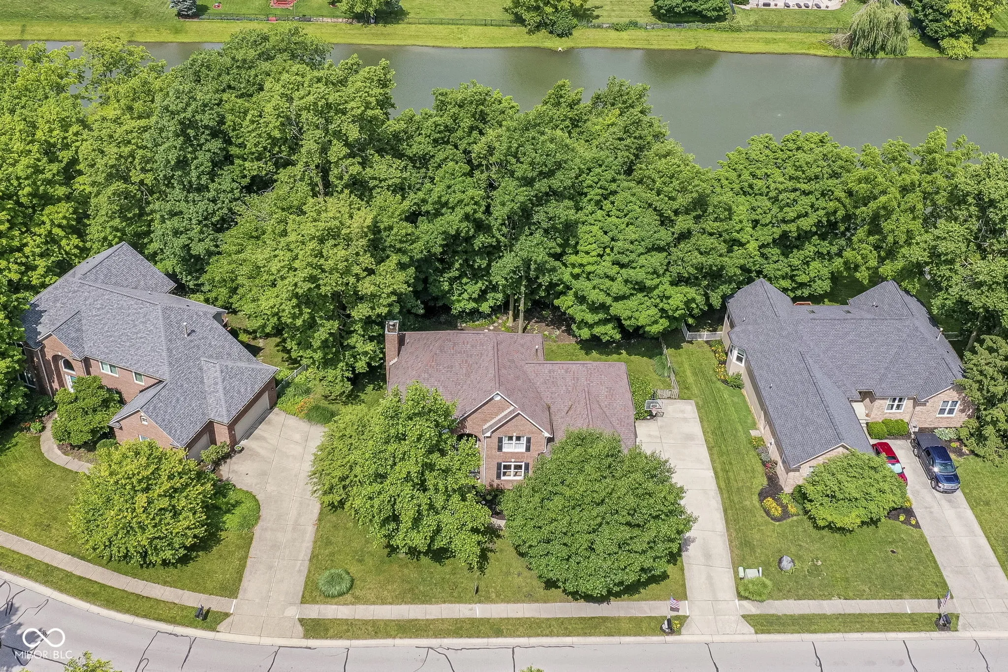 This beautiful wooded waterfront home enjoys stunning sunsets reflecting across the 3 ac pond! Gorgeous custom attached deck; and separate water-side patio for your fire pit equipped with water & electric! Spacious kitchen with matte-finish granite counters, prep sink, butler’s pantry and a huge pantry. Beautiful flow throughout main level is perfect for entertaining. Daylight windows pour light into the basement. Upstairs the Jack & Jill bath assists in getting the family out the door on busy mornings! Two laundries – one upstairs and another on the lower level. Spacious 3 car garage with an 8 X 7 bump out for your golf cart, bikes & other equipment. Bath hardware & upper level flooring ’24, Tankless gas water heater ’20, HVAC ’18, Roof ’17, Deck ’20. Kitchen counters, backsplash & added beverage/bar sink ’20. One of the BEST neighborhood pools & clubhouse – a wonderful place to meet up with neighbors at poolside, swim meets or at the annual children’s fishing competition!