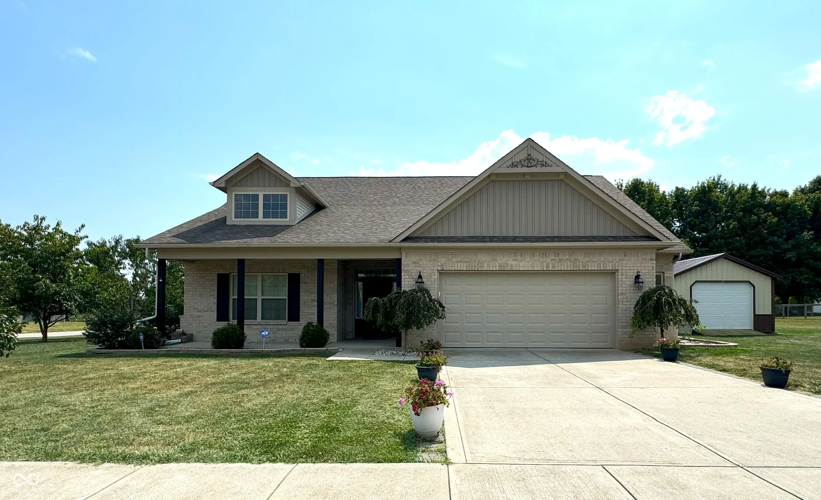 Lots to Love about this 3 BDRM 2 BATH Ranch Home with a Sunroom! Built in 2018 on a Spacious 1/2 acre Corner lot with a large 24 X 14 Outbuilding! Split Bedroom Floorplan with an open area living space! Vaulted ceilings in Great Room, Kitchen, & Dining Area! Kitchen has upgraded cabinets with soft close drawers & doors, granite countertops, Breakfast Bar, Pantry & All Appliances Stay! Spacious Great Room! Updated lighting and fans throughout! Primary Bedroom has a tray ceiling & a full primary bath with dual skinks, large walk-in closet, & full walk-in shower! Mud Room/Laundry Room offers additional shelving. All Interior doors are beaded 2 panels to add a custom touch. Enclosed back porch offers additional area for gathering and leads out to the concrete back patio. Large backyard fruit trees lining the property for privacy! Updated landscaping! Front Covered Porch offers additional sitting area! Oversized 2 car finished garage with bump out & updated LED lights that offers additional storage space! Great neighborhood with no HOA fees! Home is the corner lot a cul-de-sacs at each end of the street. Easy Access back to town & the interstate! Close to schools!