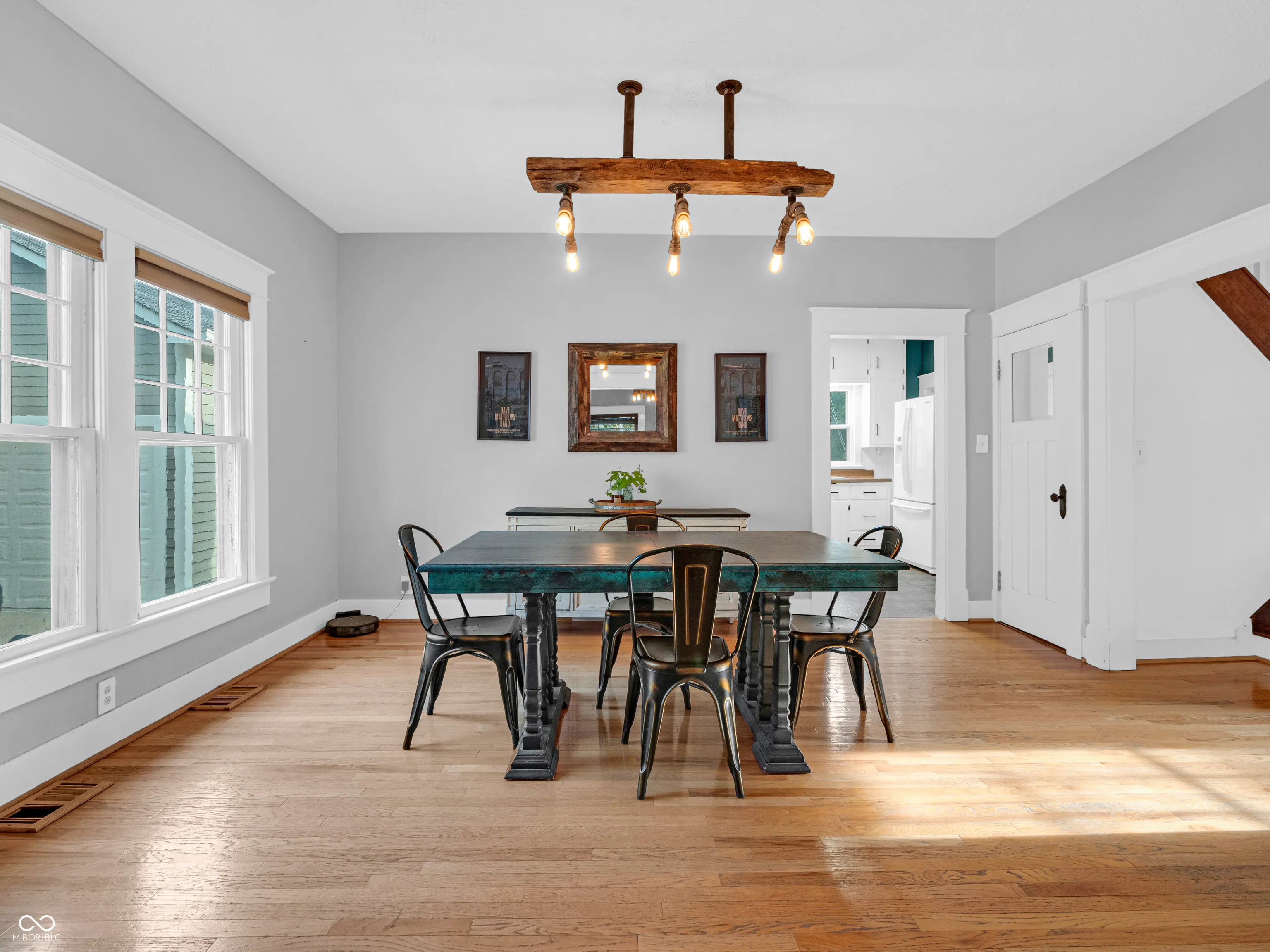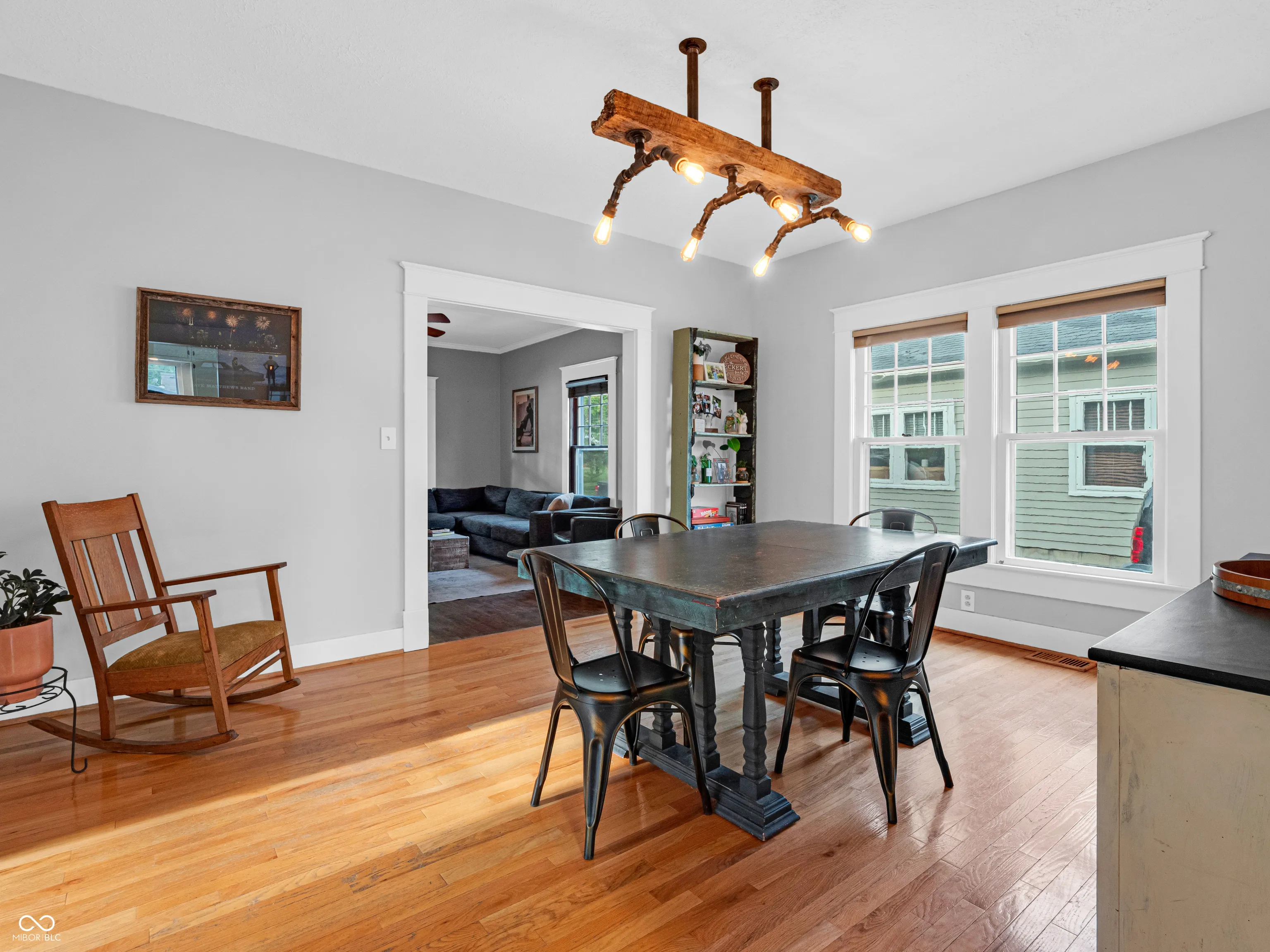 Absolutely stunning 3 bed, 2 bath bungalow in the heart of Mooresville, walking distance to downtown, great eateries, seasonal weekly farmers market and Newby Elementary School. Home is just a short bike ride to Pioneer park that has an expansive trail system, and community pool. Enjoy the serenity of the covered front porch, as well as the masterful touches throughout the home showcasing the owners sense of pride and ownership. Updates throughout including oversized trim, updated lighting, the perfect paint pallet, and partially finished basement. Master on main level features a huge walk in closet with newer hard wood flooring. There are two generously sized additional bedrooms upstairs as well. Kitchen is updated with freshly painted cabinets. Large partially finished walkout basement is open and spacious, and could be used for so many different uses. Currently set up for a workout space, laundry room, workshop, with an updated full bath. Newer perimeter drain installed to ensure this space is always dry. Walk out the basement to the detached 3 car garage set up as a mechanics dream w/ 220 electrical, and dual garage doors to pull in the front and out the back, super convenient!