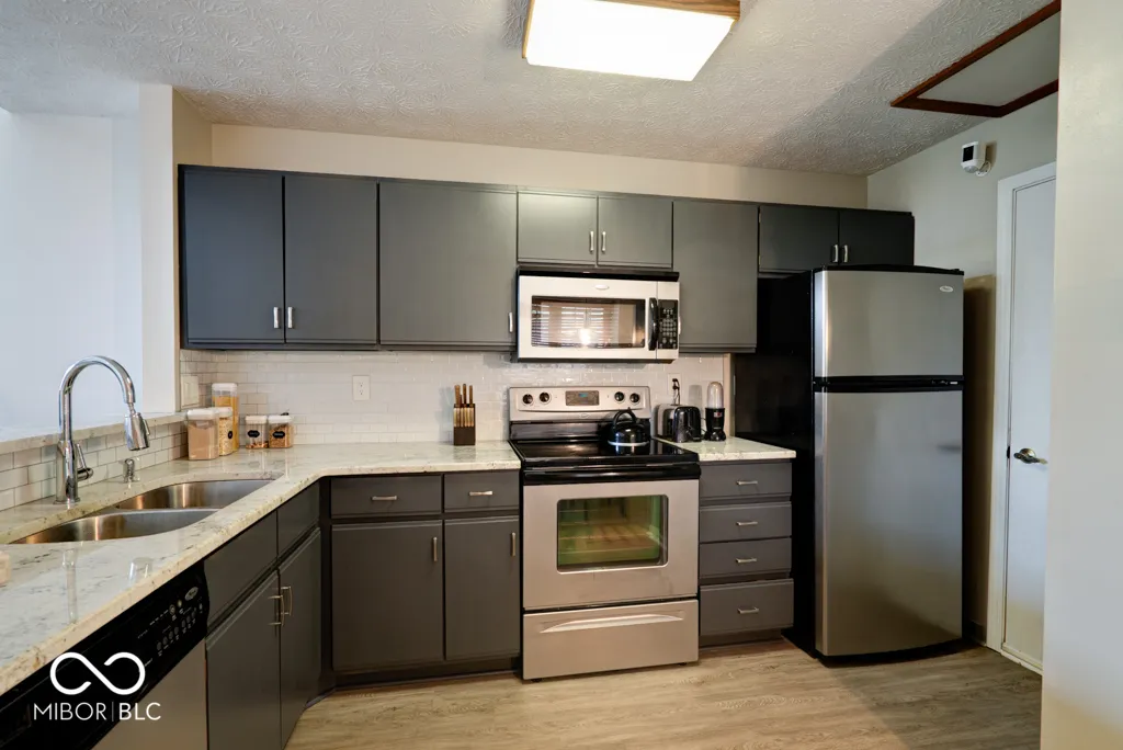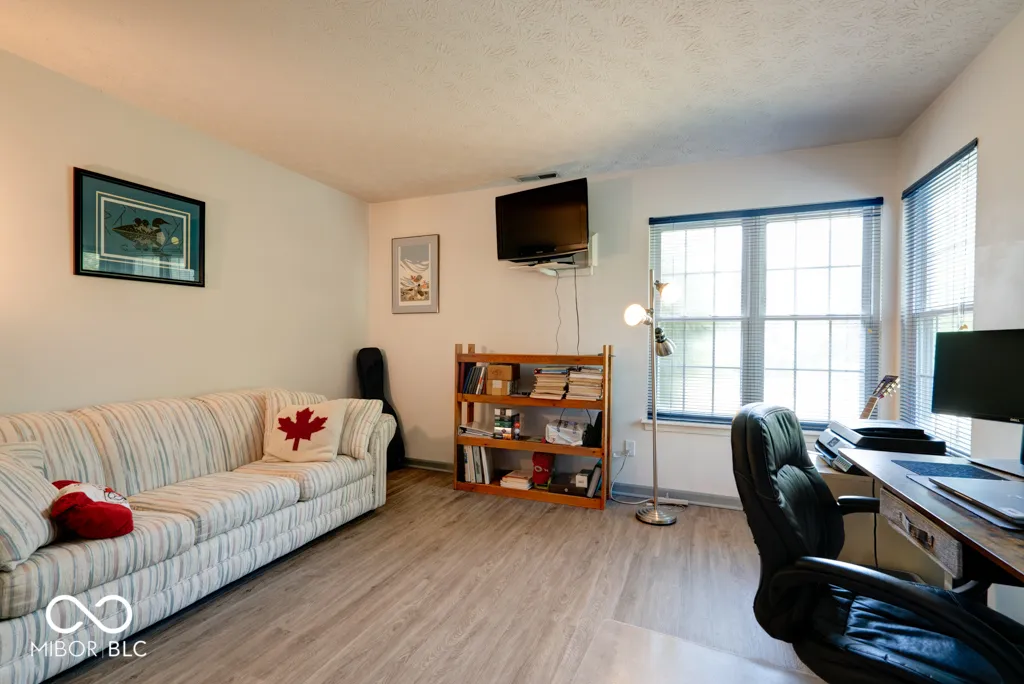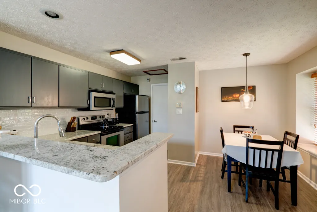 Beautiful 2 bedroom/2 bath condo in the much-desired Cobblestone Community located across from the Eagle Creek Reservoir. This home has been updated with granite countertops in the kitchen, luxury vinyl laminate flooring throughout downstairs and an updated fireplace with a repurposed wood mantle that is complete with power outlet for a TV. This unit has a wonderful open floor plan with soaring ceilings with tons of natural light and windows. It is a split floor plan with a bedroom on each level for privacy. The open deck out back has recently been painted so you can enjoy the wildlife living on the small pond that it overlooks. Don’t forget, this is one of the rare units with a 2-car garage. Great for the second car, your favorite toys or storage. The Cobblestone Community is a little bit of Cape Cod in Indianapolis with a community pool, and this is one of the first units updated with Hardiplank siding. Close to the Eagle Creek Park and reservoir for all your outdoor activities such as hiking, boating, walking and jogging.