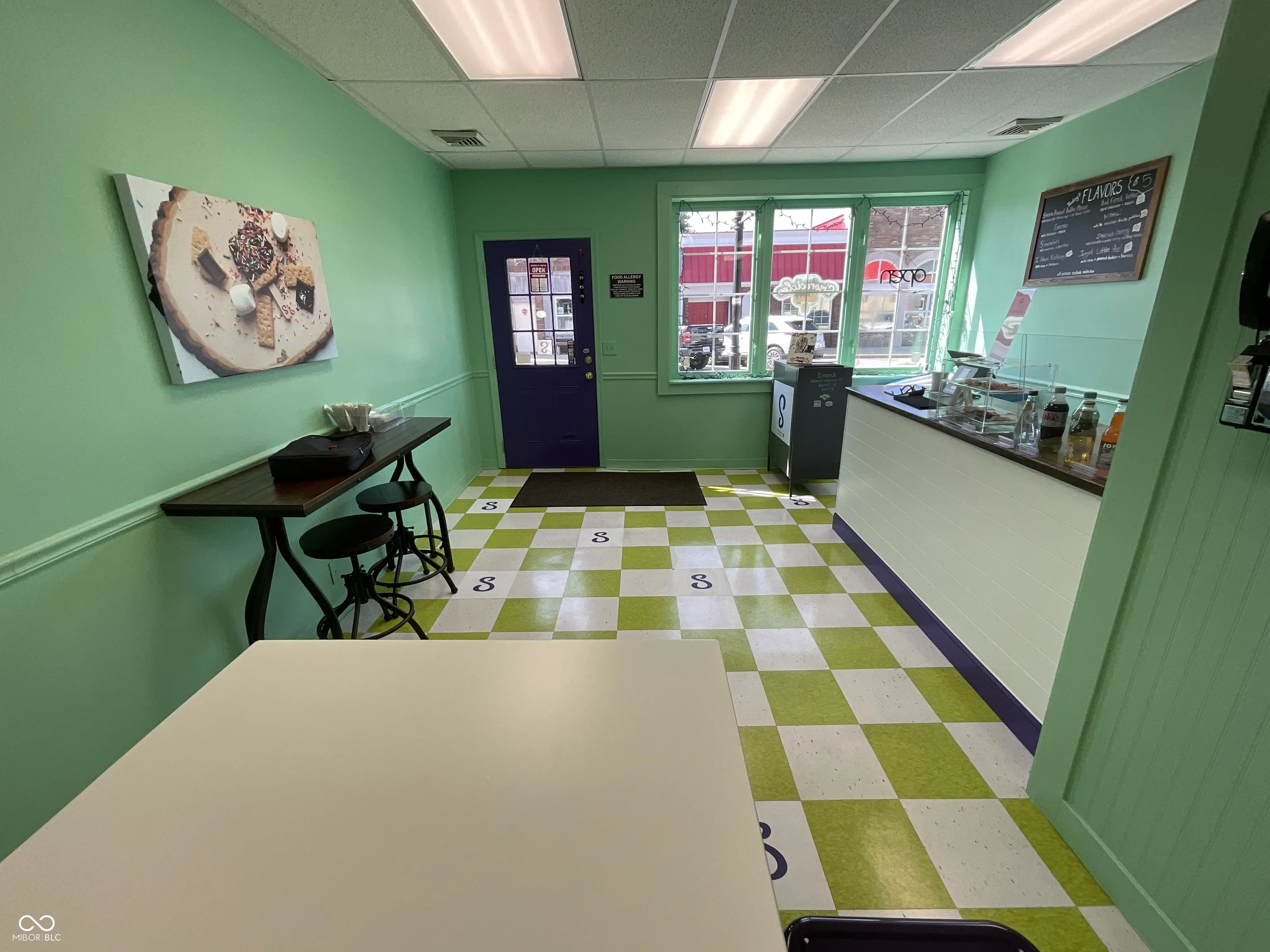Check out this 1 story commercial property for sale in the quaint little town of Gosport, Indiana. This space is ideal for a small business looking to have a storefront location. Previously set up as a specialty ice cream parlor this space has 1102 sq ft, which includes an inviting retail section, office space, licensed commercial kitchen, bathroom and a storage room. Two private parking spaces are located in the alley and accessible through the storage room. The kitchen includes a gas range, refrigerator, and a large stainless sink. High speed internet is available on site.