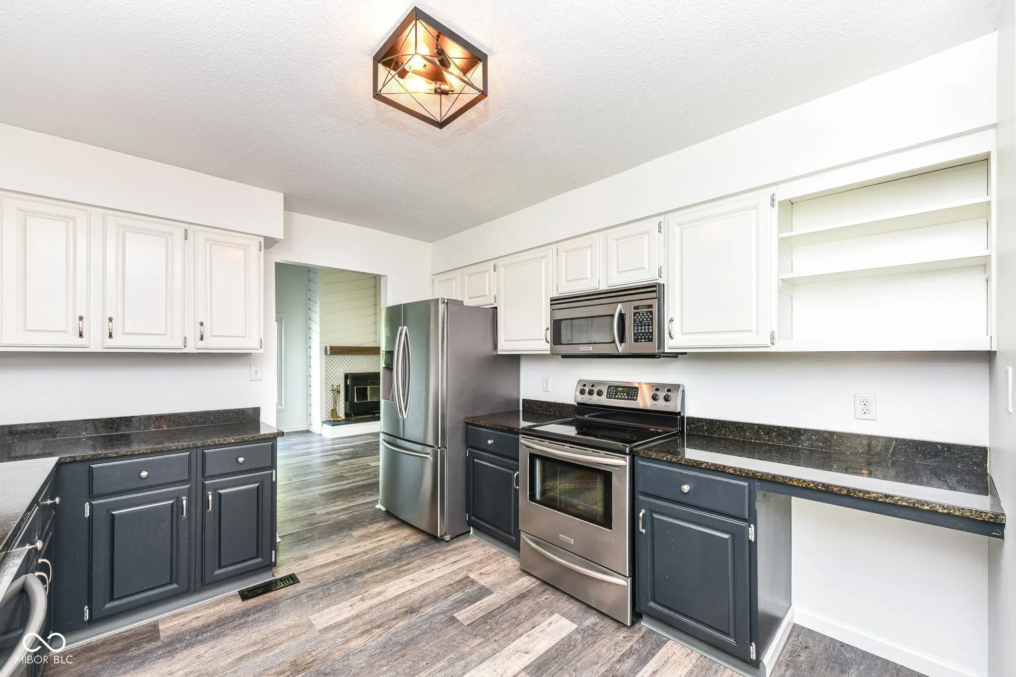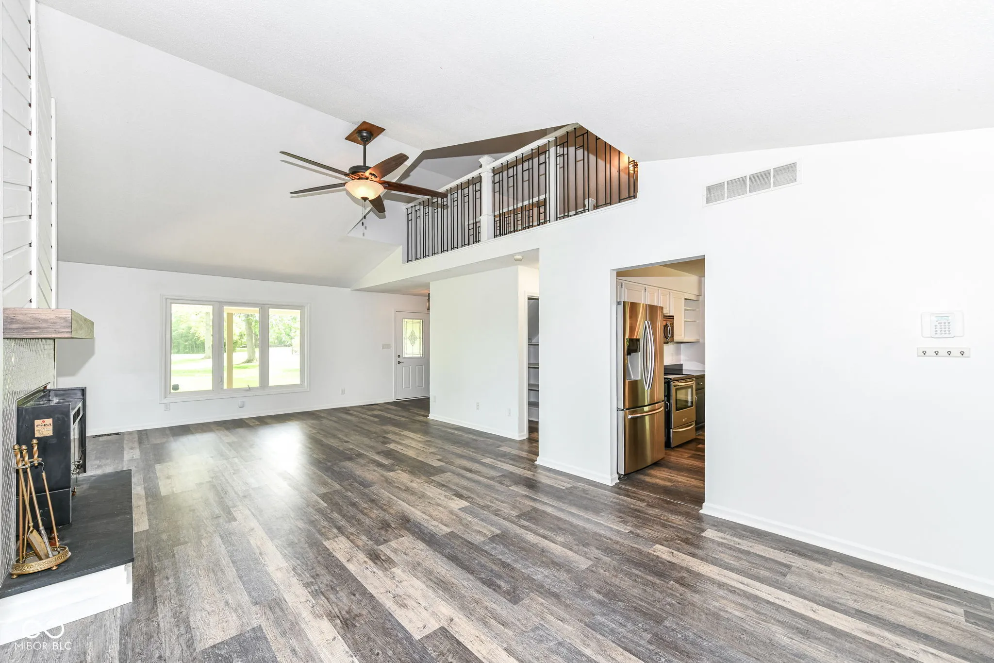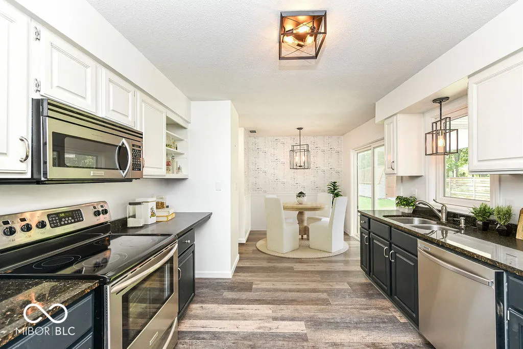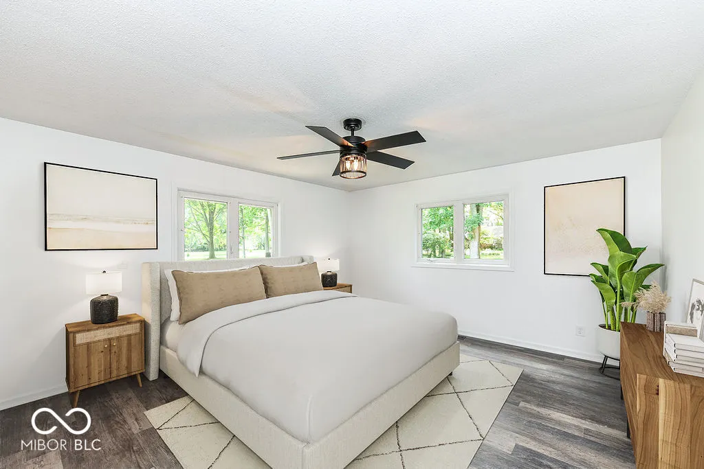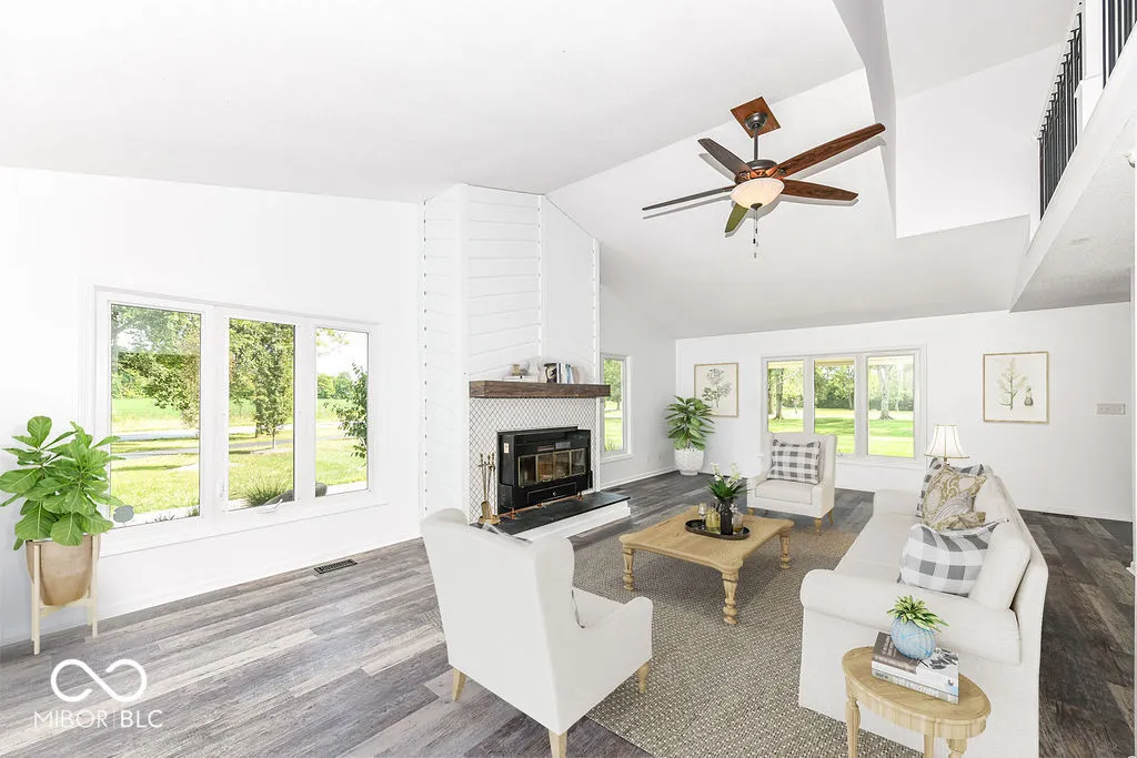 So Fresh and Clean! Zionsville Home set on a 1.05 acre lot has so much Charm to offer! 1.5 Story Great Room with Wood-Burning Fireplace and Sparkling White Tile, new luxury vinyl wide plank flooring, new carpet + an inviting fenced backyard. Main Floor Primary Suite with new walk-in closet and new adjoining bath. Bath features tiled floor and spacious tiled shower, double sink vanity with black fixtures and lighting. Lighted ceiling fans in each of the main floor bedrooms. Bedroom 2 is spacious and has views of the backyard. The Kitchen is delightful with white and black cabinets, granite countertops. A new sliding door provides great light and access to the new concrete patio and private backyard. Bedroom 3 is ideal for a nursery or work from home space. Upstairs the large Loft is accented by a wrought iron railing. It offers extra attic storage. Enjoy cooler Fall evenings on the screened porch in the front or the private patio in the back. Garden, Chickens, No HOA? Yes! Smart Ecobee Thermostat, Security System.