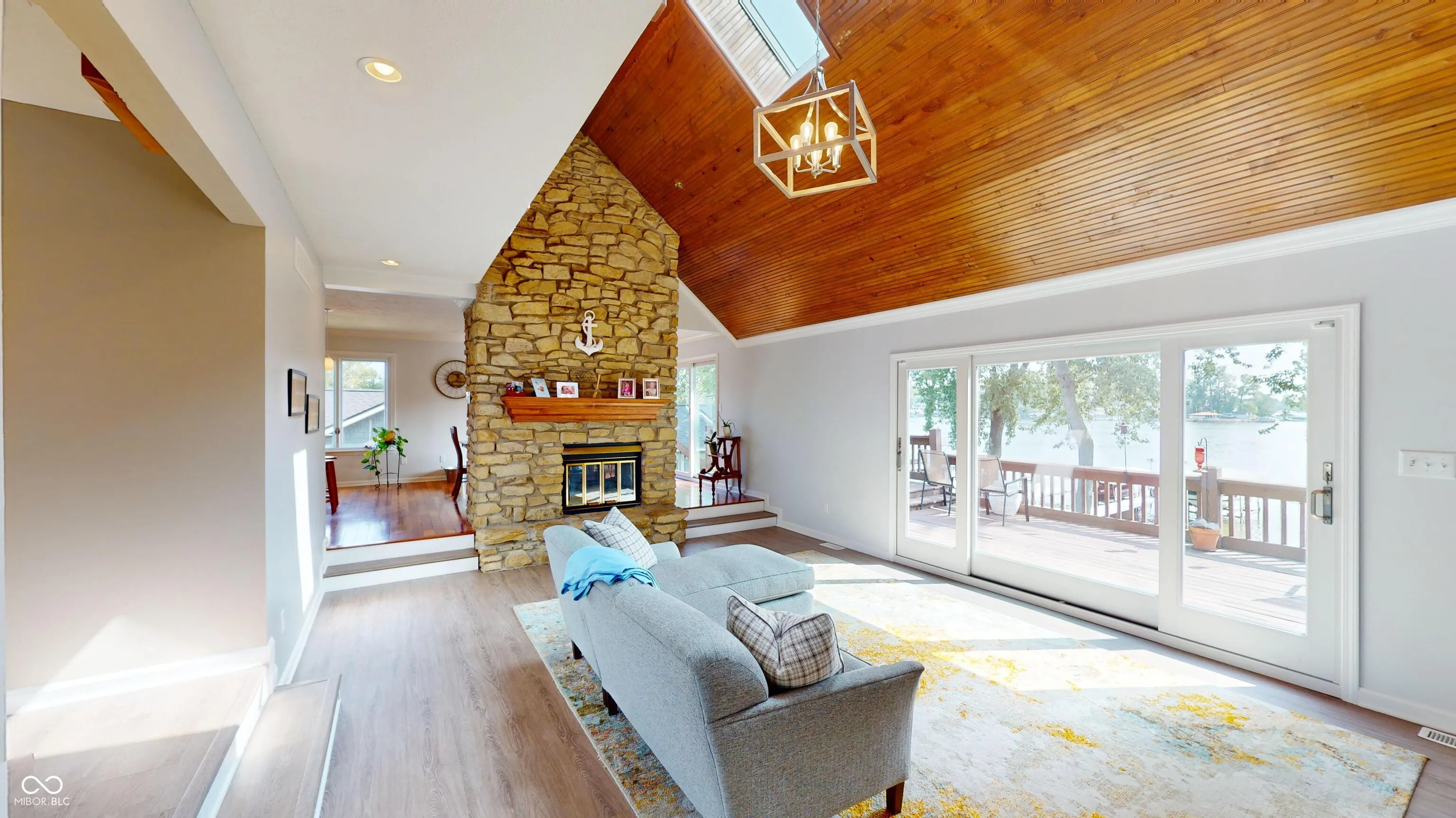 Own Your Dream Lakefront Home on Morse Reservoir. Move-in ready and stunning, this Morse Reservoir home offers a walk-out basement with all-new luxury vinyl plank flooring and fresh paint. Enjoy the convenience of a flat backyard with no steep steps to navigate, leading you to your small beach and private covered boat dock with a lift. The current 22-foot boat is negotiable. Entertain in style on the expansive 52-foot deck overlooking the serene lake, perfect for enjoying your morning coffee or watching beautiful sunsets. Inside, this spacious home features 5 bedrooms and 3.5 bathrooms. The gourmet kitchen is a chef’s dream, boasting granite countertops and Brazilian teak hardwood floors. Recent updates include luxury vinyl plank flooring throughout the main and upper levels, new windows, stylish back doors with a picturesque window in the living room, and a newly renovated owner’s retreat with a walk-in shower and tile floors. The recently updated roof and skylights provide natural light year-round.