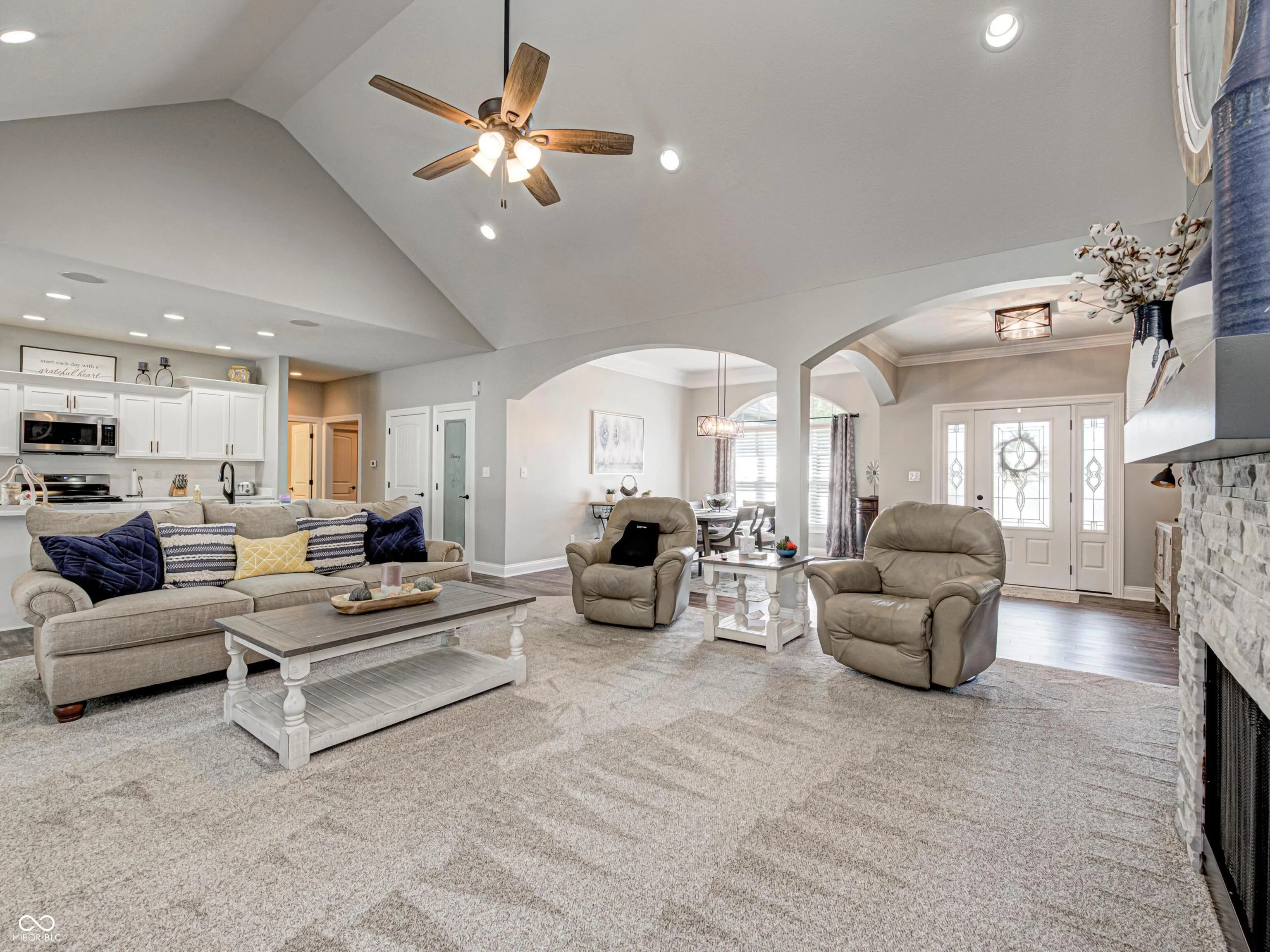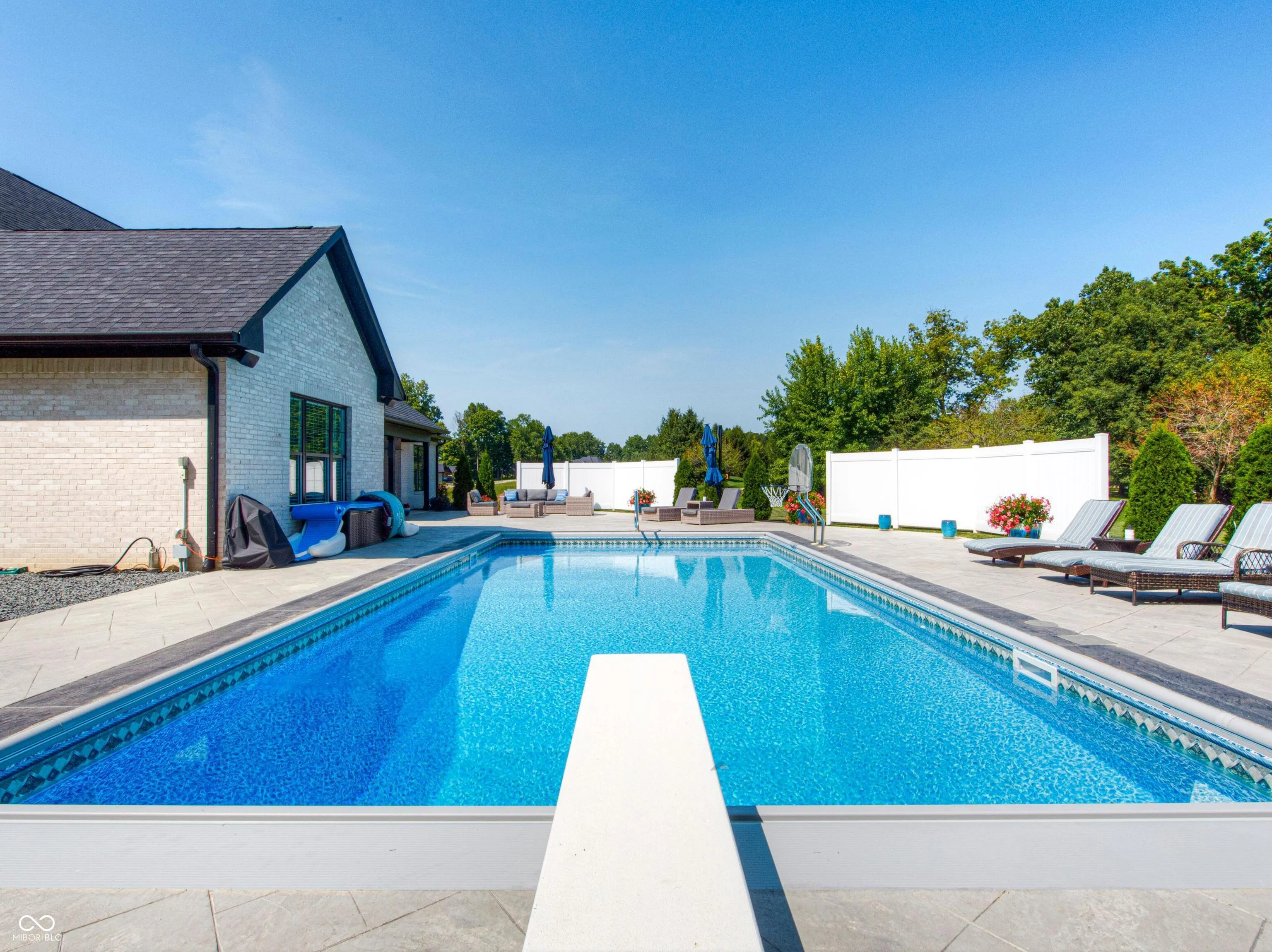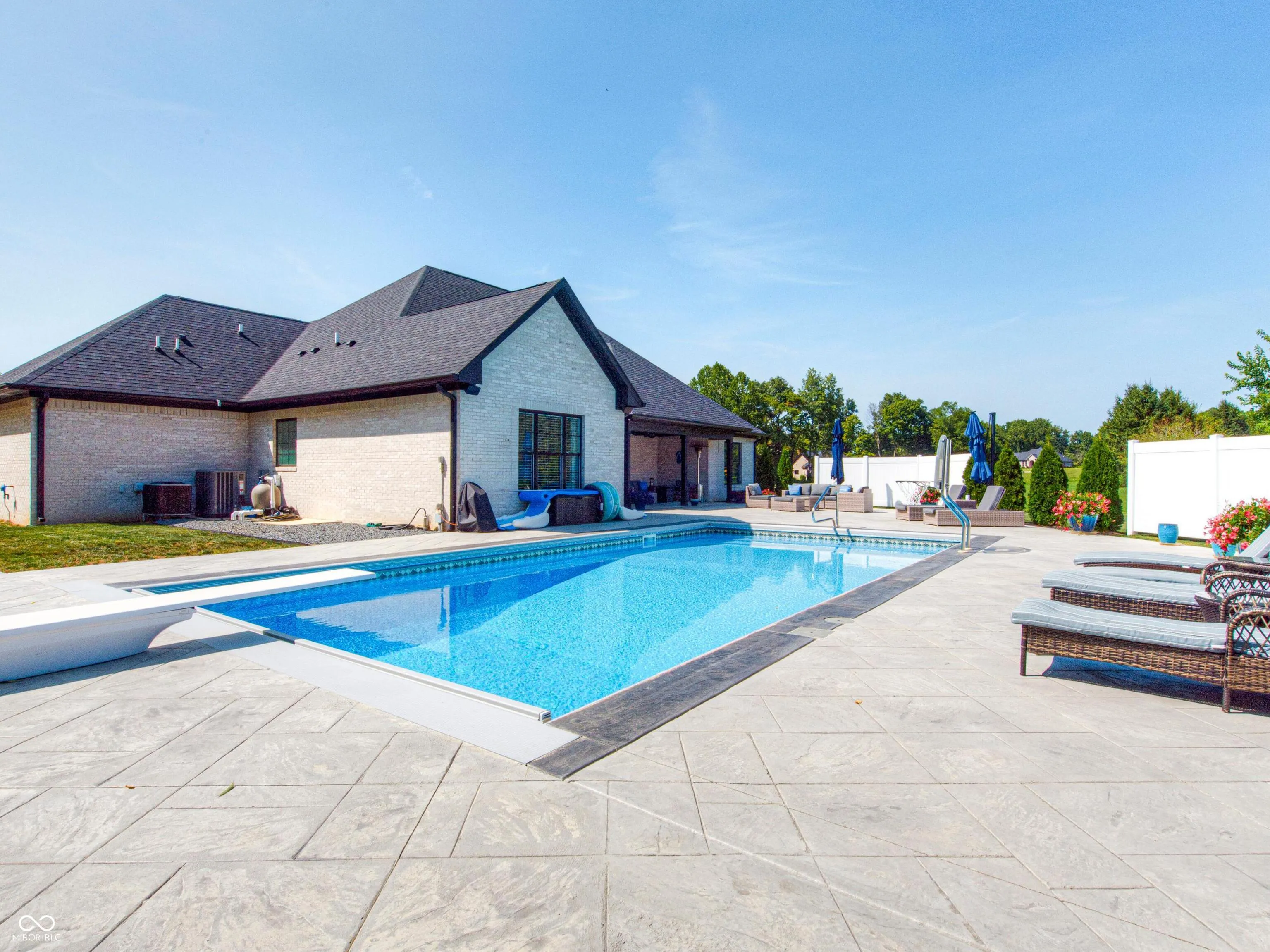 Only 2 1/2 years old!! Check out this custom built brick/stone home in Martinsville – Monrovia Schools on 1+ acre just 4 miles off I-70 , 5 miles from Deer Creek Golf Course, and minutes from the airport. This 3 BR, 3.5 bath (optional 4th bedroom upstairs along with a full bath) has an open floor plan is just what you’re looking for! Vaulted ceilings, arched walkways & gas log fireplace compliment the great room. The kitchen boasts countertops, labeled pantry, & plenty of cabinetry for storage & beautiful breakfast room. The Custom mud room offers ample storage for a family on the go. Master suite on main includes cathedral ceiling, walk-in closet w/built-ins, dbl. sinks, stand up tiled shower & separate tub. 2 main floor BRs w/Jack & Jill bath. Enjoy entertaining on your 2200 sq ft stamped patio around pool and listen to your favorite tunes with a Bowers & Wilkins model speaker system that also works inside the home as well (4 speakers outside/ 2 inside!) A 20 x 36 heated salt water pool with custom lights, automatic pool cover, and an automatic pool cleaner is the sure place to entertain your guests! Can lights & ceiling fans throughout home, laundry room w/storage, all NEW everything! Come out & see this amazing home! Home also contains an 8 x 7 insulated/safe room/storage area. Rainbird irrigation system (8 zones.) Culligan Water Softener- Paid. Covered patio entertainment area is perfect relaxation away from the shade. This stunning beauty is everything you want and more!! NO HOA!