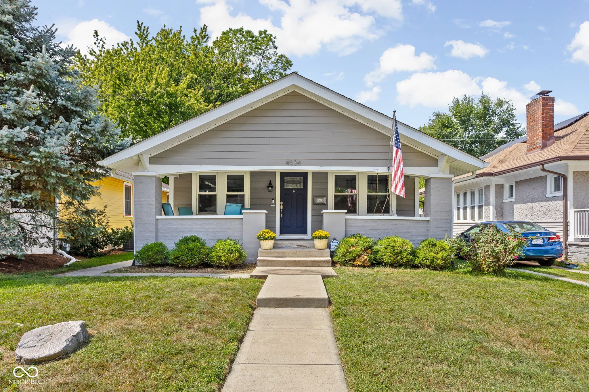 Welcome to 4924 Guilford Avenue, located in the heart of SoBro and accessible to so many of midtown’s hotspots – the Monon Trail, farmer’s market, local restaurants and coffee shops. The darling front porch welcomes you inside to this updated 2 bed, 2 bath bungalow. The cozy home features a large, open, light-filled family room with built-in shelves and new fireplace, spacious dining room that flows into the updated kitchen with quartz counters, tiled backsplash, new appliances and an abundance of cabinet storage space. The bedrooms and updated bathroom are tucked away in their own hallway off the main living area. Downstairs you’ll discover an incredible finished basement space with another living space, bar area, full bathroom, laundry, and storage space. The fully-fenced private backyard is an ideal spot for hosting and hanging out. The oversized 2-car garage is a rare gem for the neighborhood.