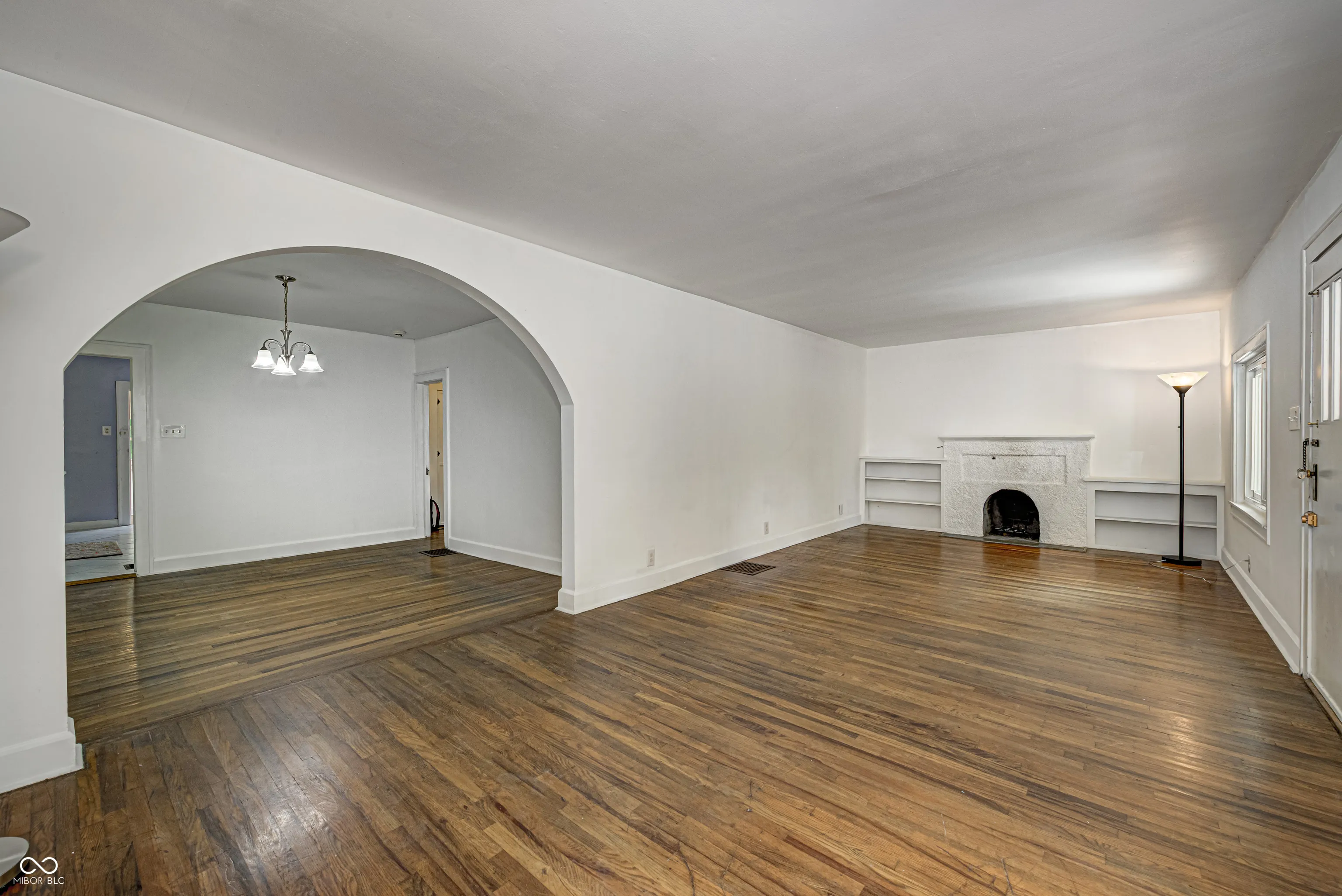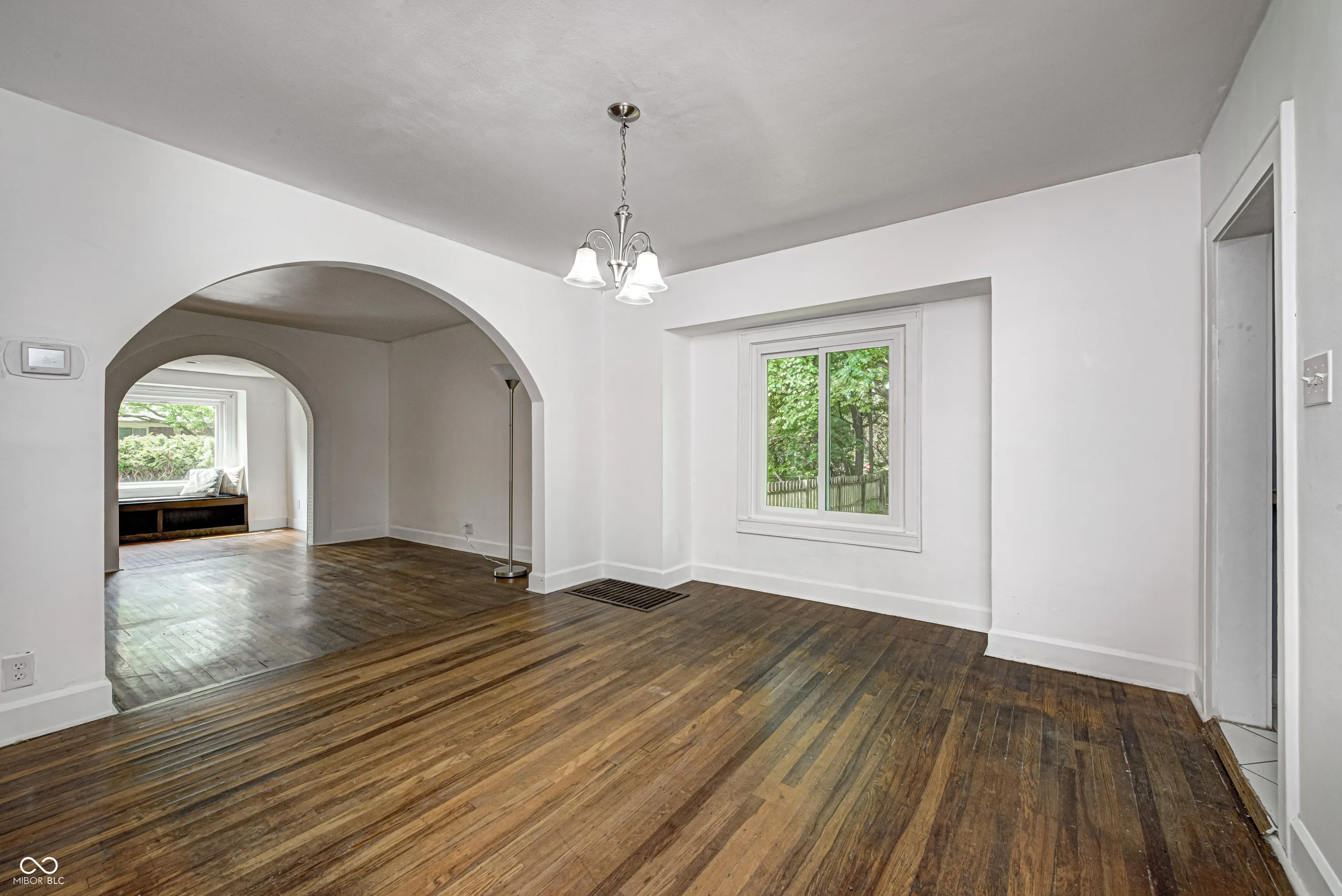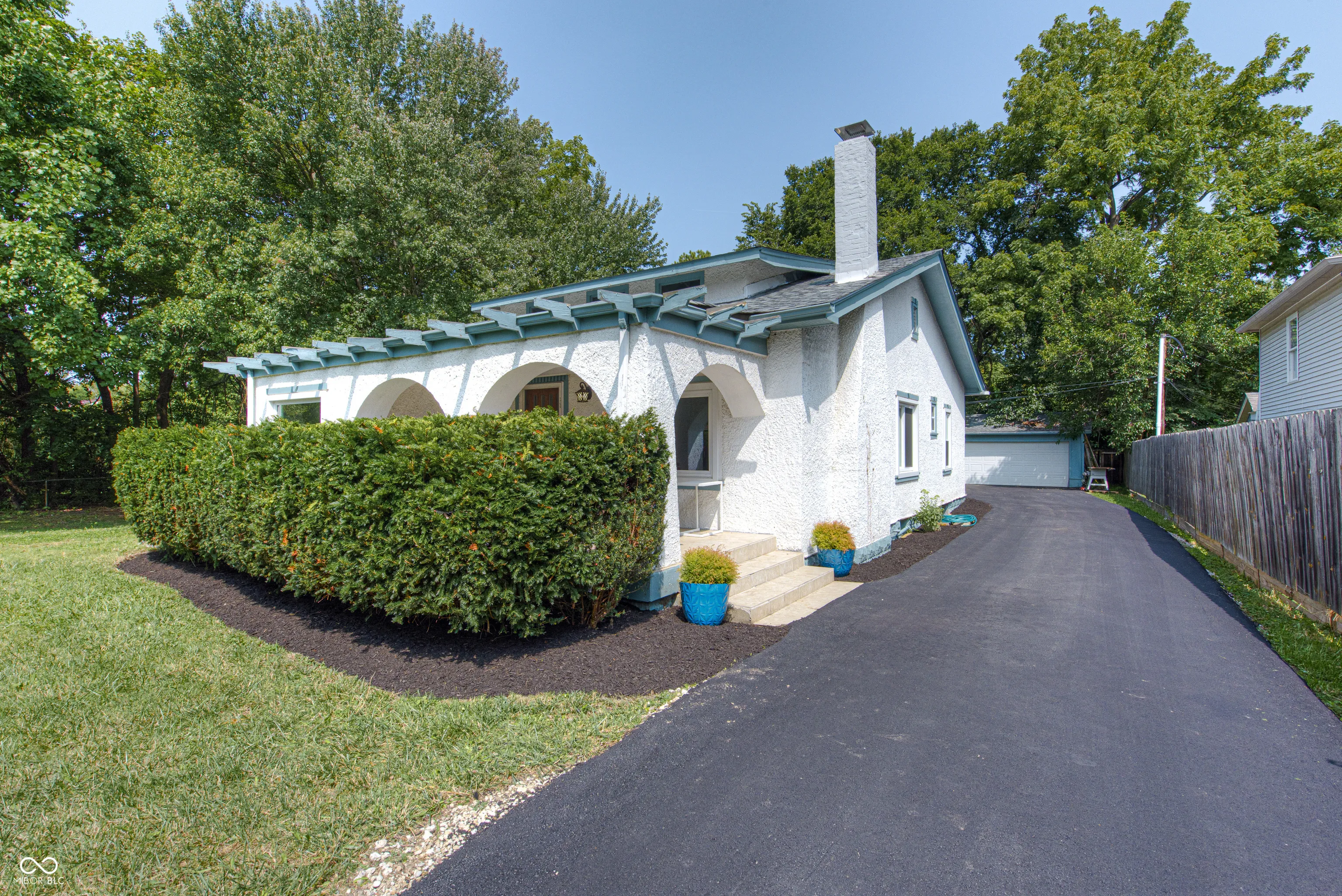 1938 Spanish Style Ranch – 2 BR plus den/home office on a 1/3 acre lot. Love the original hardwood floors throughout, the architectural style with its arched openings of the covered front porch that carry through to the inside of the home. The living room has built-ins & a fireplace, there is a cozy home office/ den with a large picture window and built-in bookshelves. The kitchen has been updated with new cabinets, butcherblock counters and appliances. Formal dining room with large picture window. New windows (2021), new driveway (2024), new breaker box with service connection/ weather head (2024). Up-dated plumbing & 5 year old roof. Full unfinished basement has been water proofed. Two car garage nicely tucked away in the corner. Great sunny fenced lot with raised beds ideal for your urban garden. This home is move-in ready.