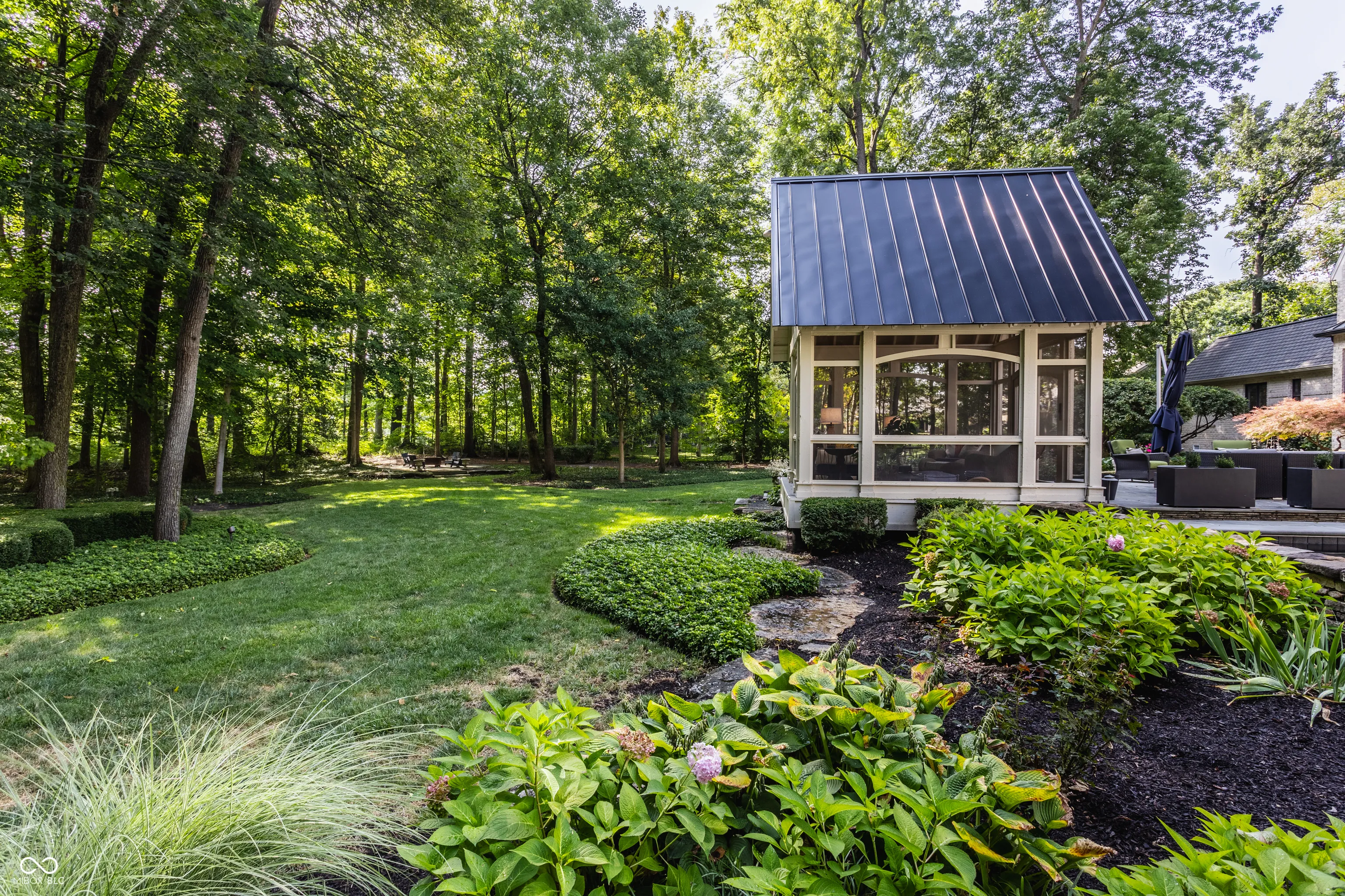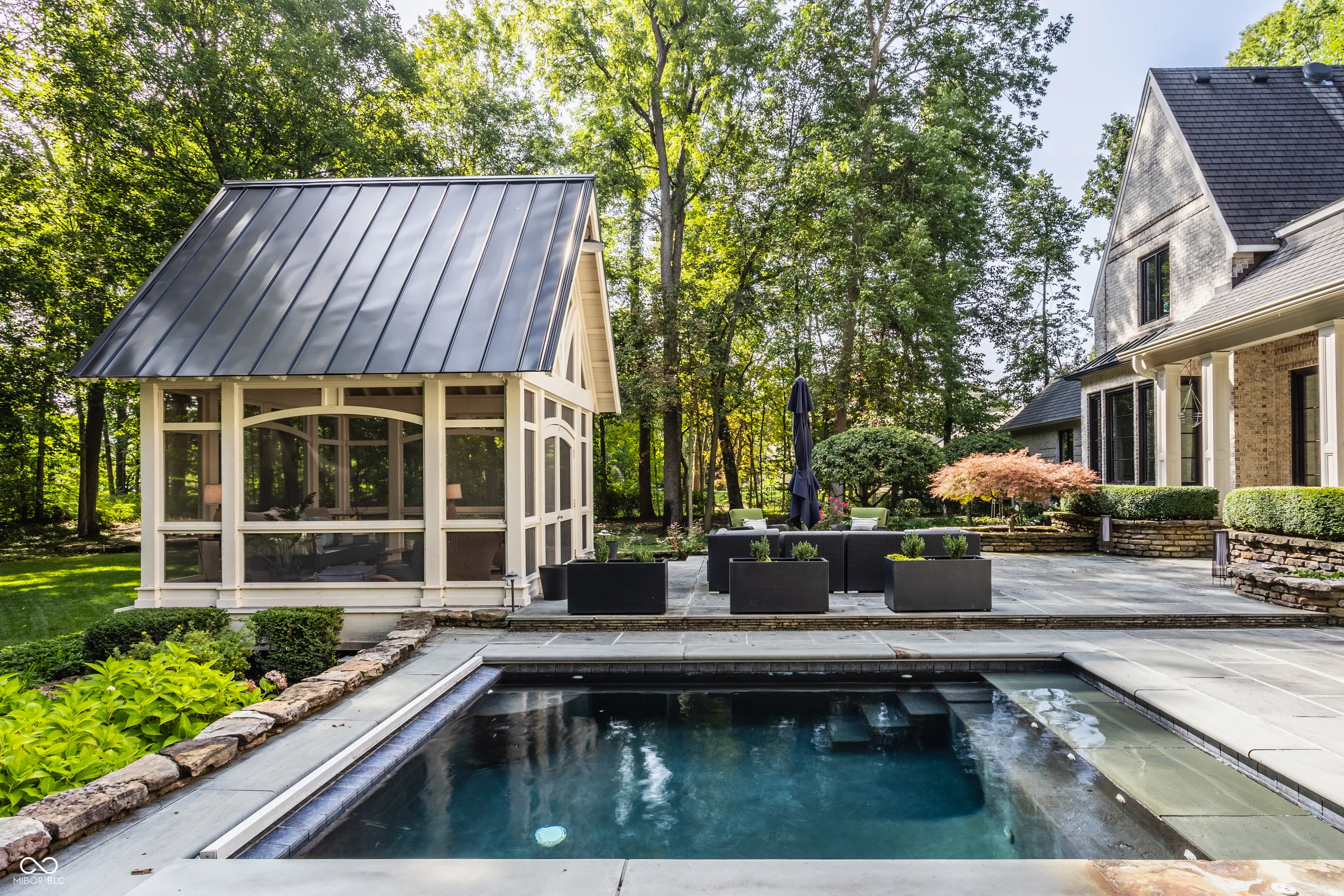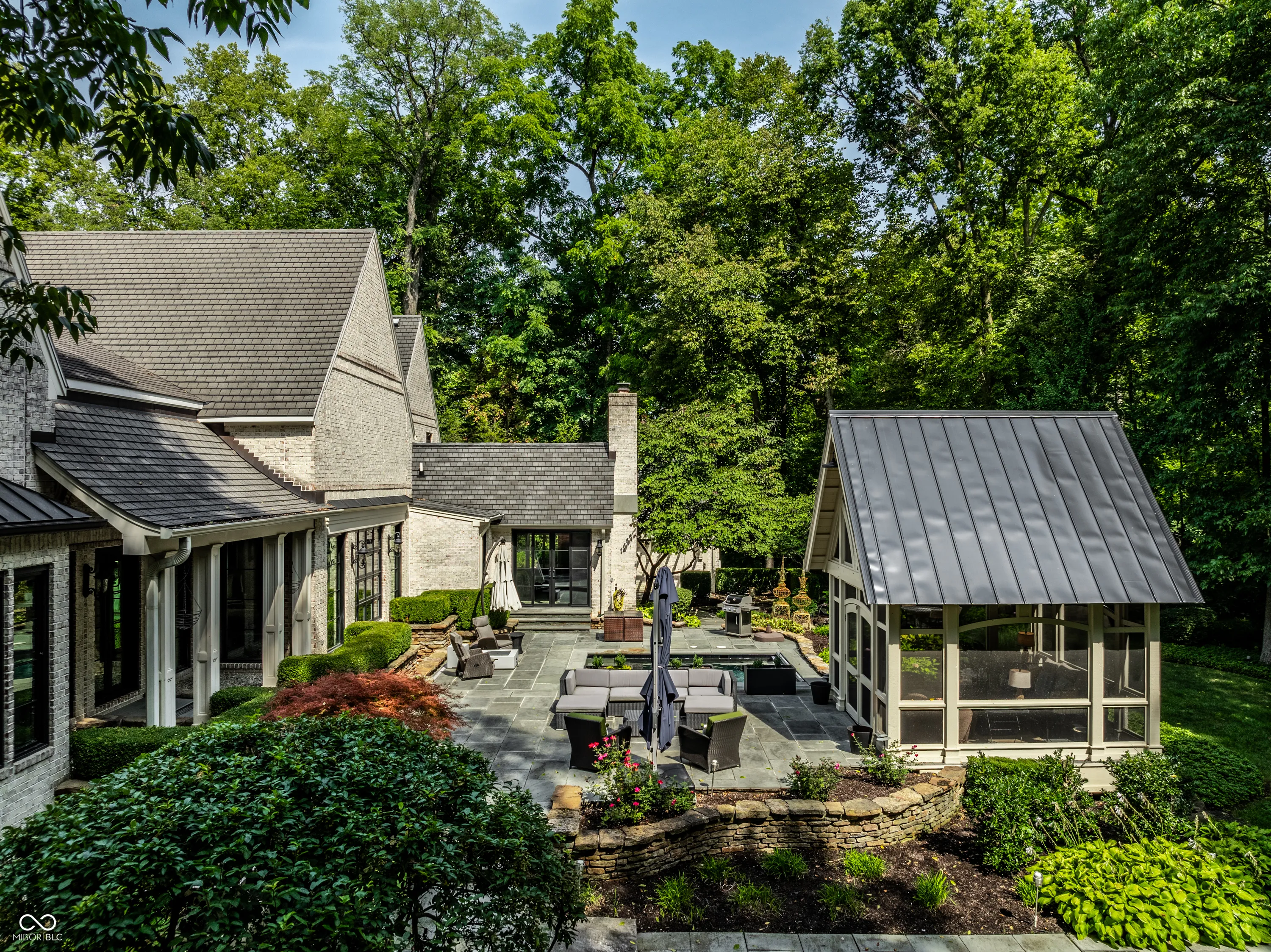 Nestled in a beautiful, 1.3 acre park-like setting, this exquisite residence is a masterpiece of style and sophistication, seamlessly integrating indoor and outdoor living. The backyard is a true entertainer’s haven, featuring a plunge pool, charming gazebo, and cozy firepit! Step into the grand 2-story entrance and be welcomed by an open floor plan that flows seamlessly into the formal dining room, bathed in natural light from a stunning barrel-vaulted ceiling, floor-to-ceiling windows with access to the outdoor living space. The sleek kitchen boasts double islands, a Wolff Oven, Sub-Zero fridge, a 6-burner gas cooktop with griddle, and a breakfast nook. The living room impresses with wall-to-wall windows and a modern copper fireplace, while the family room offers a walkout to the outdoor space, a fireplace, and vaulted ceilings. The main floor primary suite features breathtaking yard views, abundant built-ins, and separate dual bathrooms with custom walk-in closets. One side includes a skylight, soaking tub, and spacious walk-in closet with custom features, while the other side offers a rain shower and custom cabinetry. Upstairs, find 4 additional bedrooms and 3 full bathrooms. The lower level offers every amenity imaginable with a theater room, rec room, exercise space, spa room, and wet bar-perfect for leisure and entertainment! This dream home truly has it all.