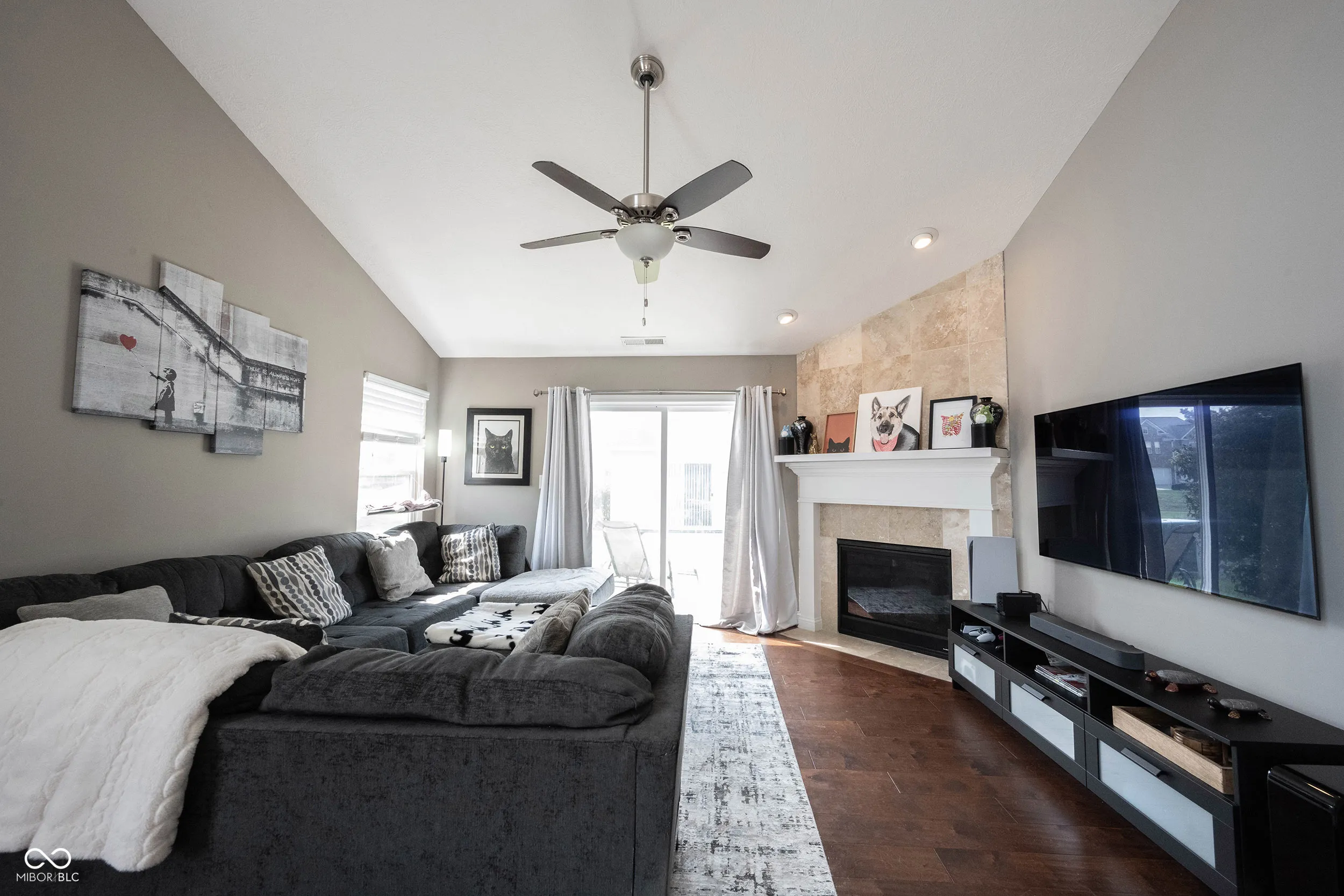 You deserve the maintenance-free lifestyle this sun-drenched end unit condo offers in a prime Fishers location. Soaring ceilings enhance the openness of this property perfect for everyday living & entertaining! Cozy fireplace in the great room & gleaming wood floors in the main living area. Kitchen features ss appliances, brkfst bar, custom cabinets, granite & pantry. Main floor primary w/ attached bath & w-in closet. Nice size secondary bedroom also on main. Versatile upstairs loft w/ large closet for storage makes a great rec room, office, exercise room, craft room, etc. Patio for outdoor relaxing. Attached 2-car garage. Walkability is amazing at this property…walk to restaurants & shopping at Fishers District & easily do your grocery shopping at Kroger!