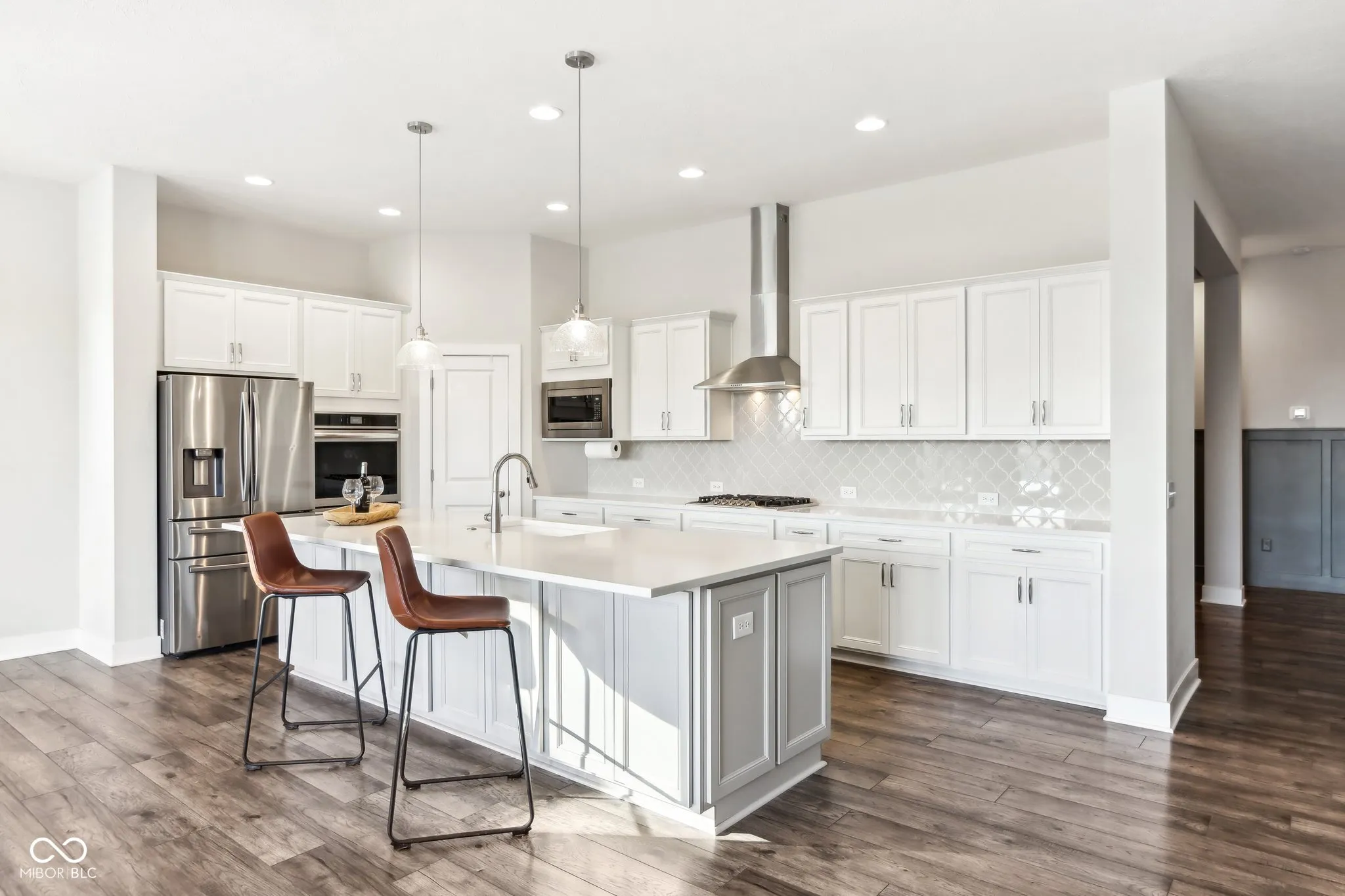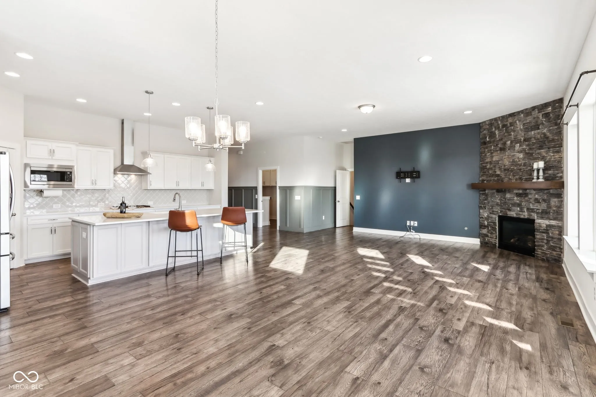 Why build? Take advantage of this move in ready ranch with finished basement. Impressive, luxurious & spacious living experience with 5 bedrooms & 4 full bathrooms, 10′ ceilings & finished basement. The open floorplan & gourmet kitchen with quartz countertops, oversized 10.5′ Island, soft close doors & drawers, vent hood, gas cooktop, double oven w/ convection, air fry, steam baking spoil anyone who loves to cook and entertain. Island has cabinets on both sides. The living room’s stone wall gas fireplace adds a touch of elegance and warmth. Abundance of windows gives warm lighting throughout home. The expansive primary suite is a true retreat with its own fireplace, spacious bathroom with double sinks, large W/I shower & 14×10 closet. Flex room on main level offers versatility, whether you need an office or formal dining room. LVP flooring throughout main level is ideal for pets, making it both stylish and practical. Mudd room has laundry & convenient folding countertop, extra cabinetry for tools & large boot bench to organize shoes, backpacks & jackets. The finished basement provides additional space for entertainment, work outs or relaxation, with multiple daylight windows, plenty of storage, 5th bedroom & 4th full bathroom. The large covered patio & extra paver patio are perfect for enjoying evenings outside, hosting cookouts or simply relaxing. Spacious yard with irrigation system, invisible fencing & large flowerbeds adds to the home’s appeal. Driveway can be expanded with the possibility to add another garage for cars, workshop or storage.