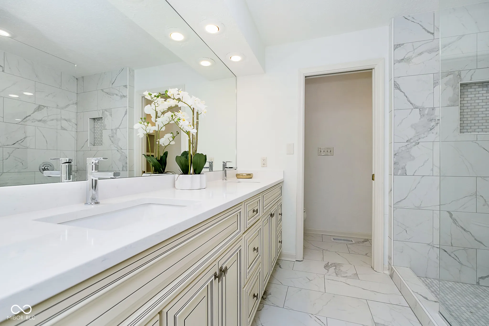 Remarkable maintenance free living at popular and luxurious Springmill Lakes at Tamarack will absolutely delight you. Home features include a beautifully remodeled 2BR/2BA- 1 Level paired patio with a remarkable combination of gleaming hardwoods, brilliant porcelain tiles and carefully woven sculptured carpet. Sparkling SS Whirlpool appliances, tasteful quartz countertops, side by side sink w/updated Delta faucets, recessed lights and 2 oversized pantries complete your new gallery kitchen. Sip your morning coffee/tea in your bright and airy floor to ceiling windowed Breakfast Room then entertain your guests with elegancy under an old charm chandelier in your Formal DR Room that leads to a robust entertainment area complete with wood burning fireplace, built in bookcases, convenient beverage center with butler’s sink- plus a 4-season heated/cooled Sunroom with glorious views of the outdoors! Full joy comes when it is time to relax in your Homeowners Suite with an accessible oversized tiled shower, double sinks and designer walk-in closet!