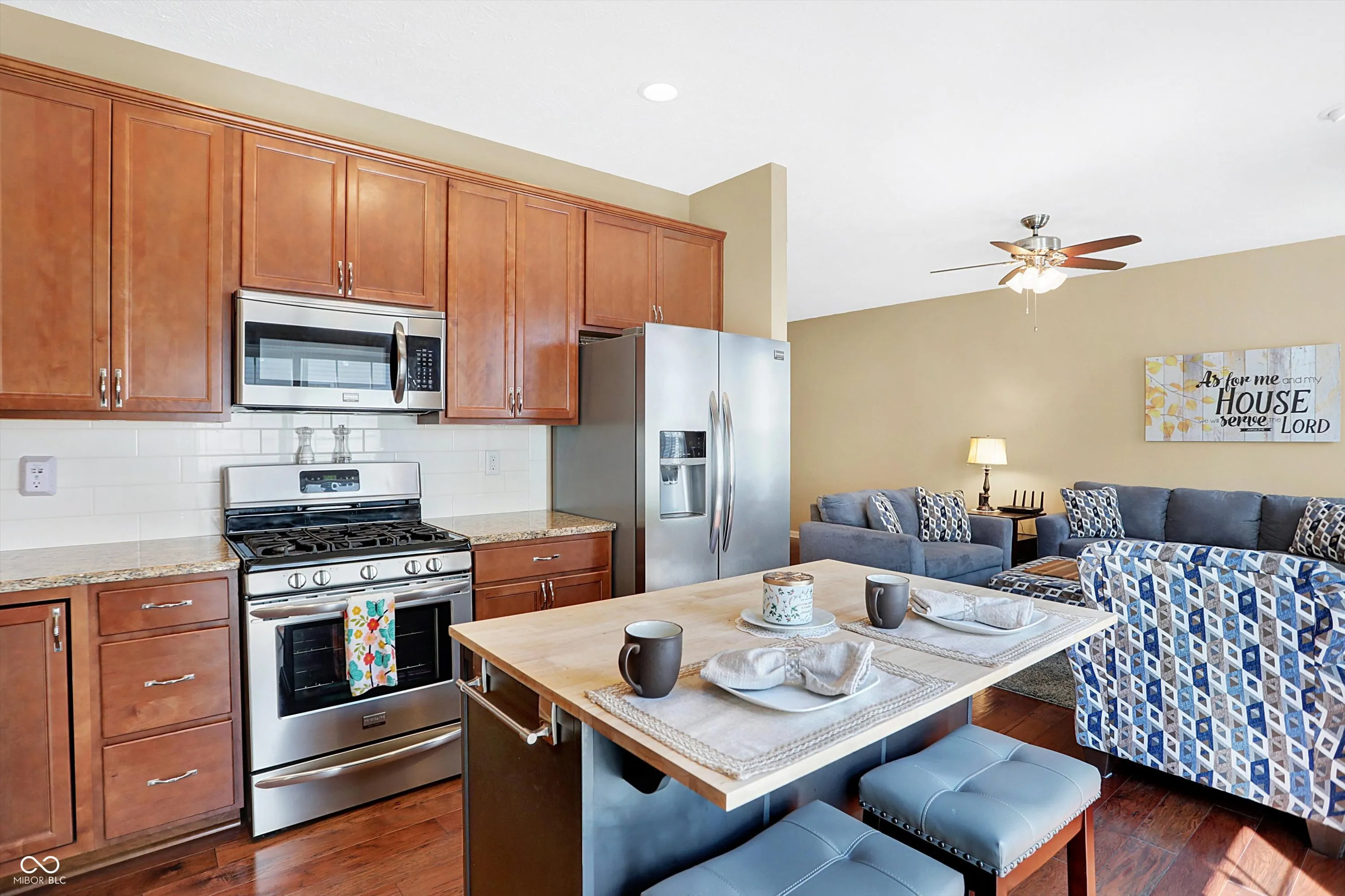 Welcome to this very desirable, end unit townhome, built in 2016 with all the bells and whistles. Upon entering this charming home, you’re immediately greeted by the warmth and elegance of beautiful engineered hardwood floors throughout the main level and a cozy gas fireplace. Experience open concept living and a lovely updated kitchen which boasts granite countertops, subway tile backsplash, 42” cabinets, pantry, gas range, stainless steel appliances and center island. This fabulous floor plan also offers a utility/mudroom and large storage closet as you enter from the 2 car garage, which has plenty of space for parking with added ceiling storage racks. Outdoor living is at its best while you enjoy relaxing, grilling or entertaining on the private 10×10 patio surrounded by a low maintenance vinyl, full privacy fence. Upstairs you will find a quiet retreat in the loft space which is central to 3 spacious bedrooms, guest bath with granite and convenient upstairs laundry area. The amazing primary bedroom suite offers a large walk-in closet and a delightful bath with a raised double sink vanity, oversized walk-in shower, ceramic tile floors and a separate toilet room. Additional upgrades include: Reverse osmosis drinking water unit, furnace humidifier (3 yrs. old), 220 volt outlet in garage for refrigerator and freezer, fireplace blower offers increased efficiency with home heating, water heater (2 yrs. old), Kinetico water softener, front storm door, camera doorbell and security system. Unbeatable location, so close to everything you may need or want to do. Hamilton Southeastern Schools.