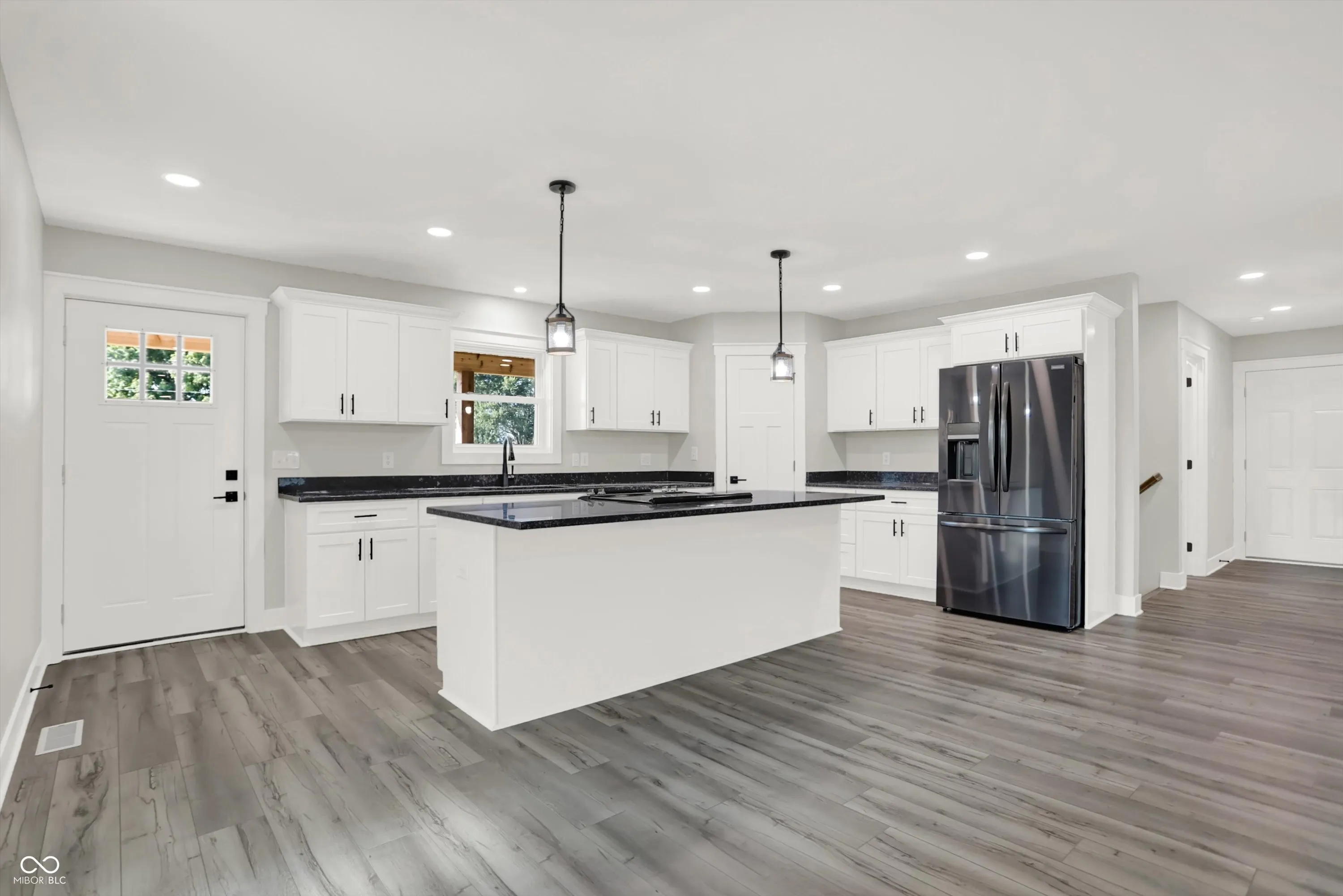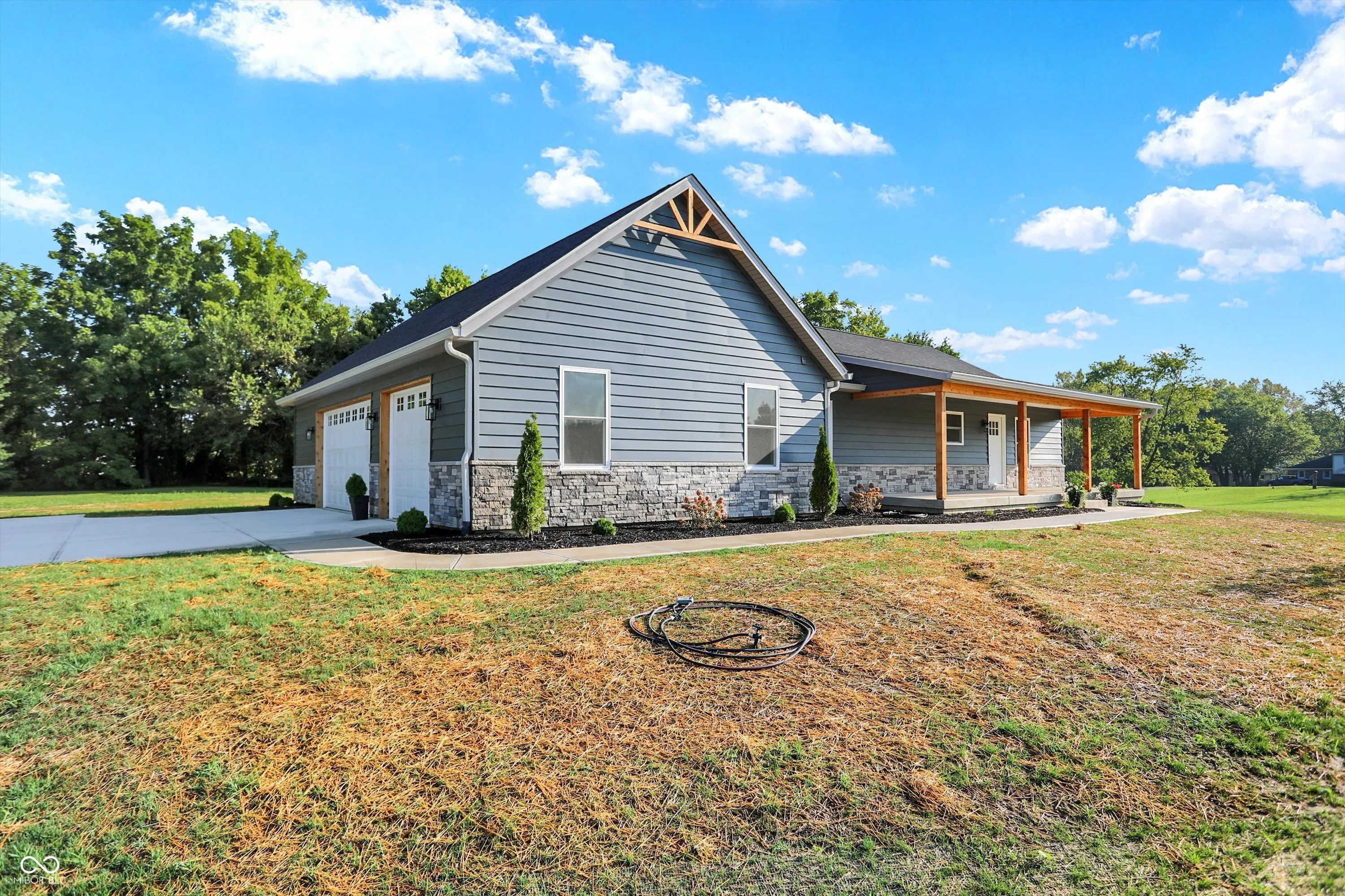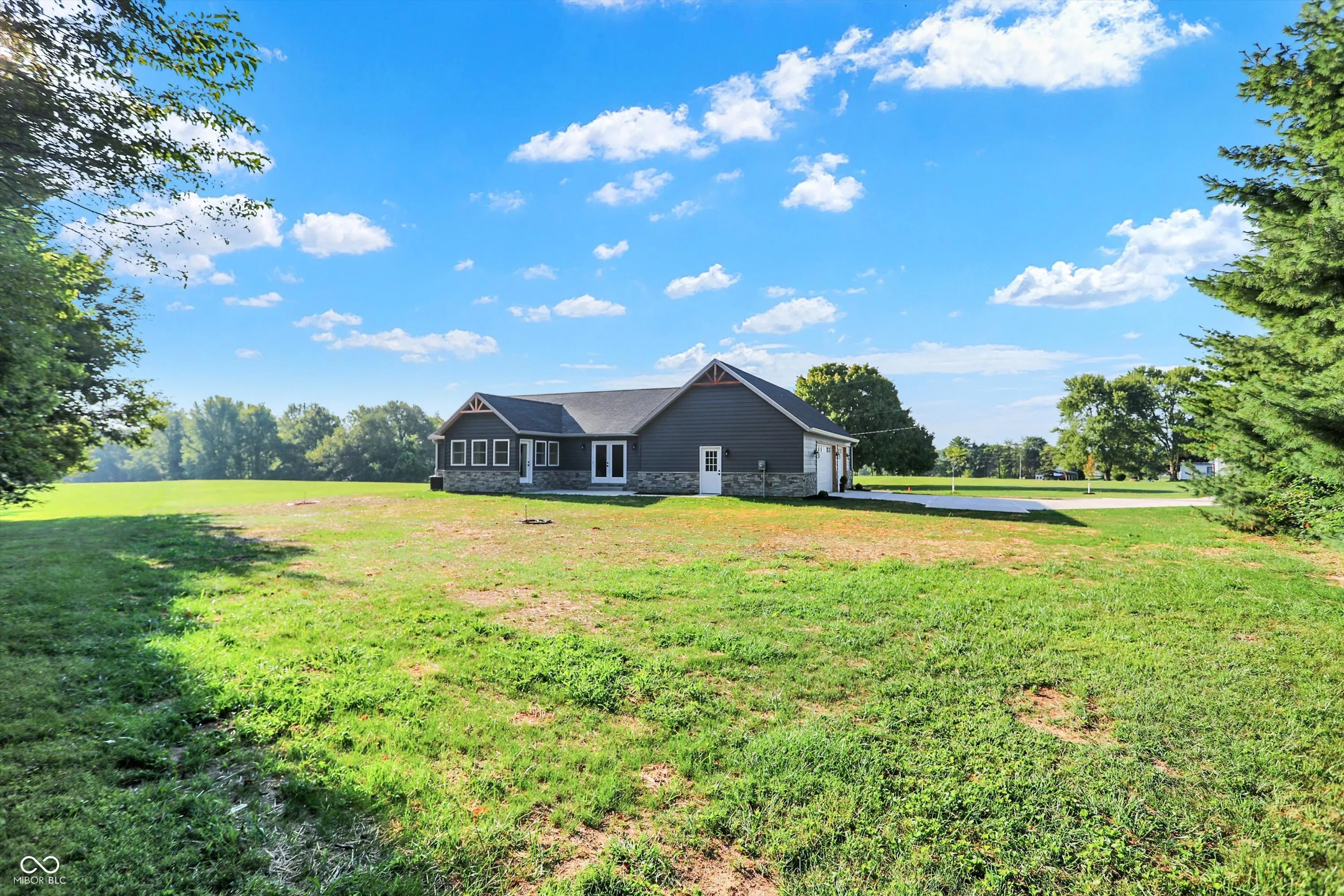 STUNNING. BRAND NEW. READY FOR YOU. Over 3,500 sq ft of living space, 5bdrms/3 full bths, w/ a full finished basement on 1.06 acres! Thoughtfully designed inside and out! Situated to enjoy a remarkably secluded backyard surrounded by mature trees or enjoy the breeze from the 36′ covered front porch! Enter into the classy kitchen w/ white shaker cabinets, steel grey granite, and brand new black stainless appl. Appreciate the open LR concept and remarkable views from the sunroom w/ rear patio access! Split floor plan with main level master suite boasting of a walk in closet and private exit to the rear patio! Access the oversized 3 car gar w/ 1,008 sq ft & 8′ tall overhead doors or walk across the hall to the spacious laundry rm w/ wash sink! 2 more bdrms and guest bth on the main levell. Head downstairs to entertainment central w/ nearly 1,000 sq ft of open space, 2 bdrms, a full bth, mech rm, and den/storage rm! Enormous space inside and out, rare setting, and prime location in small town USA, Morristown, IN!