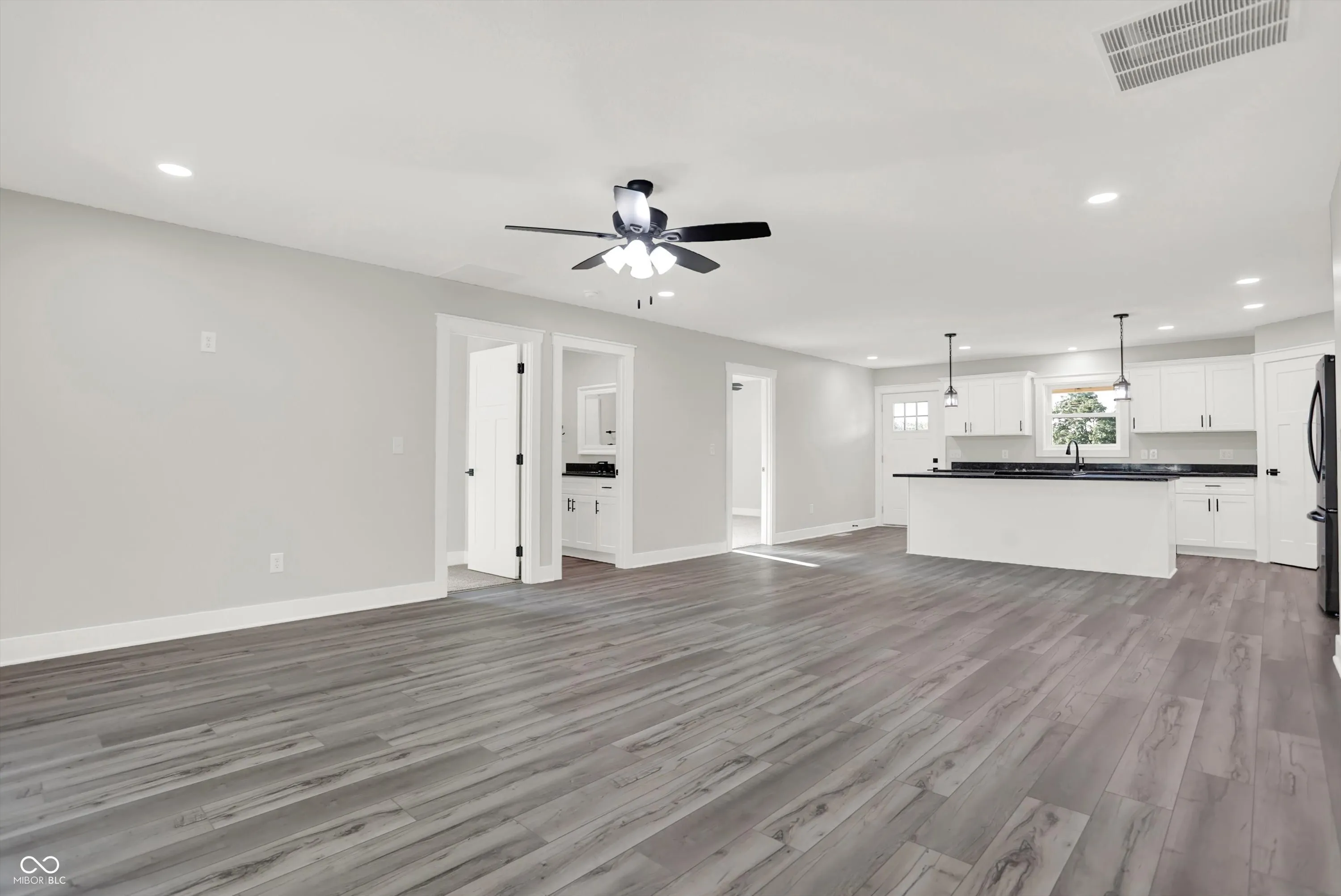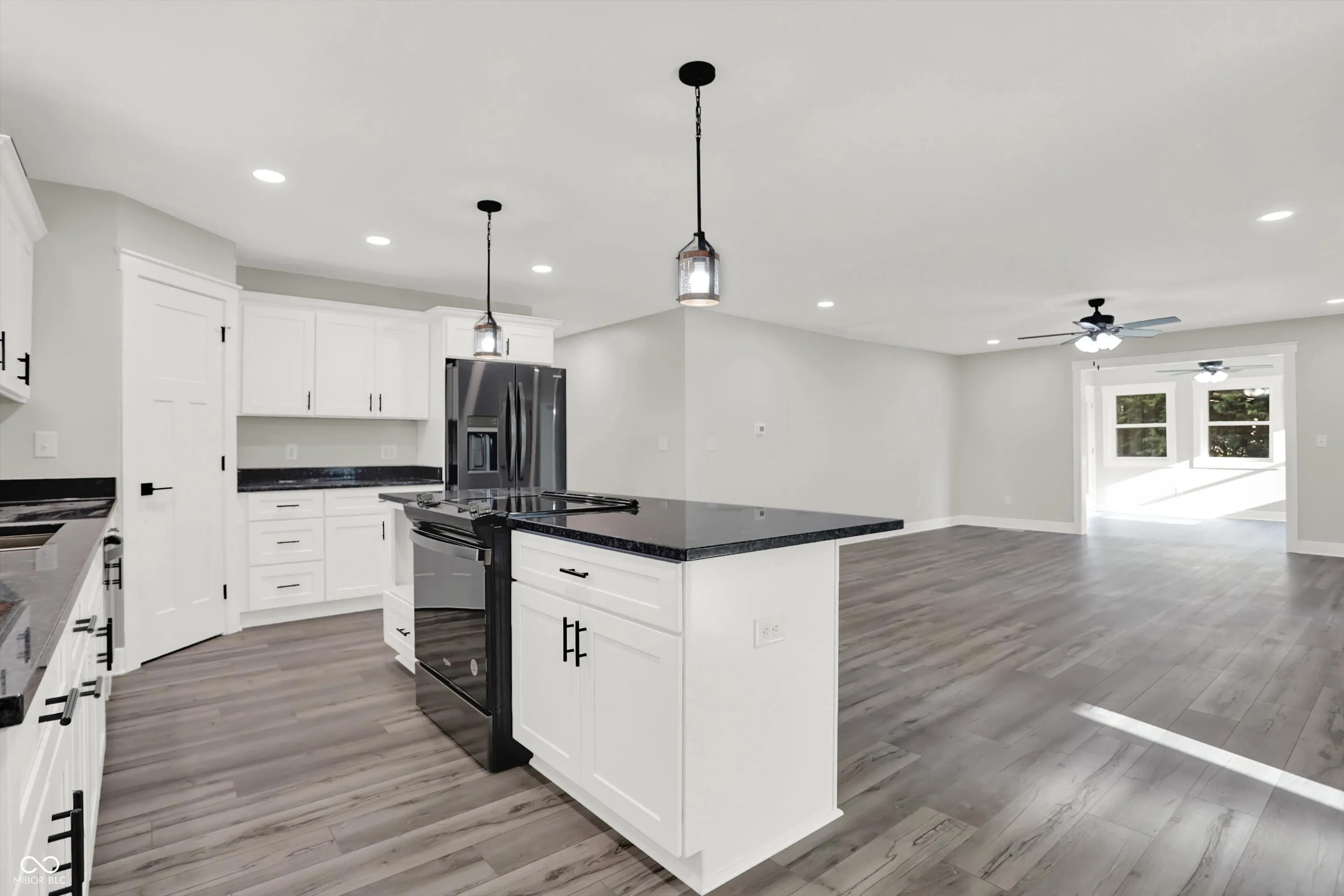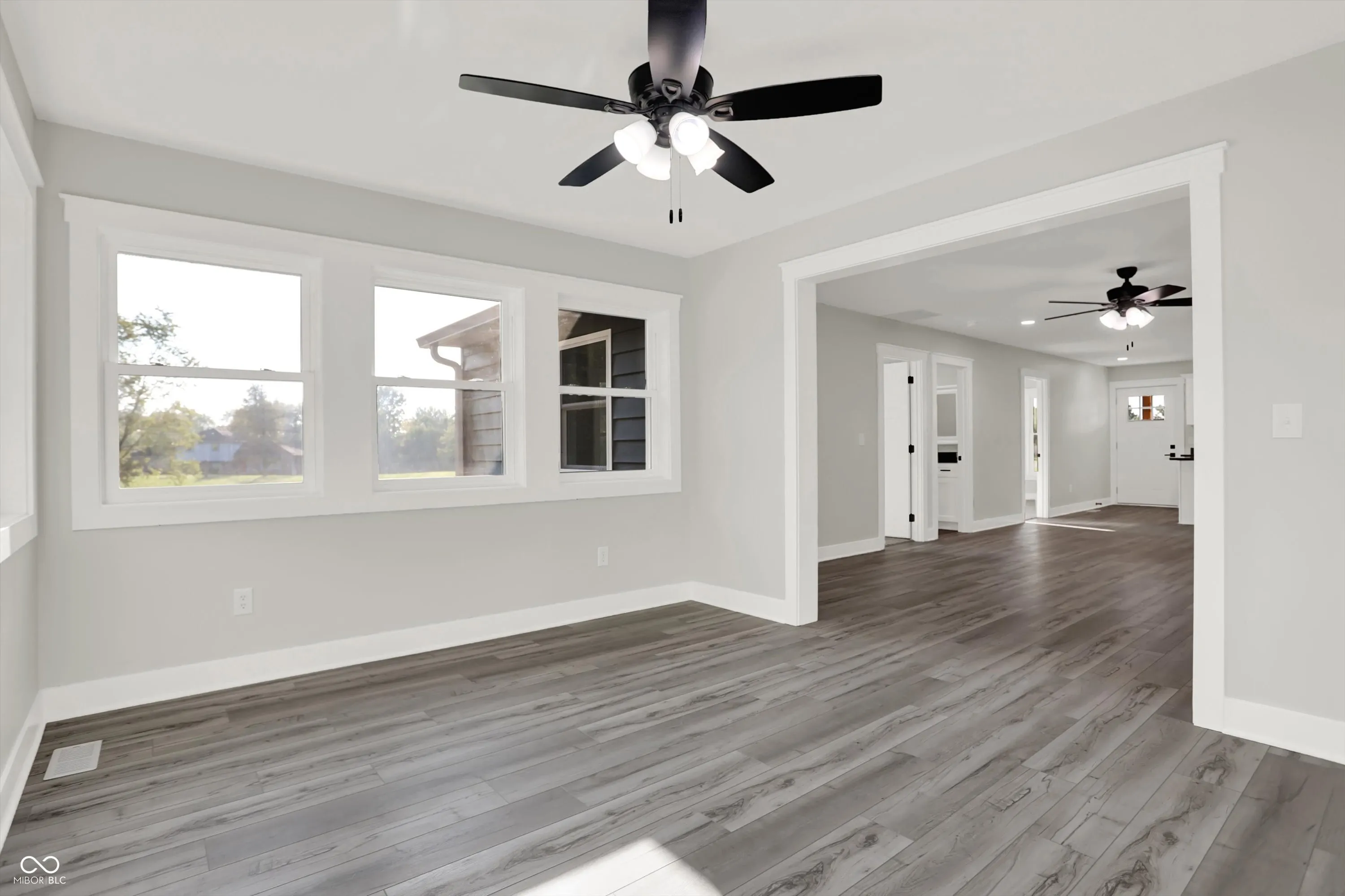 STUNNING. BRAND NEW. READY FOR YOU. Over 3,500 sq ft of living space, 5bdrms/3 full bths, w/ a full finished basement on 1.06 acres! Thoughtfully designed inside and out! Situated to enjoy a remarkably secluded backyard surrounded by mature trees or enjoy the breeze from the 36′ covered front porch! Enter into the classy kitchen w/ white shaker cabinets, steel grey granite, and brand new black stainless appl. Appreciate the open LR concept and remarkable views from the sunroom w/ rear patio access! Split floor plan with main level master suite boasting of a walk in closet and private exit to the rear patio! Access the oversized 3 car gar w/ 1,008 sq ft & 8′ tall overhead doors or walk across the hall to the spacious laundry rm w/ wash sink! 2 more bdrms and guest bth on the main levell. Head downstairs to entertainment central w/ nearly 1,000 sq ft of open space, 2 bdrms, a full bth, mech rm, and den/storage rm! Enormous space inside and out, rare setting, and prime location in small town USA, Morristown, IN!