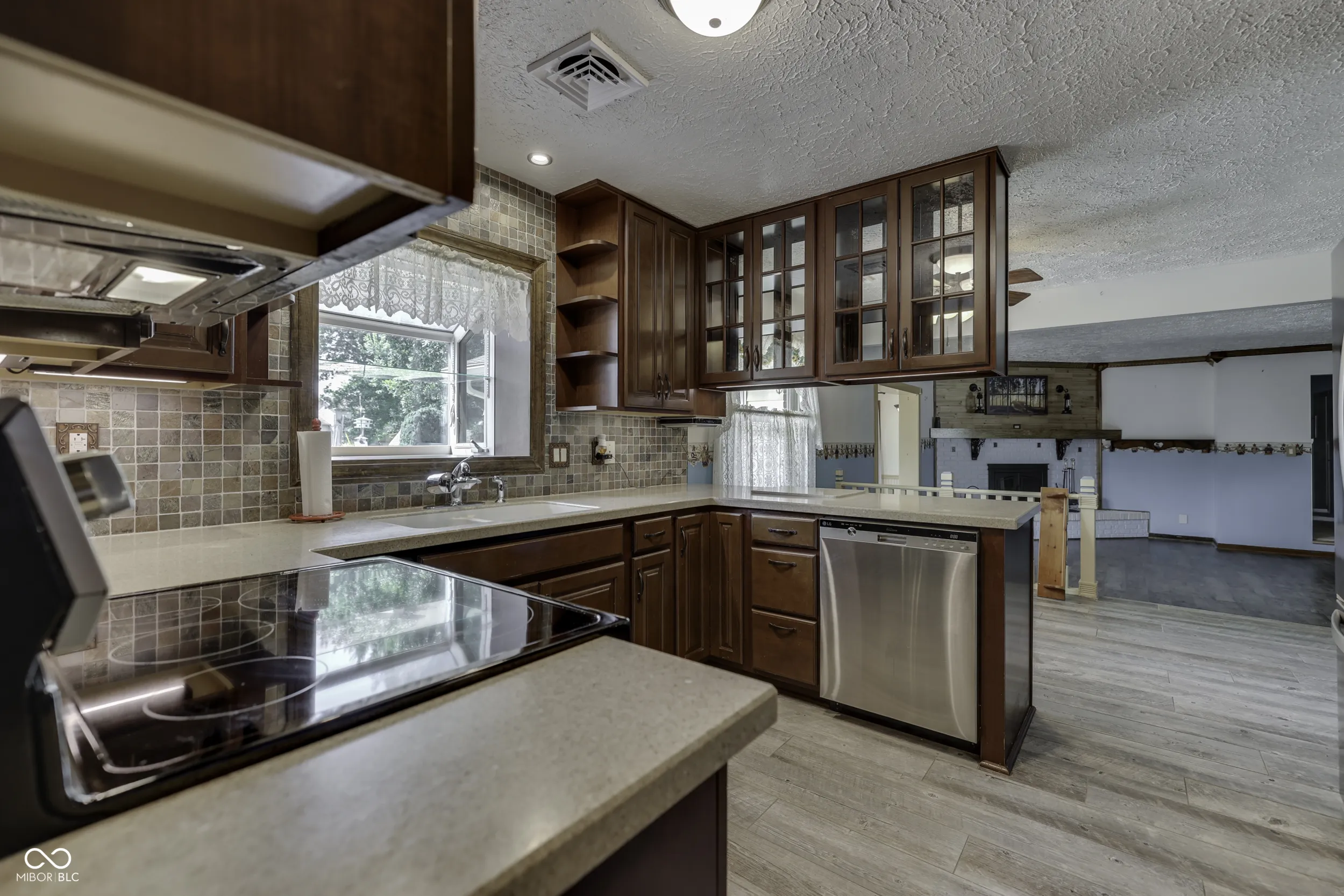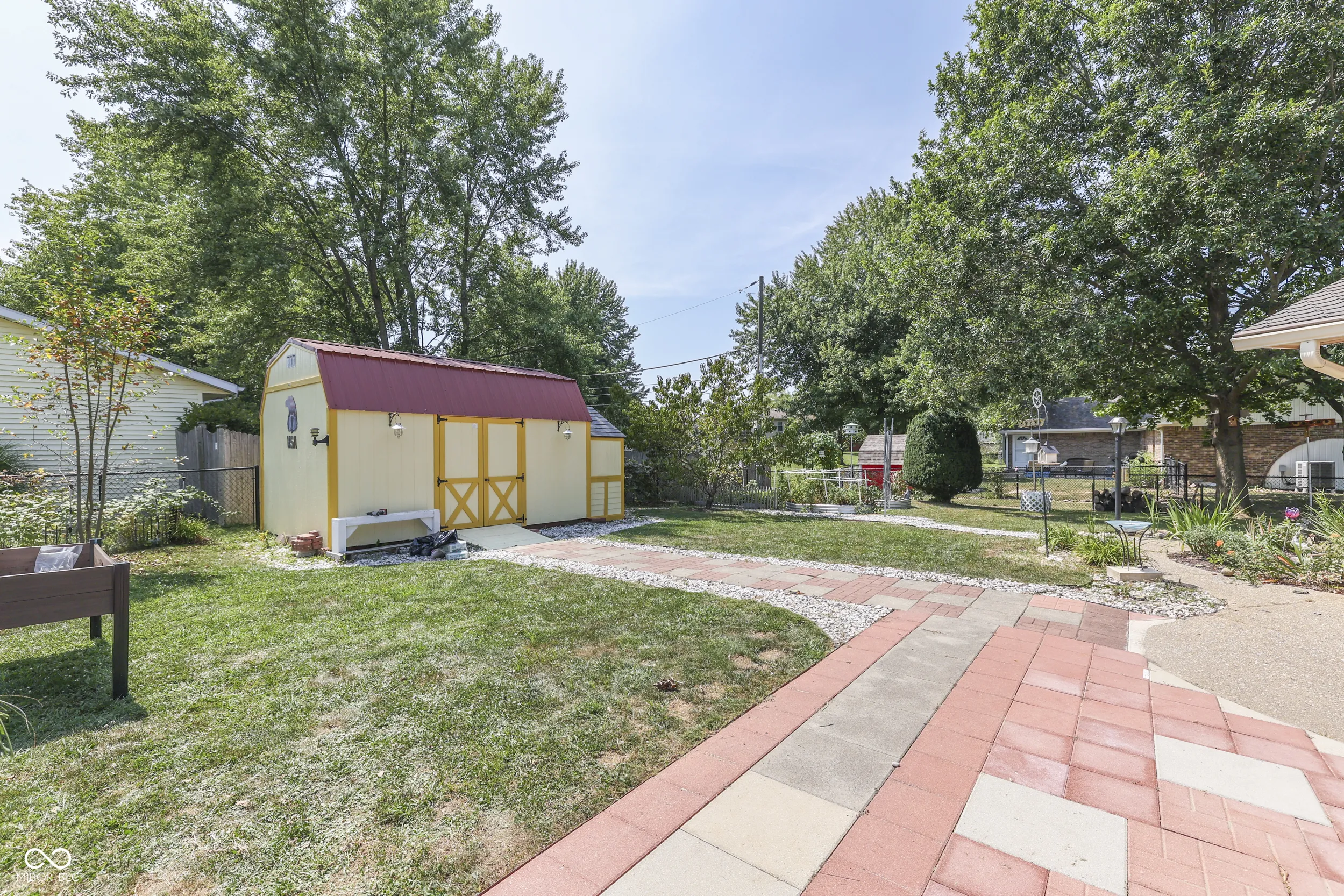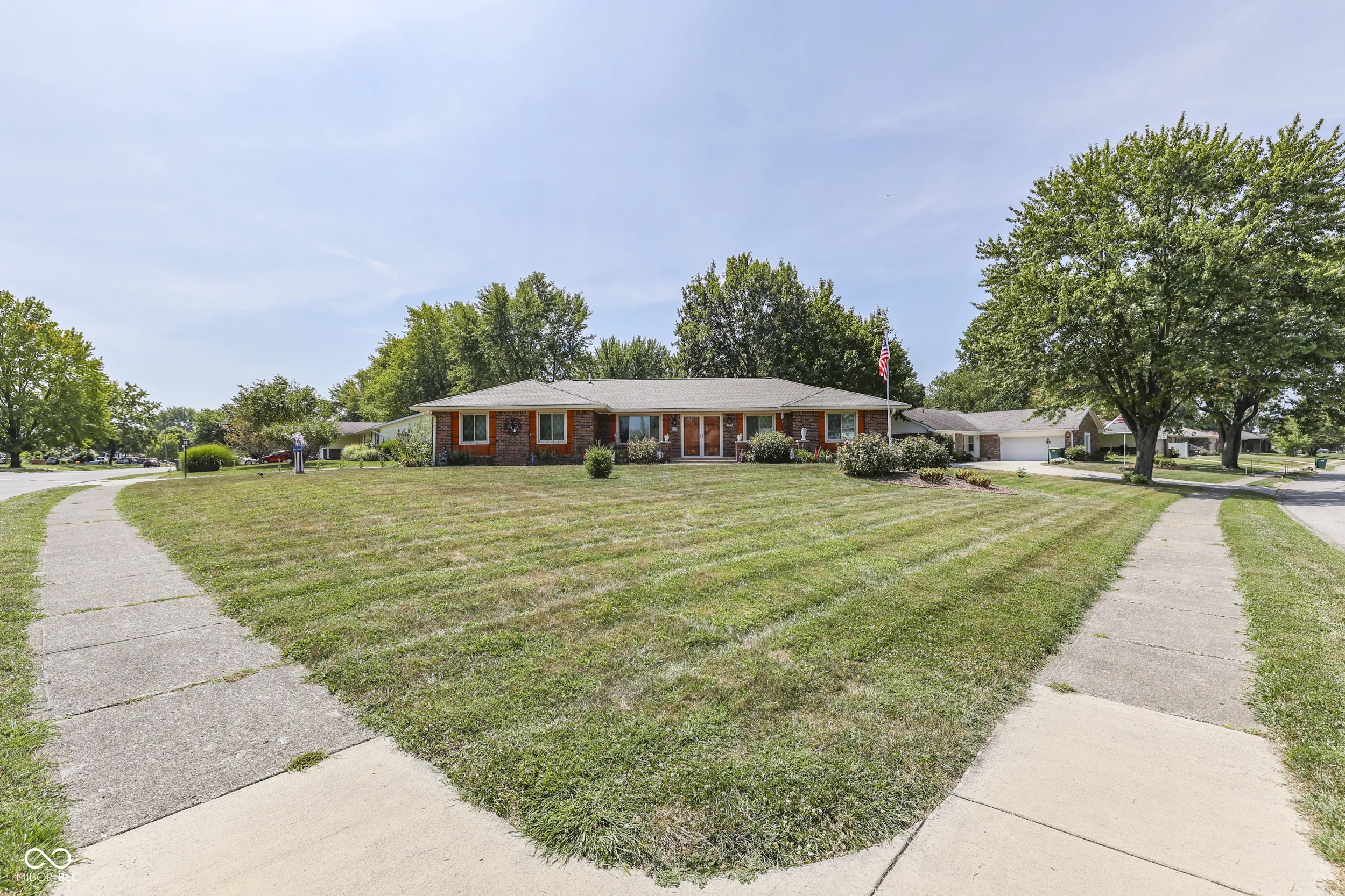 *Camelot* 3 BEDROOM + 2.5 BATH *Brick Ranch* on Large Corner Lot! Features: Ceramic Tile Entryway; Formal LIVING ROOM (or Perfect Dining Room!); Large Open FAMILY ROOM: Engineered-Hardwood Floors + Wood Burning Fireplace; Lovely SUNROOM to Enjoy; Eat-In Updated KITCHEN: Breakfast Bar + New 42″ Cabinets w/Soft Close Doors + Solid-Surface Corian Countertops w/Garden Window above Sink + Pantry w/Pull-Out Shelves (& Cabinets!) + Breakfast Room; LAUNDRY ROOM; PRIMARY BEDROOM: Walk-In Closet + Updated Bathroom w/Tile Floors + Tile Backsplash & New Walk-In Shower; 2 Addt’l Nice-Size Bedrooms; New Water Heater ’21 + New Furnace ’20; 2-Car Side-Load Finished Garage; Large Tiered Concrete Front Porch; 2 Large Aggregate Concrete Patios to Enjoy in Backyard + Awesome 12×16 Mini Barn w/Attic Storage + Apple Trees, Peach Trees & Raspberry/Strawberry/Blueberry Bushes! Large Corner Lot! Fully-Fenced Backyard!