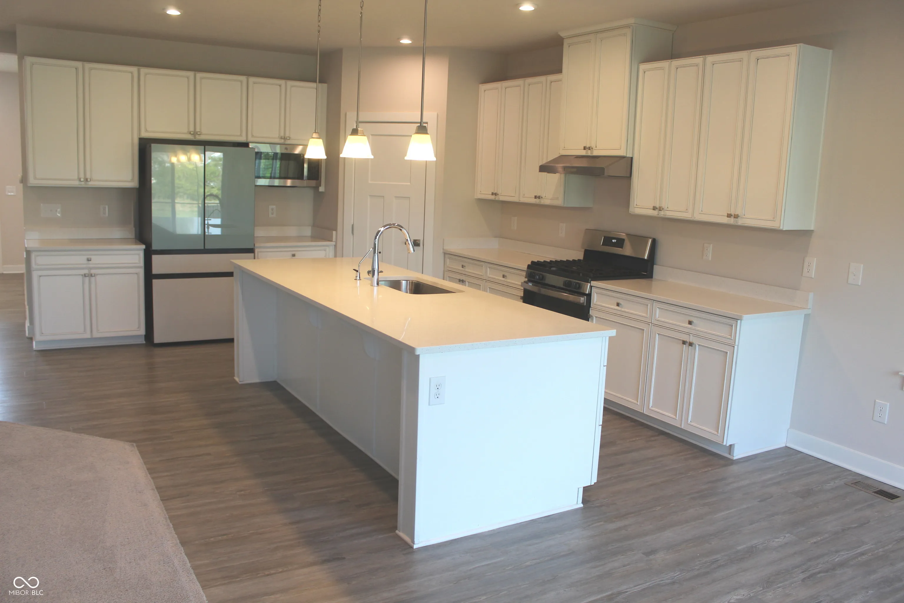 Move-In Ready is how to describe this beautiful two-story home with a basement. Built in 2022 this beauty is nestled into one of Brownsburg’s newest communities. Featuring 5 bedrooms, 3 full baths, basement and a 3-car attached garage. As you walk in, you’ll notice the spacious entryway and to the left a 13×12 space that’s perfect for an office or formal Dining Rm. The Eat- Kitchen features elegant tall white cabinetry, large Center Island/Breakfast Bar, Beautiful appliances, walk-in pantry and popular LVP flooring. The Kitchen is open to a spacious 19×15 Living Rm that’s perfect for entertaining. Also, featured is a main level bedroom with full pass thru en suite. The 2nd level features a spacious 19×12 Bonus Rm and 4 very good-sized bedrooms including the 18×14 Primary BR complete with trey ceiling and en-suite with elegant white cabinetry, double sinks, dual walk-in closets (one in BR & one in bath) linen closet, separate toilet rm & large shower stall. Also, featured is the 2nd level Laundry Rm. The 1380 sq/ft basement is currently unfinished, but features poured concrete walls, full bathroom rough-in, high ceilings, large egress window, dehumidifier and water softener. Everything needed but your finishing touches. All this plus a three-car garage, covered front porch, large back yard with pond & fountain view. All this in popular Brownsburg Schools. This home is a must see!
