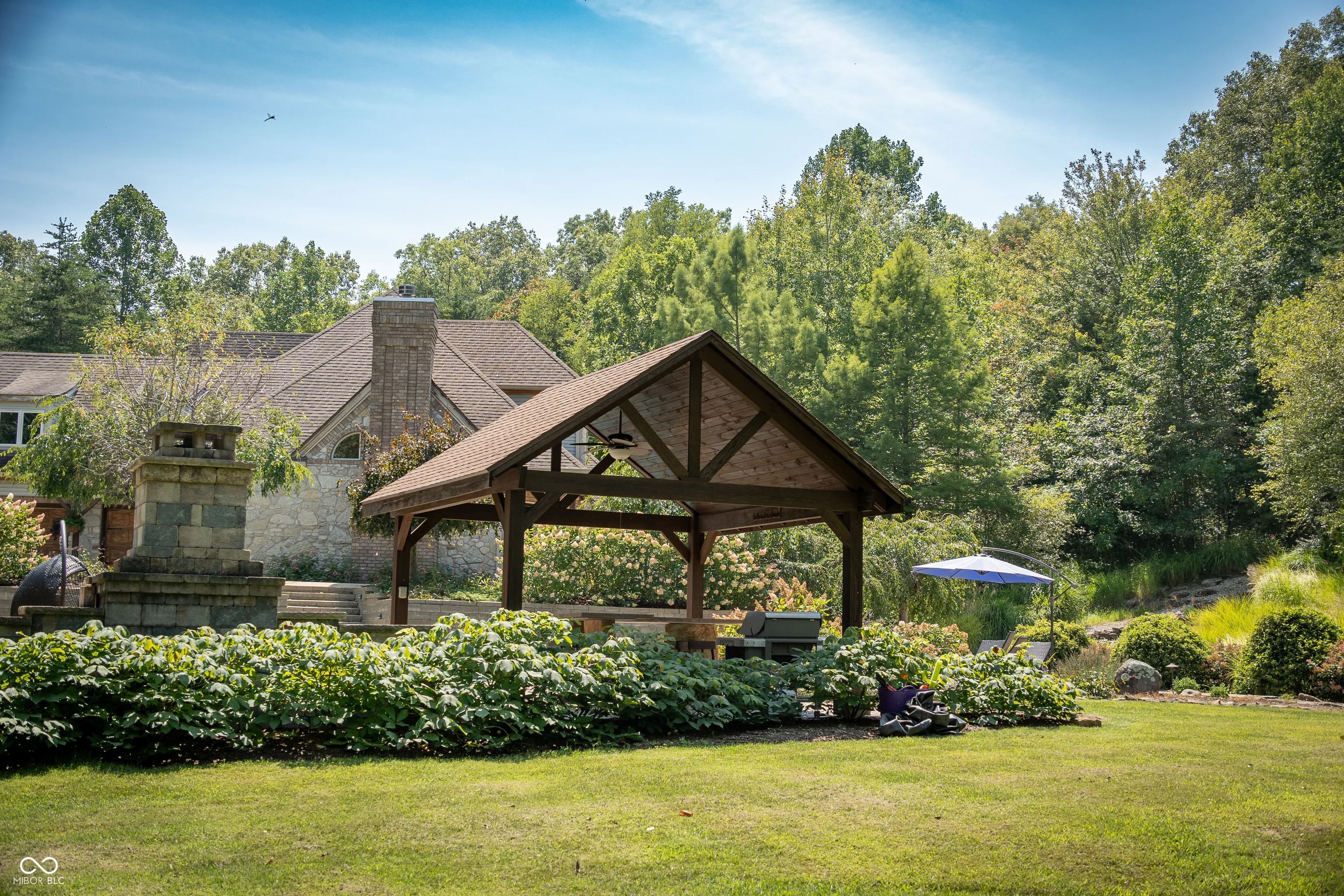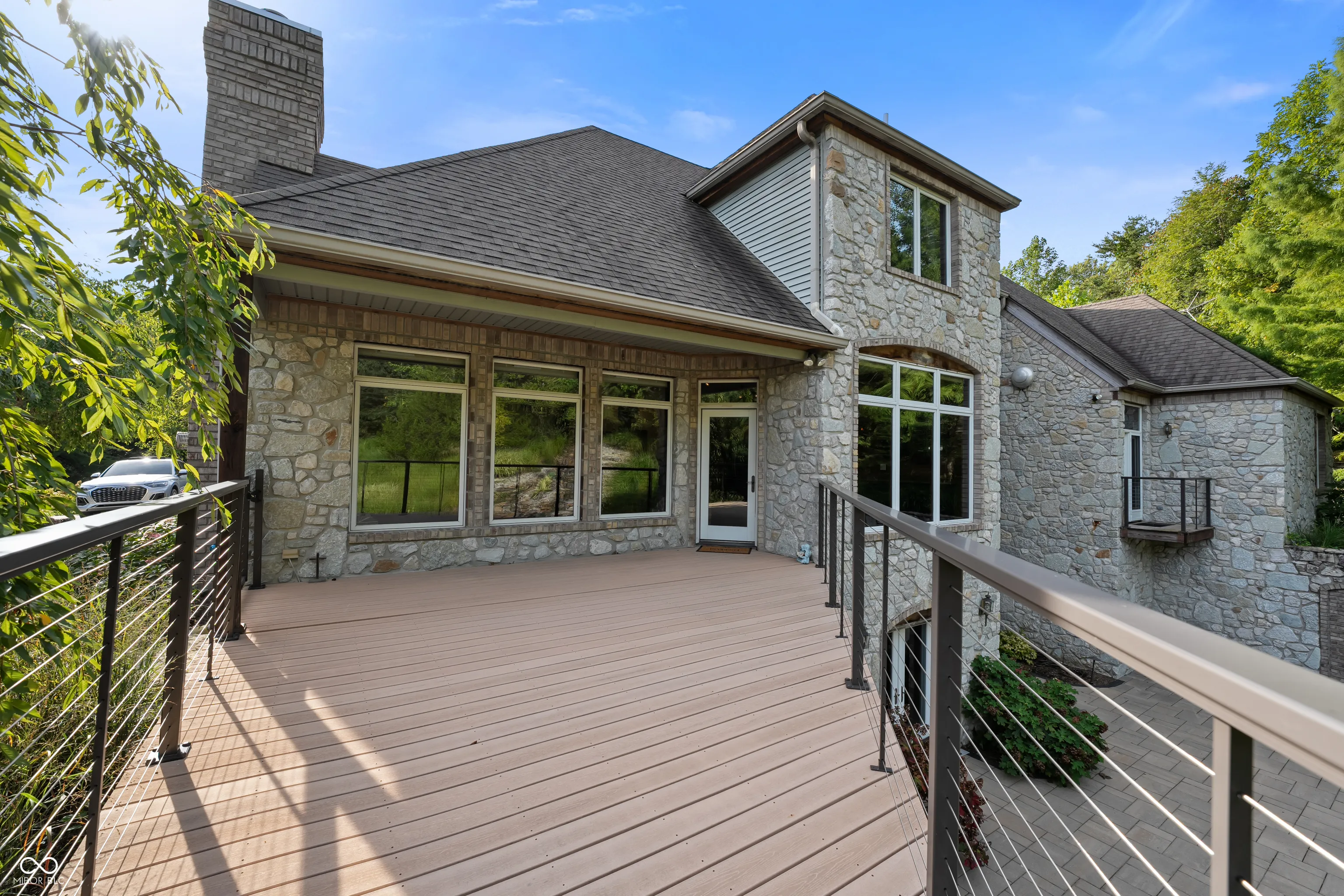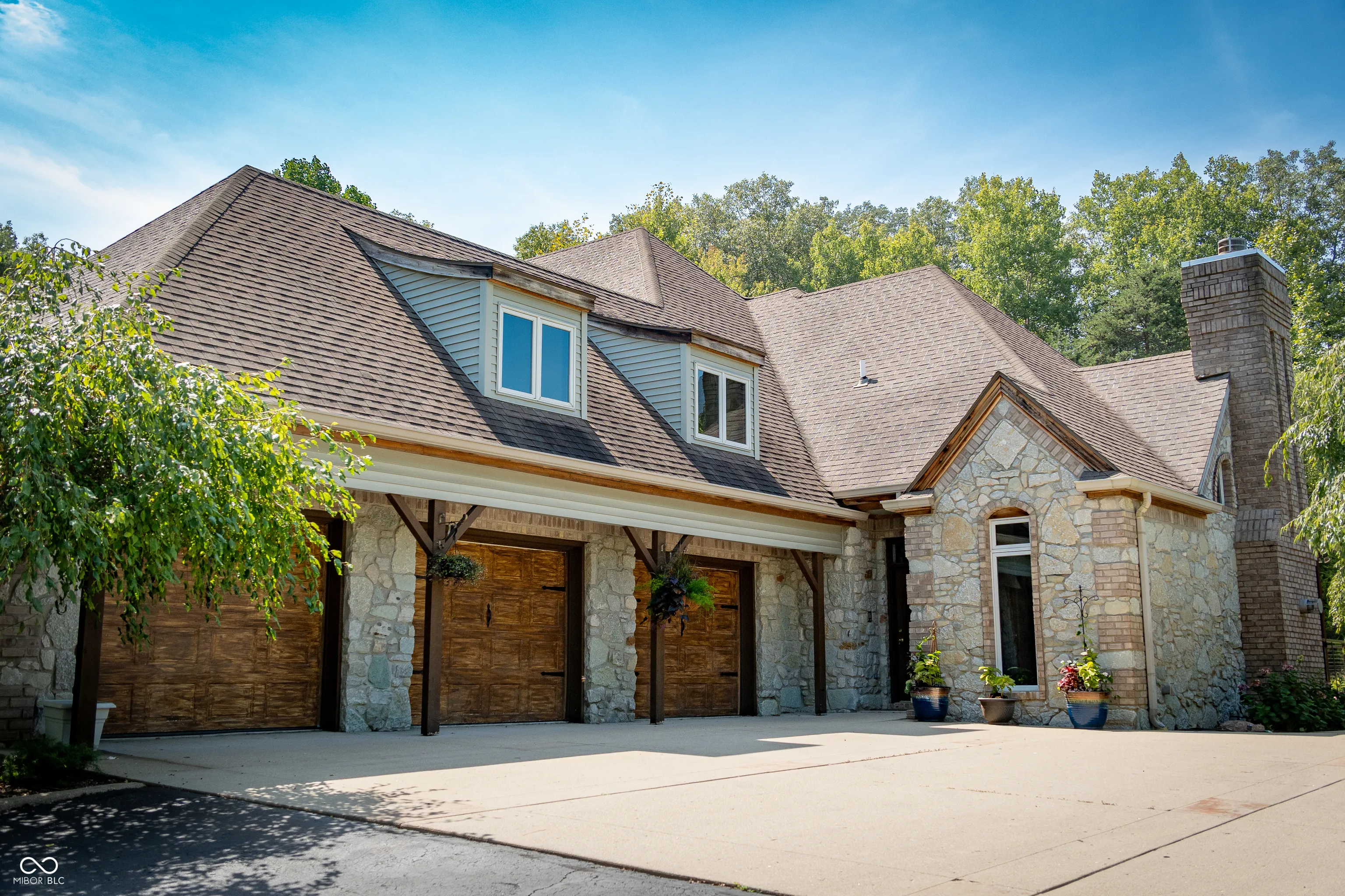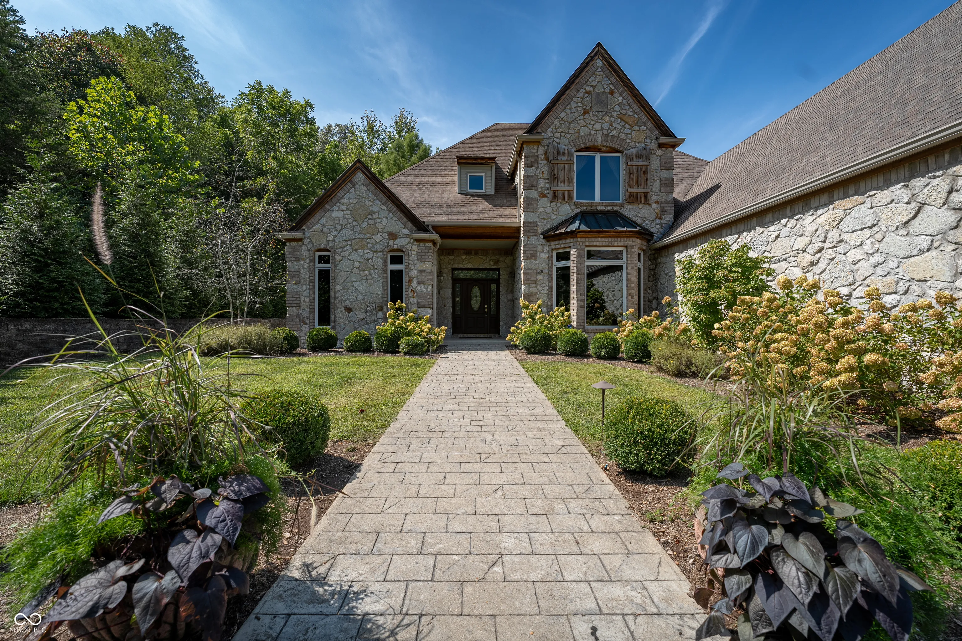 As you enter this exquisite rustic French country home, you are greeted by a grand entrance with a curved stairway. The open formal living and dining room create an expansive atmosphere, while the chef’s kitchen, complete with stainless steel appliances and granite countertops, connects to the family room through the breakfast area. The family room features a gas log fireplace and built-in shelves while opening to a deck that overlooks a lower courtyard with a gas fire pit and a charming koi pond with a waterfall. The main floor’s primary bedroom offers luxury with a walk-in shower, double vanity, and a private deck with a view of the serene lower-level courtyard. Main level also offers an office that could potentially be a 5th bedroom. Upstairs, you’ll find three bedrooms, one with a private bath and two connected by a Jack-and-Jill bathroom and a large living/recreation room. The walkout basement offers excellent entertainment space, featuring a 16-foot-long bar, sink, stove, and refrigerator, along with room for pool tables and game tables. In addition, the basement features a full bathroom and three versatile bonus rooms, offering the perfect space for an office, a home gym, or any other need you may have. Stepping outside, you can enjoy over 9 acres, an in-ground sports pool with walk-ins on both ends, a covered pergola with a bar area, an outside fireplace, and a comfortable sitting area by the pool. A path leads to an additional remote fire pit area and sitting space. Finally, the home features an attached 3-car garage, and the property also includes a pole barn with electric and wood stove heating and a gated driveway. Home has the potential to be a short term tourist rental.