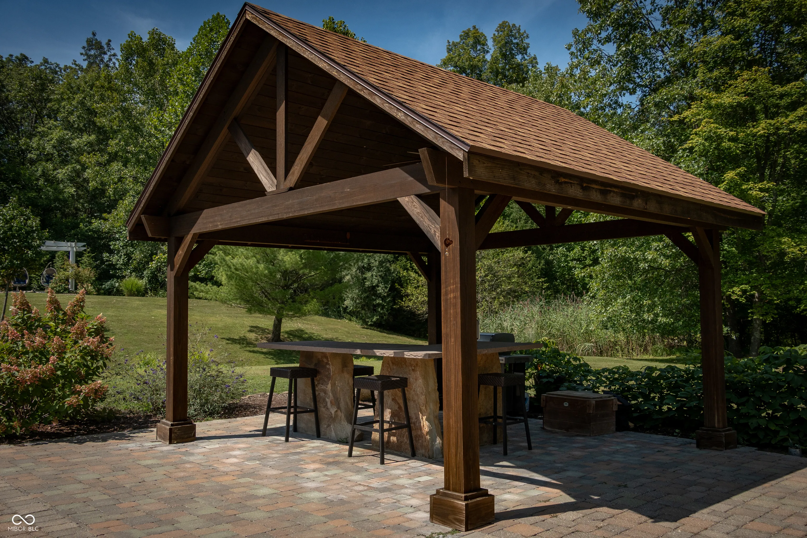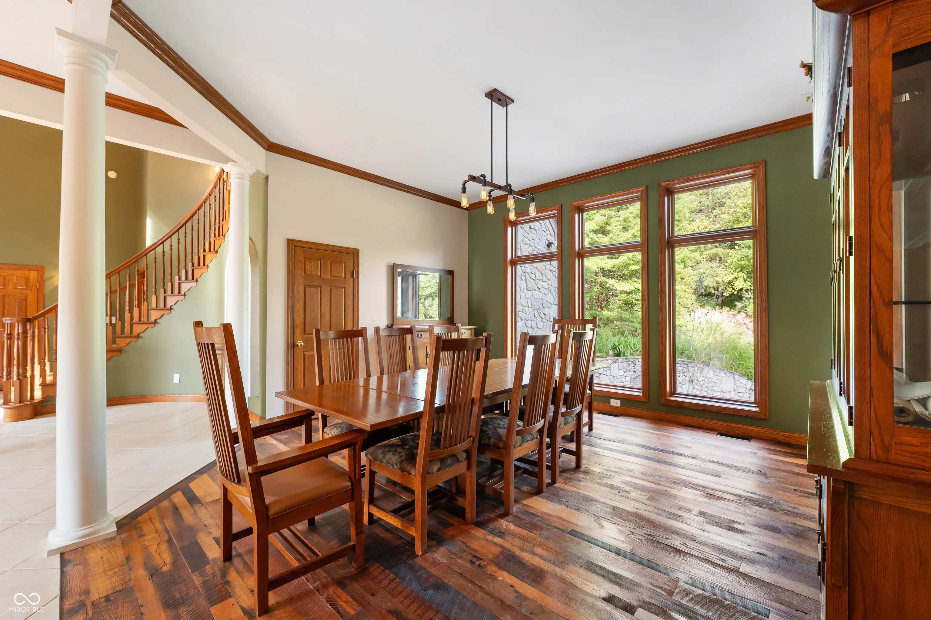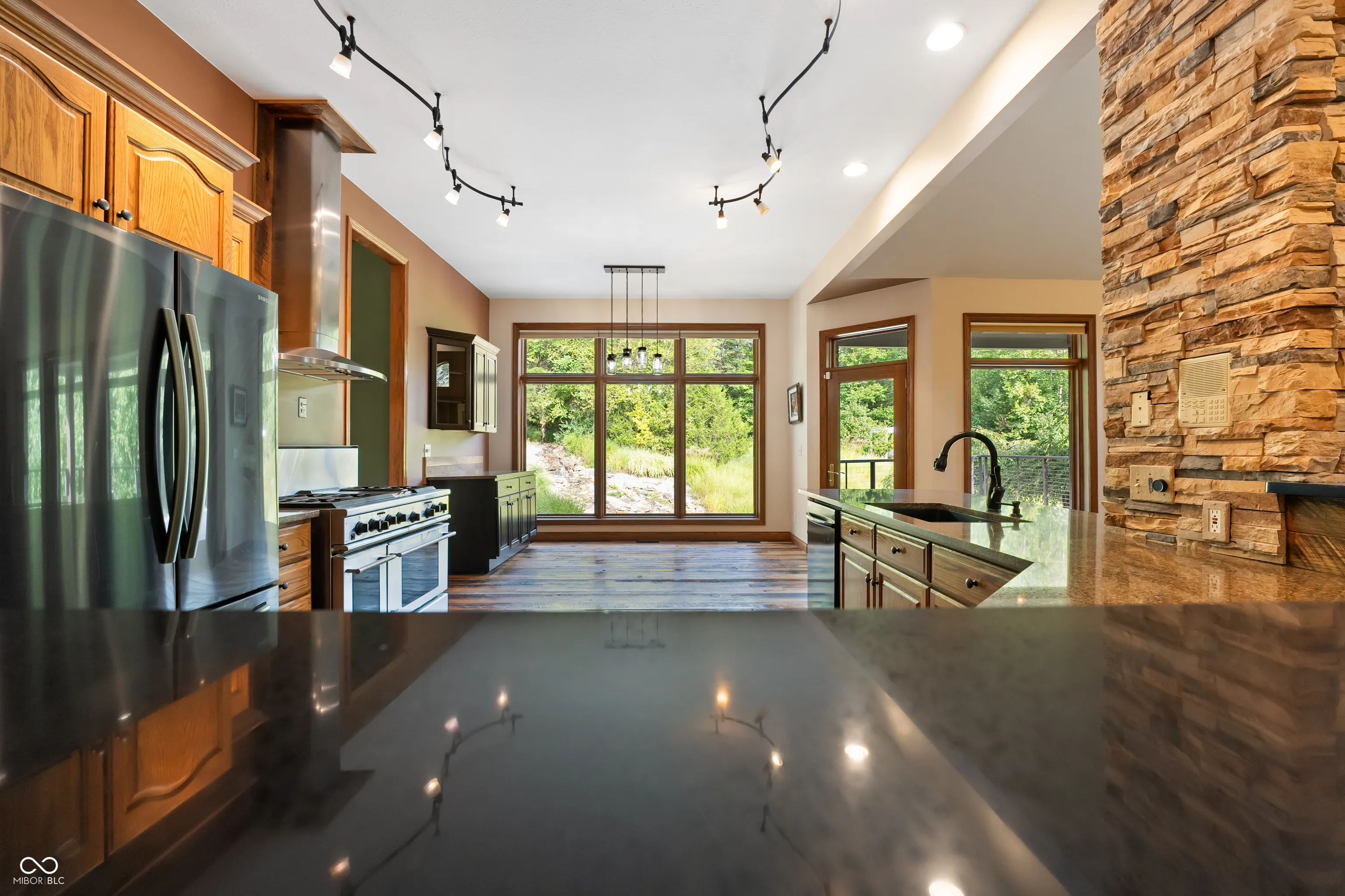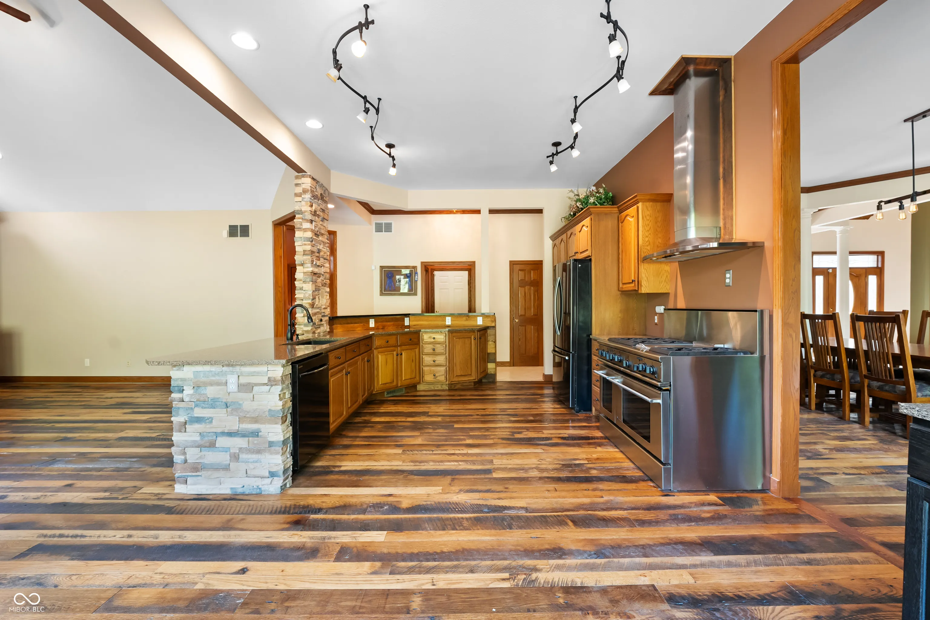 As you enter this exquisite rustic French country home, you are greeted by a grand entrance with a curved stairway. The open formal living and dining room create an expansive atmosphere, while the chef’s kitchen, complete with stainless steel appliances and granite countertops, connects to the family room through the breakfast area. The family room features a gas log fireplace and built-in shelves while opening to a deck that overlooks a lower courtyard with a gas fire pit and a charming koi pond with a waterfall. The main floor’s primary bedroom offers luxury with a walk-in shower, double vanity, and a private deck with a view of the serene lower-level courtyard. Main level also offers an office that could potentially be a 5th bedroom. Upstairs, you’ll find three bedrooms, one with a private bath and two connected by a Jack-and-Jill bathroom and a large living/recreation room. The walkout basement offers excellent entertainment space, featuring a 16-foot-long bar, sink, stove, and refrigerator, along with room for pool tables and game tables. In addition, the basement features a full bathroom and three versatile bonus rooms, offering the perfect space for an office, a home gym, or any other need you may have. Stepping outside, you can enjoy over 9 acres, an in-ground sports pool with walk-ins on both ends, a covered pergola with a bar area, an outside fireplace, and a comfortable sitting area by the pool. A path leads to an additional remote fire pit area and sitting space. Finally, the home features an attached 3-car garage, and the property also includes a pole barn with electric and wood stove heating and a gated driveway. Home has the potential to be a short term tourist rental.