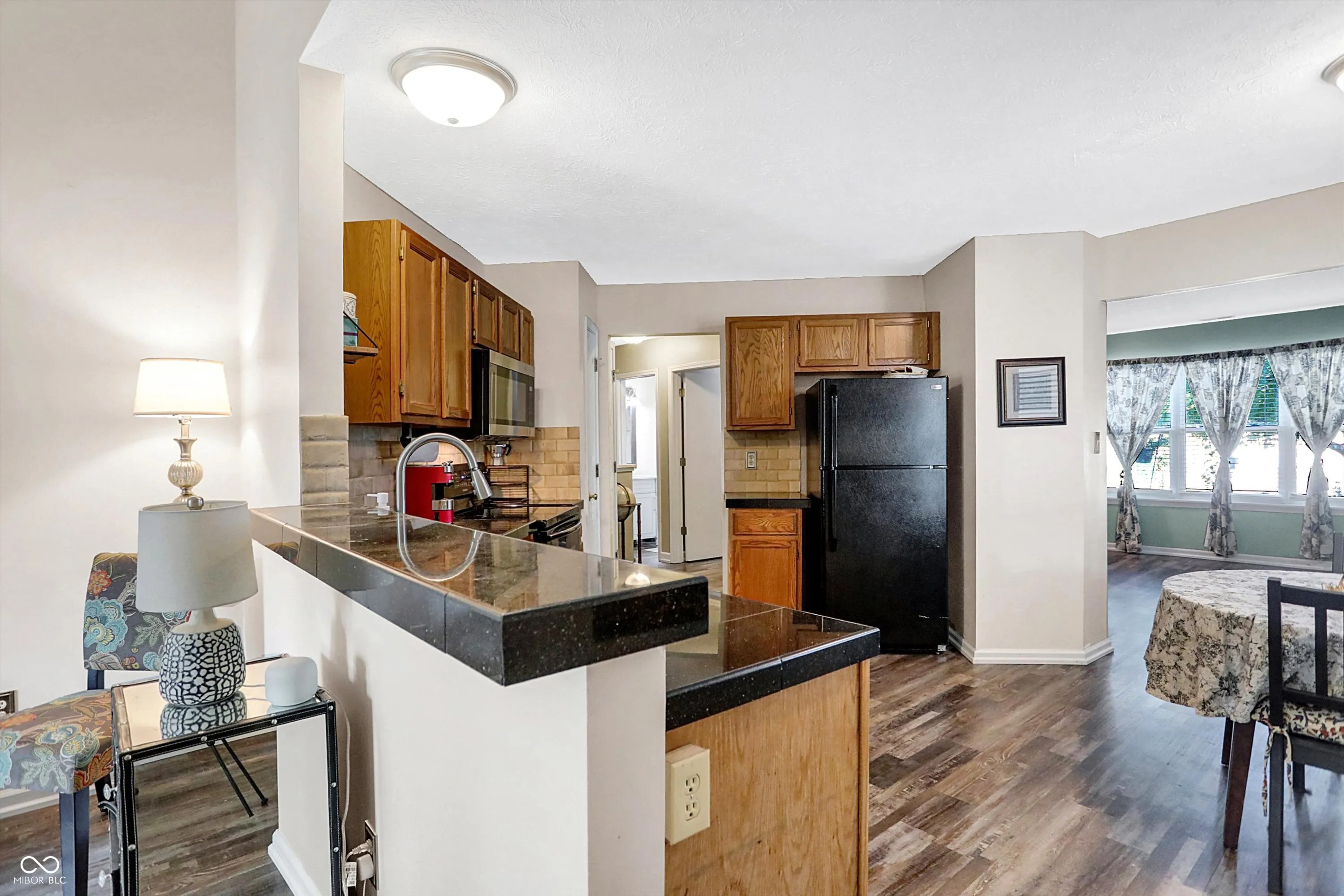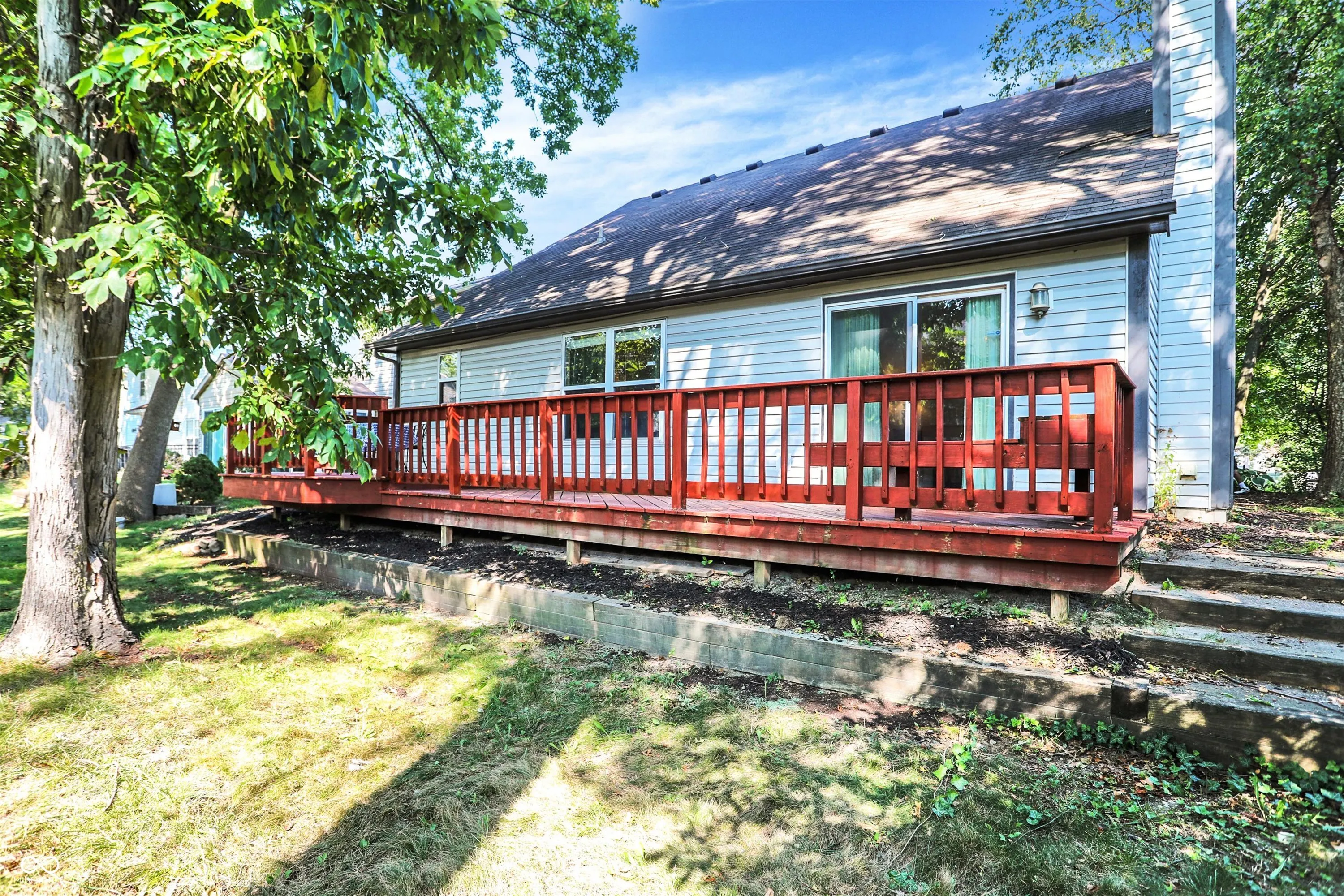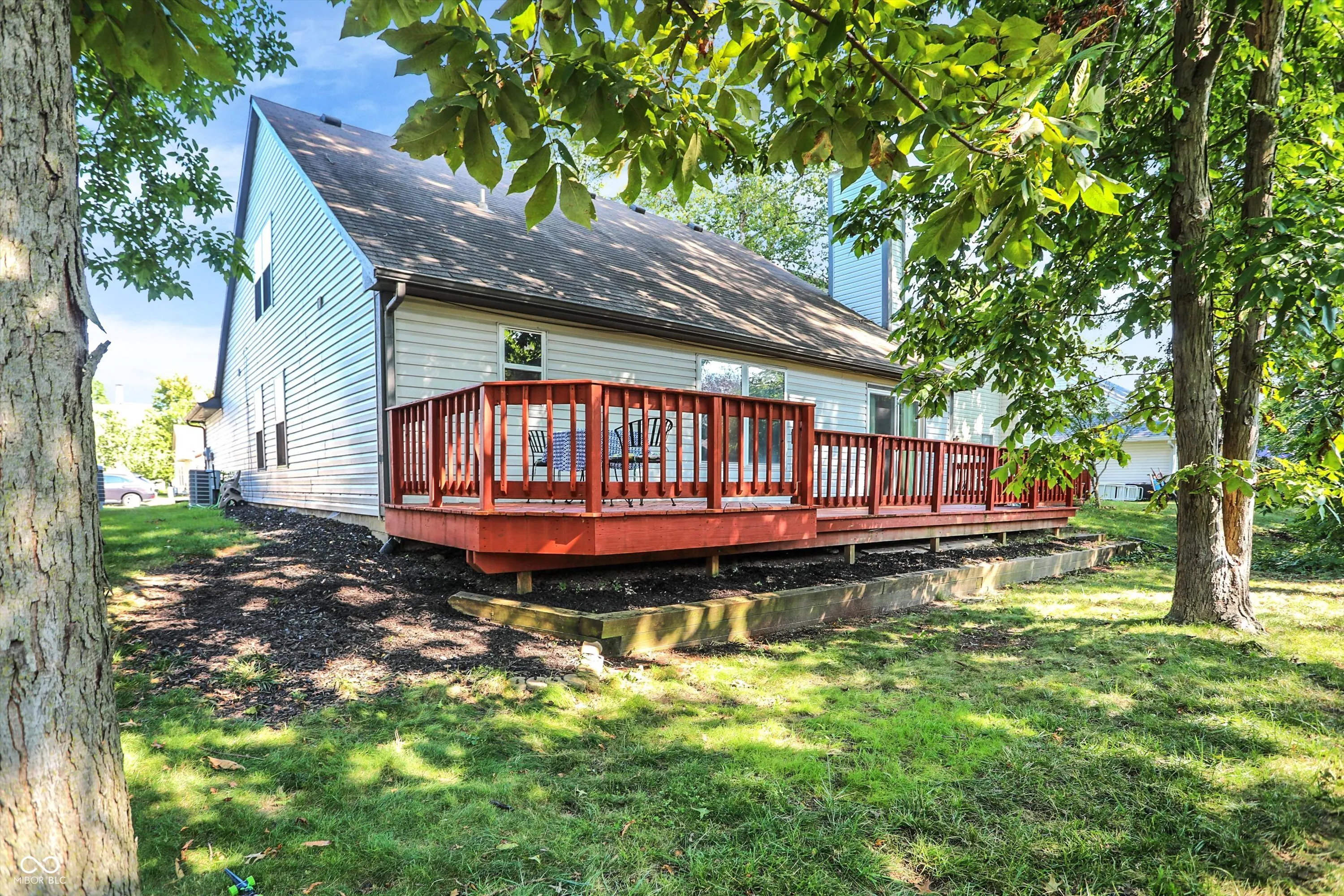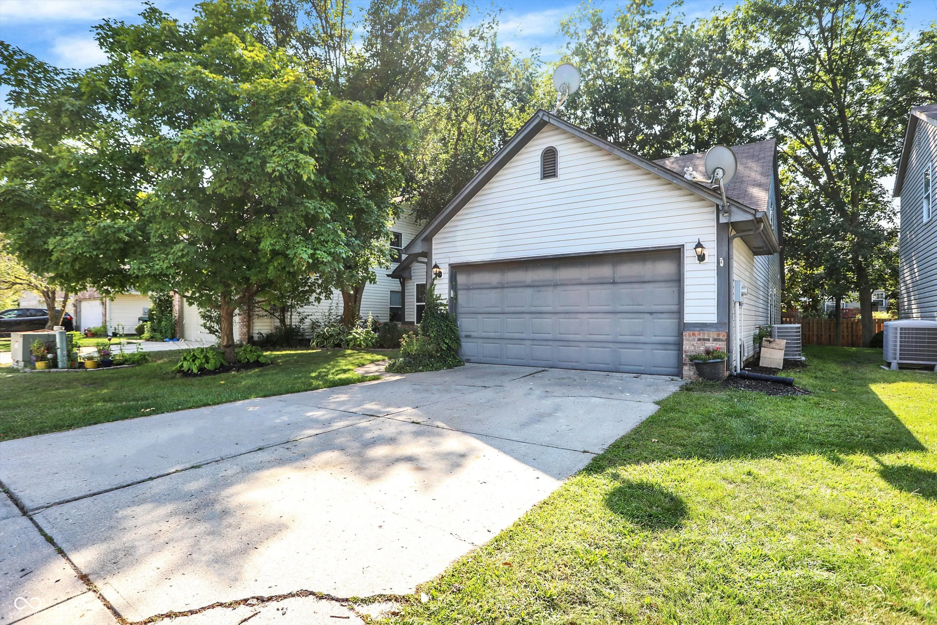 Wonderful 1 1/2 level home with incredible curb appeal on wooded lot in popular Fishers Pointe! Open concept floorplan with several recent upgrades including gorgeous Luxury Vinyl Plank floors 2023, remodeled bathrooms 2024, newer appliances and fresh paint throughout. Entry opens to Living Room/Dining Room with wall of windows providing plenty of natural light. Cozy eat-in Kitchen features granite counters, tile backsplash, black appliances and pantry. Connects to Great Room with vaulted ceiling and stunning wood-burning fireplace. 3 Bedrooms and separate Laundry Room on Main. Primary Bedroom ensuite has generous walk-in closet, dual vanities and huge walk-in tiled shower. Expansive upper level loft includes a spacious walk-in closet and is perfect as a Bonus Room or 4th Bedroom. NEW Water Heater 2020. Enjoy relaxing or entertaining on the sprawling, recently painted deck overlooking private backyard with lush landscaping and several mature trees! Minutes to downtown Fishers and the Nickel Plate Trail.
