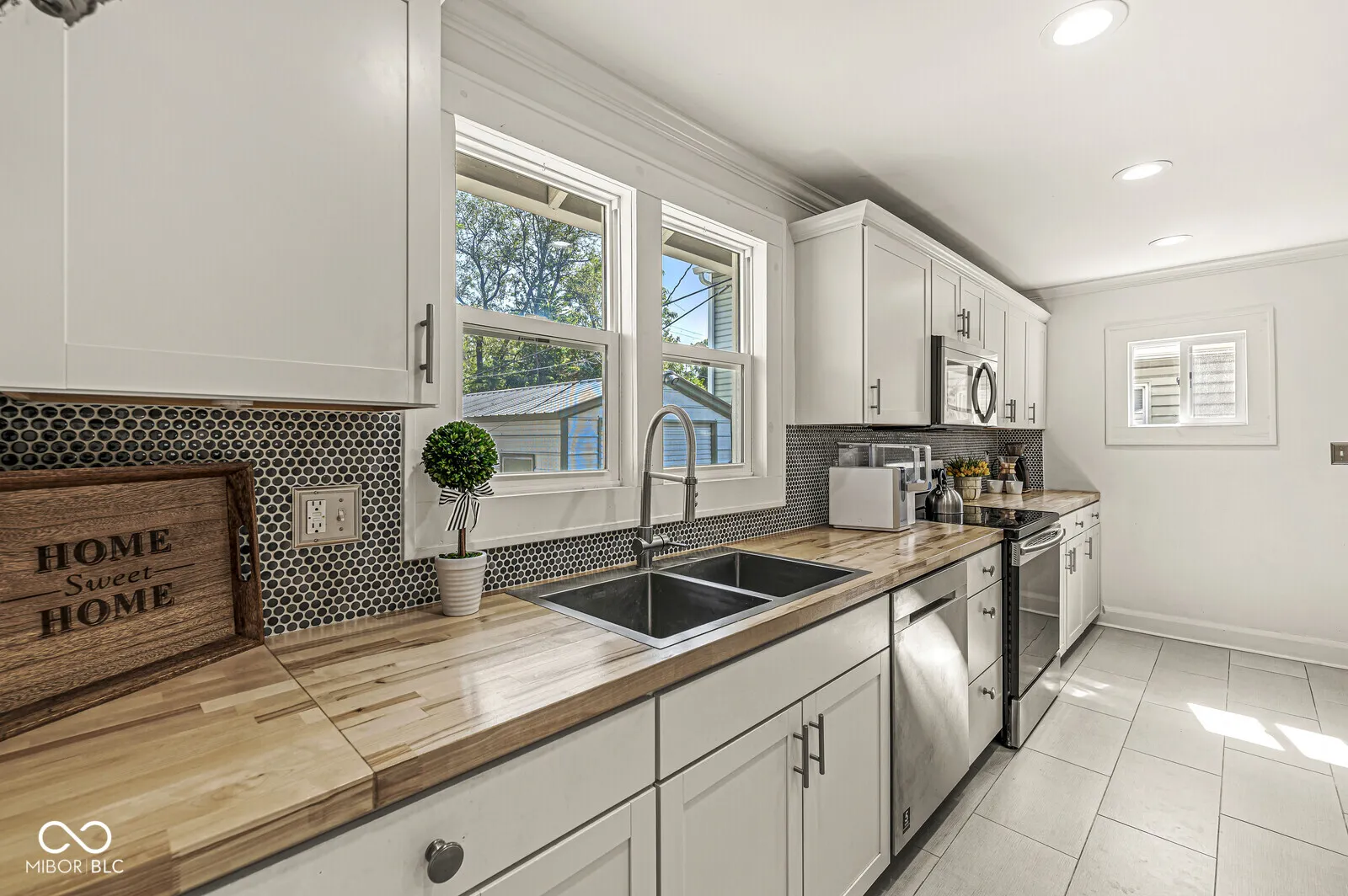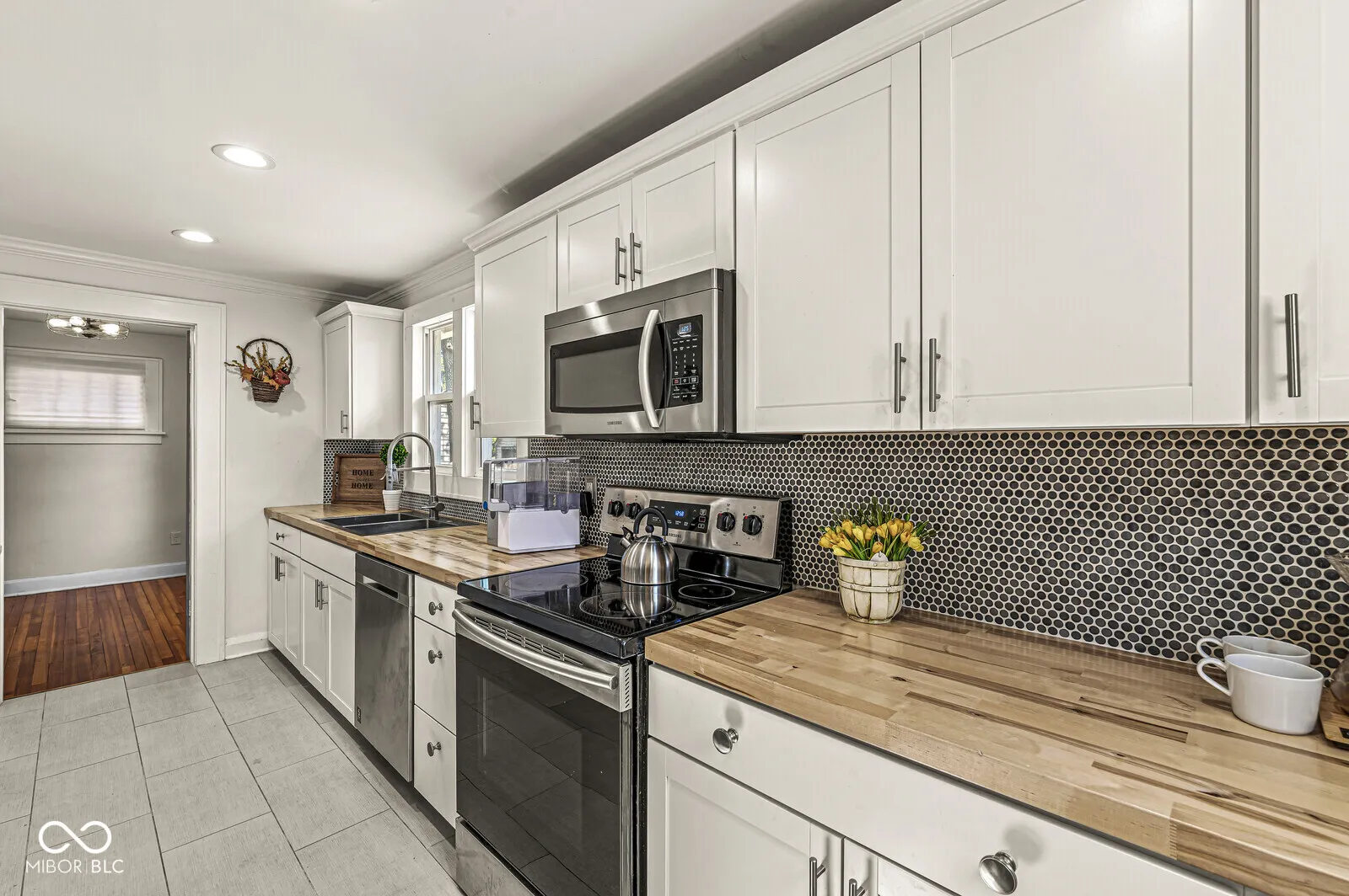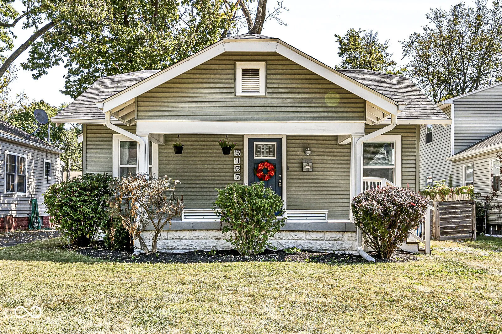 Welcome home to your new updated bungalow in Midtown! This two bedroom, one bath home boasts many updated features as well as much of the original character. Enjoy morning coffee or evenings on the large covered front porch. Enter into the living room that has vaulted ceilings & original hardwood flooring. The kitchen offers crisp white cabinetry, beautiful tilework, combined butcher block and granite countertops, stainless steel appliances, center island and pantry. Two spacious bedrooms with an updated Jack & Jill bathroom complete the main. Full basement is dry with laundry and plenty of storage. Backyard is fully fenced and includes a one car garage. Other updates include plumbing, electrical, siding and windows. Located in midtown, this home is just minutes from the heart of Broad Ripple with shopping and dining as well as the Monon Trail.