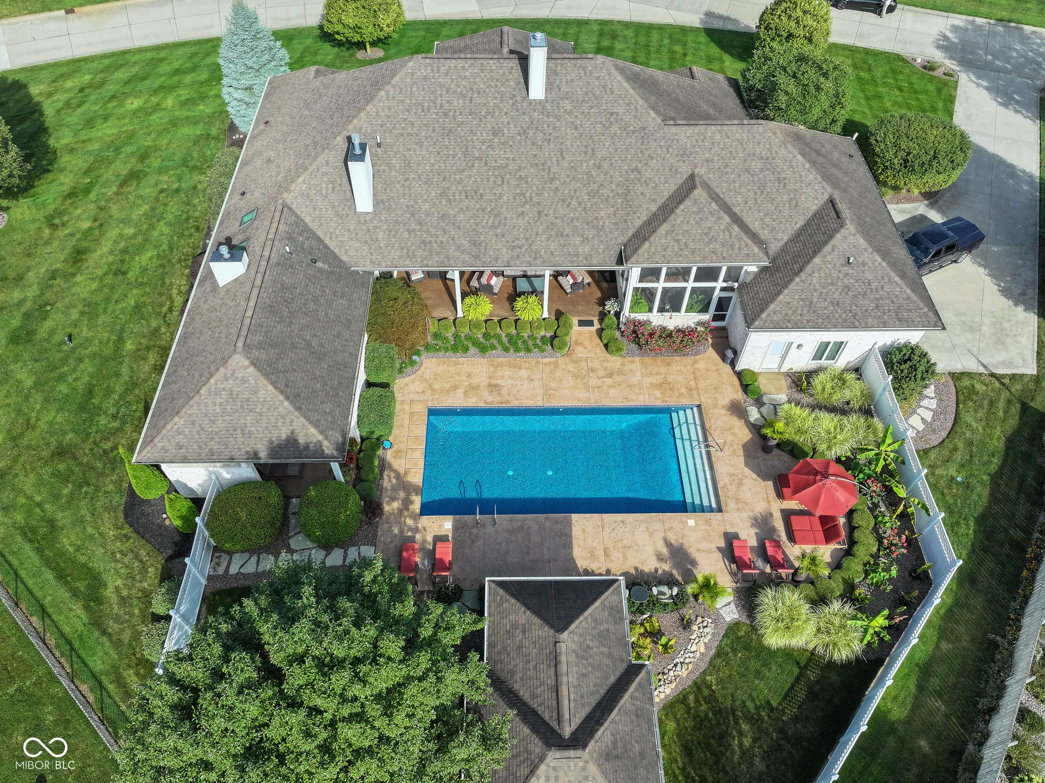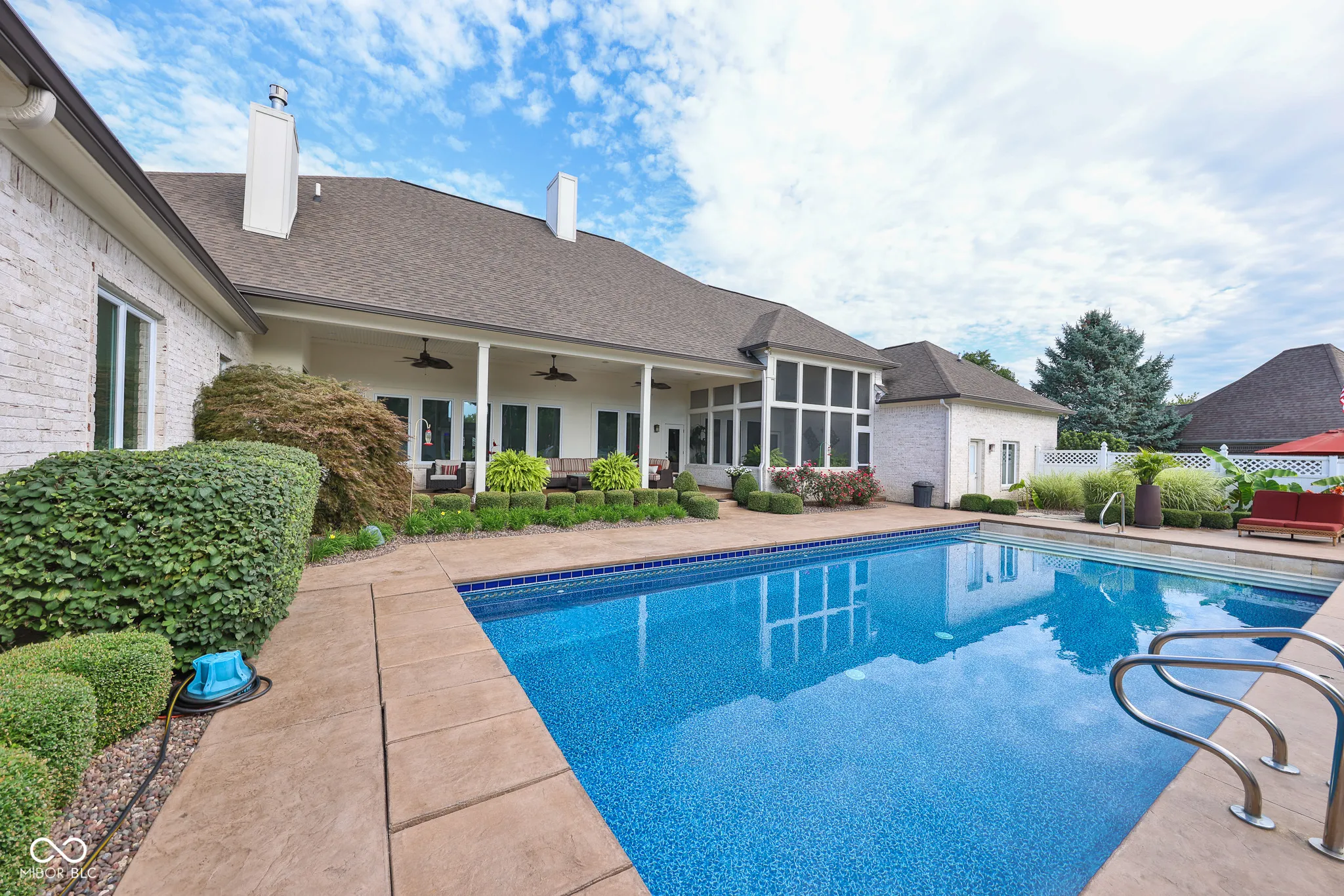 Looking for a little space? Remarkable 4 bedroom/6 bath/7508sf custom all brick ranch on .90 acres with 20×40 sport pool & pool house is for you!! Step inside and feel a true sense of quality design with 2×6 wall construction built for entertaining both inside and out. Contemporary, large open floor plan and heightened ceilings, sizeable rooms throughout, great natural light and impeccably maintained! Roll out of your screened in porch onto your huge 750 sf covered patio which you can enjoy in a rainstorm or on the brightest of days. Incredible outdoor environment for grilling, watching tv or just relaxing. Dual staircases lead down to the finished lower level with 2 bedrooms & 2 full bath, fitness room, wine cellar, full bar and family room with fireplace. Main level primary suite & secondary bedroom. Despite the size of the home, it manages to be comfortable and intimate. It’s an incredibly rare opportunity for those that seek quality, location and distinction.