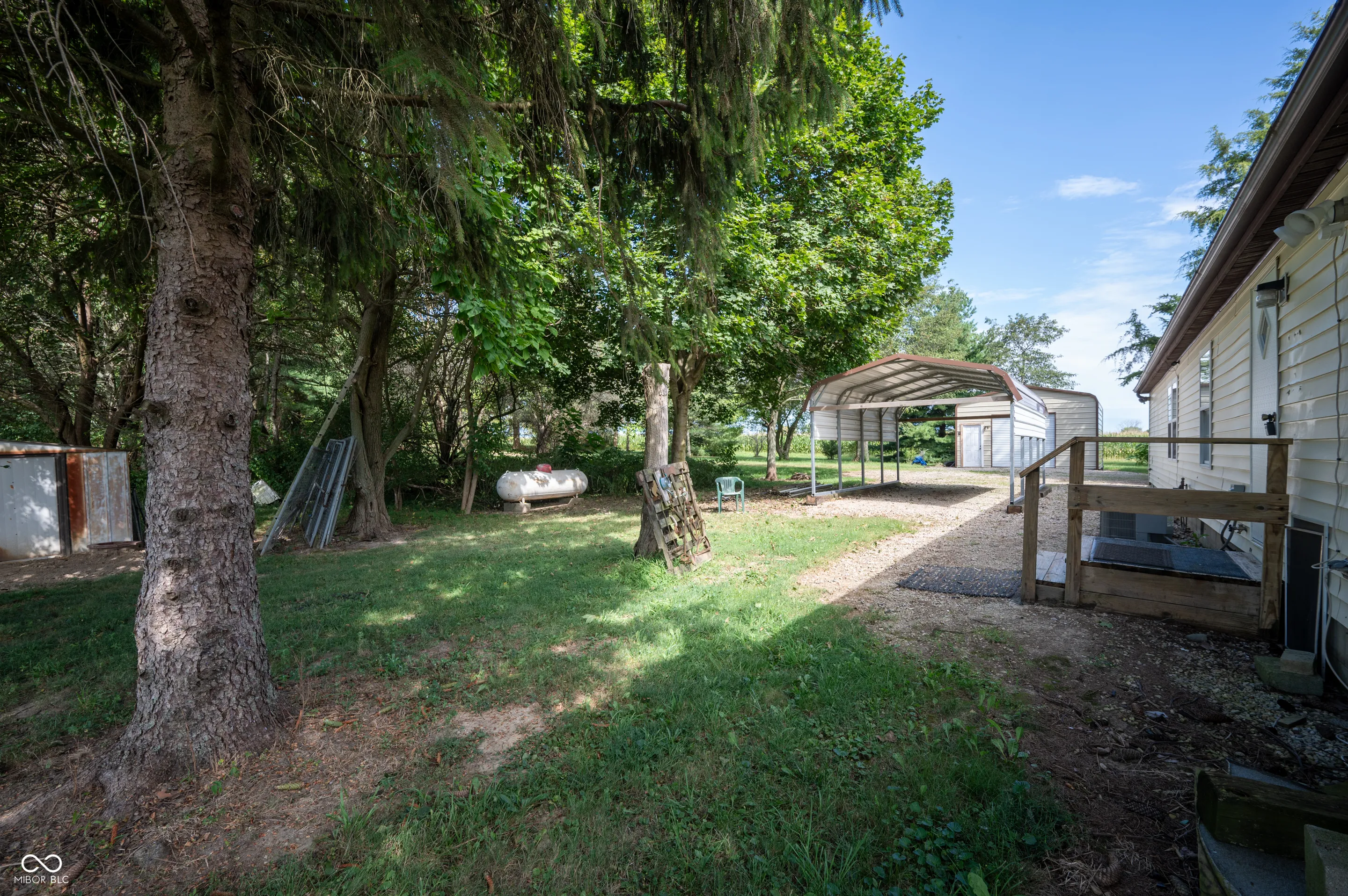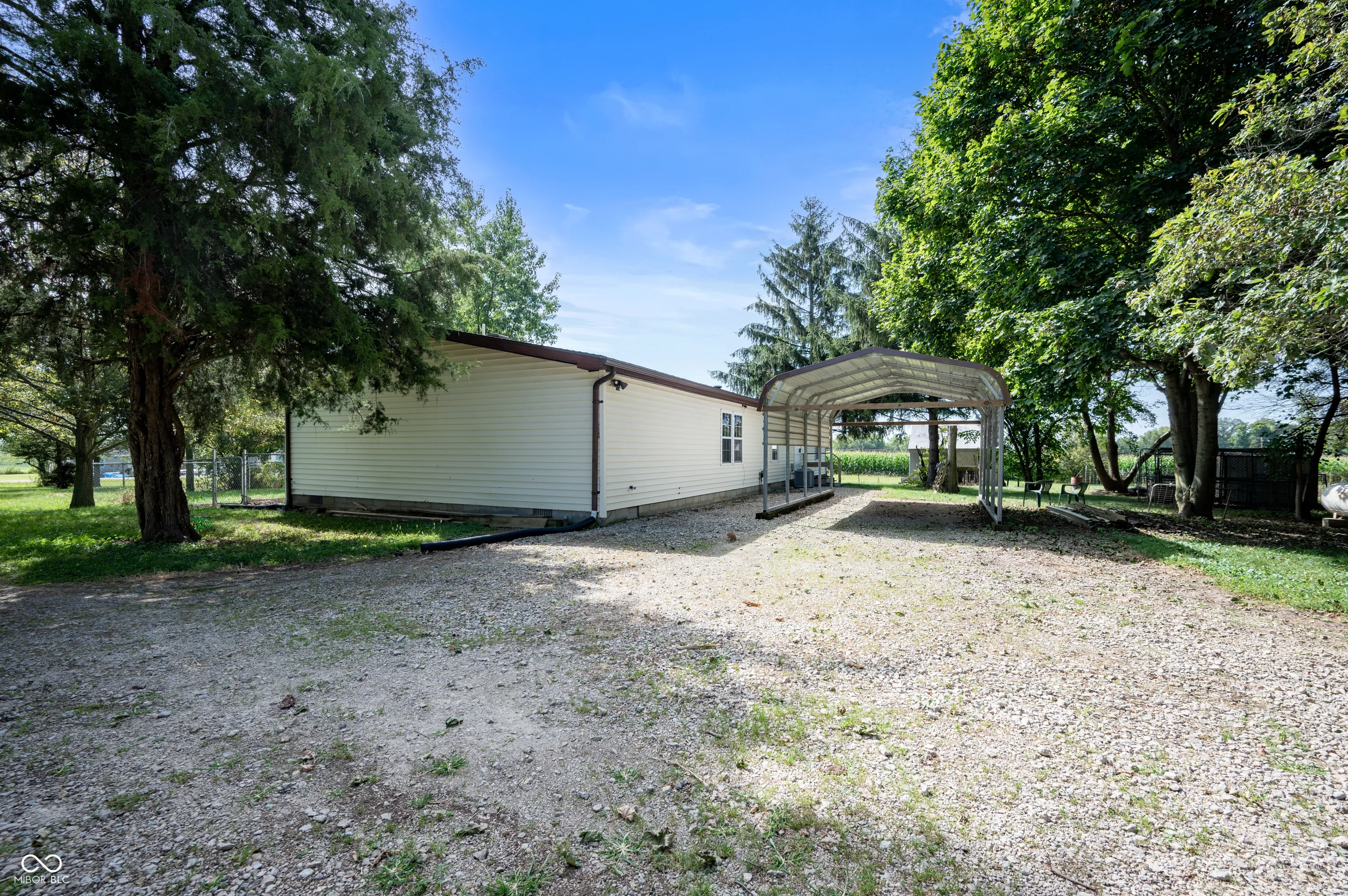 Conveniently located near downtown New Castle, this 5 acre farm is move-in-ready. Surrounded by pastures and farmland, this land has served as a thriving mini-farm for livestock, poultry, and produce. Fruit trees and bushes include varieties of apple, cherry, mulberry, and black raspberry. The large 100′ x 52′ barn is set toward the back of the property on a rise overlooking the country landscape. The barn offers a dirt floor ready to be modified for your intended use. The 1,680 SF manufactured home offers 3 bedrooms and 2 bathrooms in an open, split bedroom floor plan that includes primary en suite and two living spaces. In the kitchen, a breakfast bar island provides space for meal prep and serving. The room flows into the dining area and great room, with vaulted ceiling that gives a spacious feel. Also included are a chicken coop, smaller barn, carport, detached one car garage, and workshop.