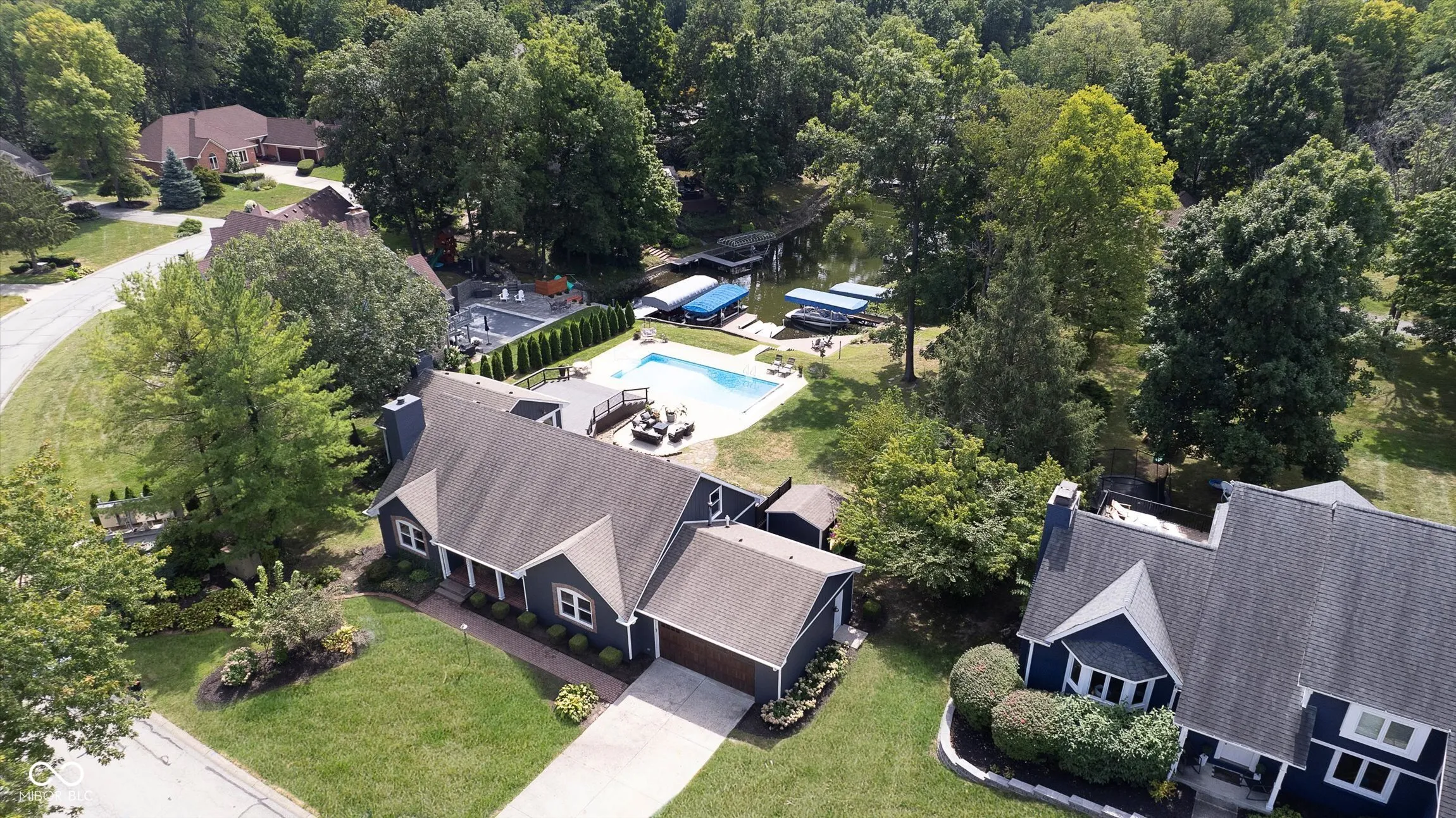 Gorgeous home on Geist an amazing backyard oasis situated on a half acre lot with a 40×20 salt water pool, deeded dock with boat and jet ski lift, and an expansive deck with room to entertain the masses. You will love the updated kitchen with large island with sink and breakfast bar, high-end stainless appliances, and lots of storage. Spacious great room with dramatic ceiling, built-ins, fireplace, and doors that connect the living space with the outside. Formal dining room with 2nd fireplace and bonus/office room. Main floor primary suite features an updated spa-like bath with double sinks and walk-in closet. Upstairs are two generous bedrooms and a full bath. Storage shed and invisible fence stay. Enjoy lake life at it’s best.